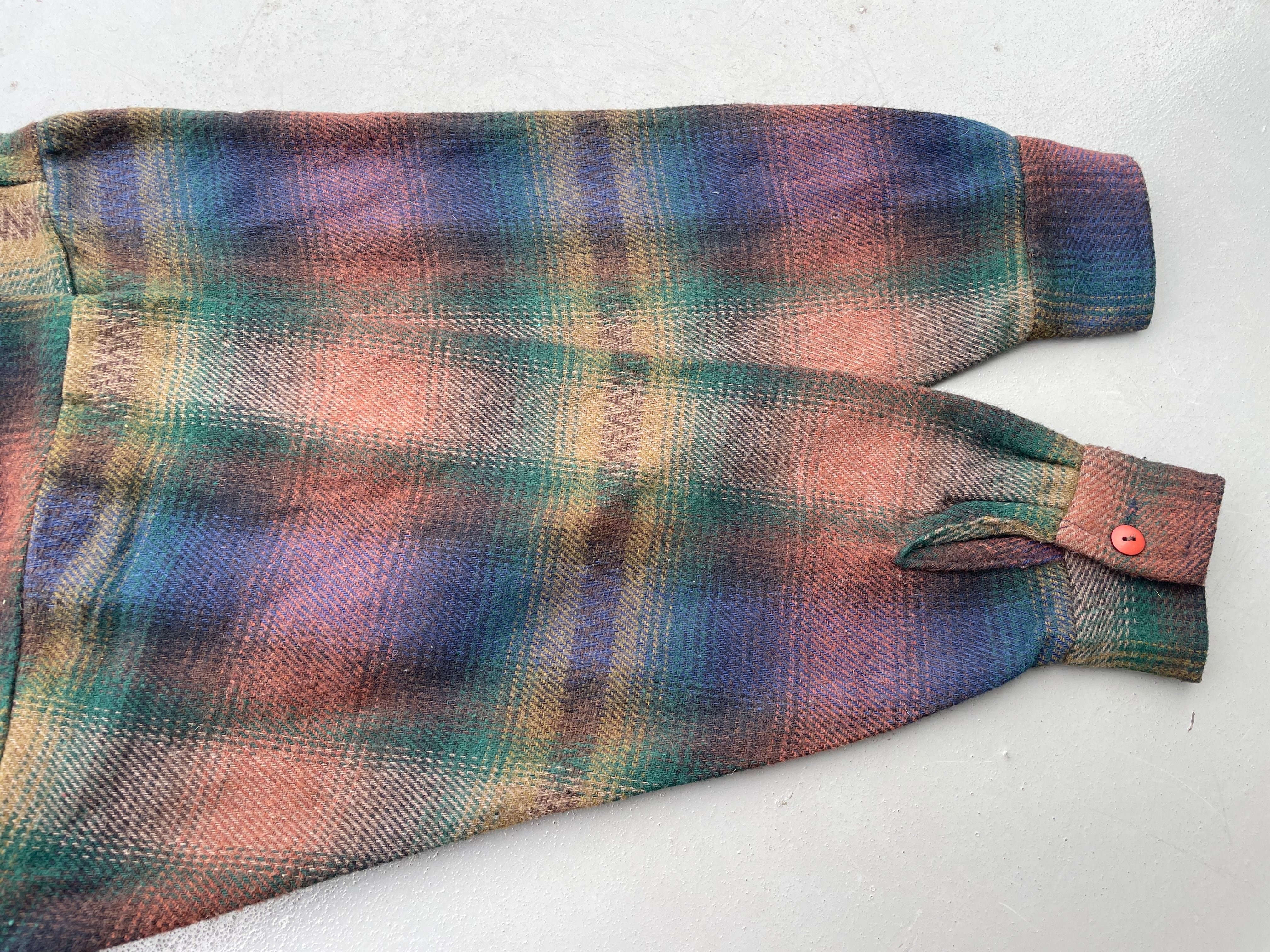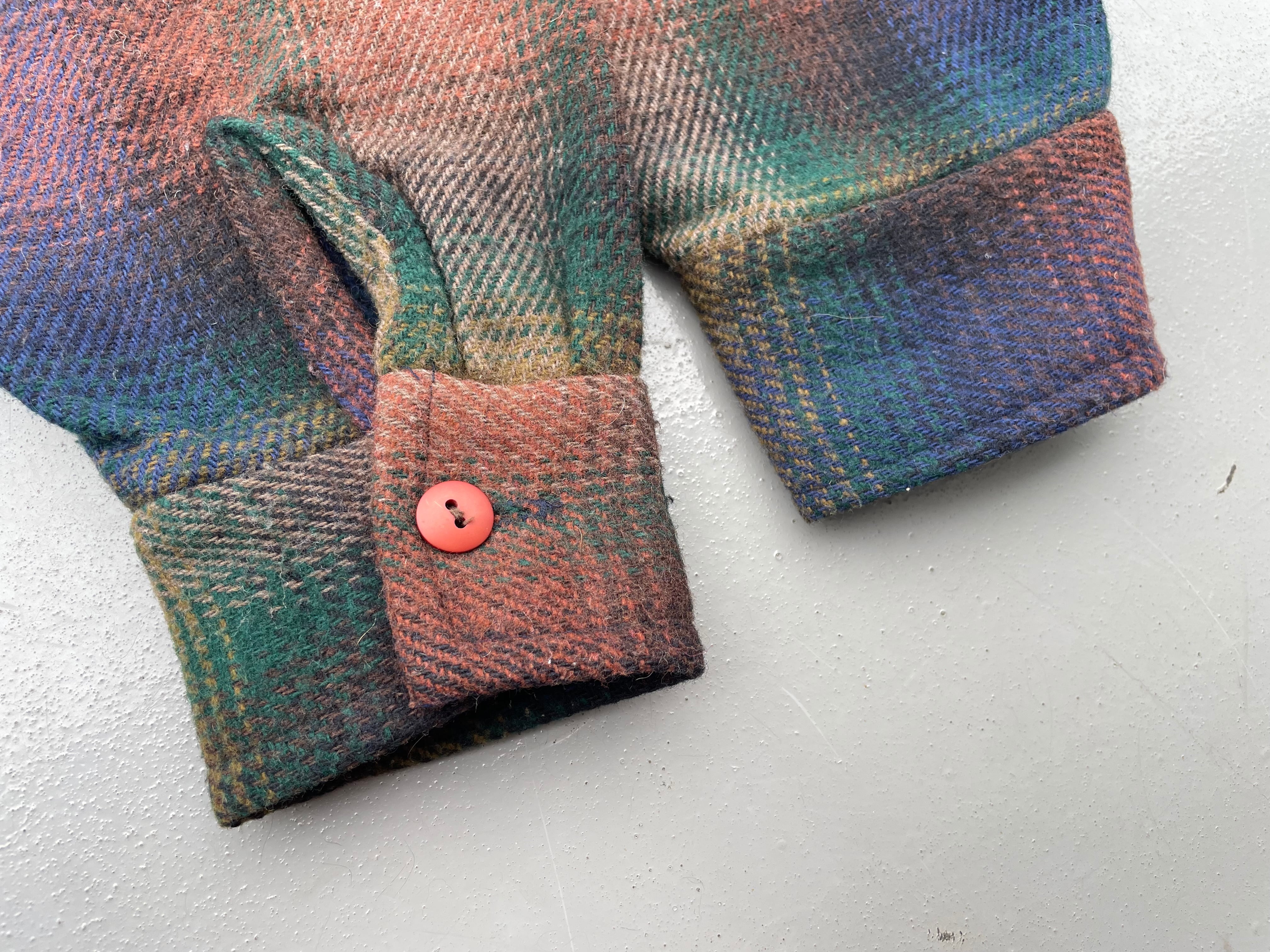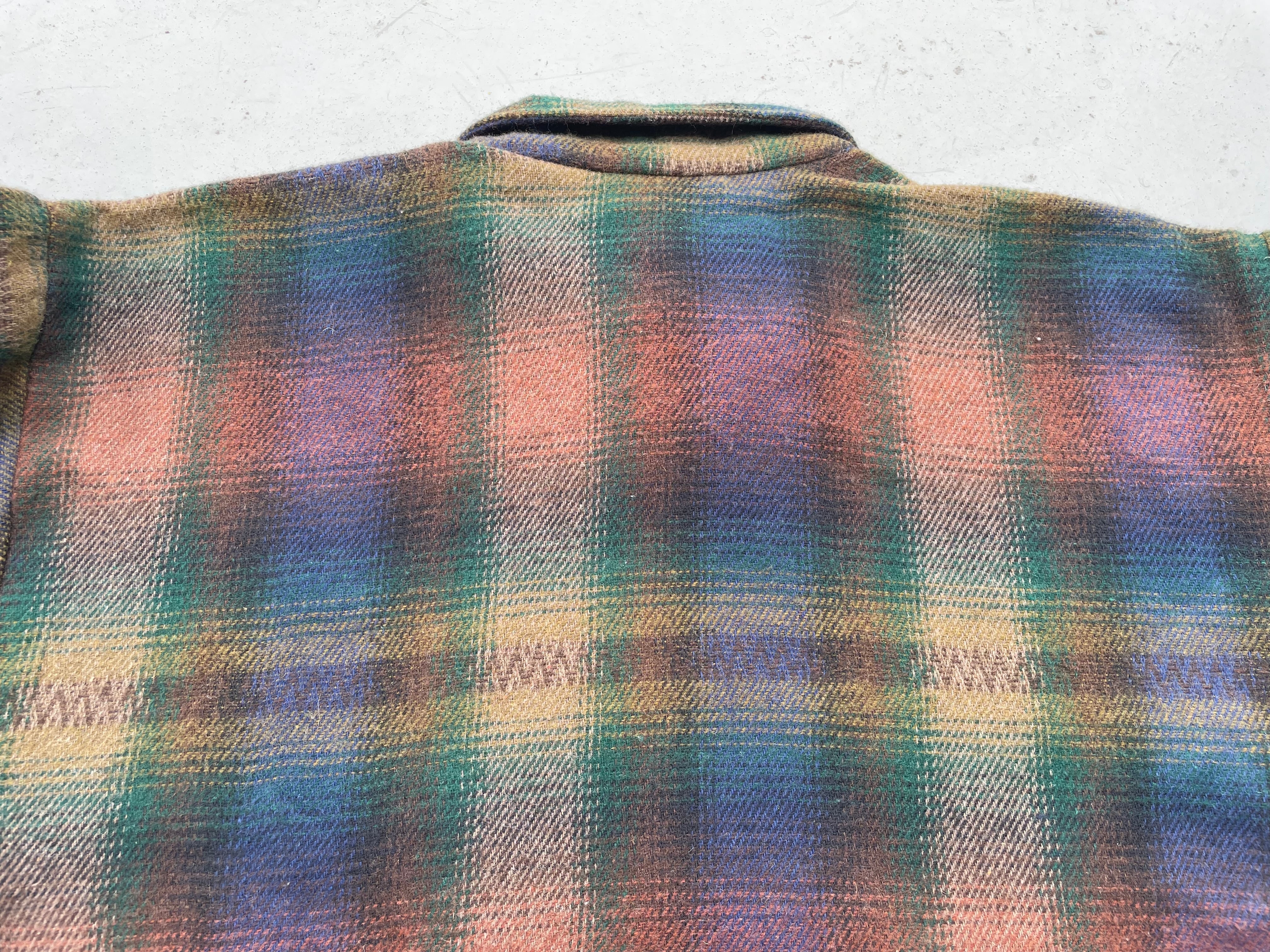 【商品詳細】ヴィンテージのウールスポーツジャケット。サイズはM。80年代頃USA製。人気のシャドーチェックパターンのスポジャケ。グリーンとブラウンベースの大人なシャドーチェックが入る洒落たデザイン。身幅たっぷりの人気なボックスシルエット。ウール地ですが薄過ぎず厚すぎない丁度いい厚みで夏以外のシーズンは活躍しそうです。生地は柔らかいウール地で着やすいです◎Mサイズですが大きめ。