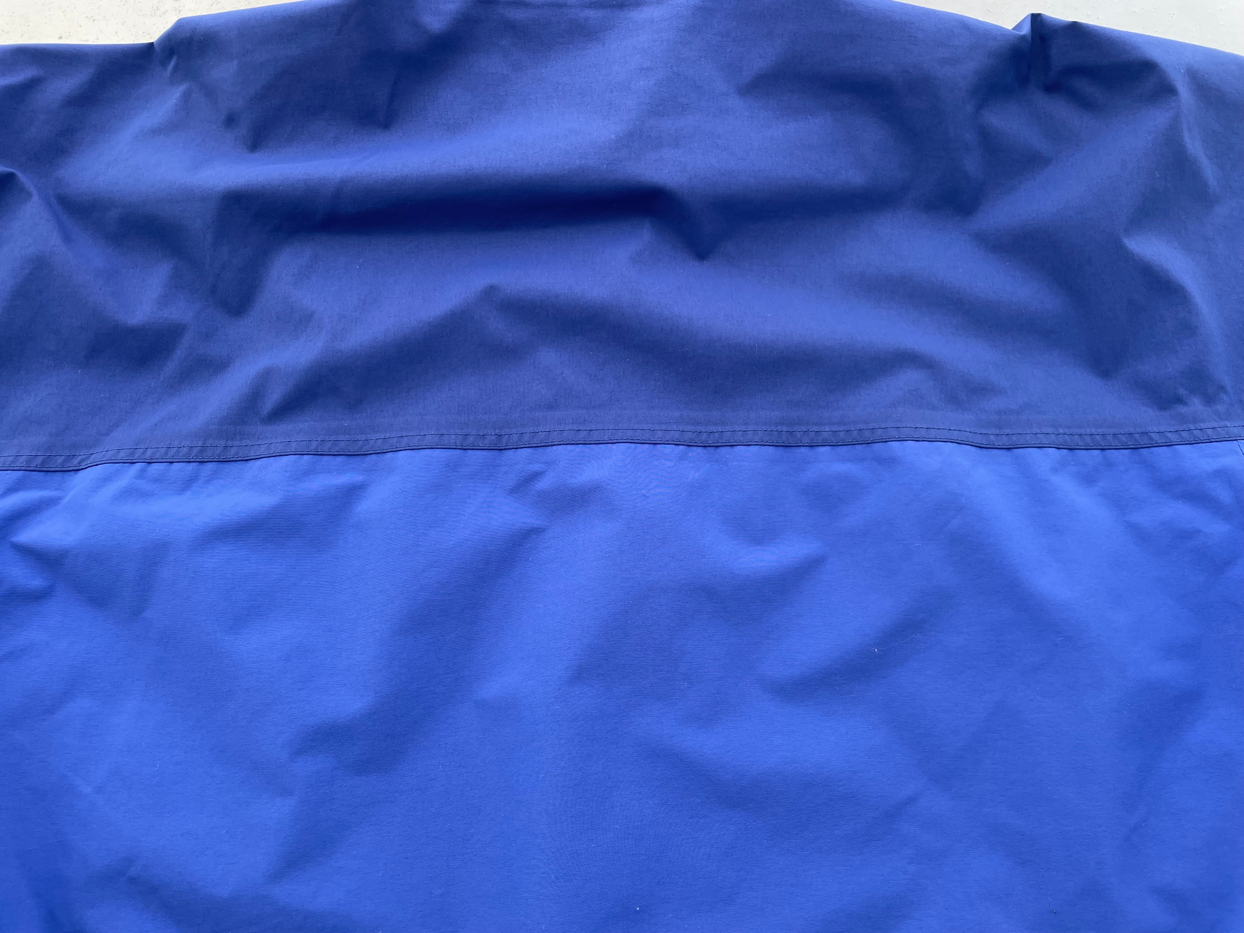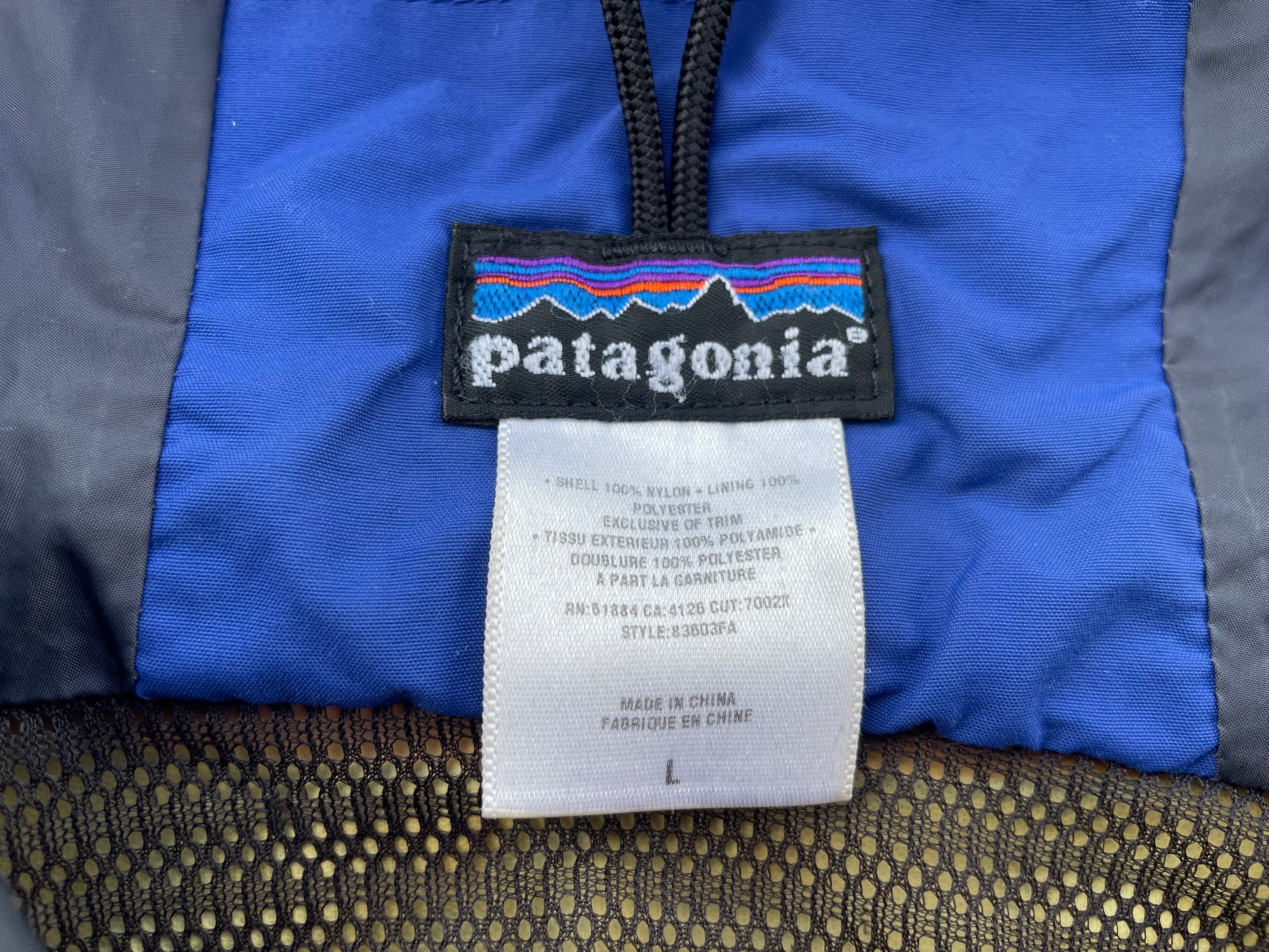 【商品詳細】パタゴニアのストームジャケット。サイズはL。カラーはネイビー×ブルーのツートーン。03年中国製。パタゴニア定番人気モデルのストームジャケット。その中でも特に球数少ないツートーン物。年代物の為、使用感はありますがコーティング落ちも無く比較的良好な状態だと思います。加えて嬉しい大きめサイズ。出ない系。