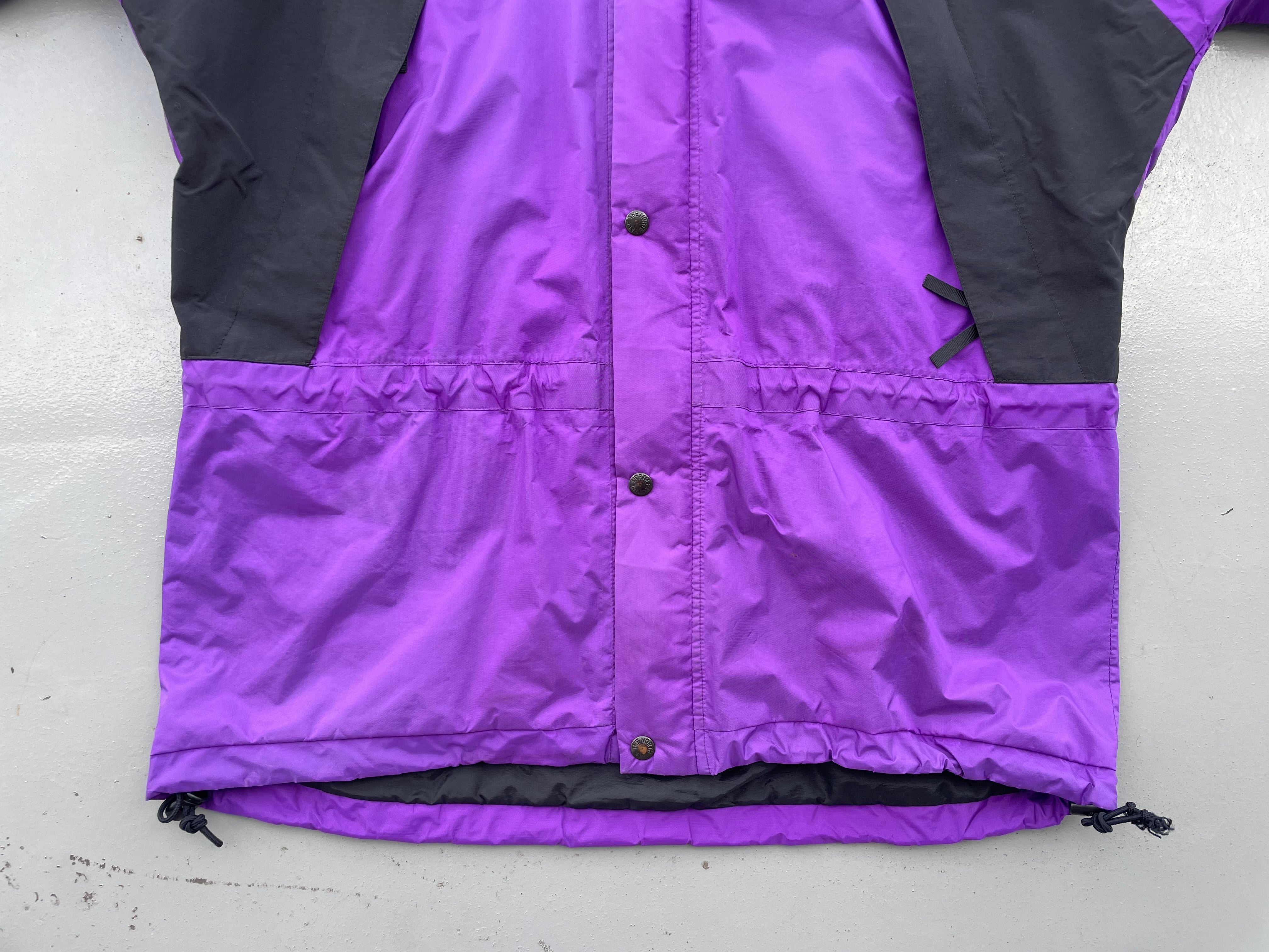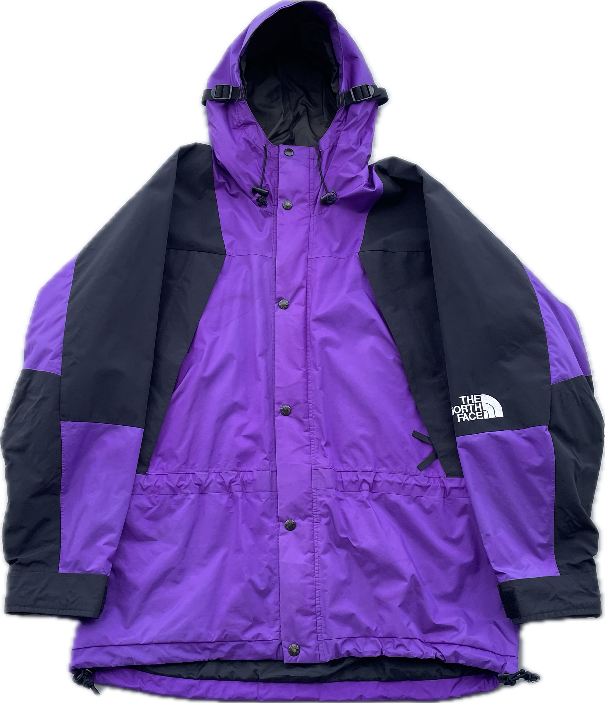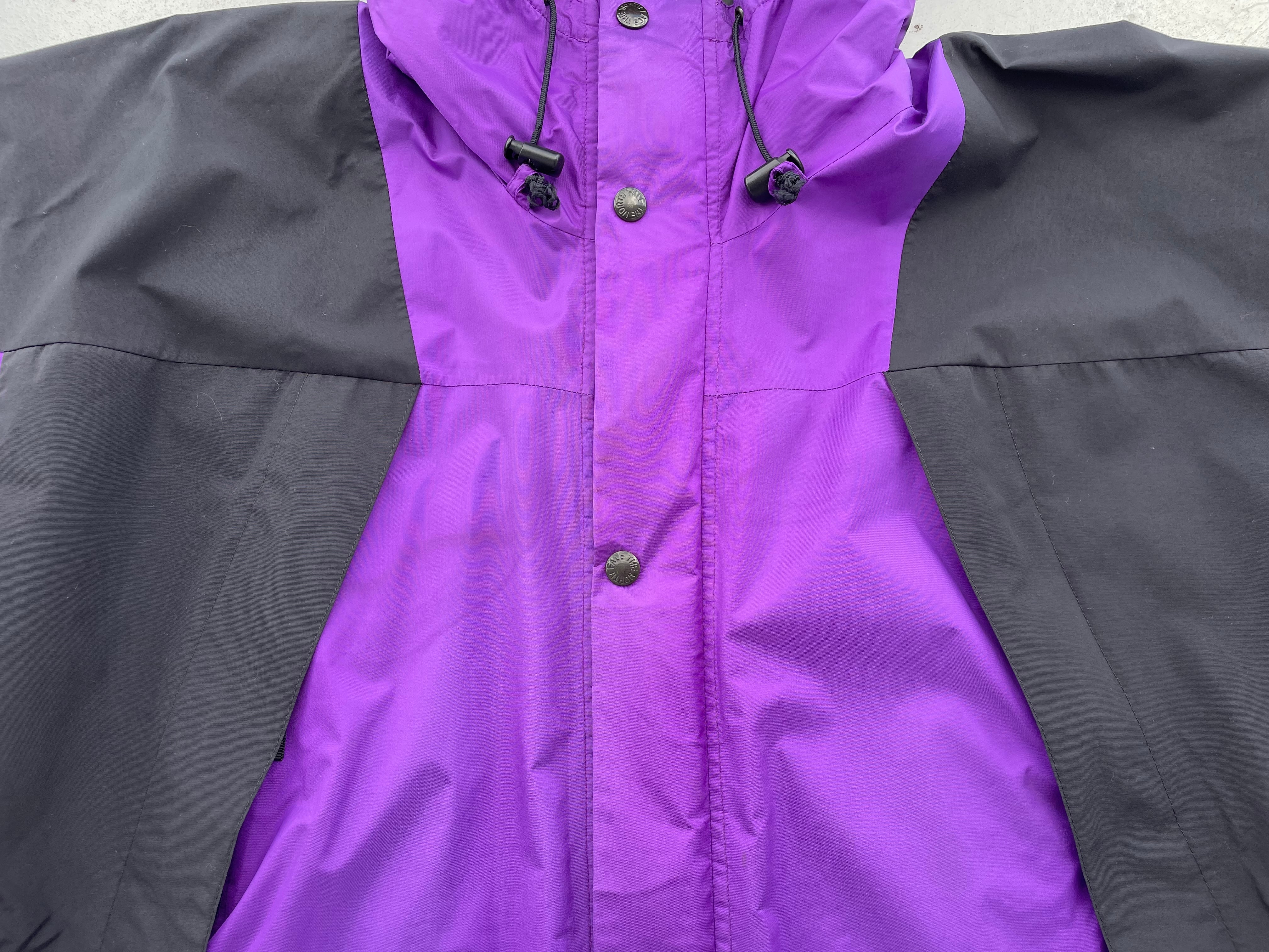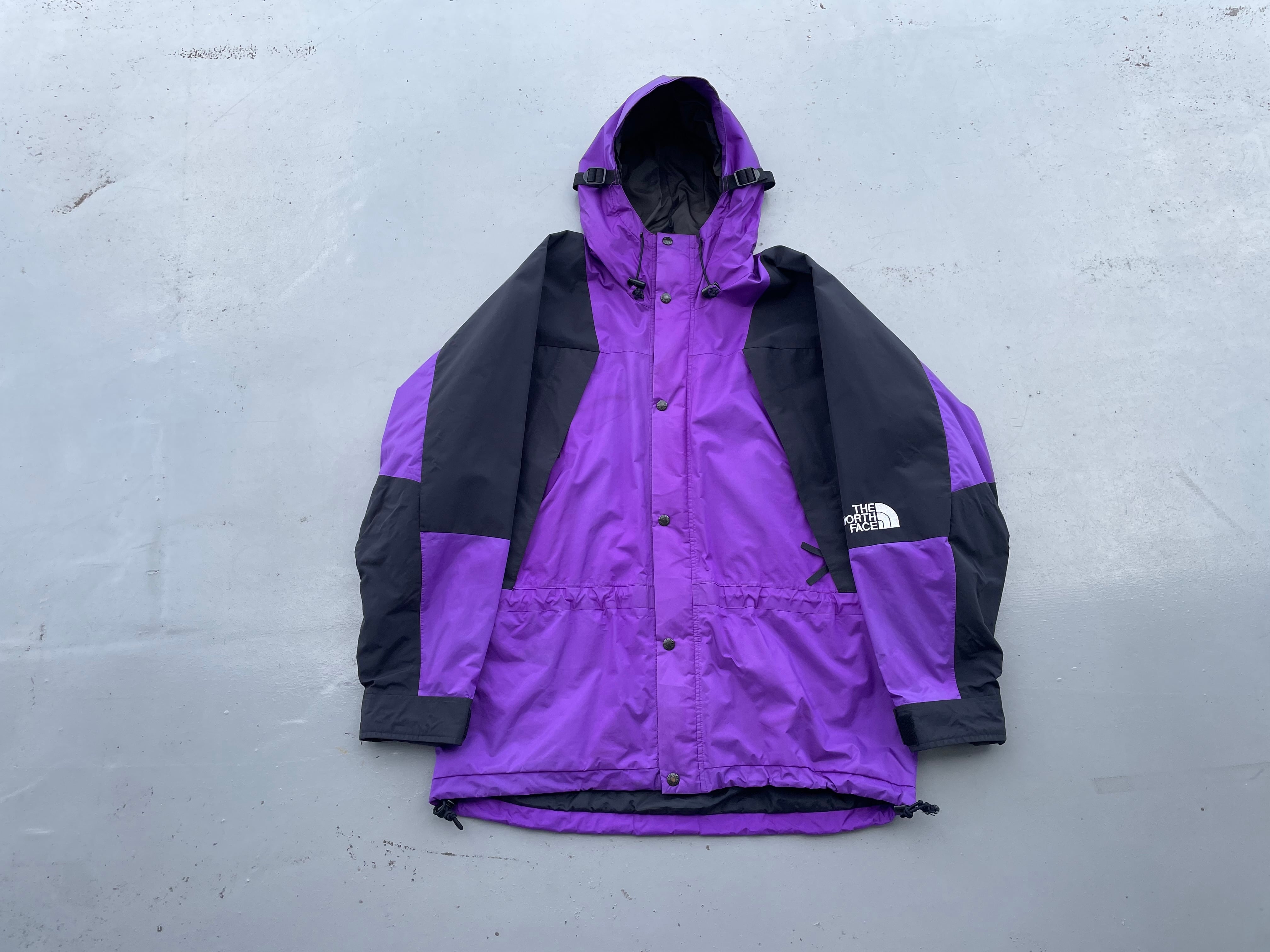 【商品詳細】ノースフェイスのマウンテンライトジャケット。サイズはL。カラーはパープル×ブラック。90年代中国製。ノースフェイス定番山モデル。オールドモデル特有の艶感のあるパープルカラー◎