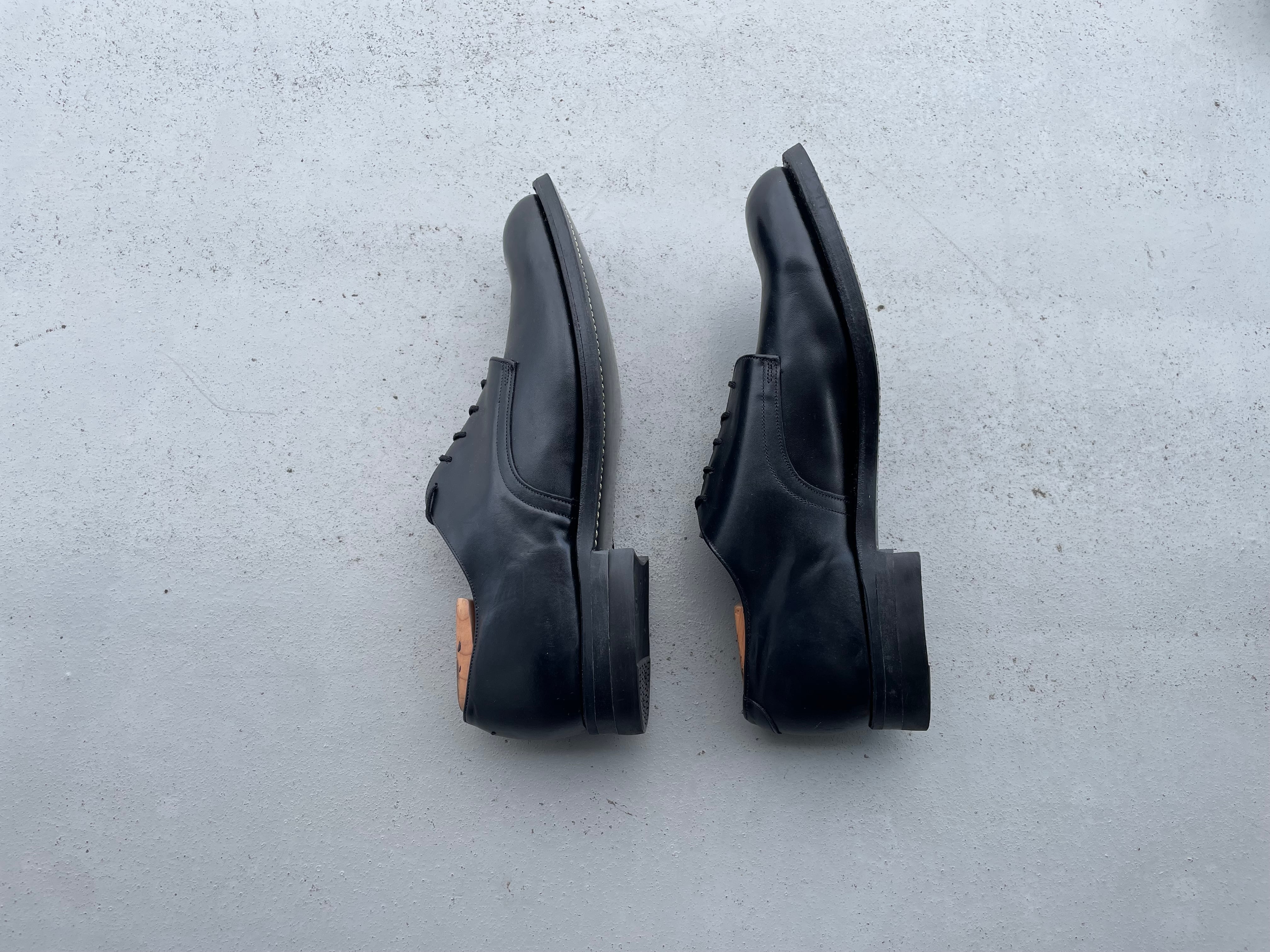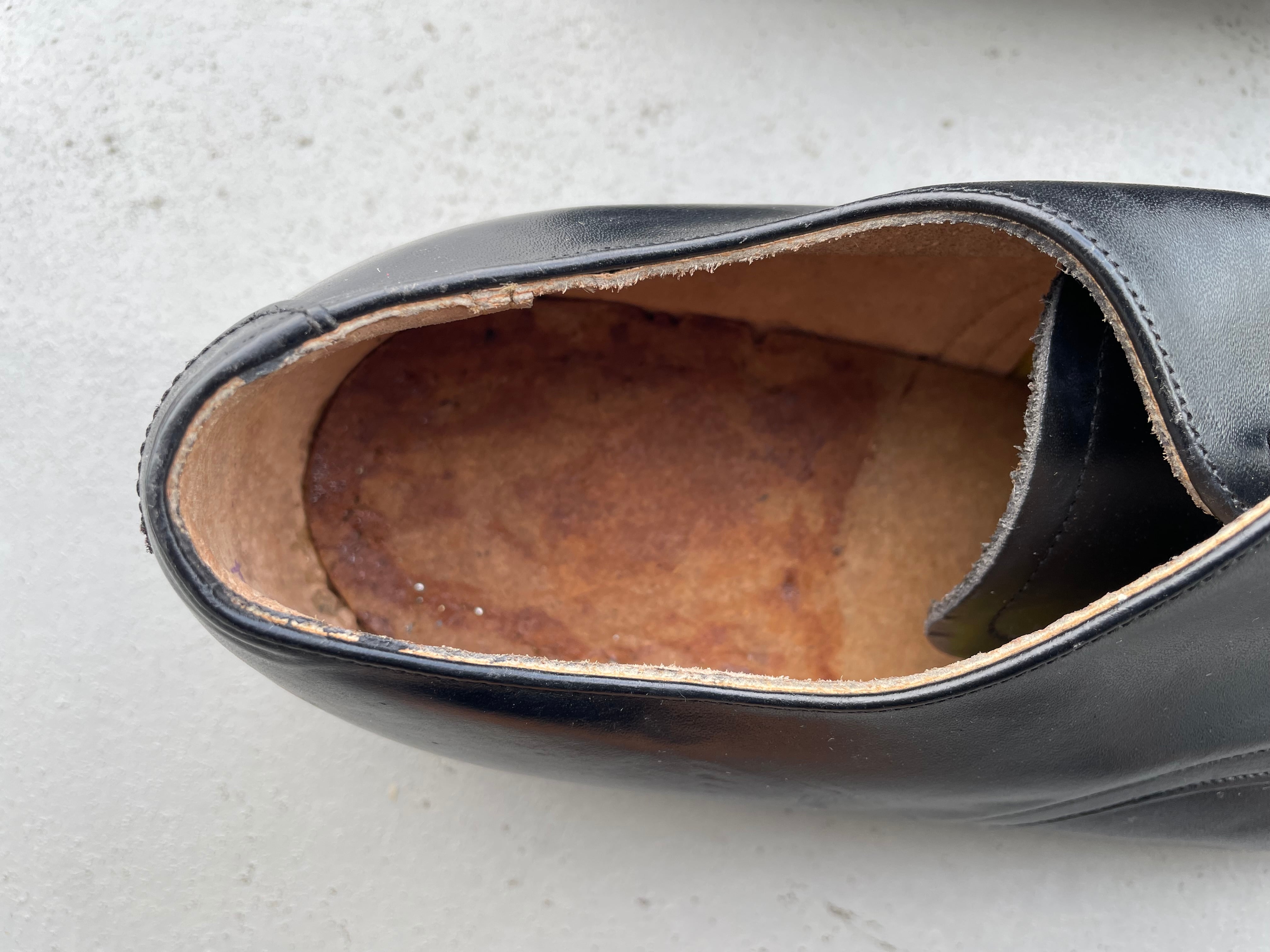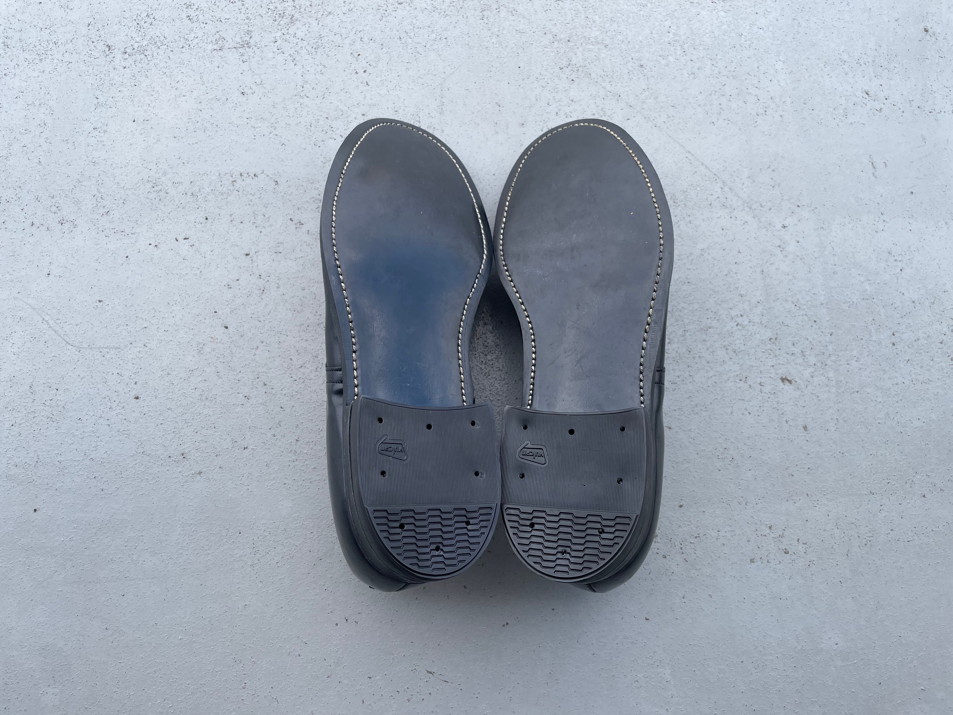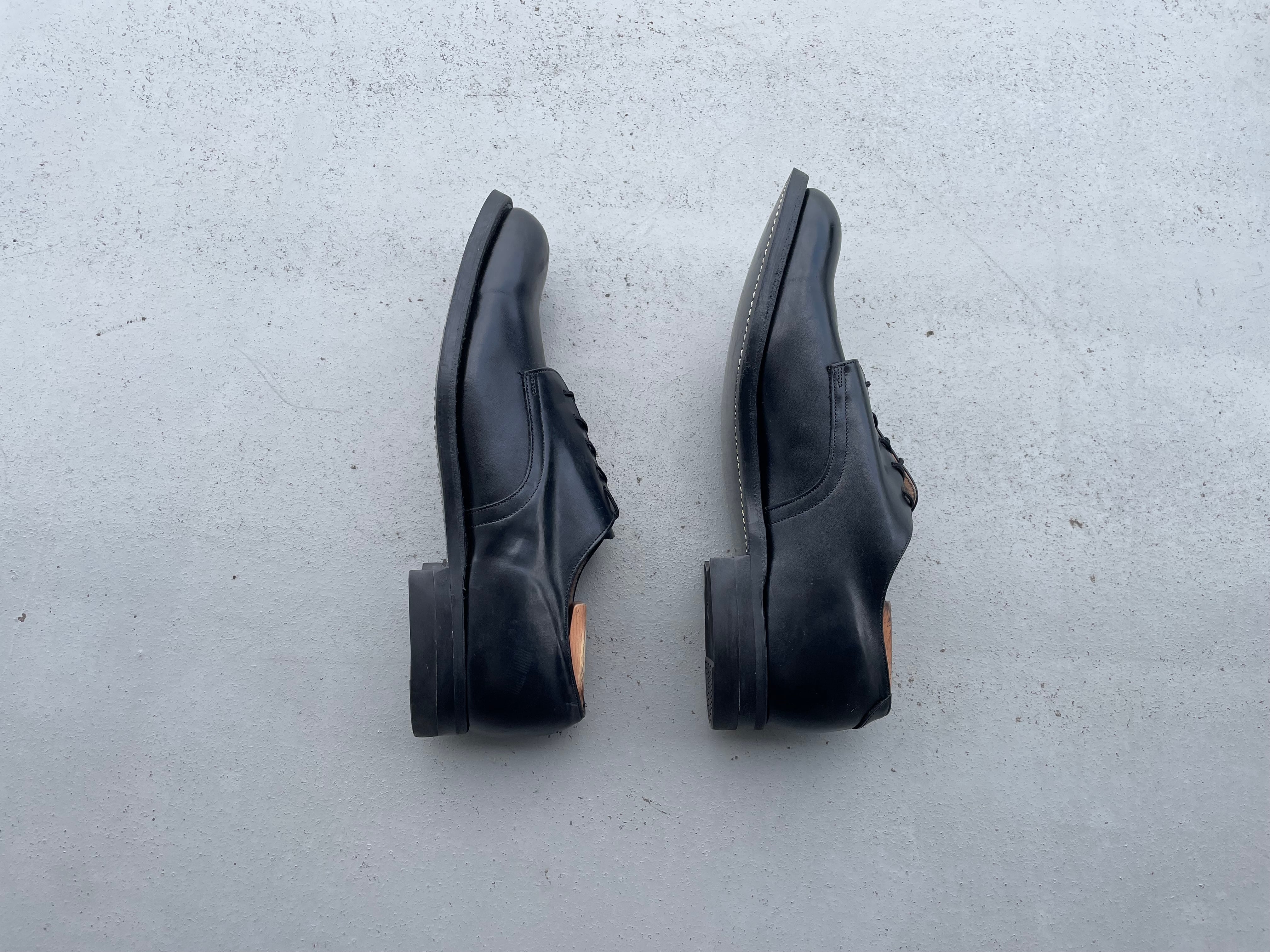 【商品詳細】U.S.NAVYのサービスシューズ。サイズは8R。カラーはブラック。89年CLARKSVILLE FTWR製。vulcanソール。オールドのガラスレザー仕様◎
