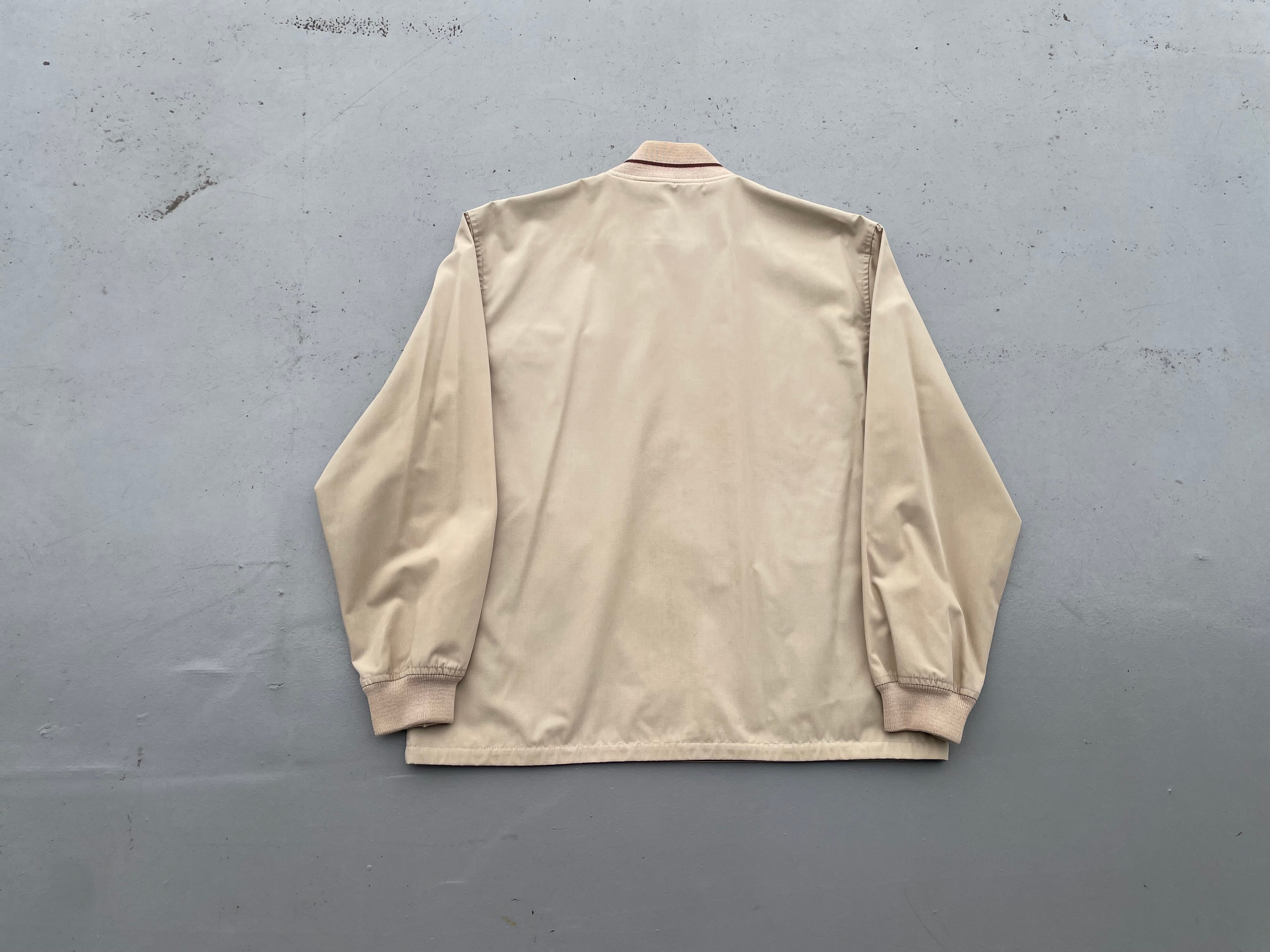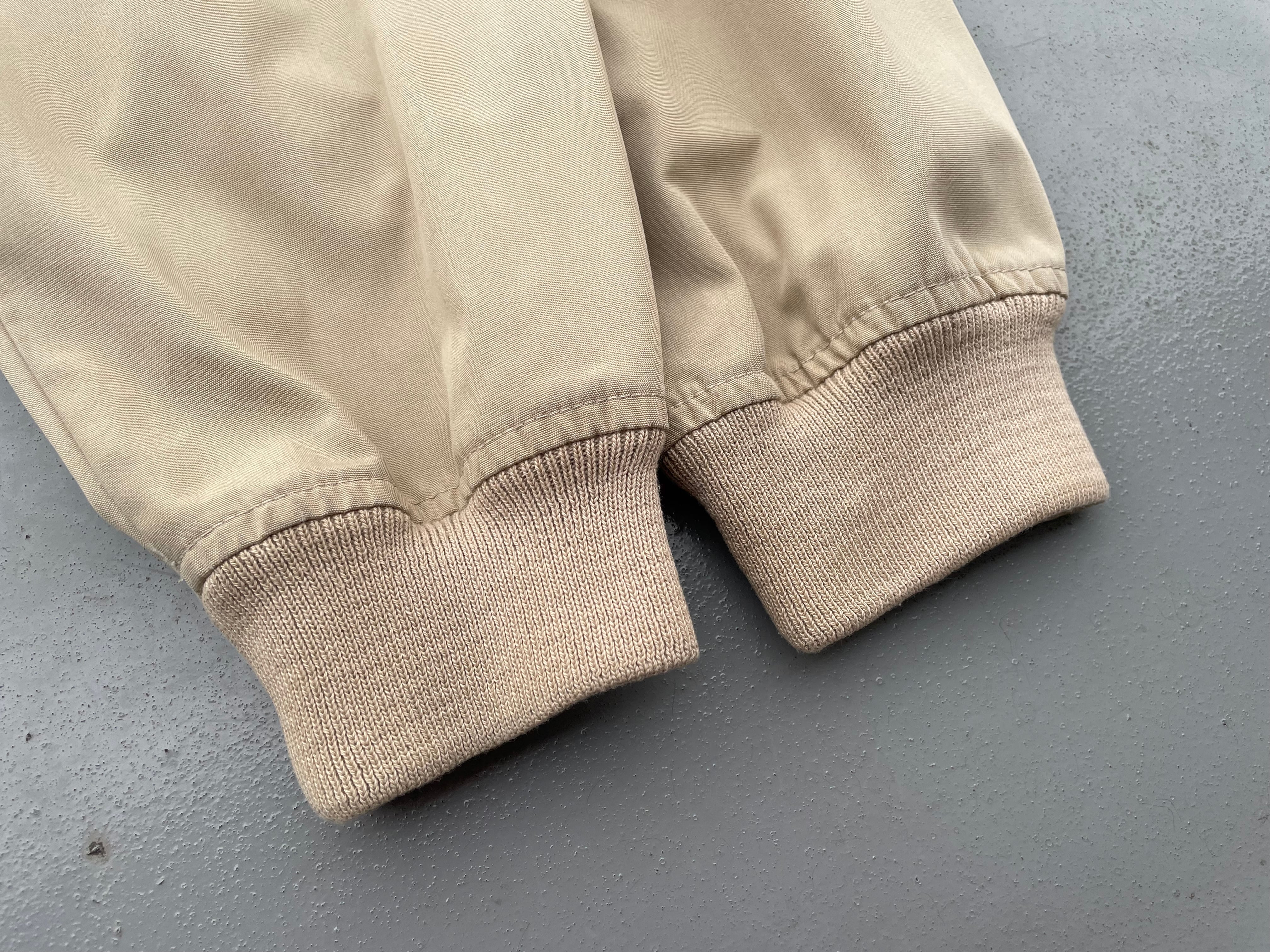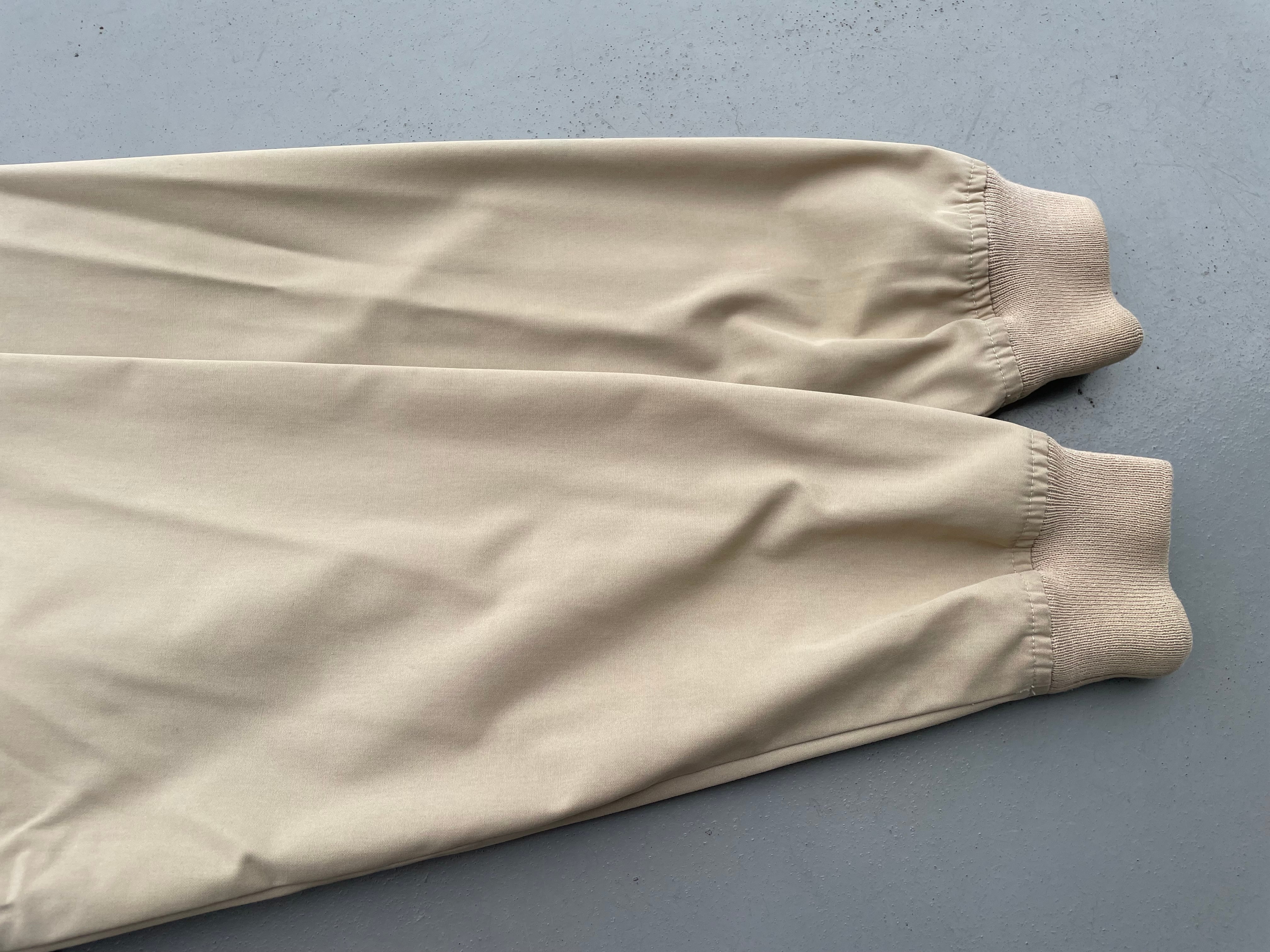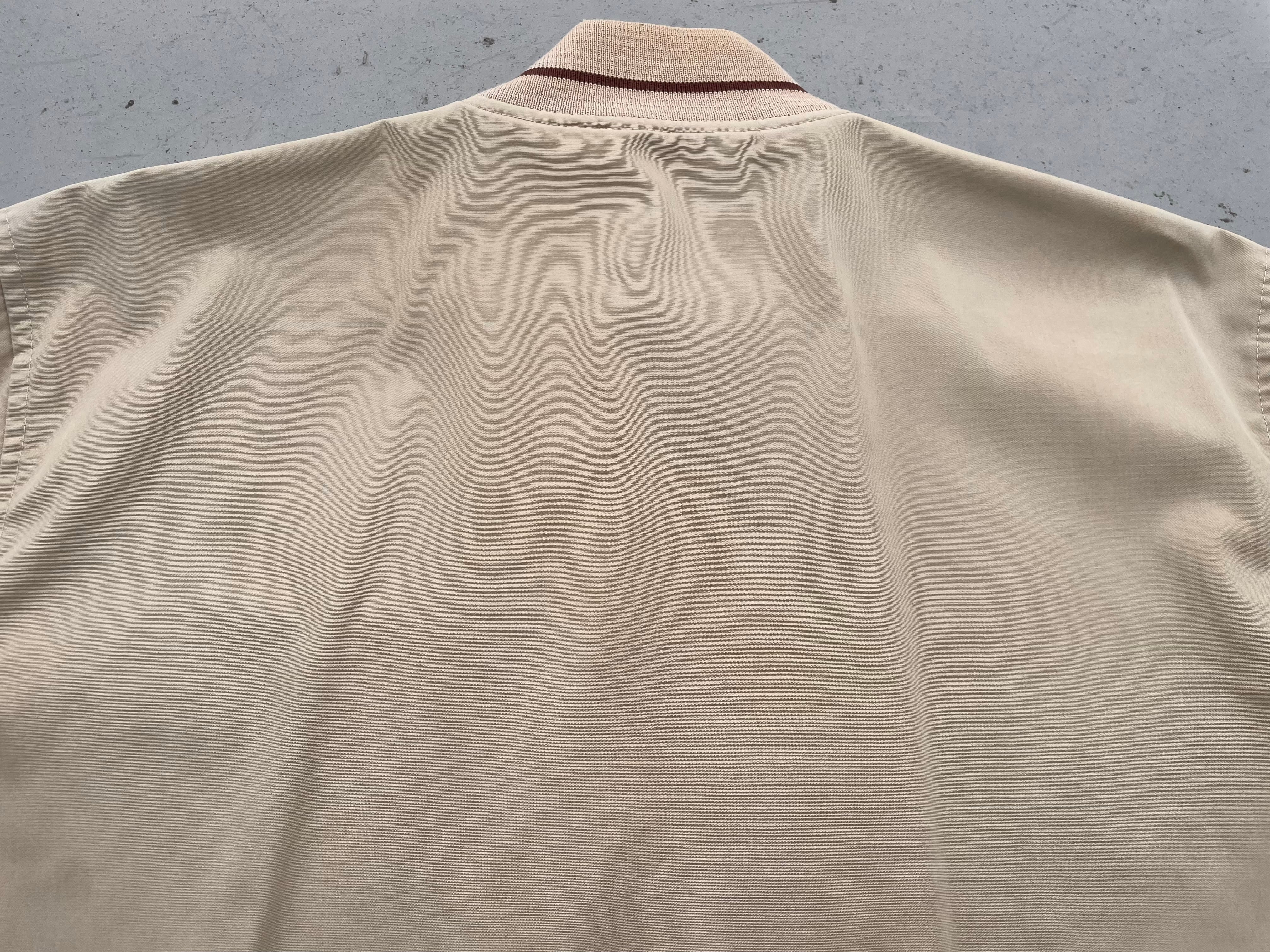 【商品詳細】シュプリームのダービージャケット。サイズはL。カラーはベージュ。90-00年代カナダ製。珍しいオールドシュプリームのダービージャケット。コットンポリ混のしっとりした肌触りの上品な仕上がり。裾ドローコード付なので縛って着用も可能です。身幅もたっぷりあるので着回し力高めの一着。