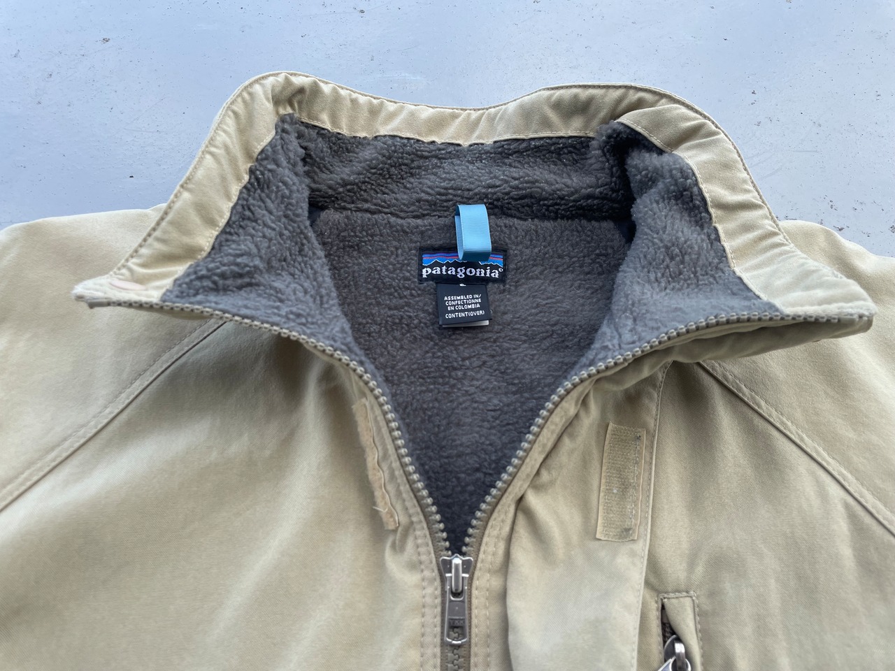 【商品詳細】パタゴニアのエスケープジャケット。サイズはL。カラーはカーキ。00年コロンビア製。人気上昇中のエスケープジャケット。シェルはナイロン、ライニングはフリース仕様で雨風寒さをしっかり防いでくれる優れ者。Lサイズの大きめの作り。この辺も出づらくなってきましたね。