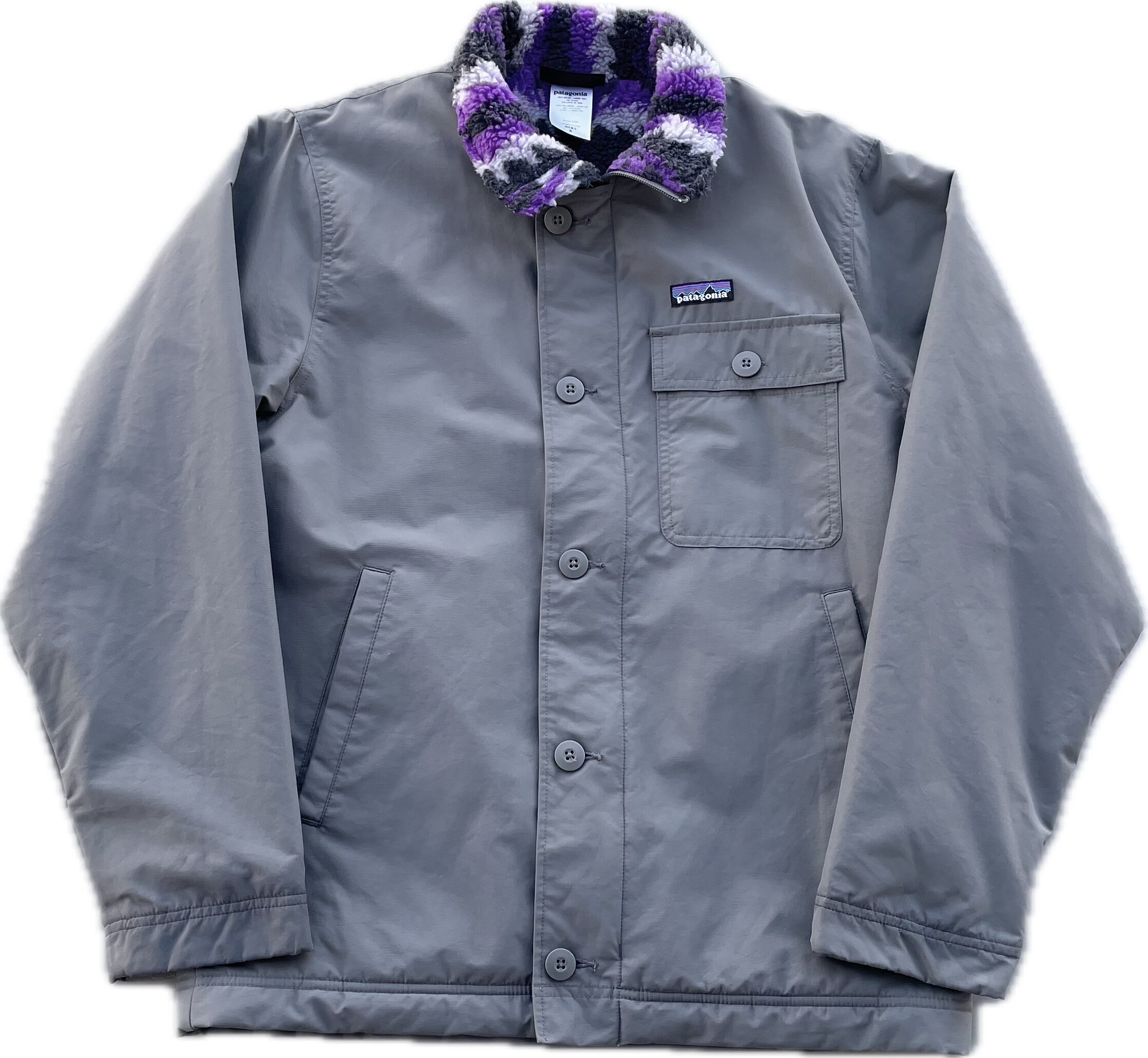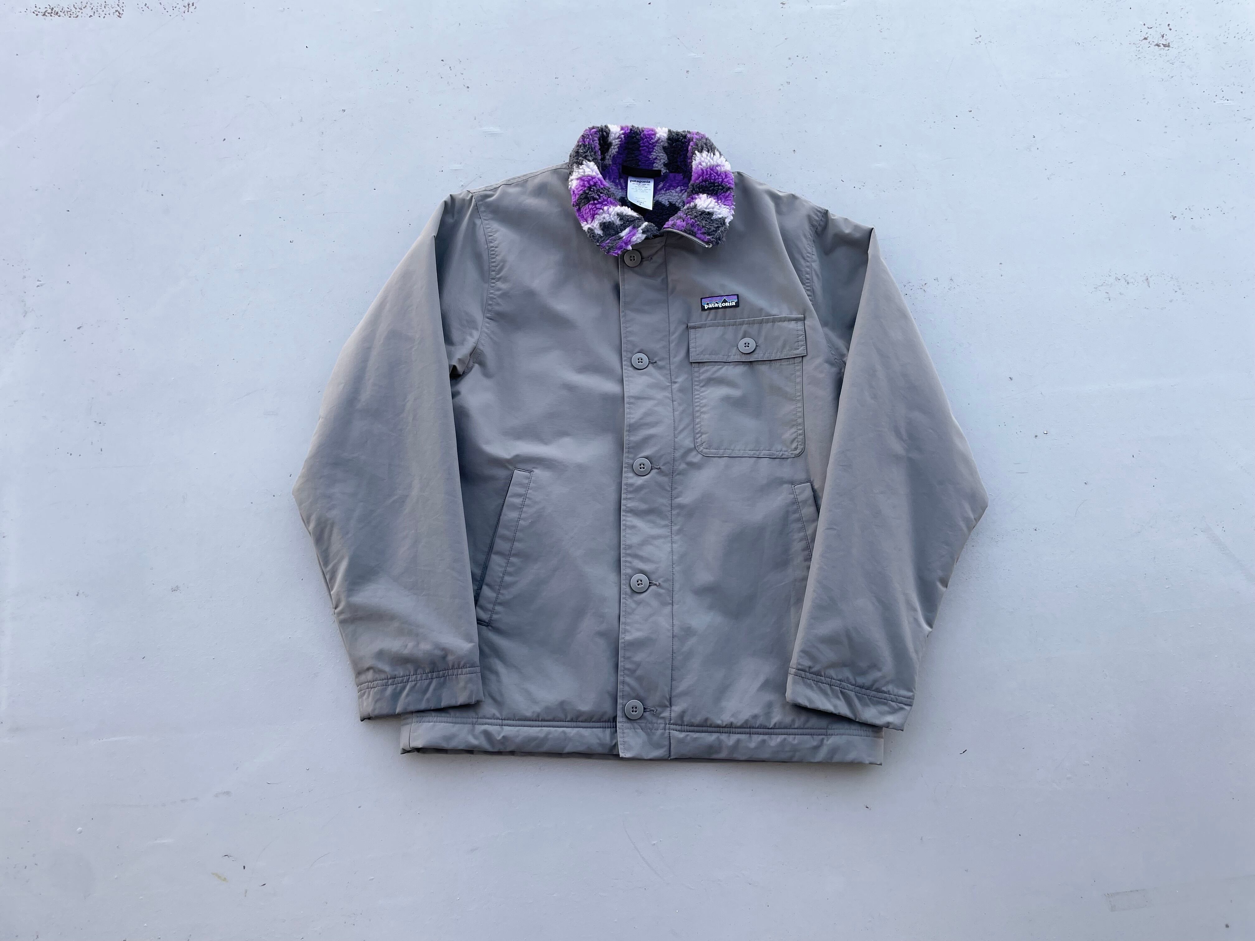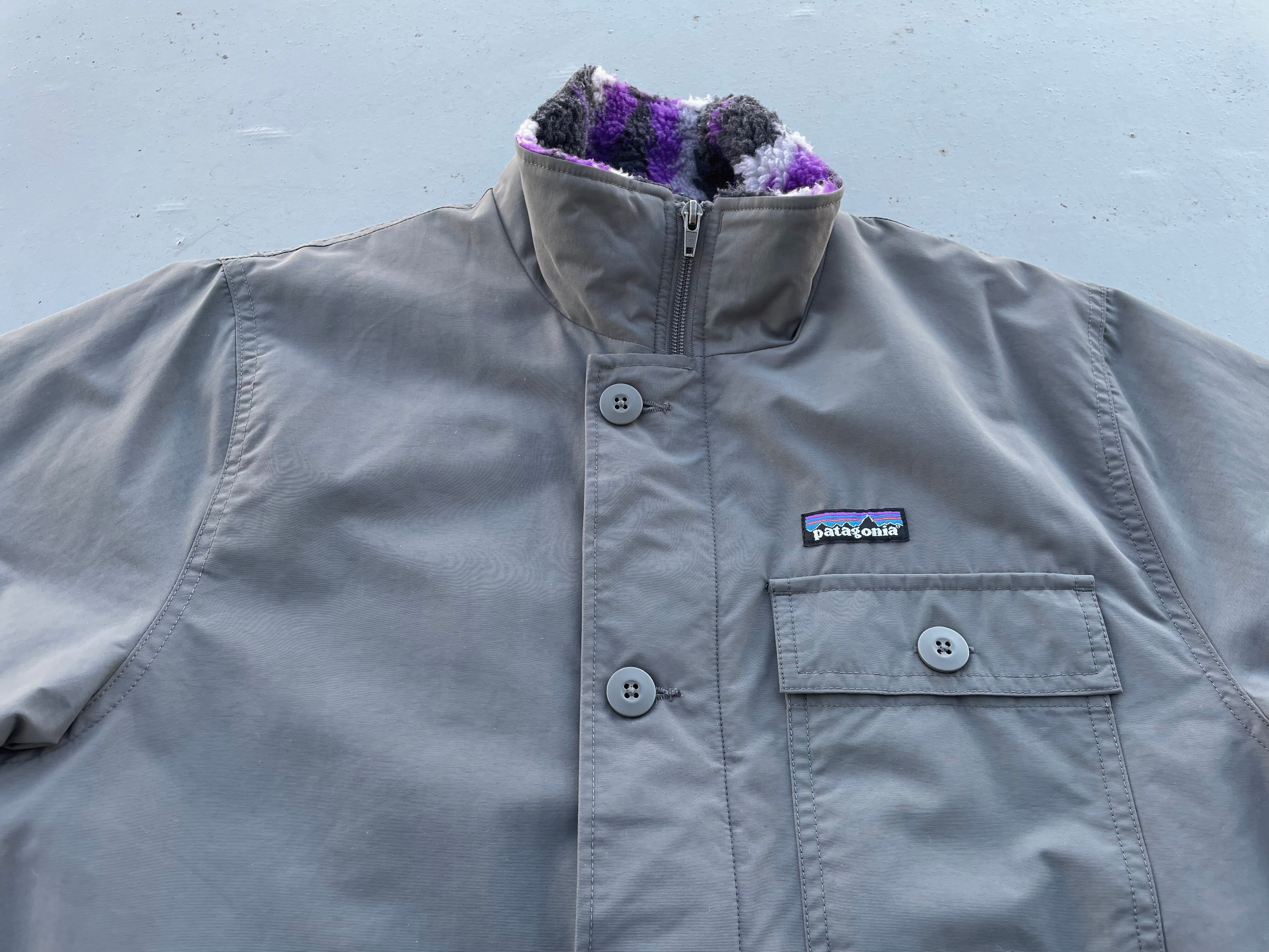 【商品詳細】パタゴニアのチミネアジャケット。サイズはS。カラーはグレー。10年中国製。コアなファンに人気なチミネアジャケット。フロントのカーゴボタンとインナーパイルが特徴的なデザイン。ハリのあるナイロンシェルにライニングはパイル仕様の一枚で暖かい優れ者。