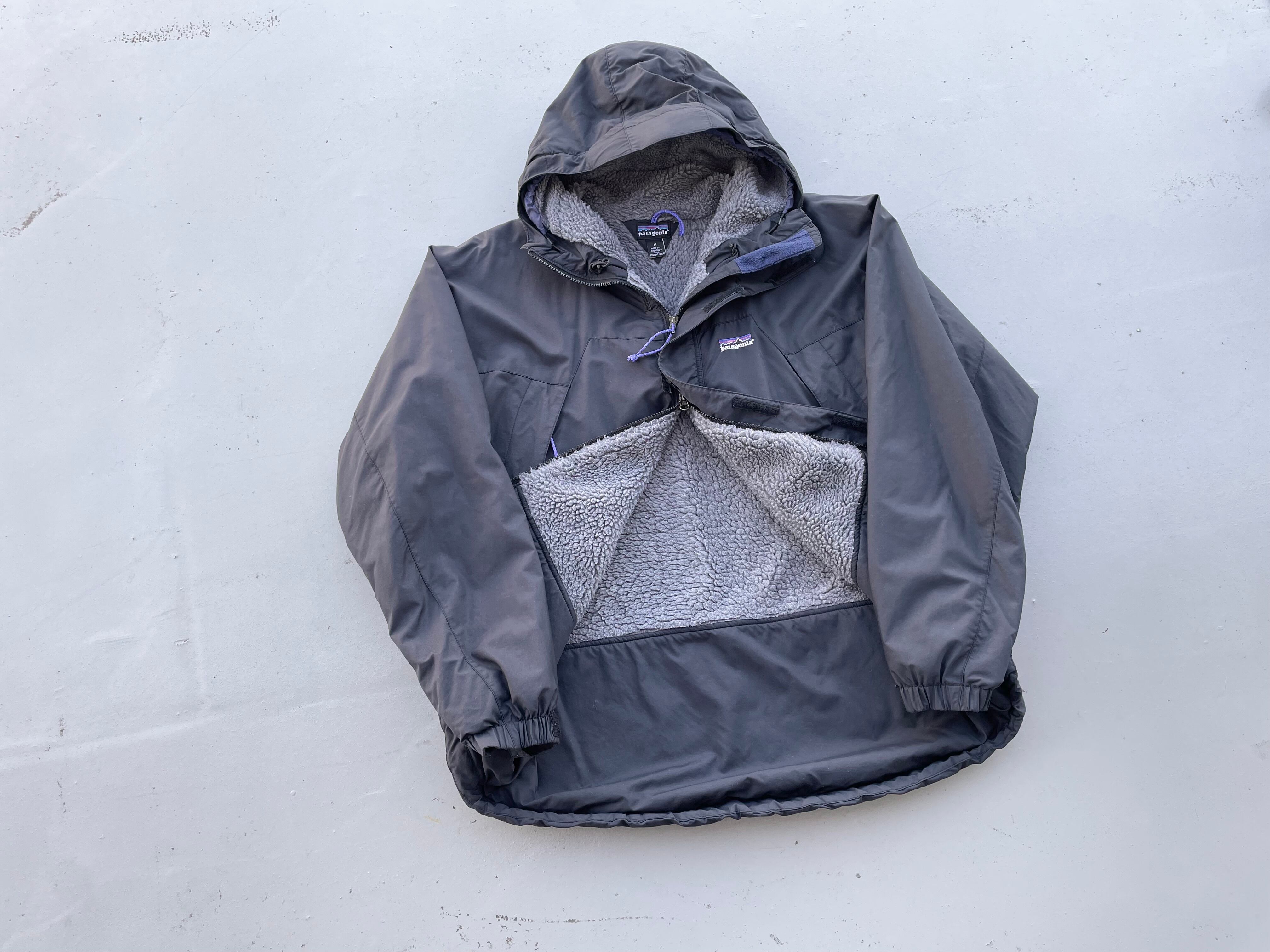 【商品詳細】パタゴニアのインファーノジャケット。サイズはM。カラーはブラック。01年中国製。人気のブラック物。ブラックカラーにありがちなドローコード部分等のアタリは見受けられず状態良好、調整器・ジッパープル等完備でしっかり条件揃った個体だと思います。