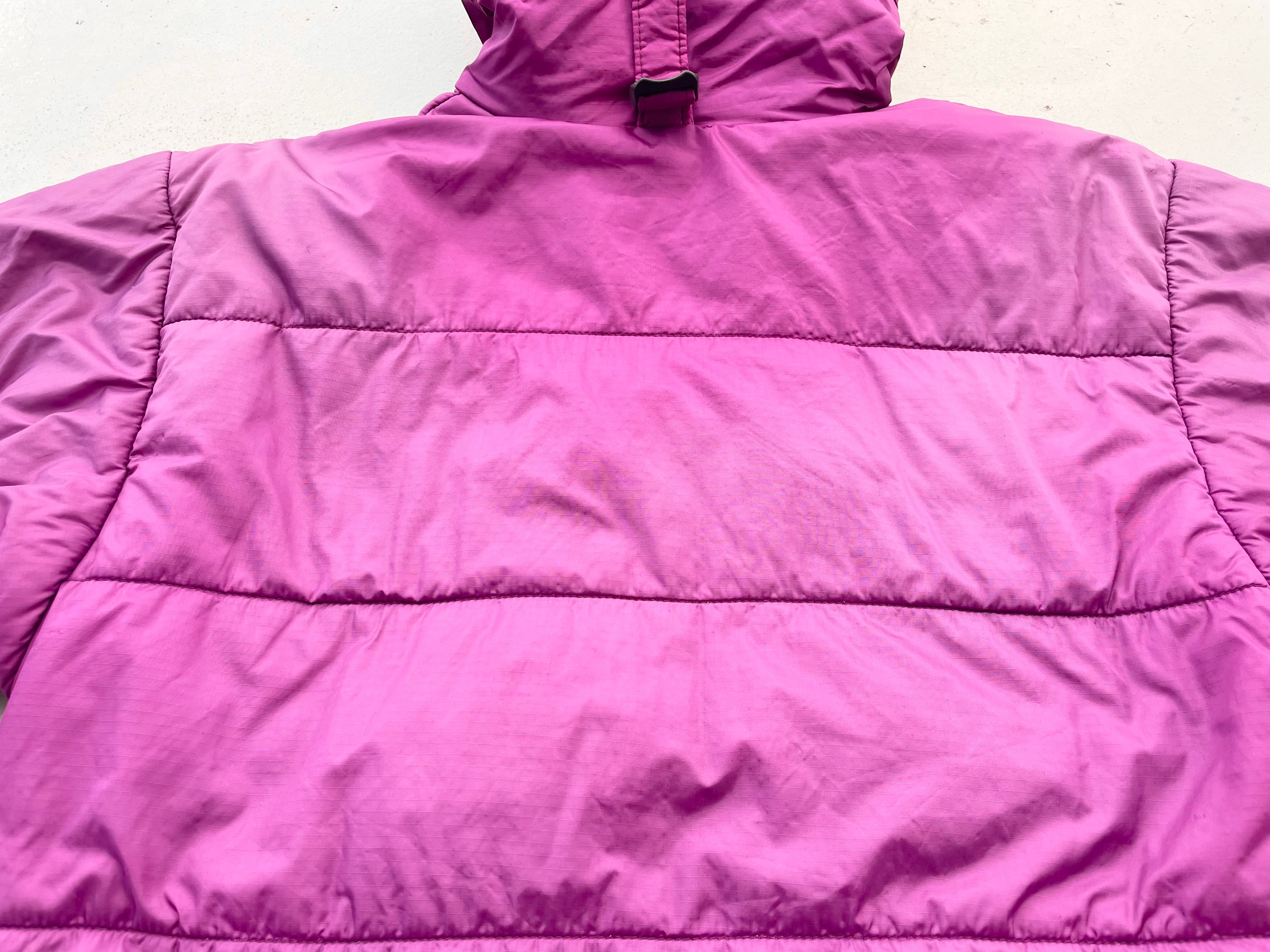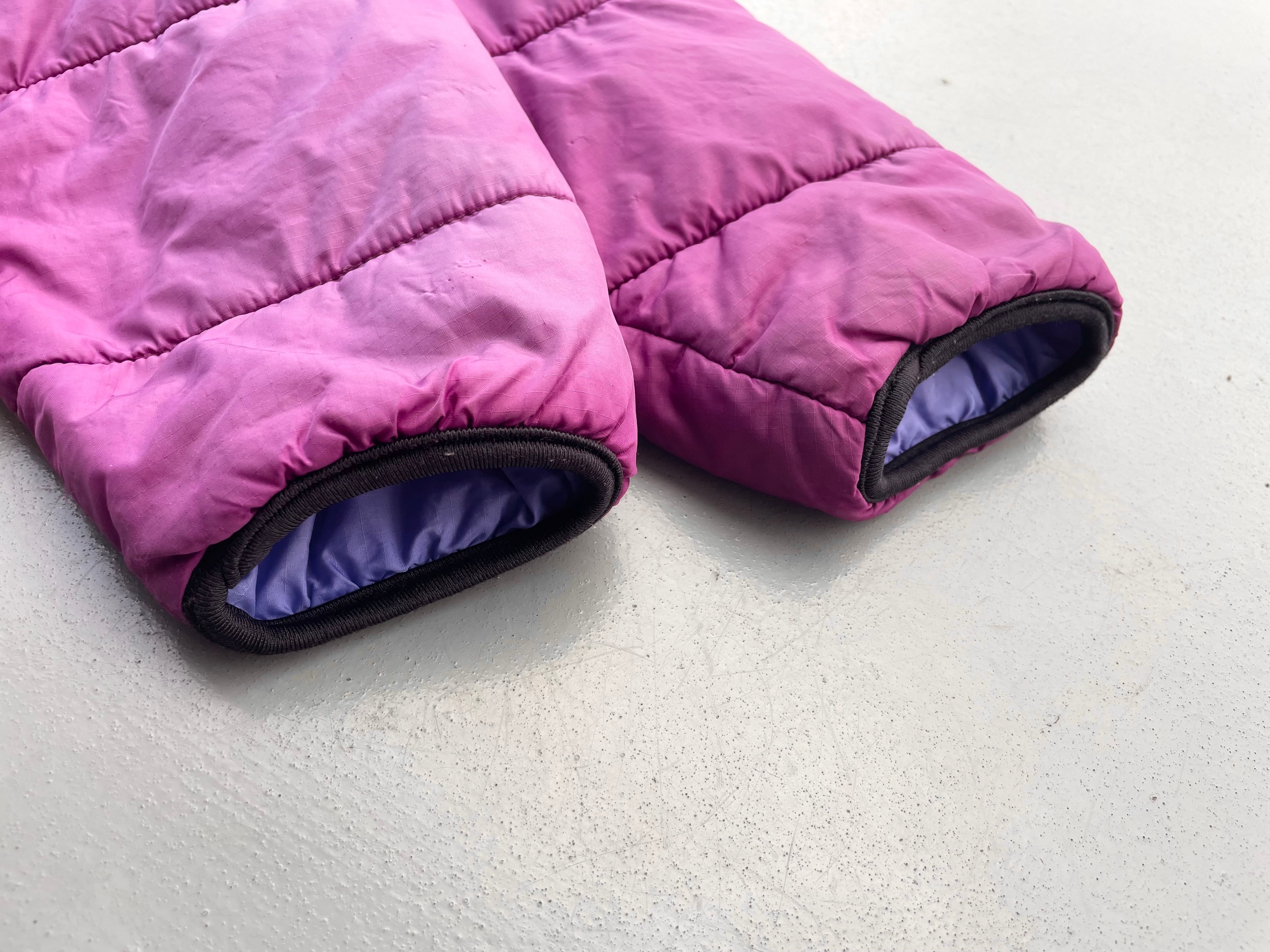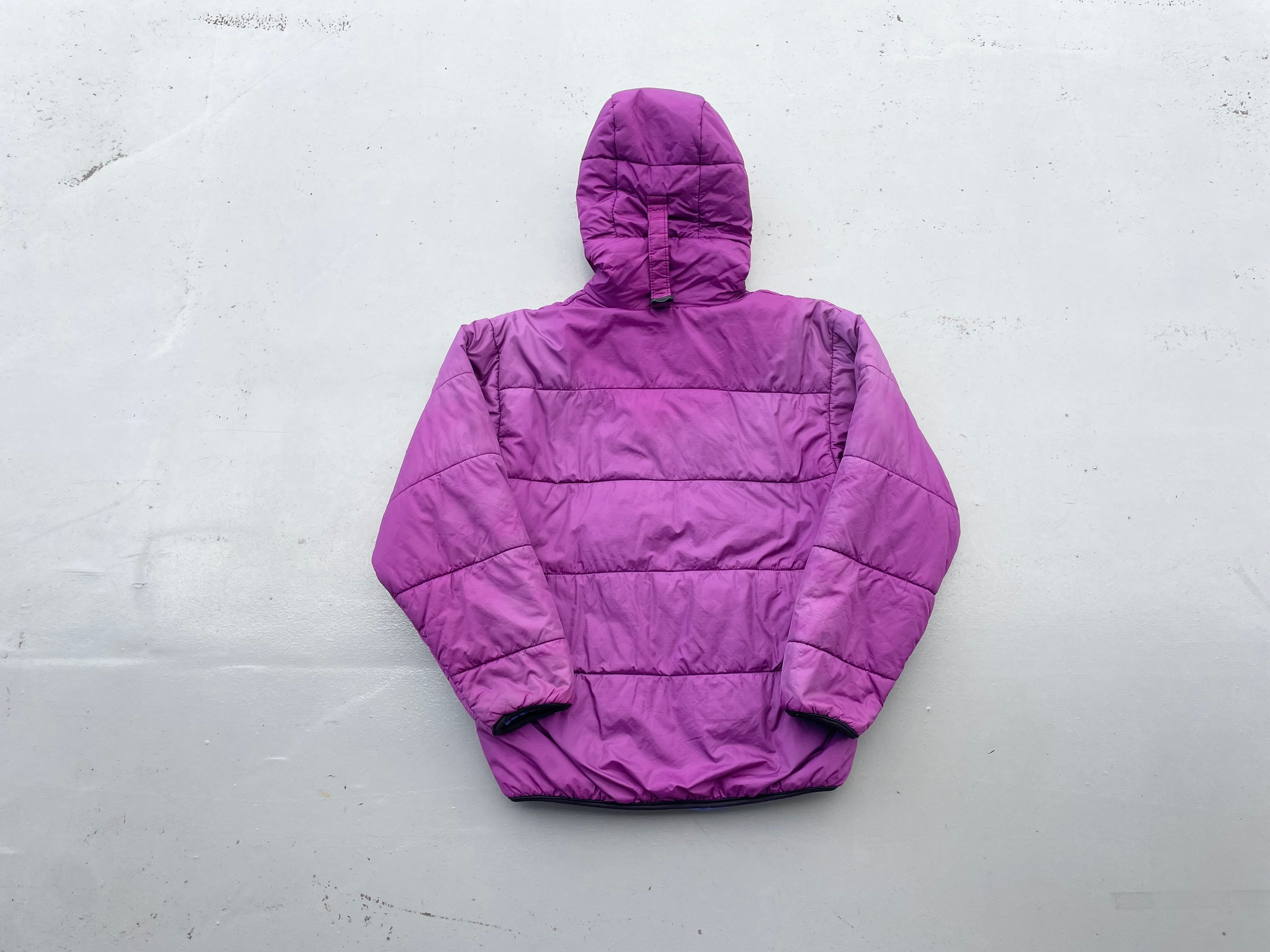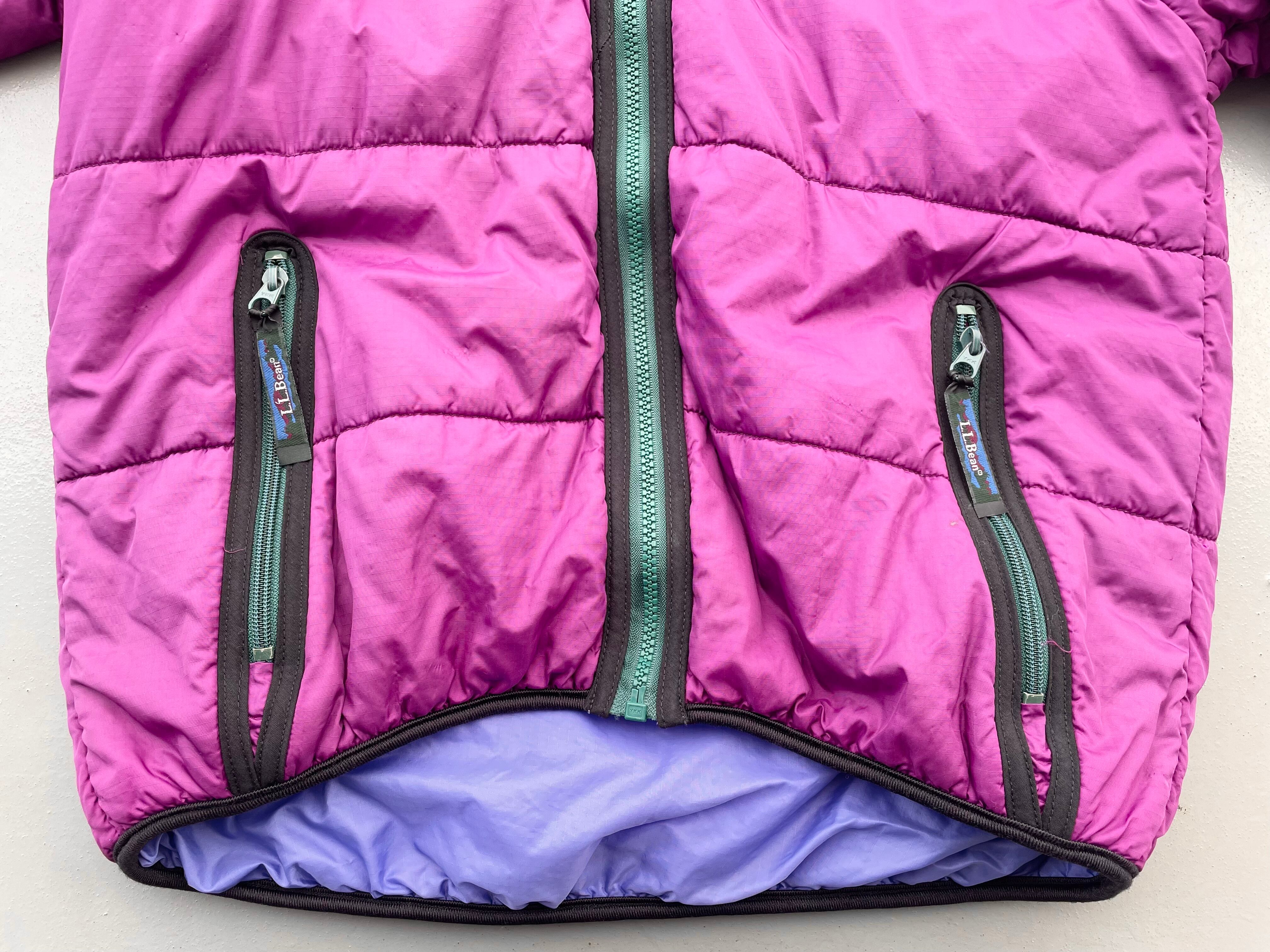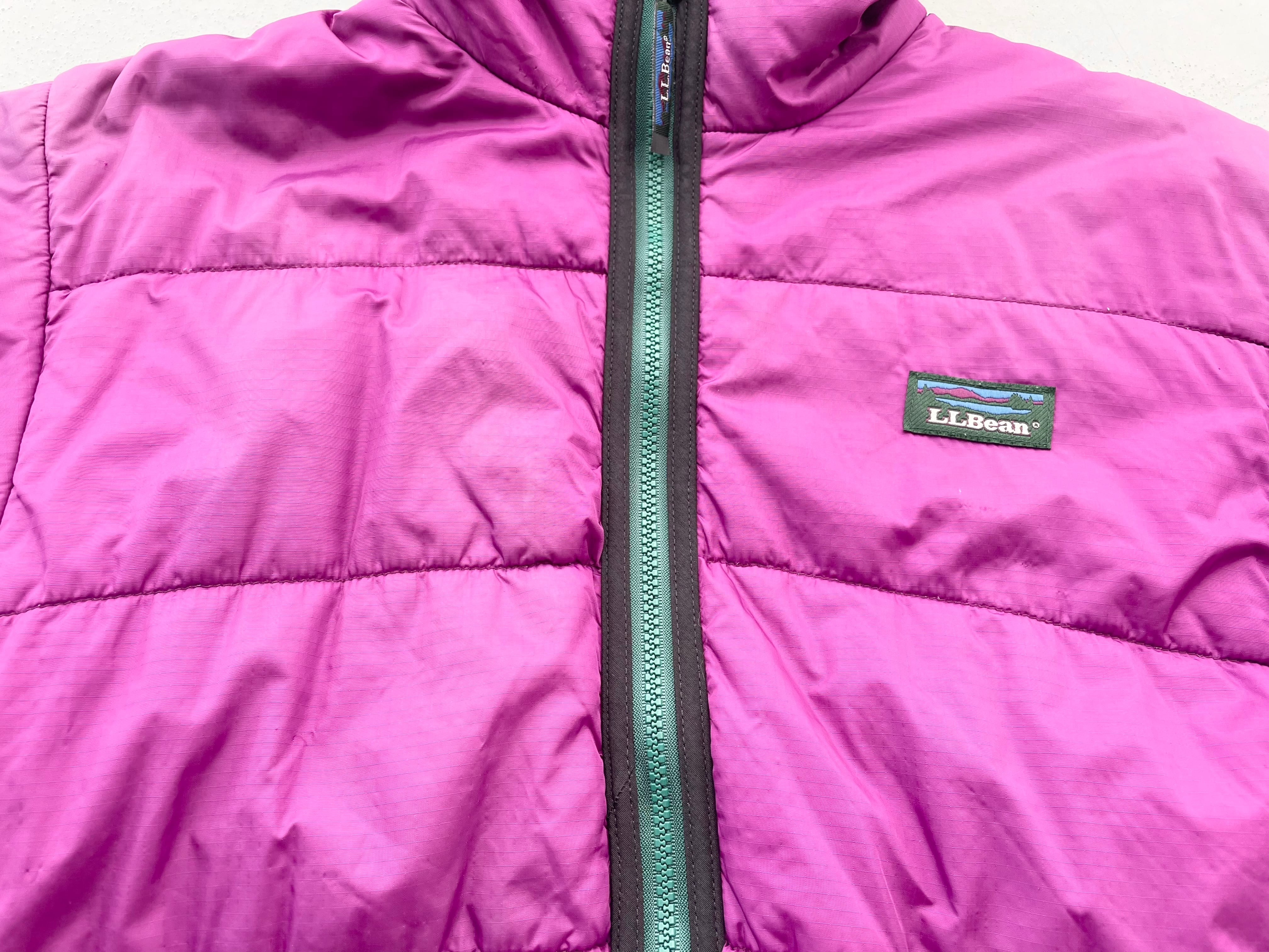 【商品詳細】エルエルビーンのプリマロフトフーディジャケット。サイズは実寸S-M程。カラーはパープル。80年代USA製。最近全く見なくなった本モデル。その中でもパープルカラーは特に見ない気がします。ファスナー右差しでレディース仕様ですが問題無くメンズが着れるディテールです。