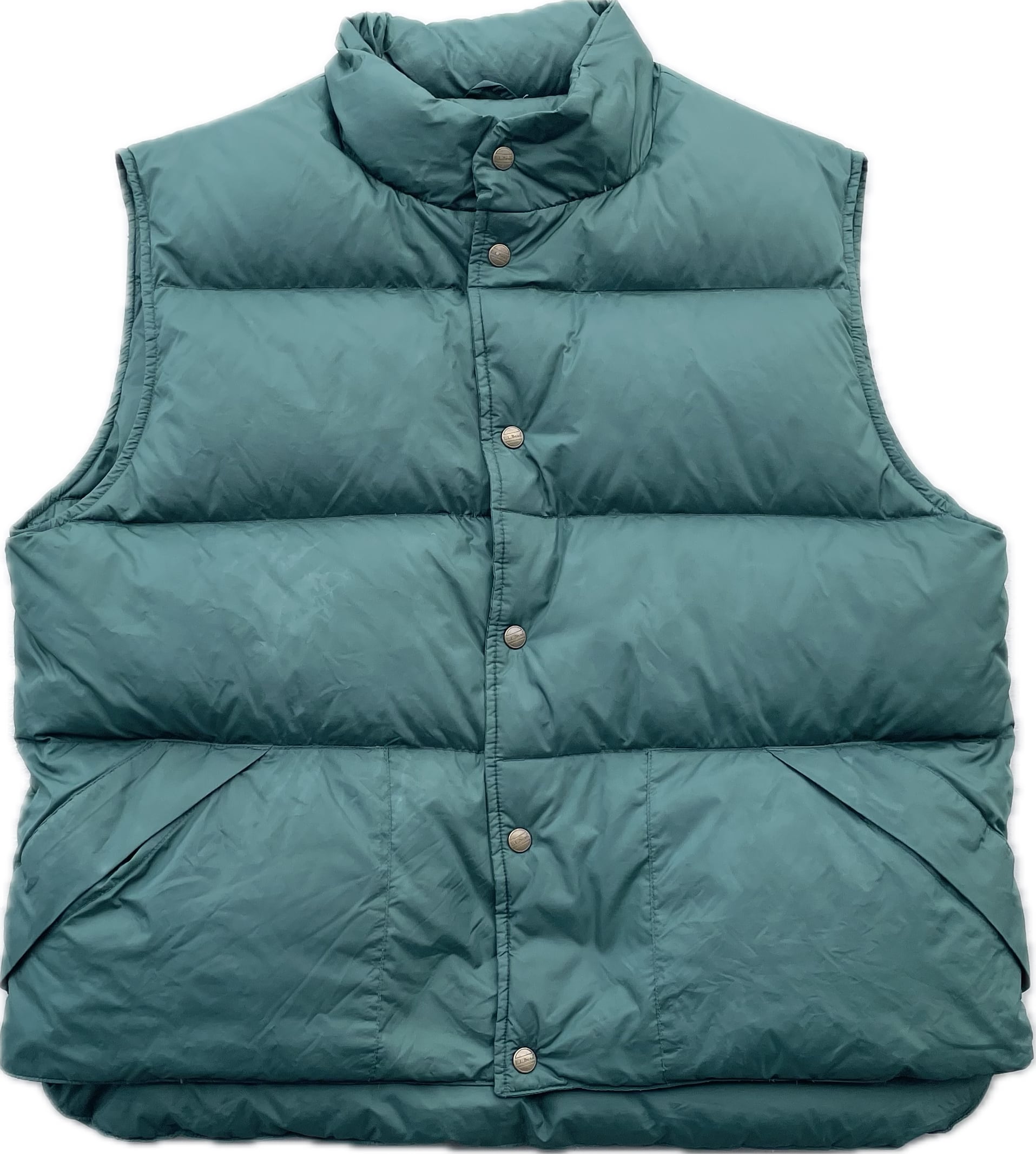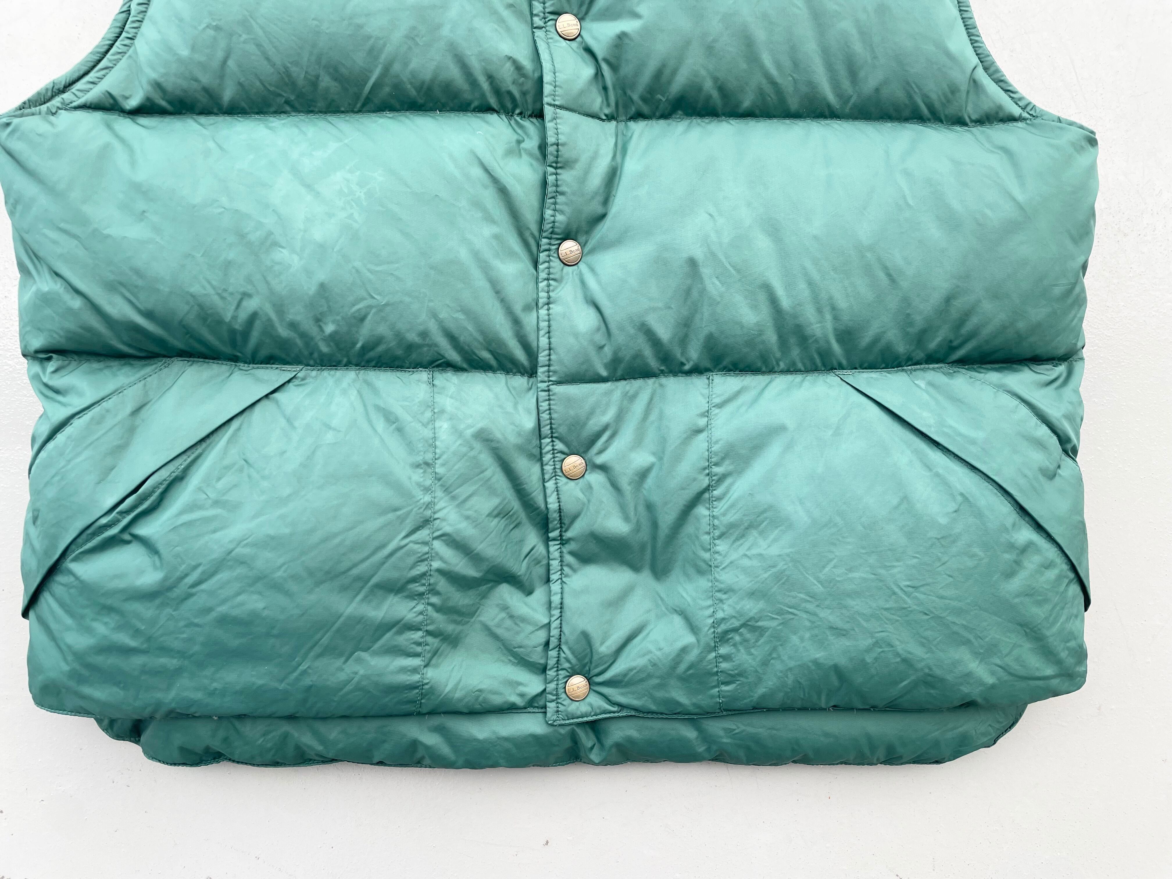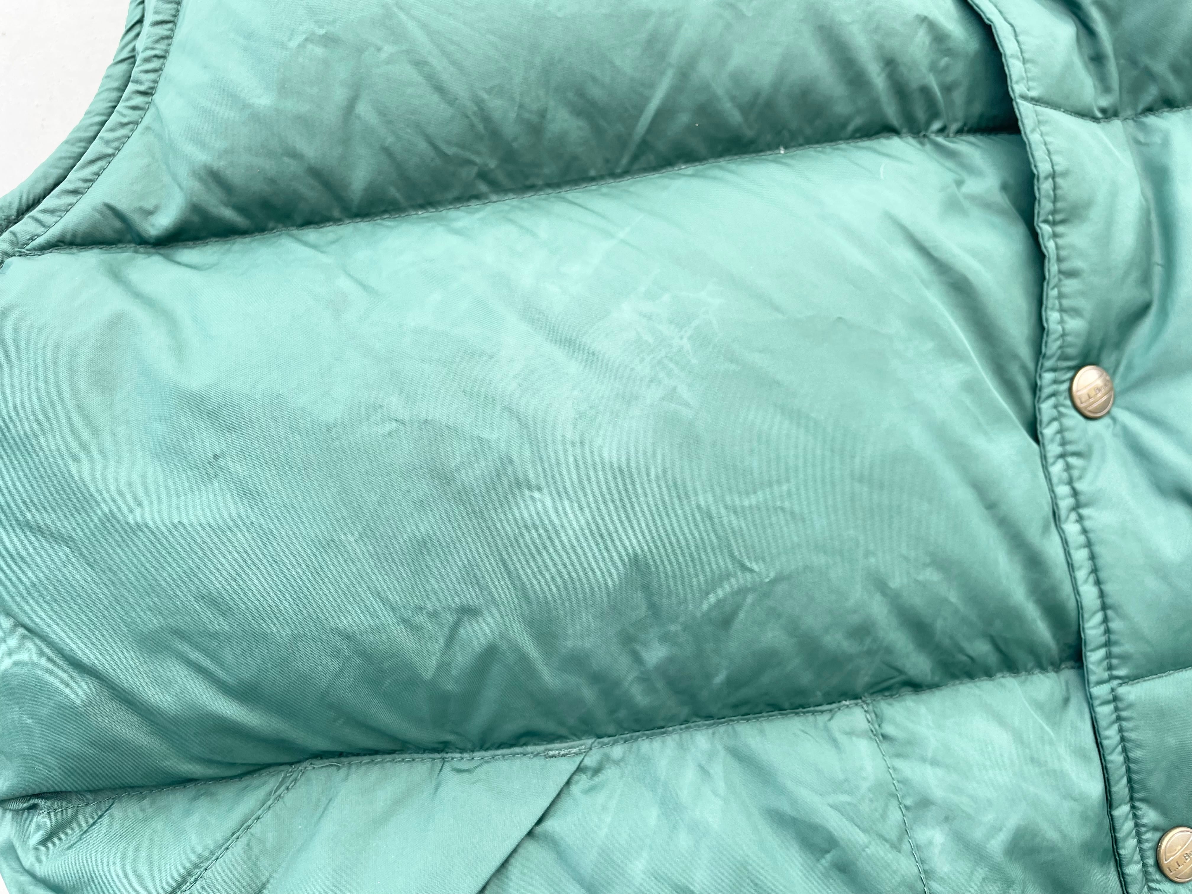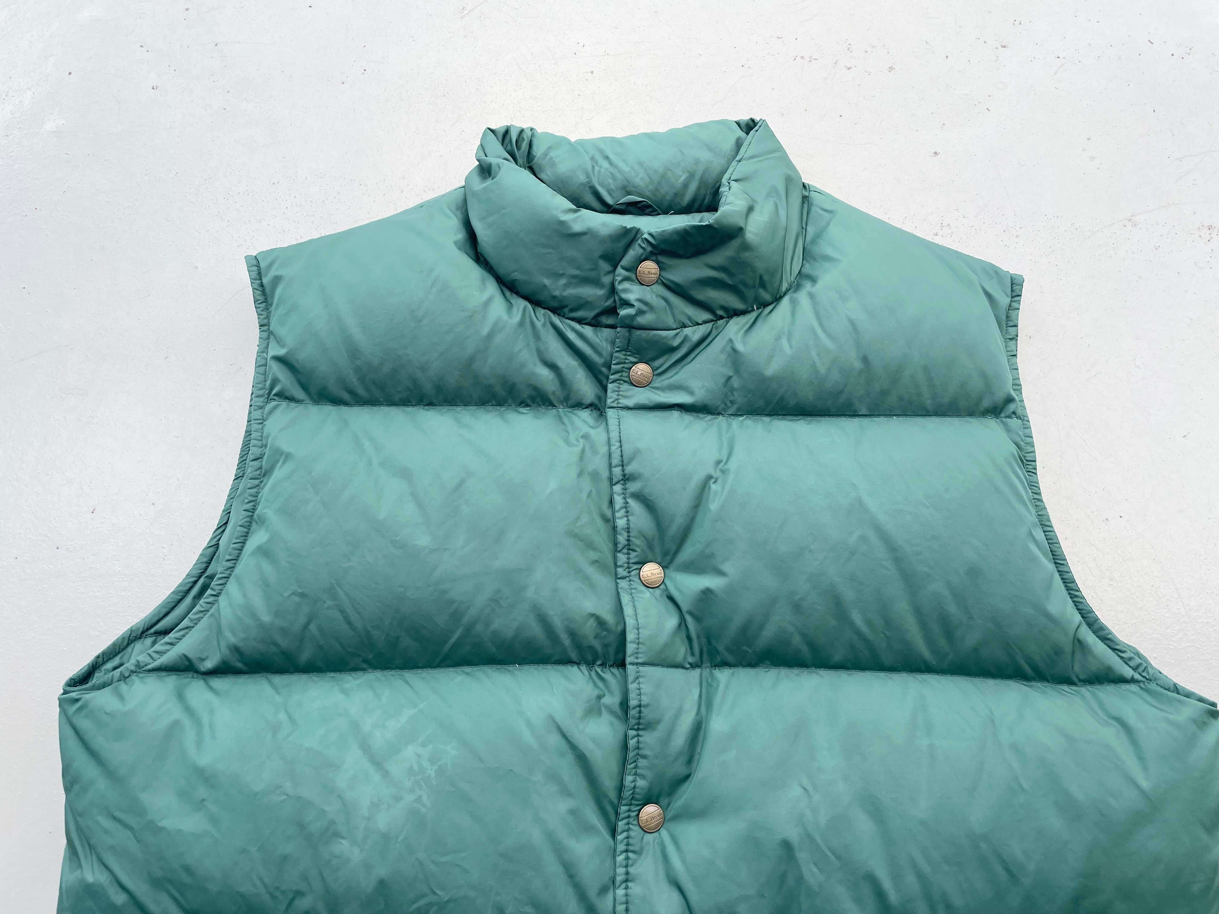 【商品詳細】エルエルビーンのダウンベスト。サイズはMENS L。カラーはグリーン。90年代バングラディシュ製。人気のダウンベスト物。エルエルビーンカラーなグリーン物。柔らかい気持ちの良い触り心地で年代物ですがシェル自体のコンディションは良さそうです。薄く白汚れございますがあまり目立たないと思います。
