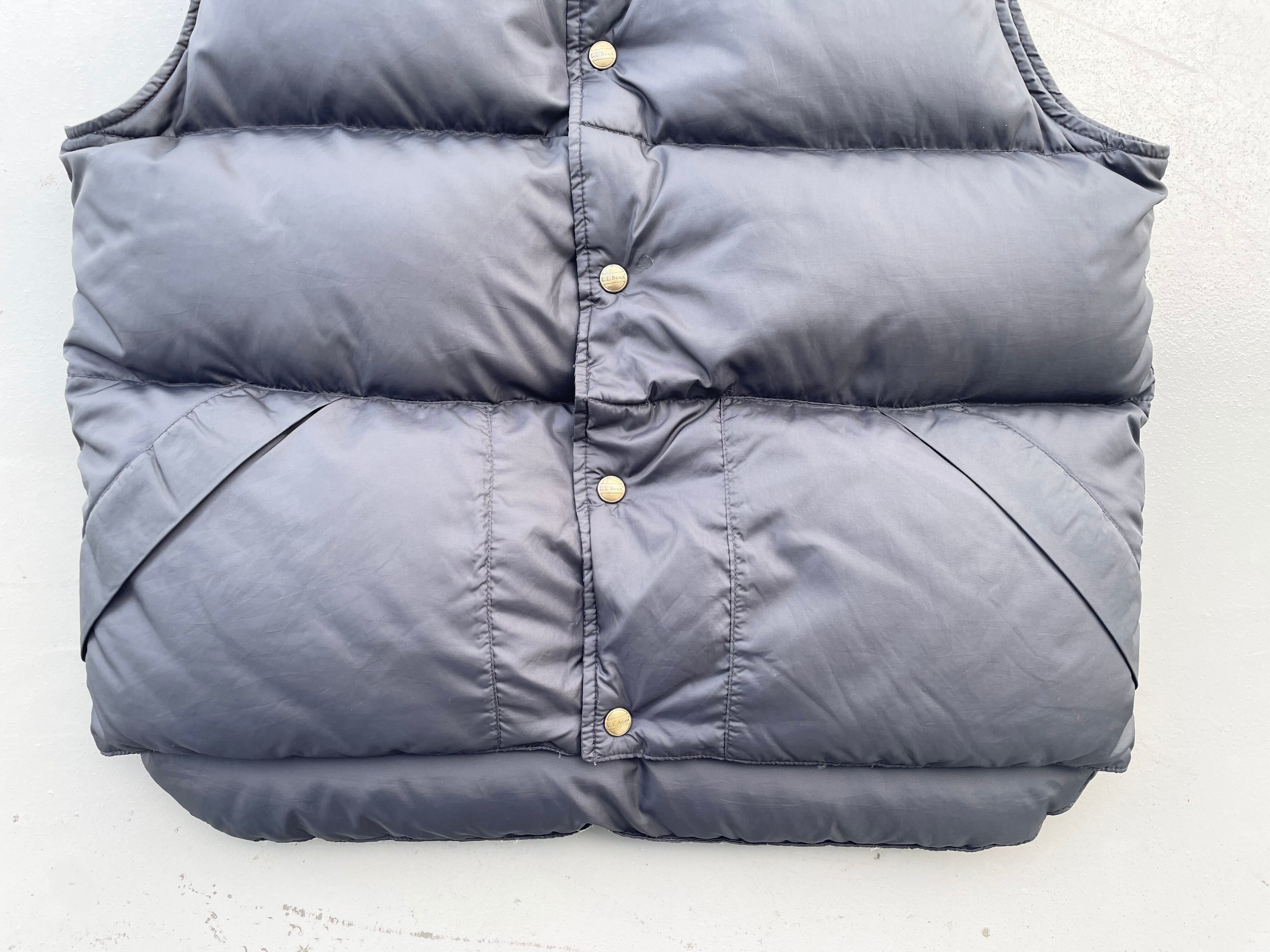 【商品詳細】エルエルビーンのダウンベスト。サイズは実寸MENS L-XL程。カラーはブラック。90年代製。人気のダウンベスト物。特に人気色のブラックカラー。柔らかい気持ちの良い触り心地で年代物ですがコンディションも良さそうです。フロントにお直しございますが全然目立たないです。