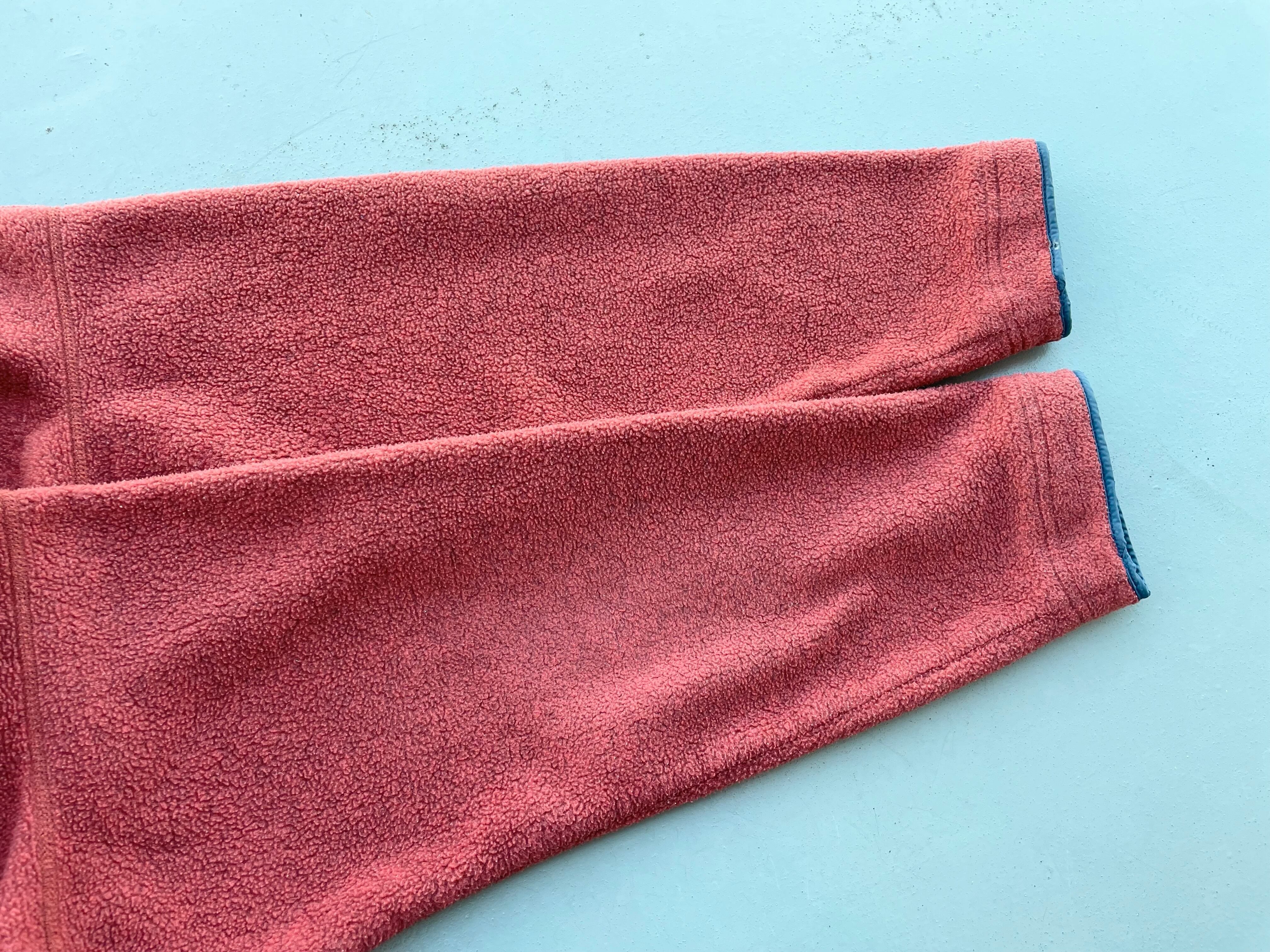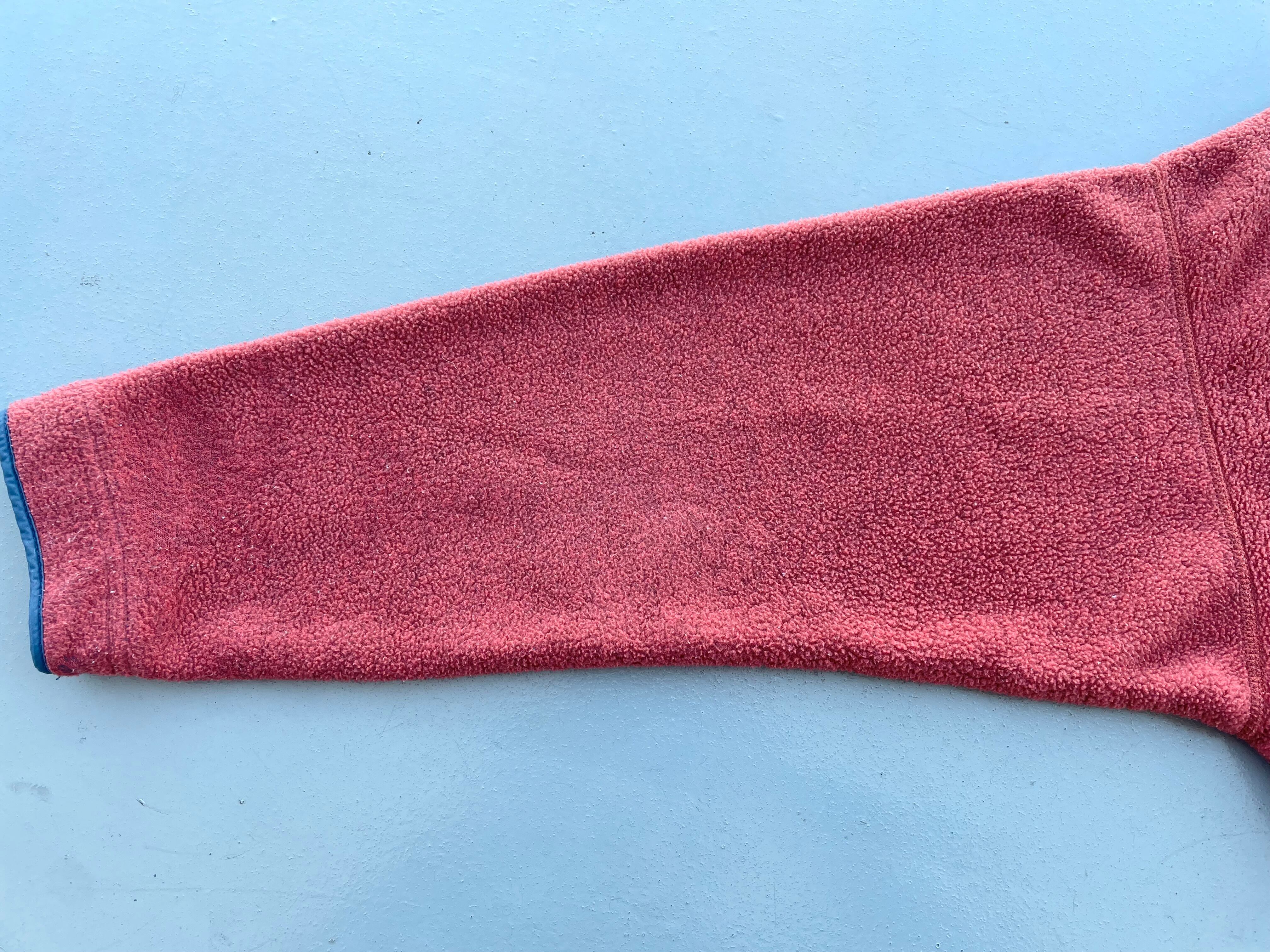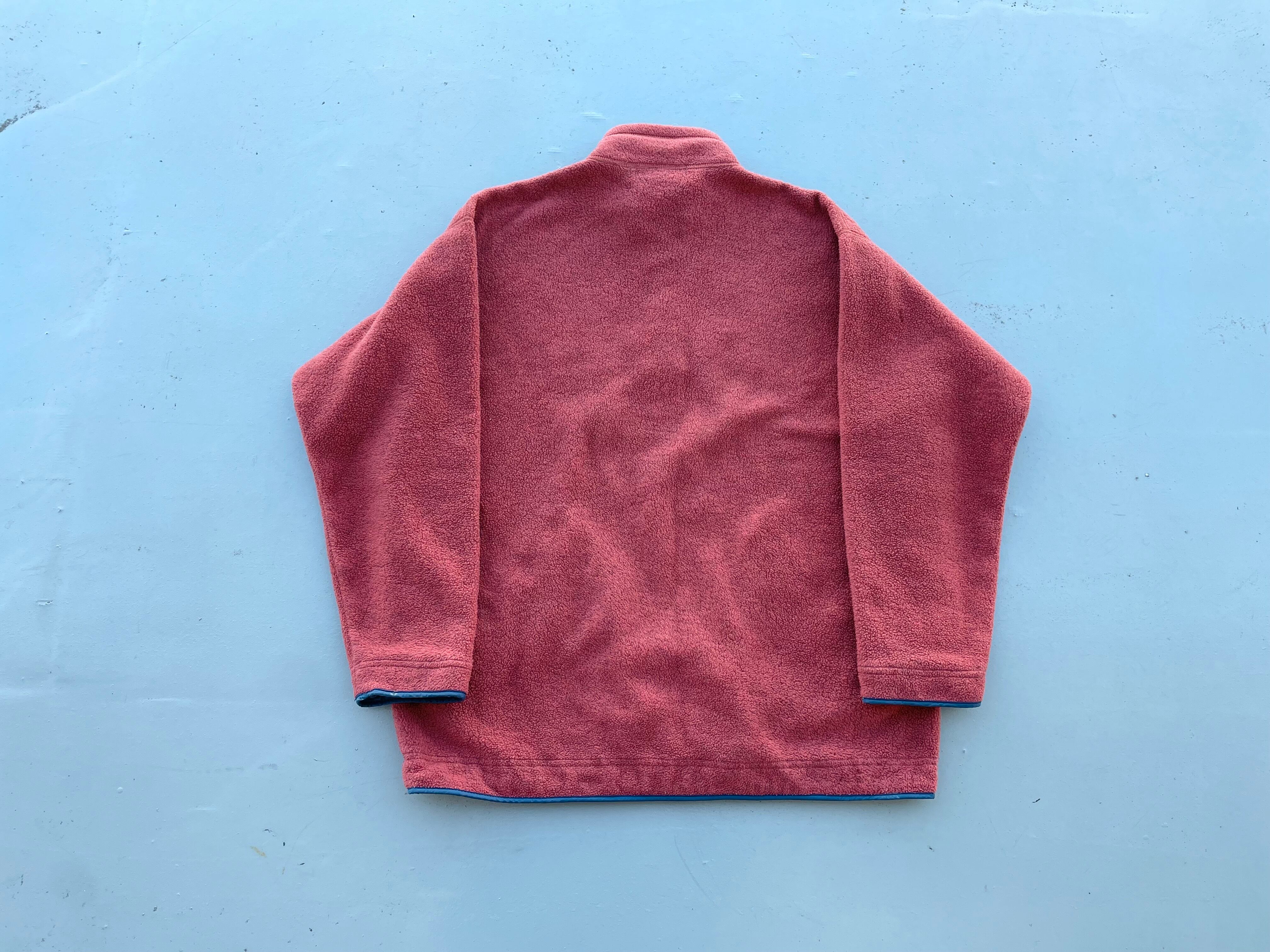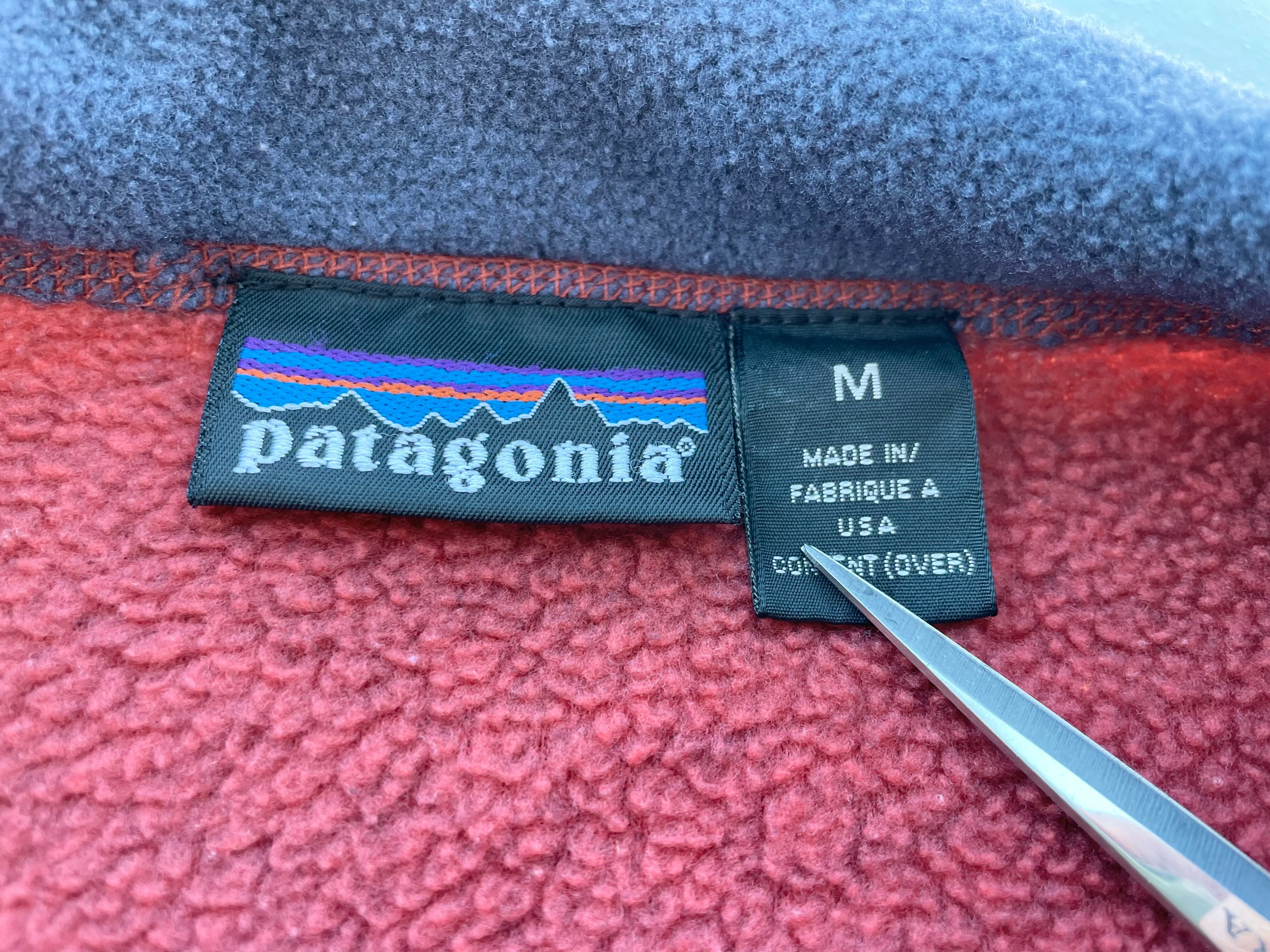 【商品詳細】パタゴニアのライトウェイトシンチラビッグT。サイズはM。カラーはオレンジにレッドを混ぜたような色。95年USA製。昨年頃から人気の高いモデル。スナップTに比べて大きめな作りとハの字ポケットが特徴的なディテールの一着。オレンジベースにレッドカラーな混ざったパタゴニアらしいカラー◎フリース抜けや焦げ等ございますがあまり気にならないと思います。