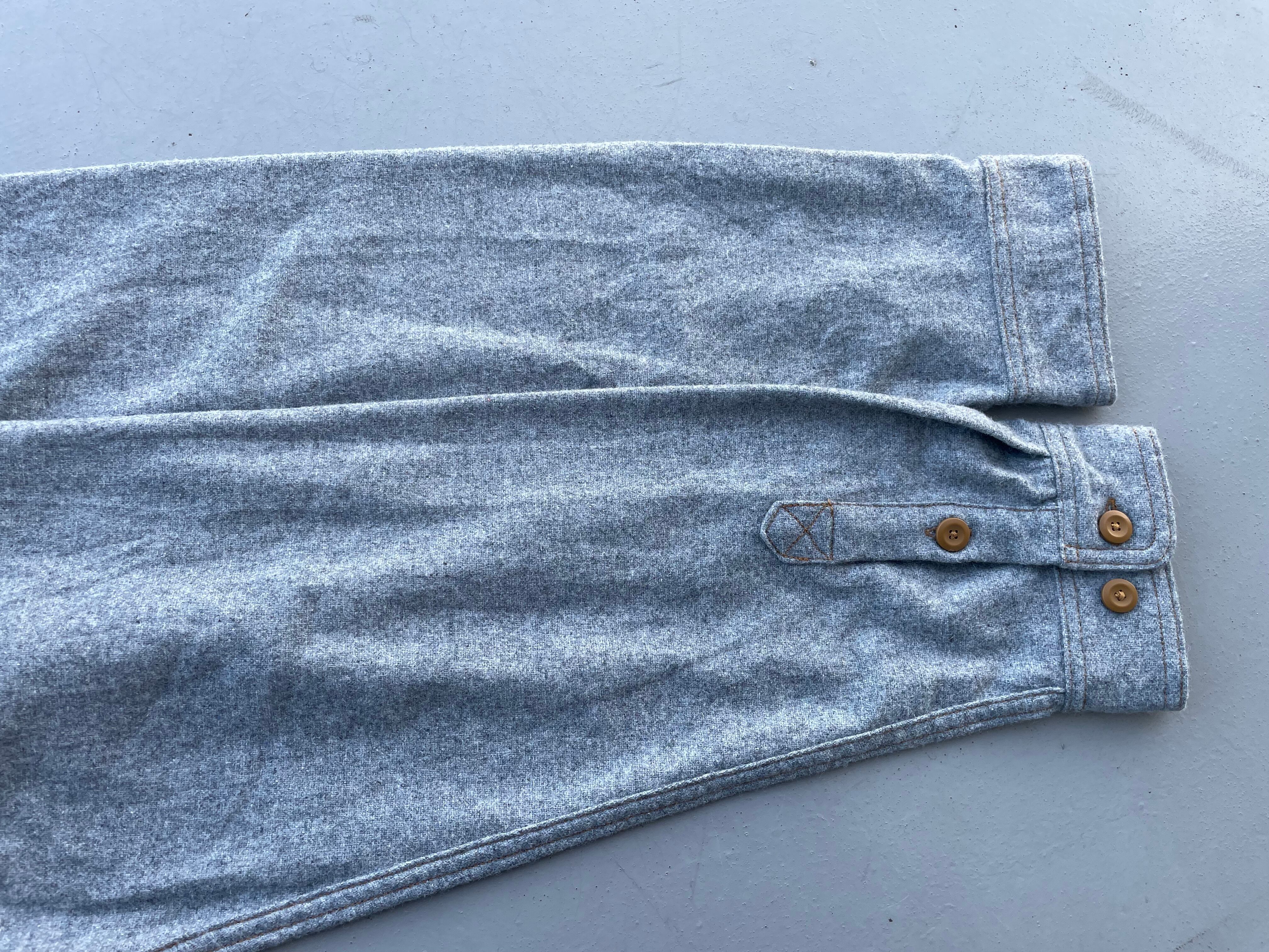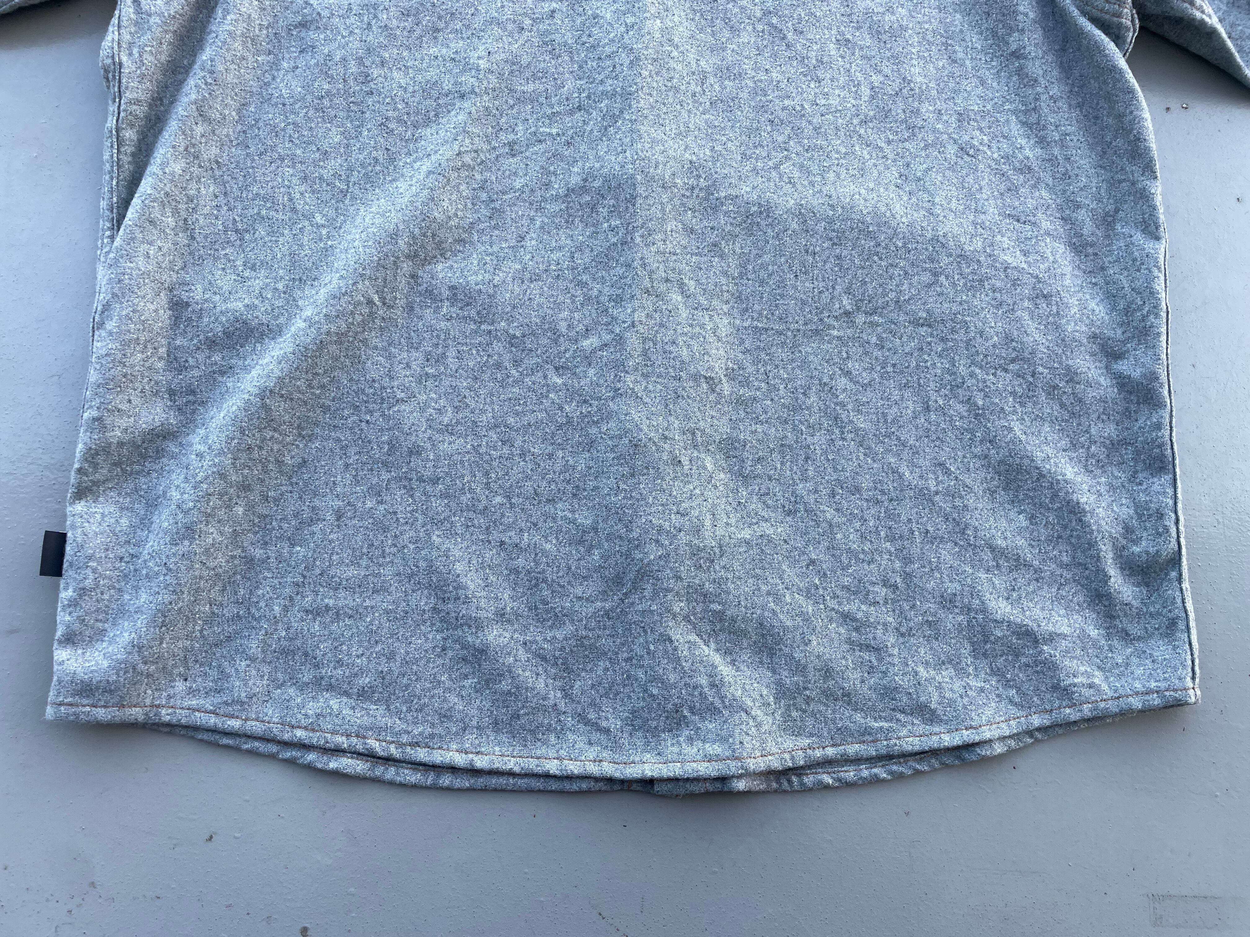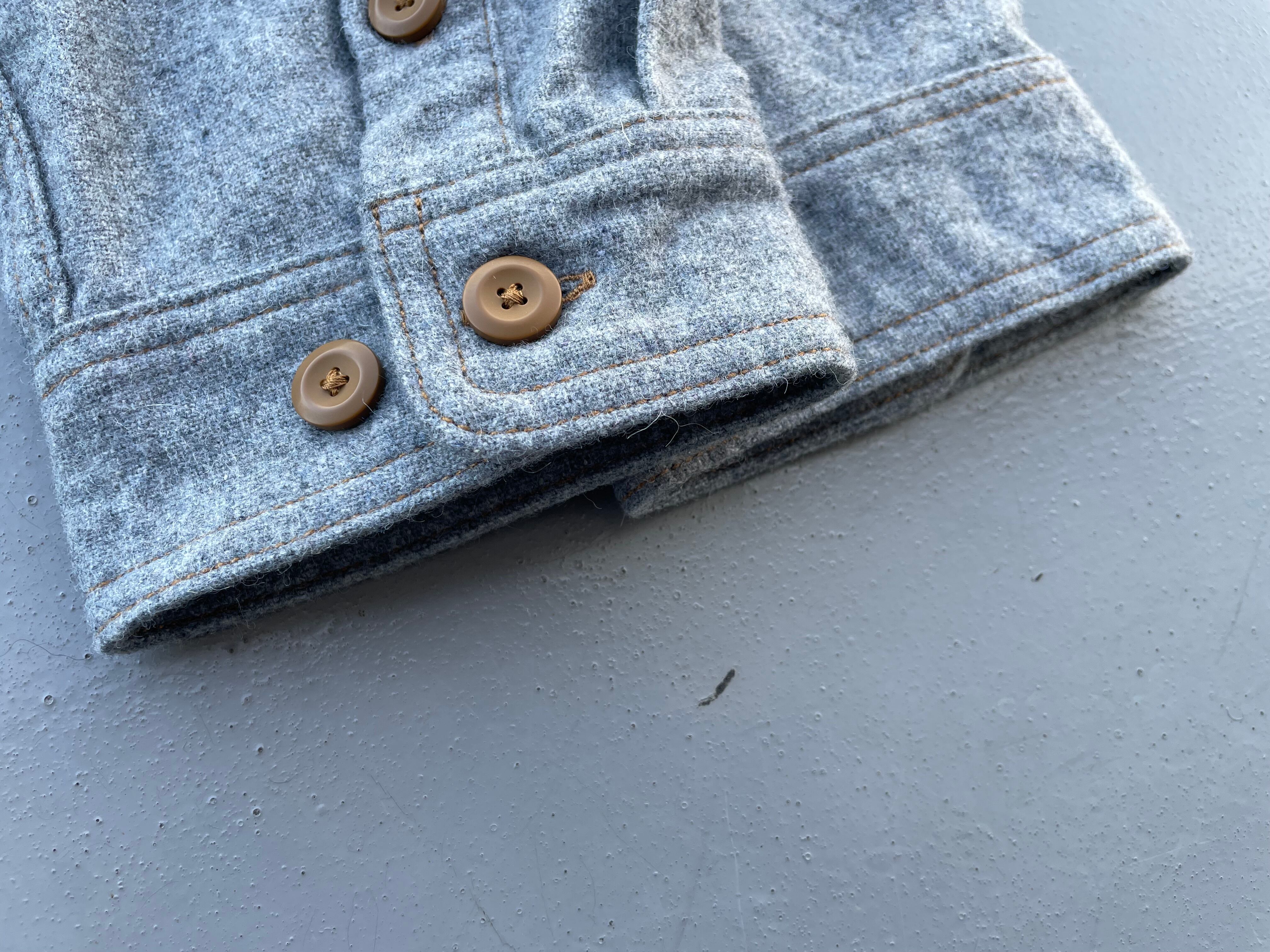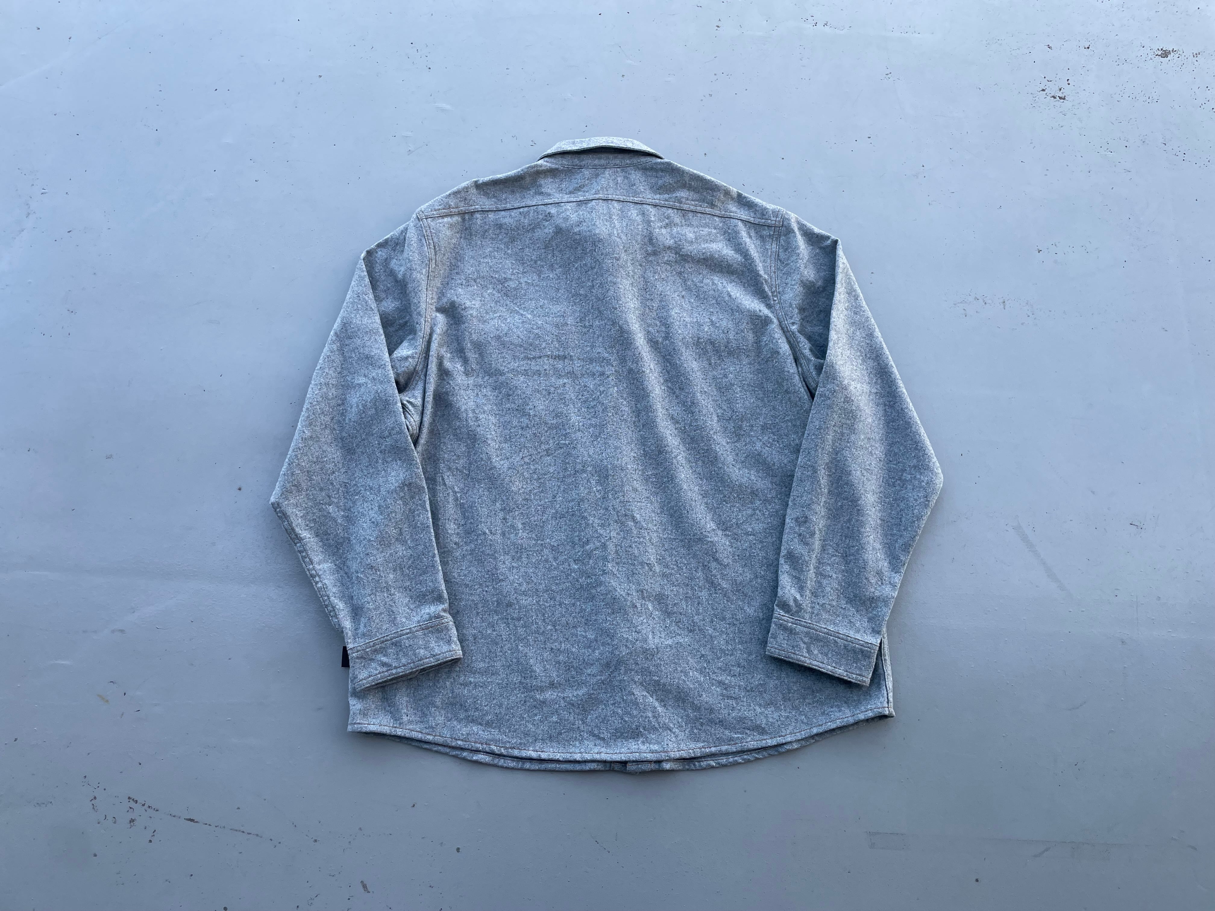 【商品詳細】パタゴニアのウールシャツ。サイズはXXL。カラーはグレー。16年スリランカ製。パタゴニアでは珍しいウール&ポリエステル混紡のシャツ。グレーカラーのボディにキャラメルカラーのステッチとボタンが洒落てます。大きめサイズで身幅もしっかりありジャケット感覚でご着用いただけます。着丈長過ぎないのでバランスよく着用出来そうです。