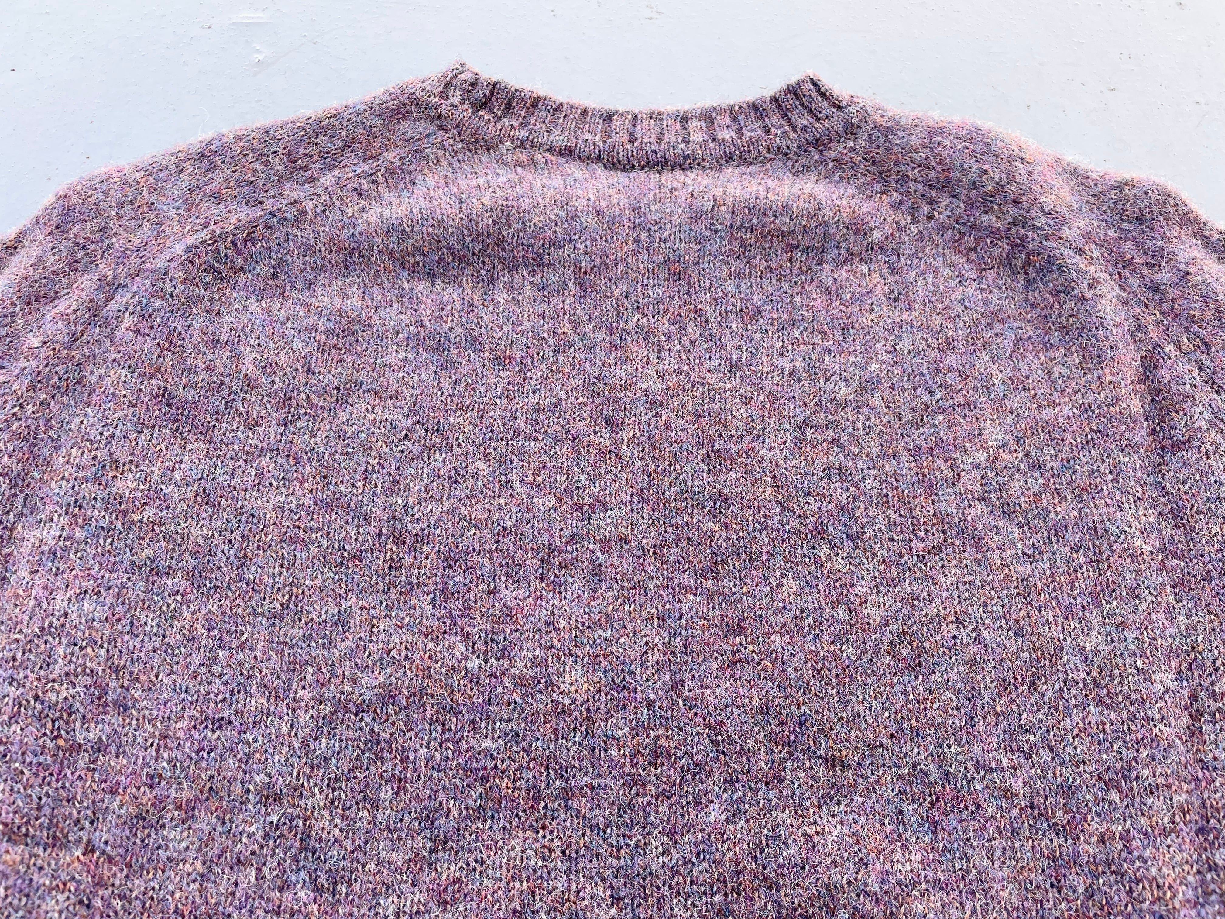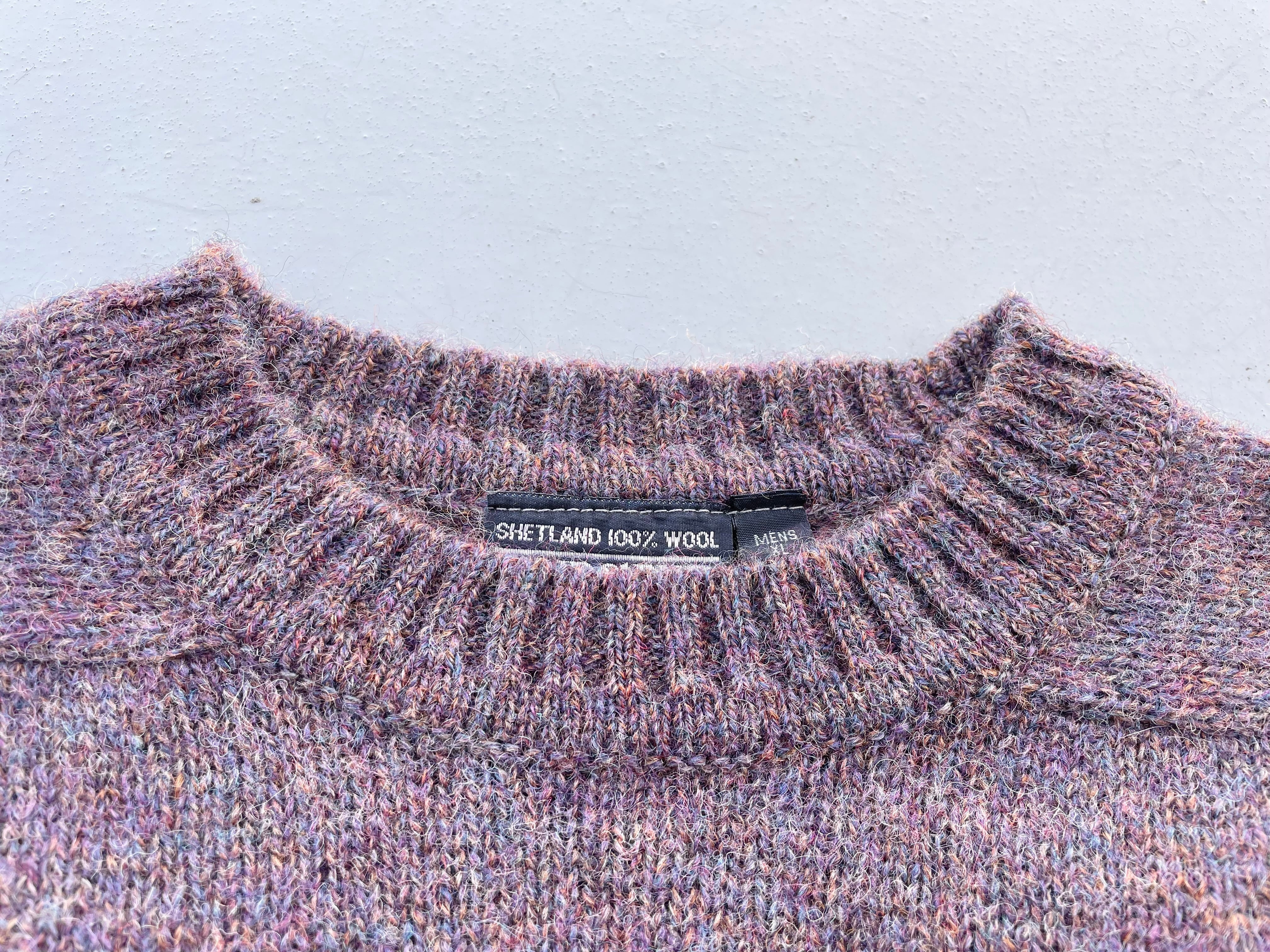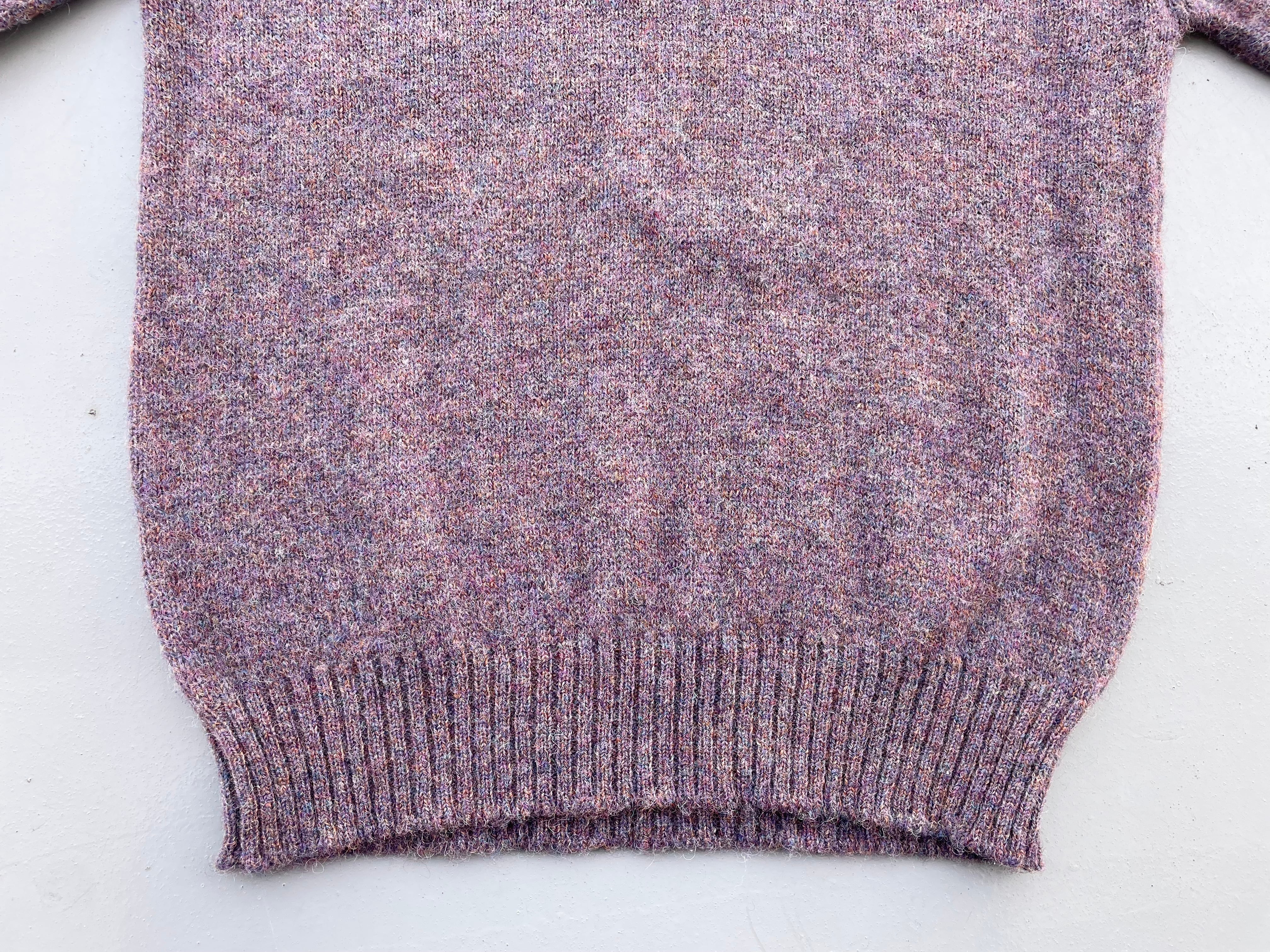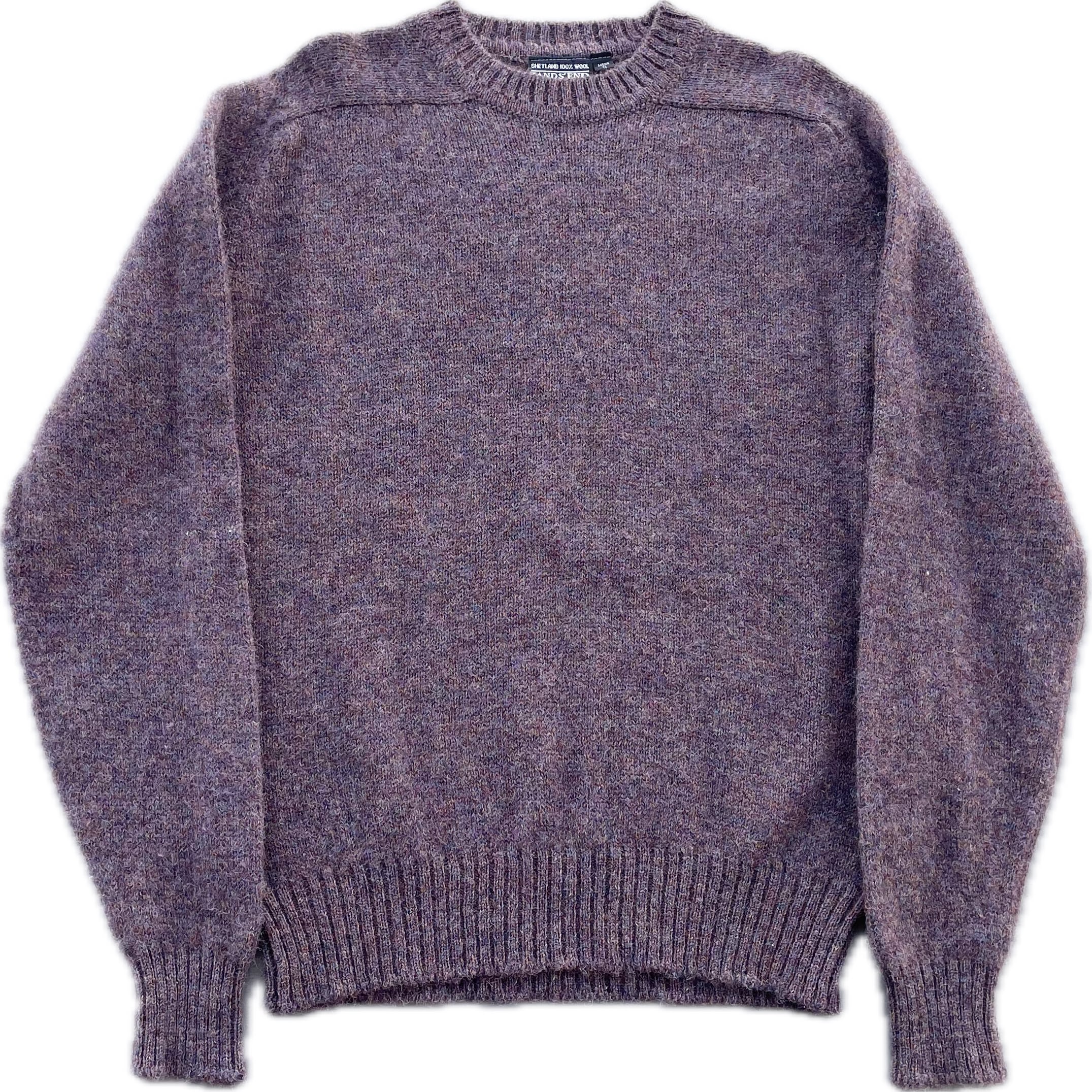 【商品詳細】ランズエンドのシェットランドウールニットセーター。サイズはXL。カラーはラベンダーベースのミックスカラー。80-90年代イングランド製。大人なラベンダーカラーにランダムに入るミックスカラーの毛糸が洒落たデザインの一着。ウール物ですが軽く柔らかい質感に加えて丈夫な作りなので良い意味で気を使わず着回しやすいかと。嬉しい大きめXLサイズ◎
