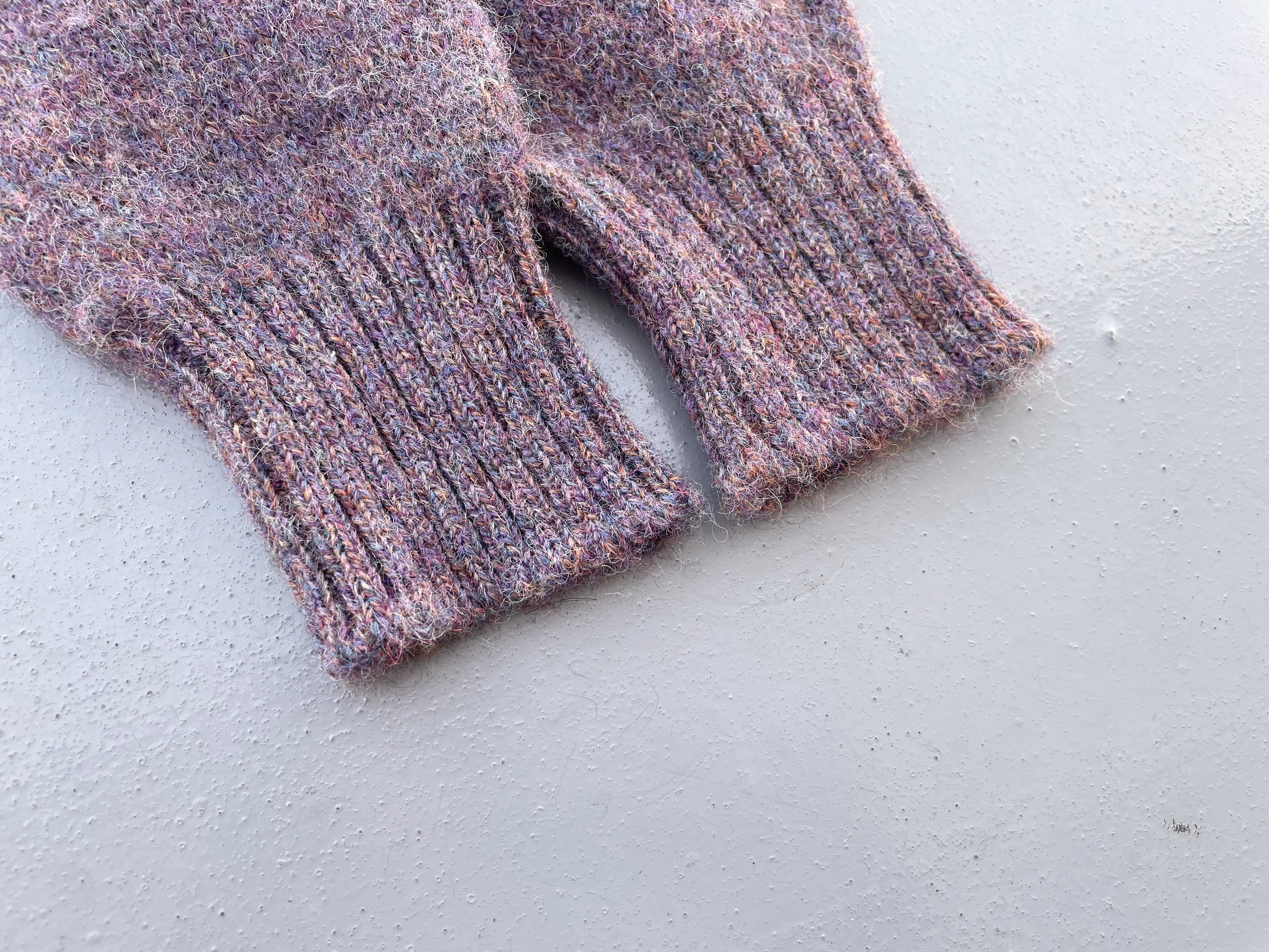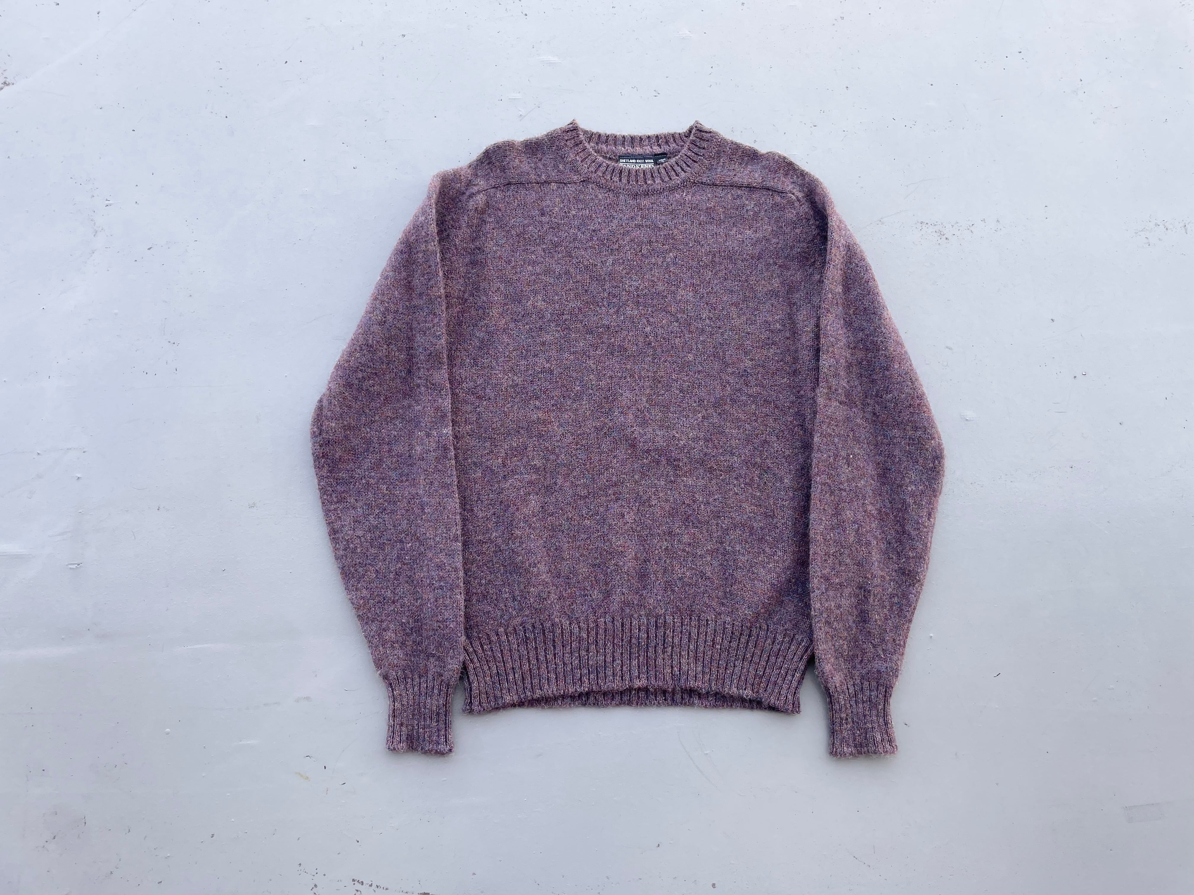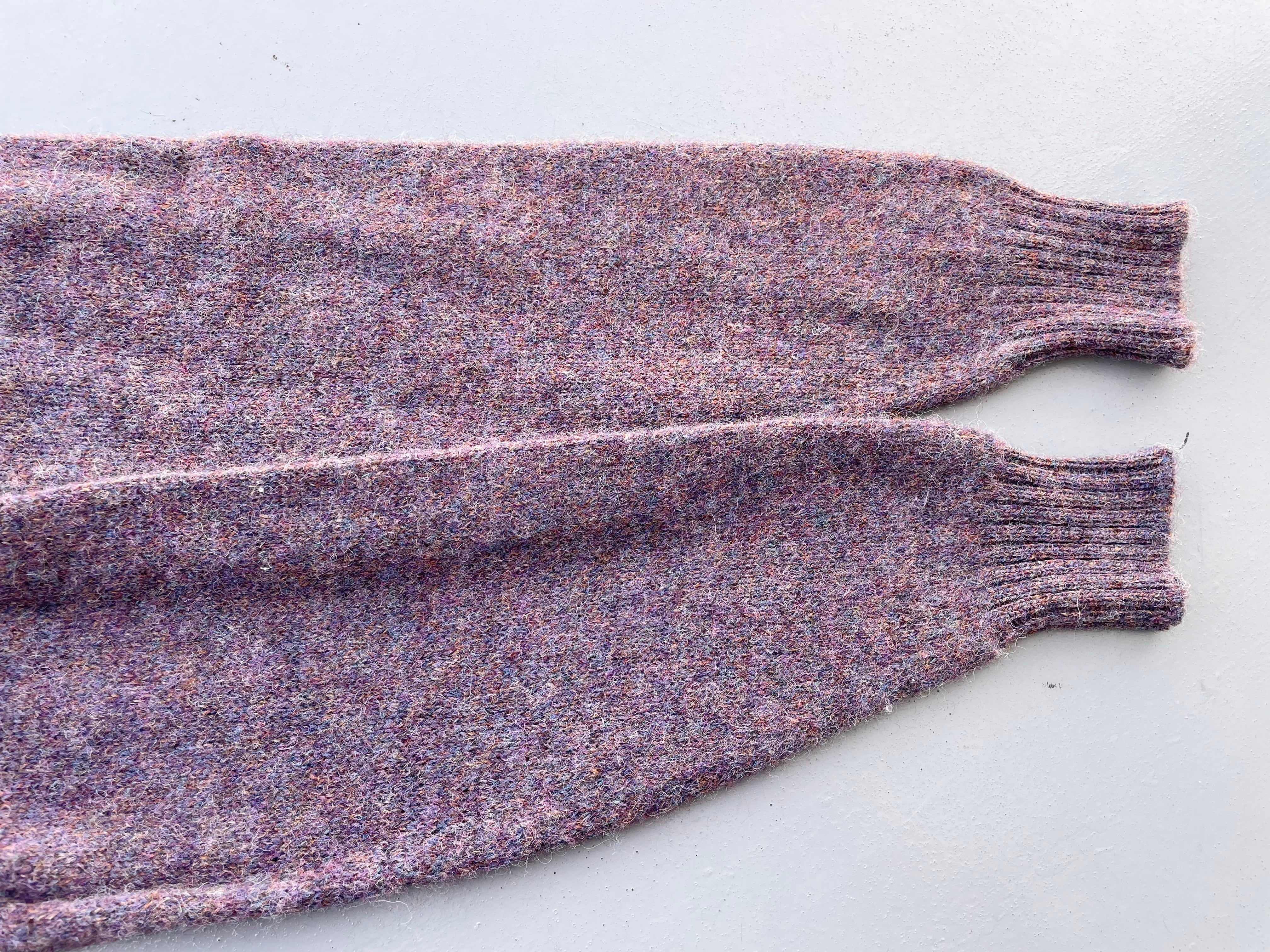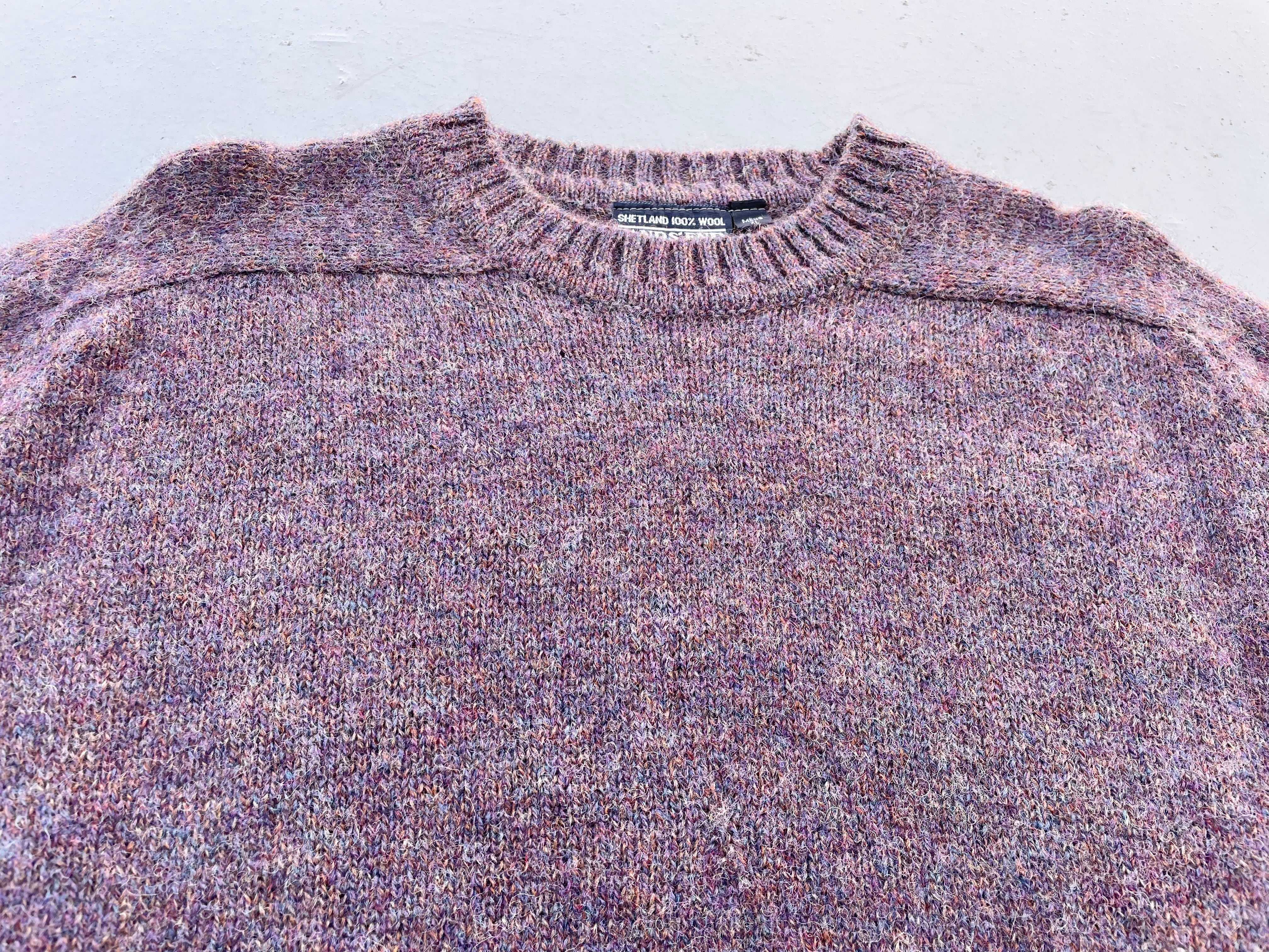 【商品詳細】ランズエンドのシェットランドウールニットセーター。サイズはXL。カラーはラベンダーベースのミックスカラー。80-90年代イングランド製。大人なラベンダーカラーにランダムに入るミックスカラーの毛糸が洒落たデザインの一着。ウール物ですが軽く柔らかい質感に加えて丈夫な作りなので良い意味で気を使わず着回しやすいかと。嬉しい大きめXLサイズ◎