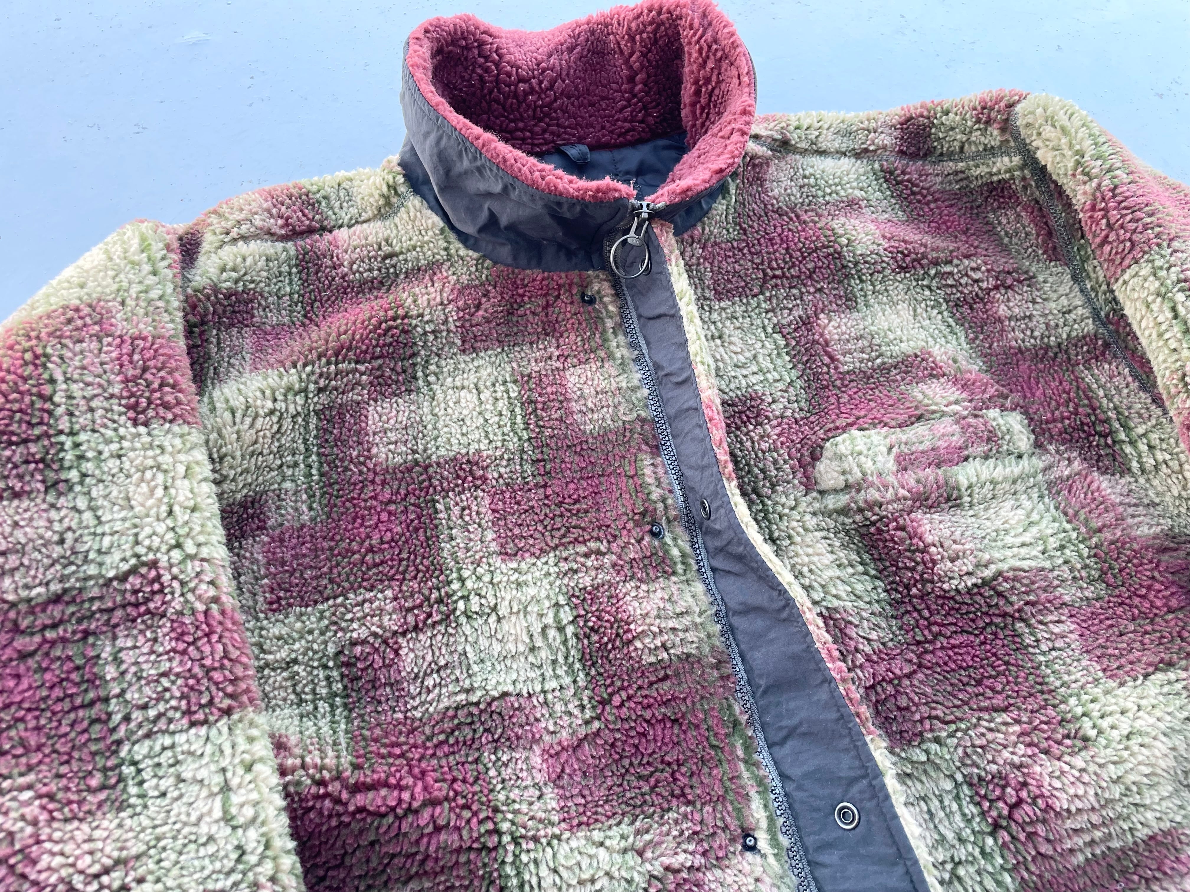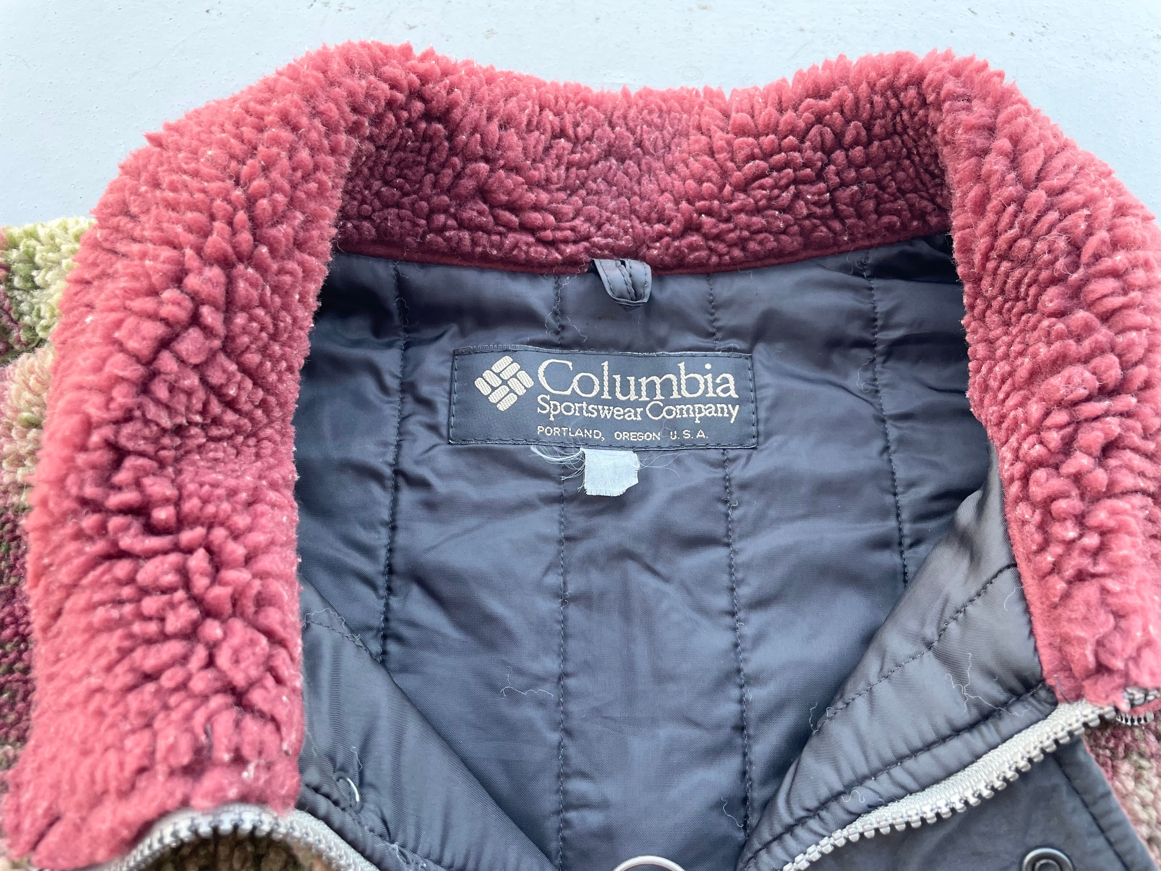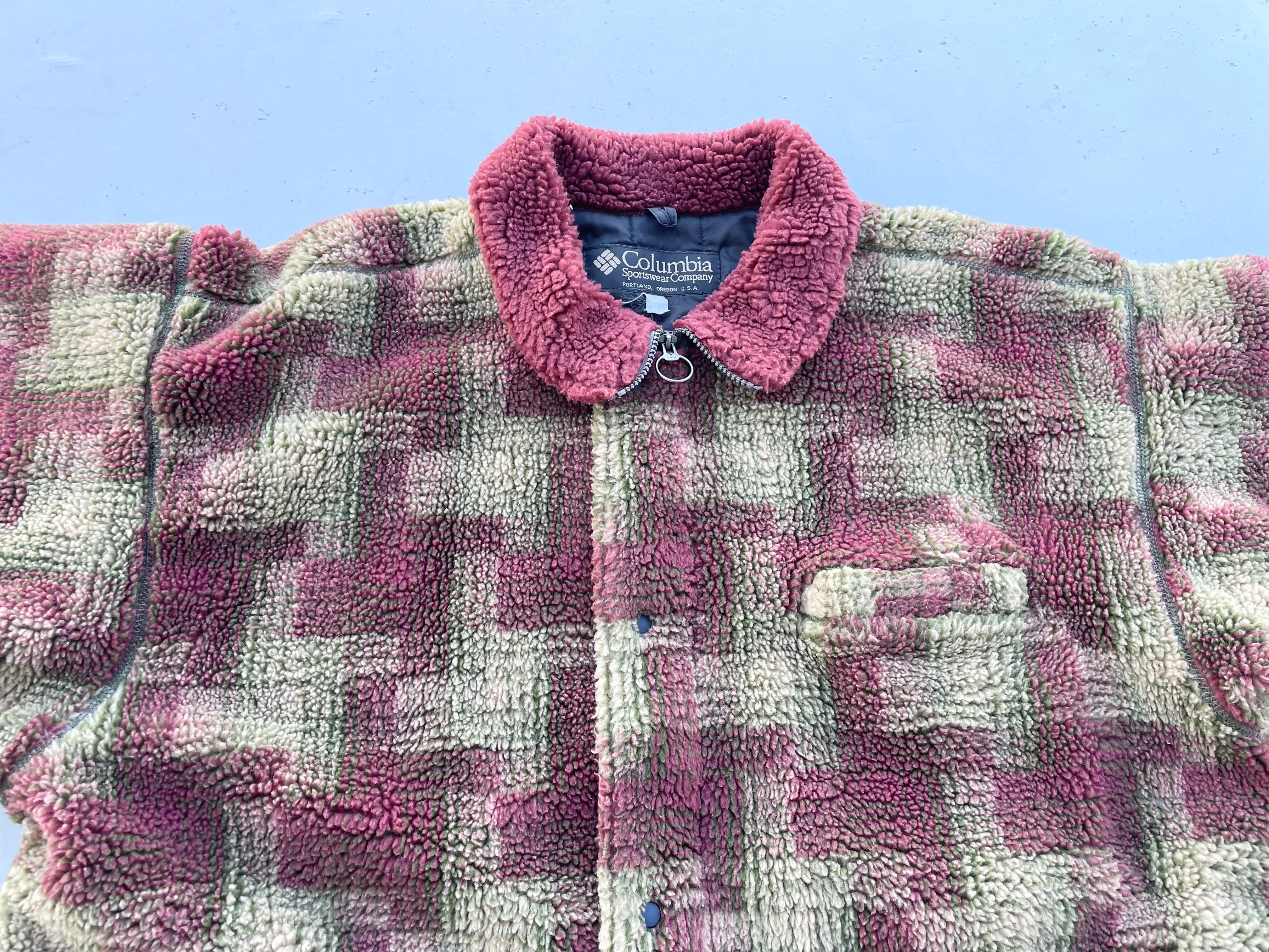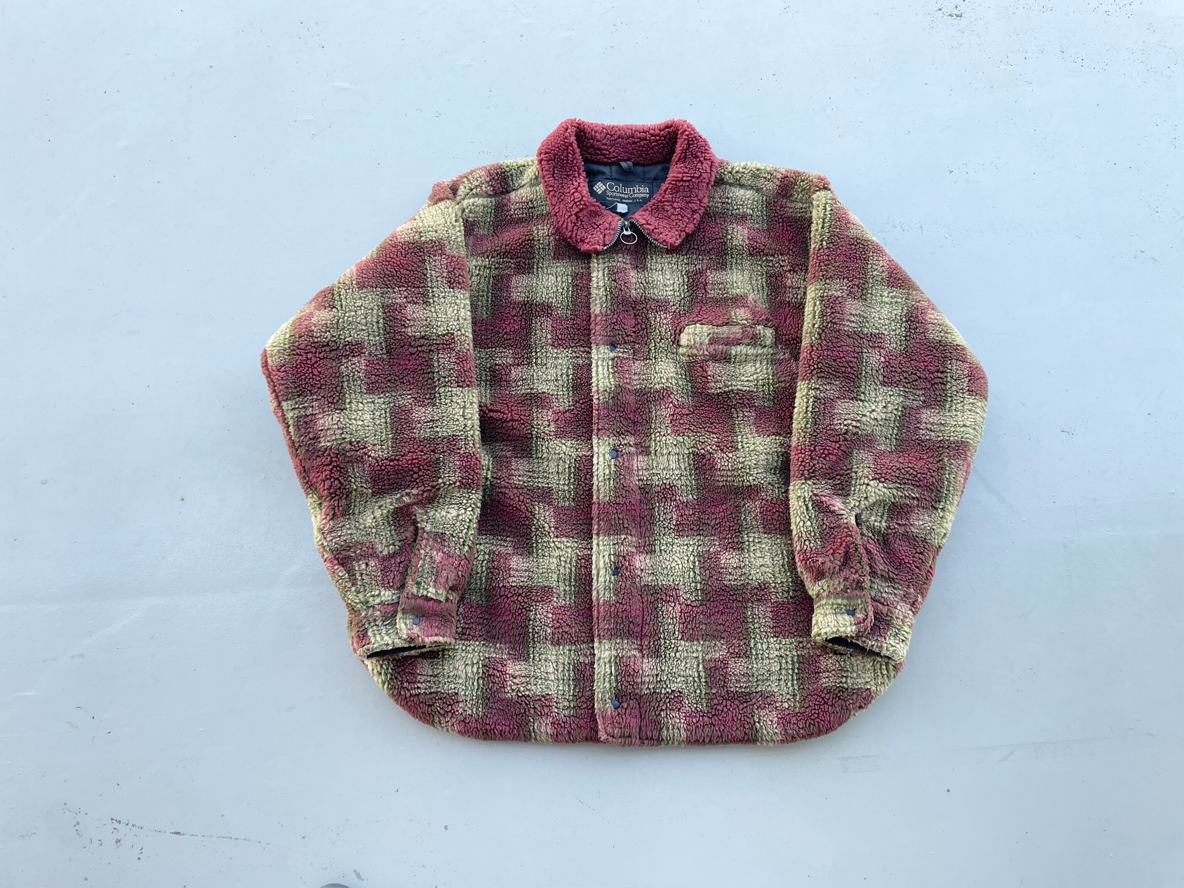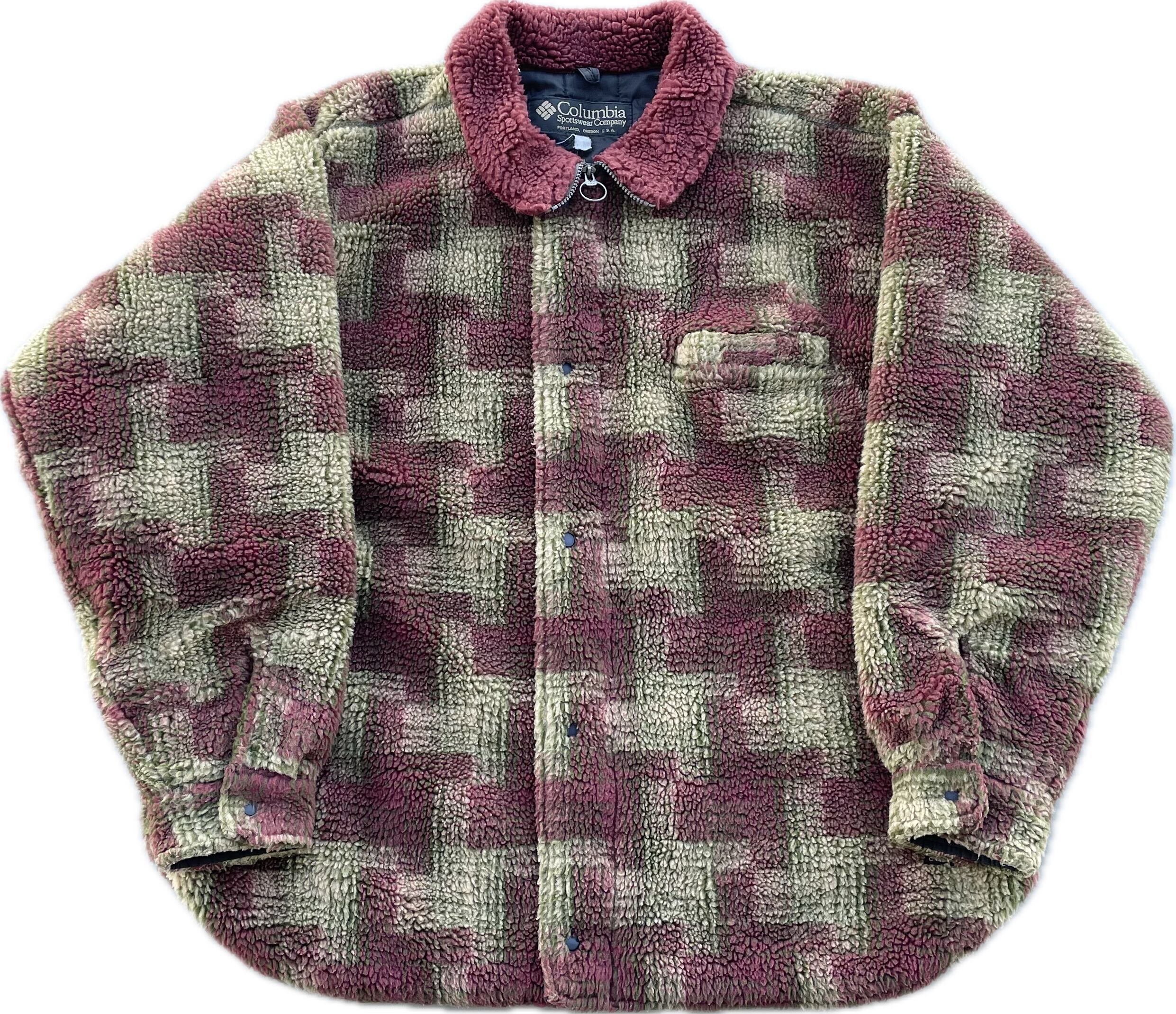 【商品詳細】コロンビアのパイルフリース中綿入りジャケット。サイズはL。カラーはエンジ×カーキ×アイボリー等のデジタルチェックパターン。90年代USA製。希少な雪物ラインのCONVERT物。大きく取られたチェック柄がデジタル模様に落とされた珍しいパターン。デザインだけでなくハンドウォーマーポケットや中綿入り仕様等、機能面でも◎な優れ者。身幅もしっかりあるので中に着込めそうです。