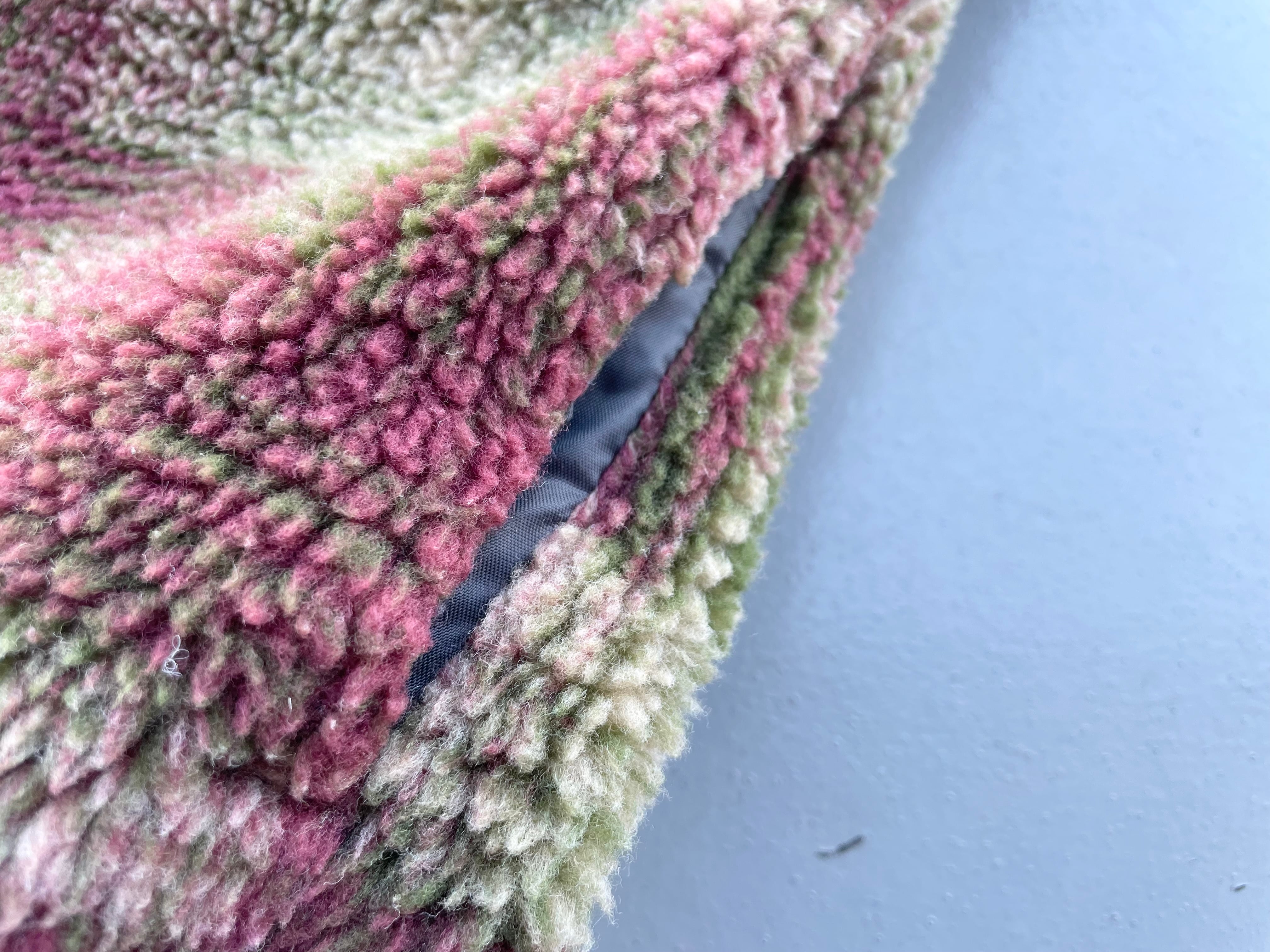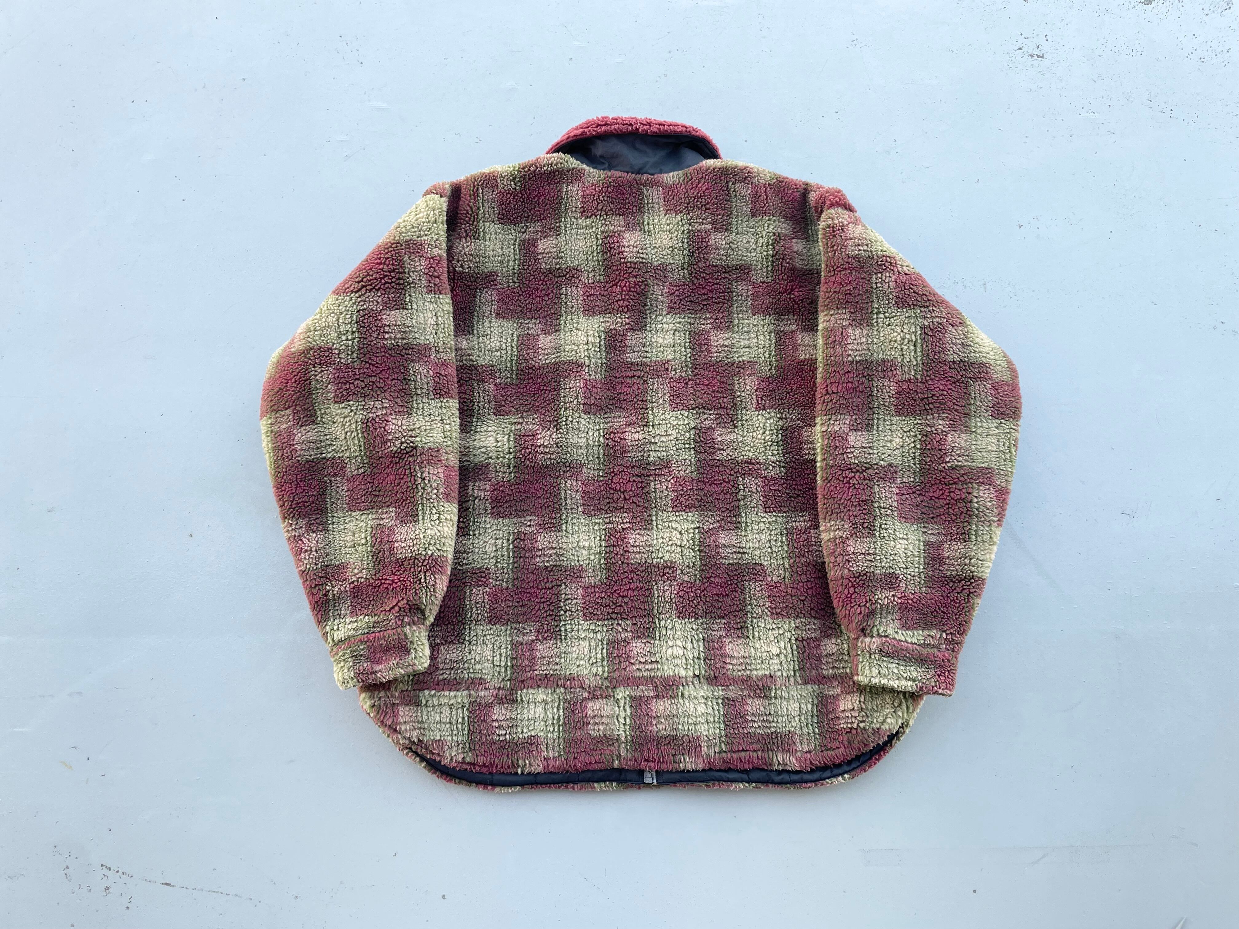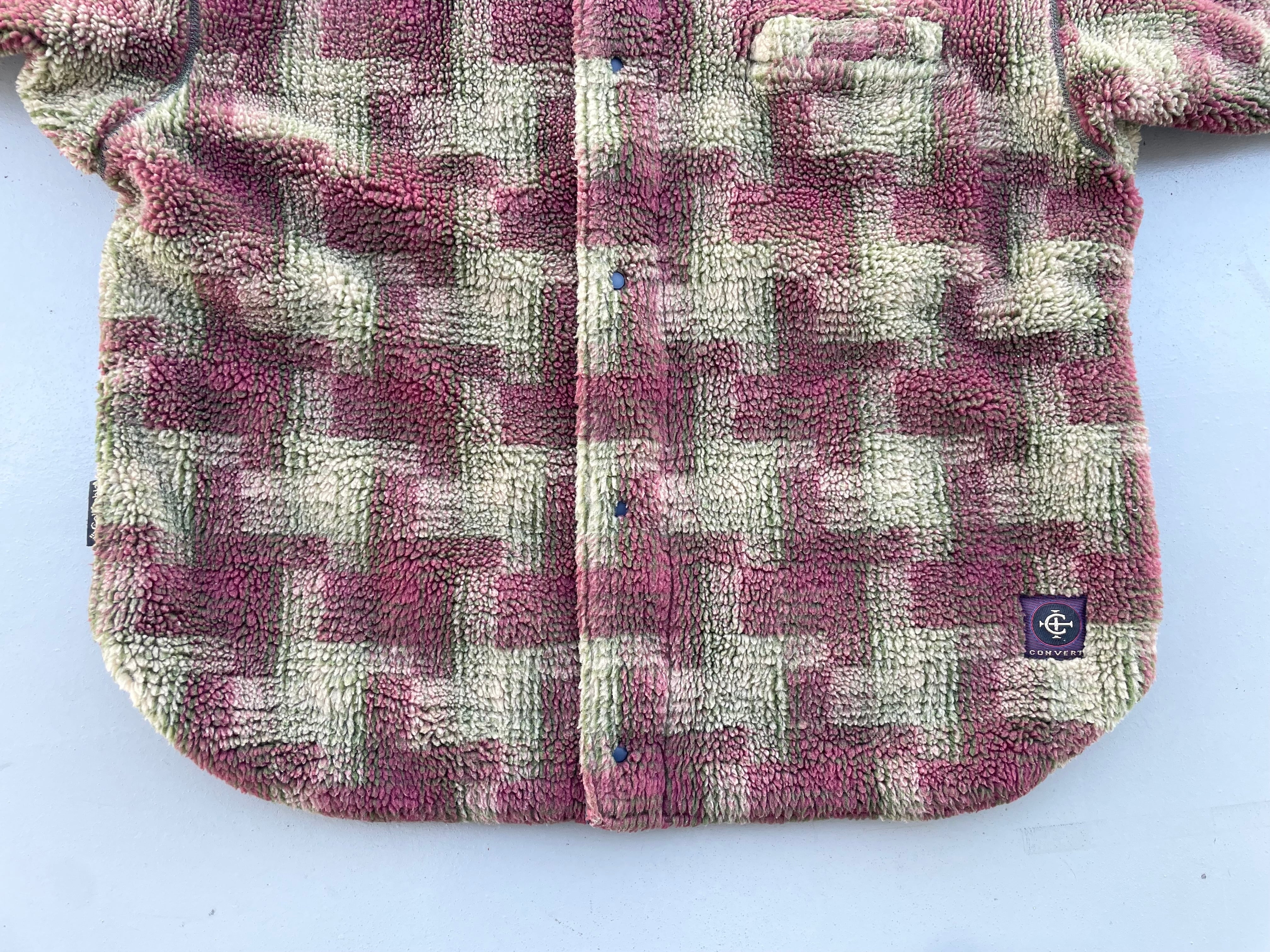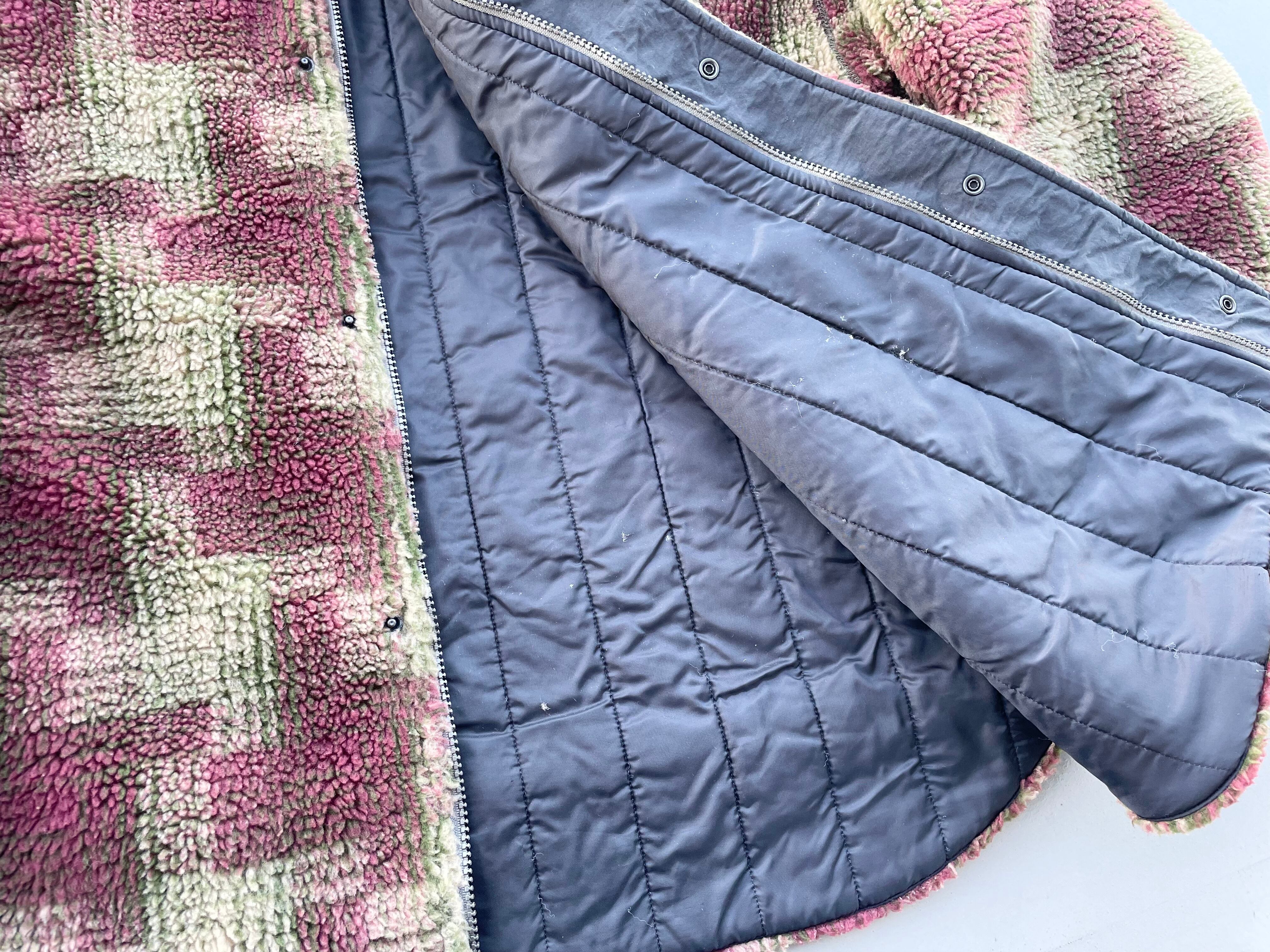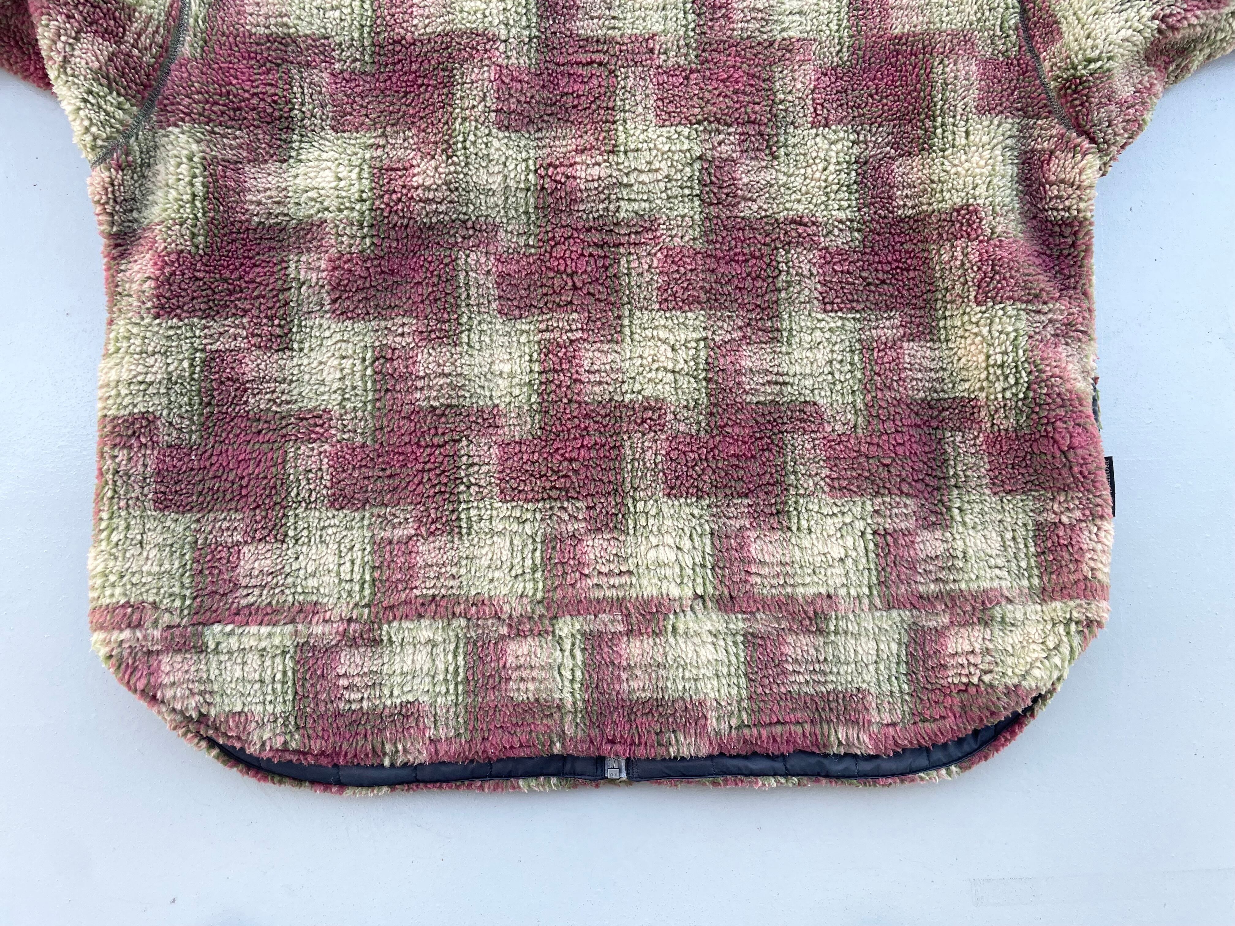 【商品詳細】コロンビアのパイルフリース中綿入りジャケット。サイズはL。カラーはエンジ×カーキ×アイボリー等のデジタルチェックパターン。90年代USA製。希少な雪物ラインのCONVERT物。大きく取られたチェック柄がデジタル模様に落とされた珍しいパターン。デザインだけでなくハンドウォーマーポケットや中綿入り仕様等、機能面でも◎な優れ者。身幅もしっかりあるので中に着込めそうです。