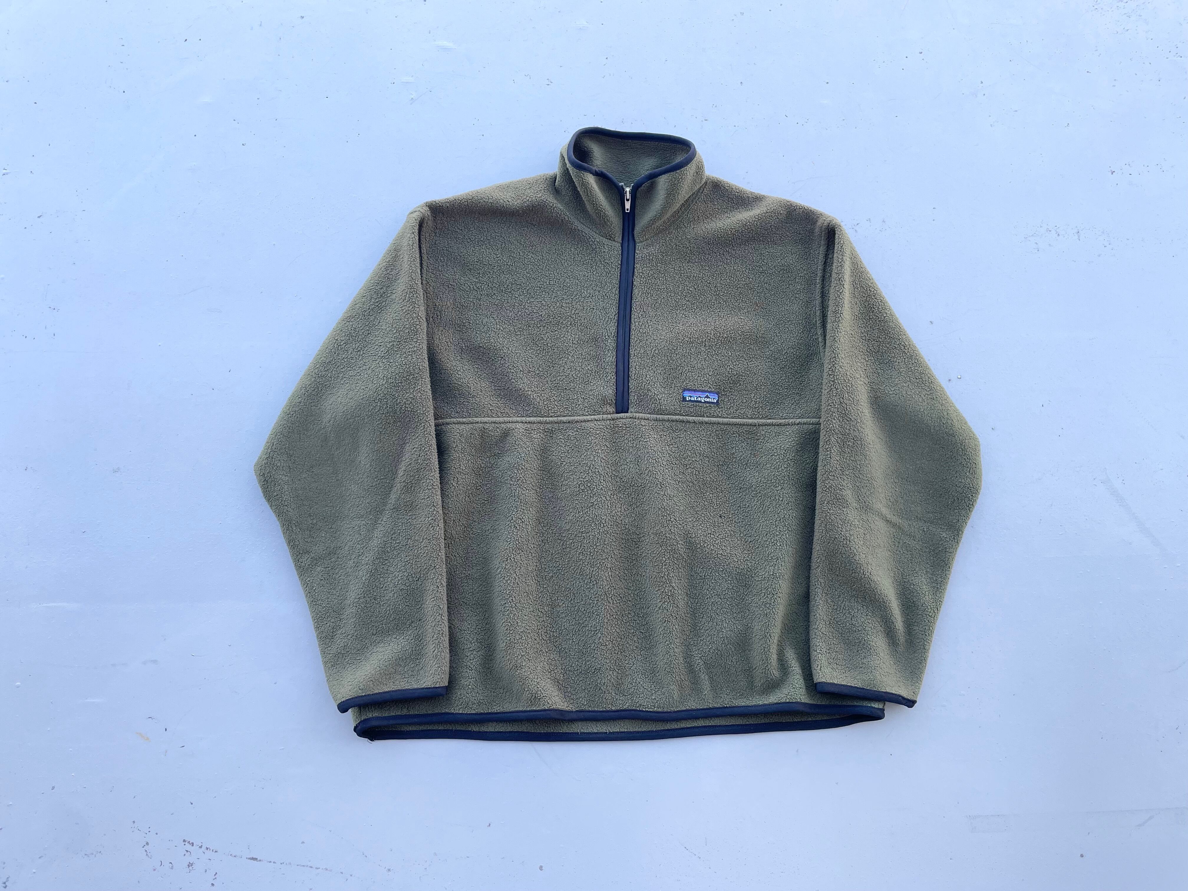 【商品詳細】パタゴニアのシンチラマースピアルフリースプルオーバージャケット。サイズはM。カラーはオリーブグリーン。97年USA製。今年位から人気上昇中のマースピアル。こちらは出回り少ないオリーブグリーン。MサイズですがL-XL程の大きめの作り。年代物の為使用感はありますがフリースには厚みがありまだまだご着用いただけるかと。