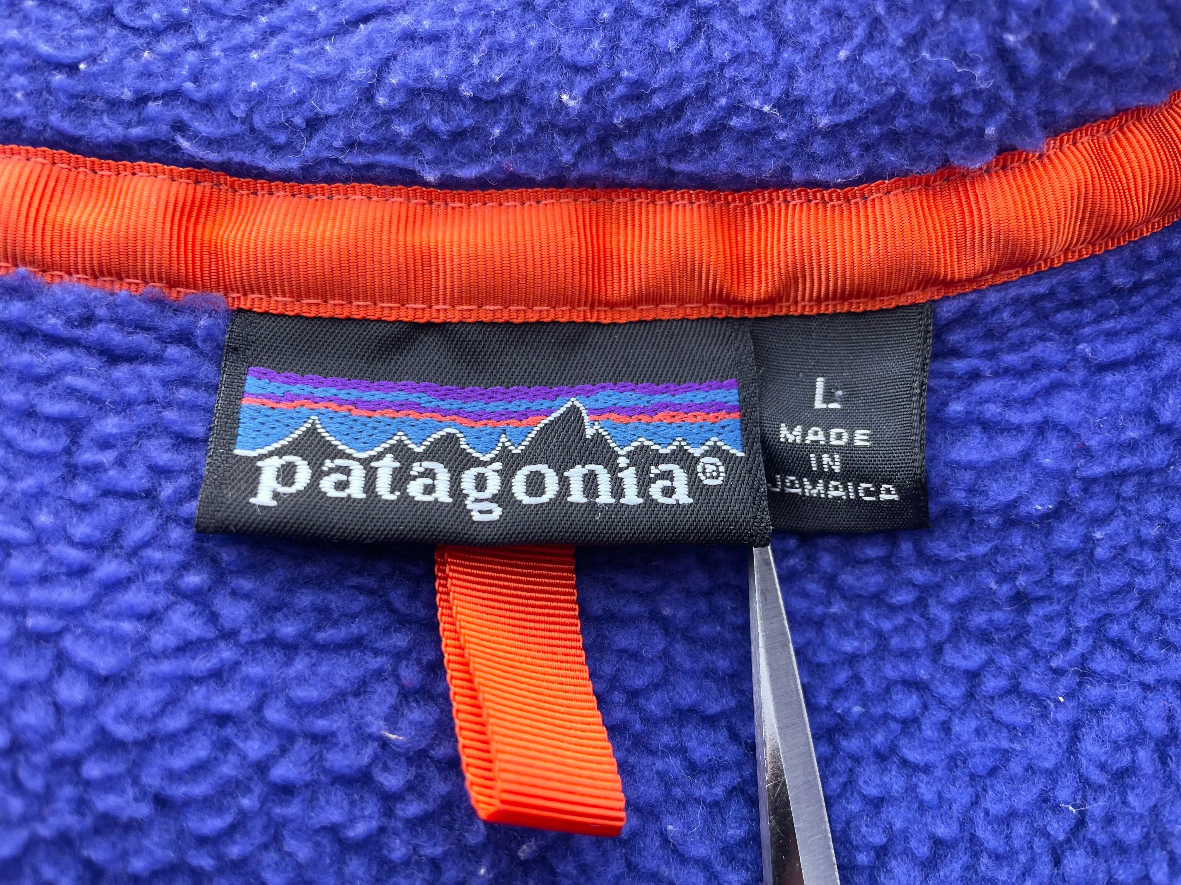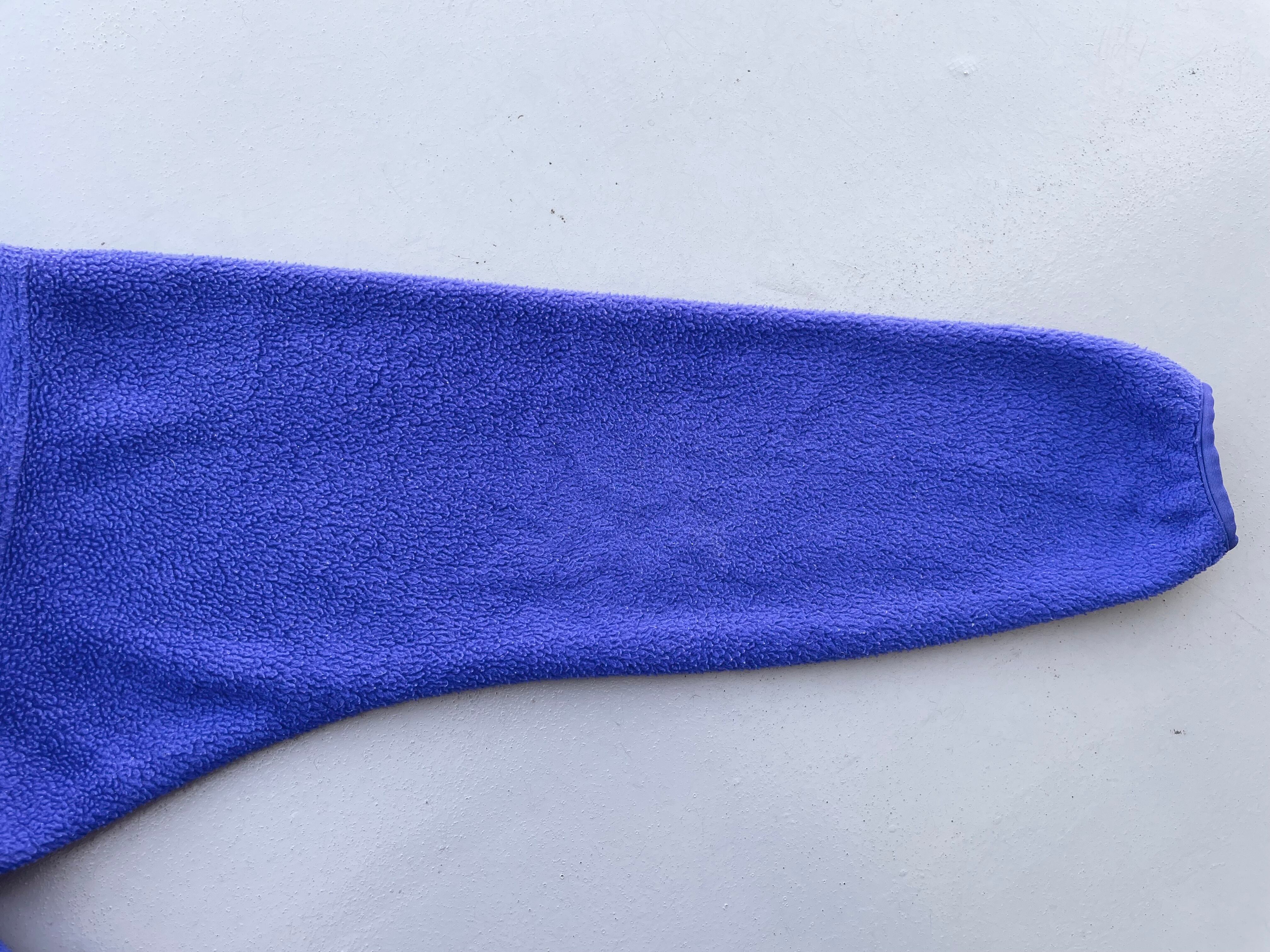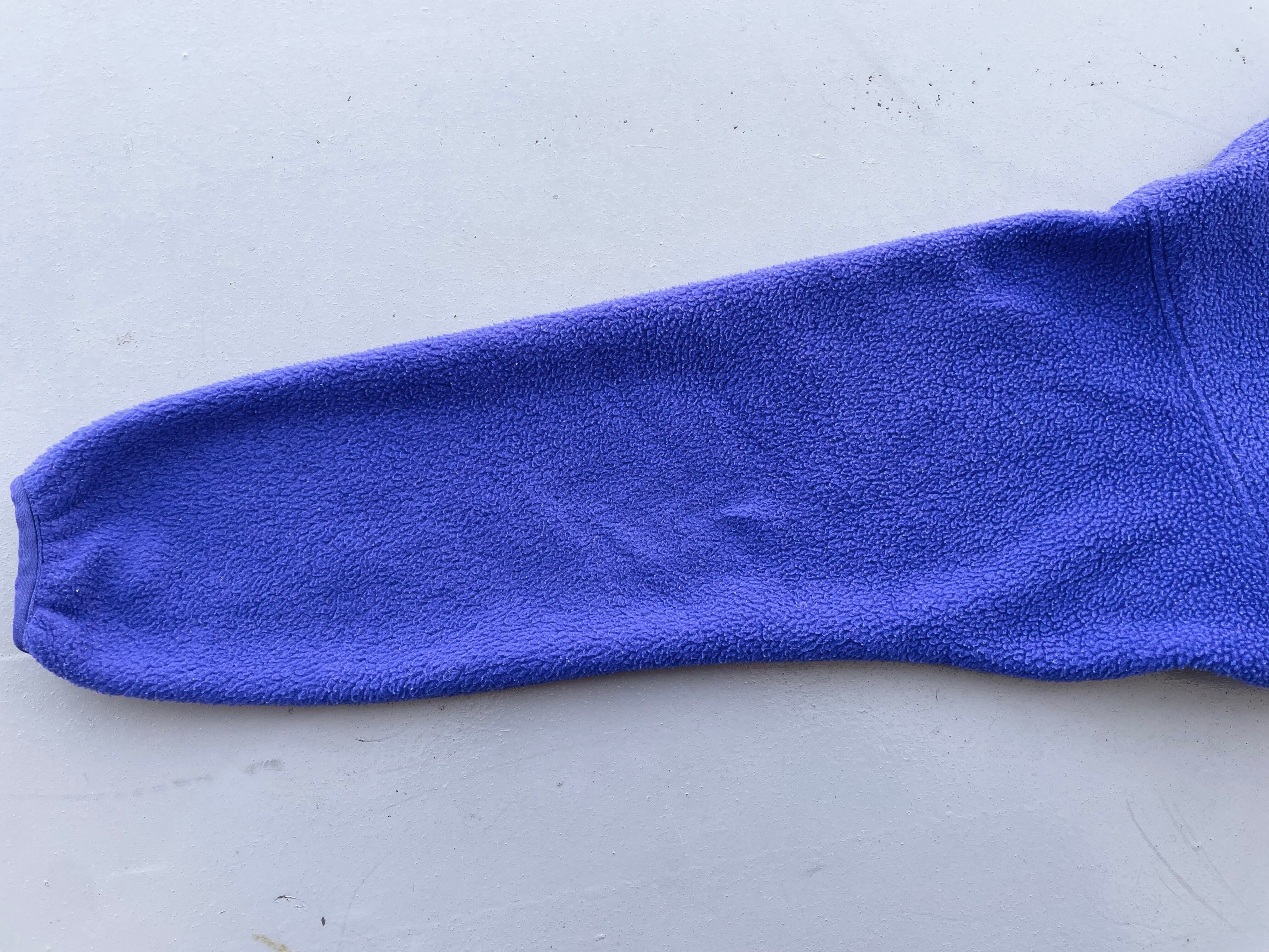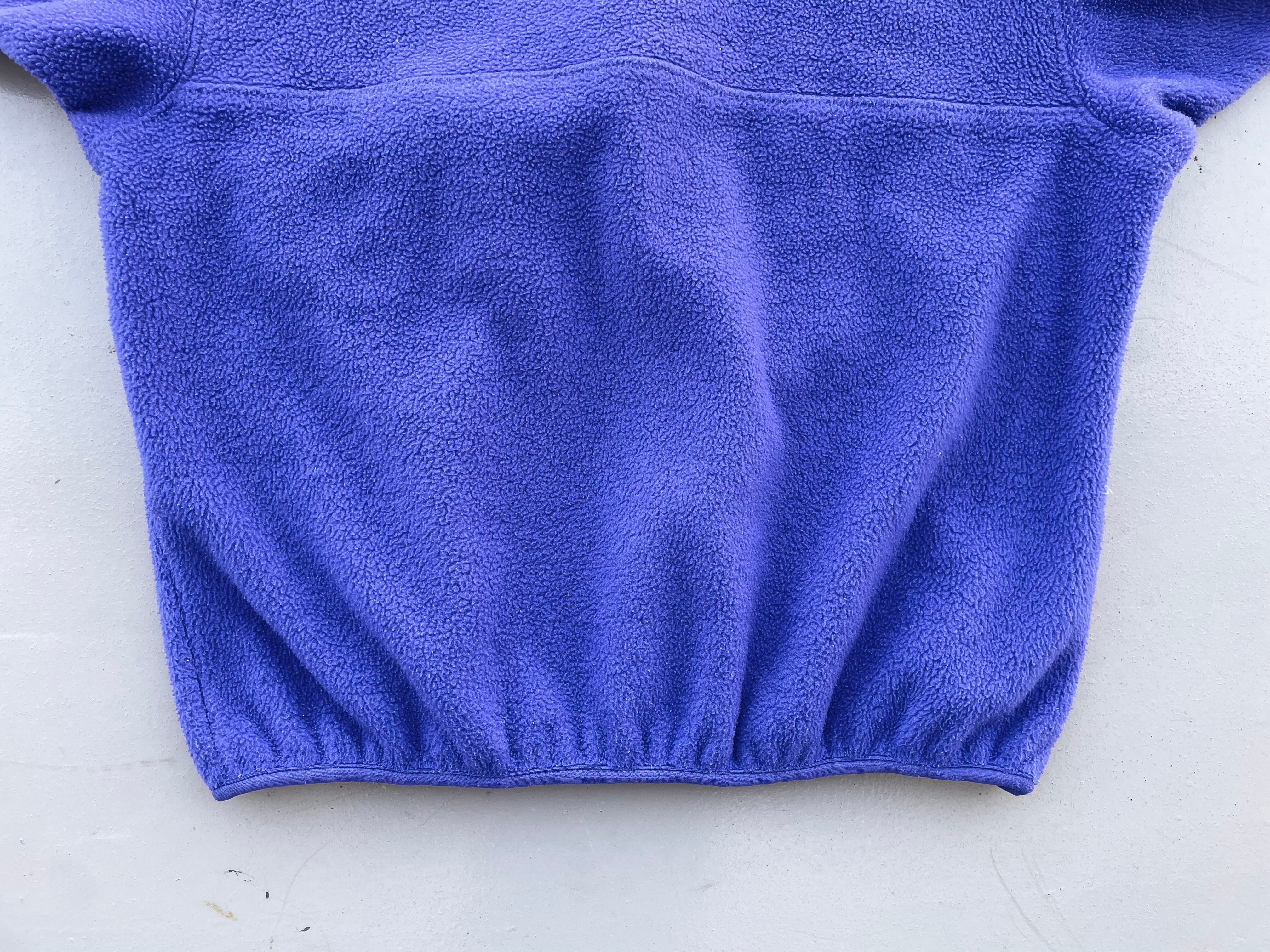 【商品詳細】パタゴニアのシンチラスナップT。サイズはL。カラーはパープルカラーのコバルト。91年ジャマイカ製。パタゴニアカラーな紫色が映えるコバルト物。肉厚なフリース地で保温性バッチリです。サイズも縮みなくしっかり大きめのディテール保ってます。年代物ですがフリース地にはフカフカみがあり比較的良好なコンディションかと。