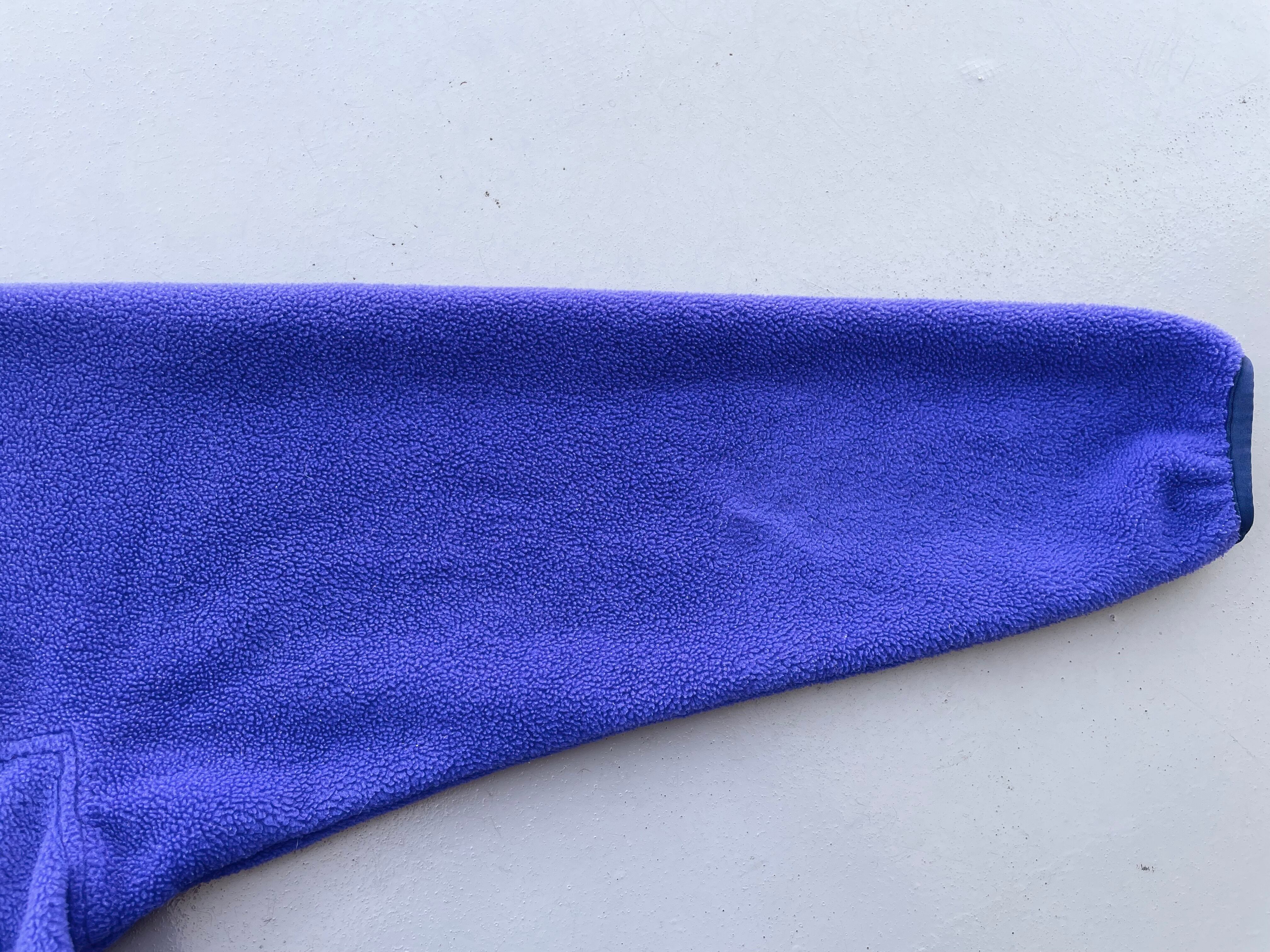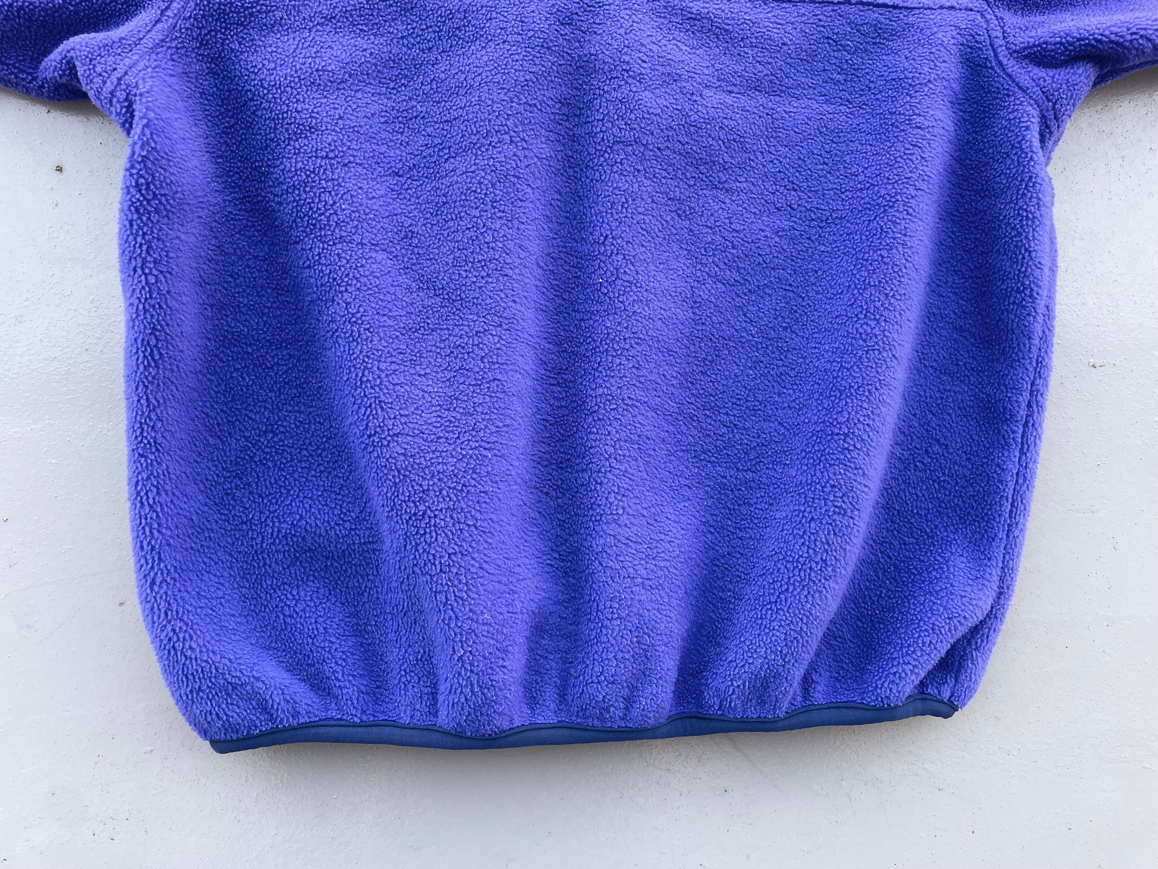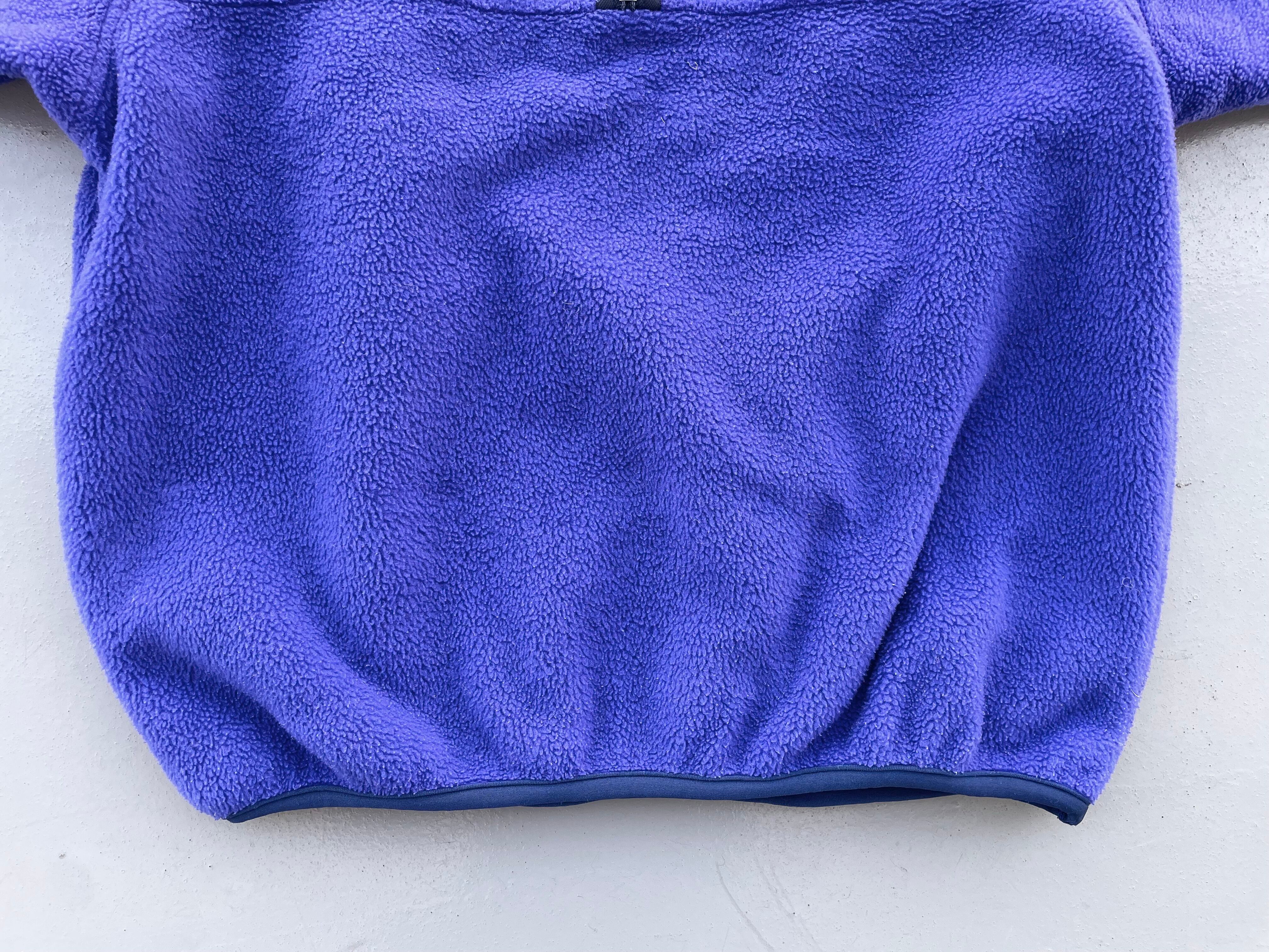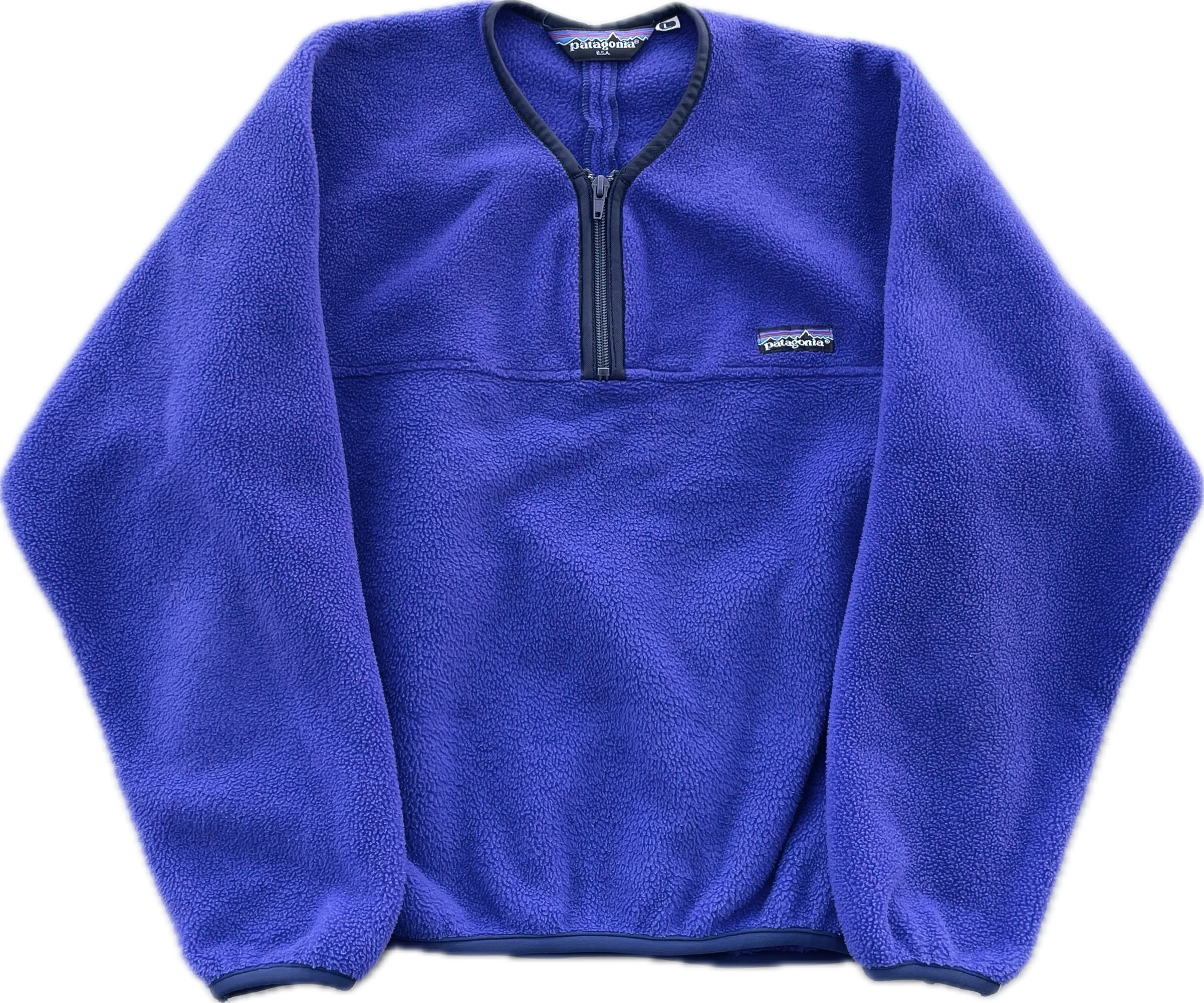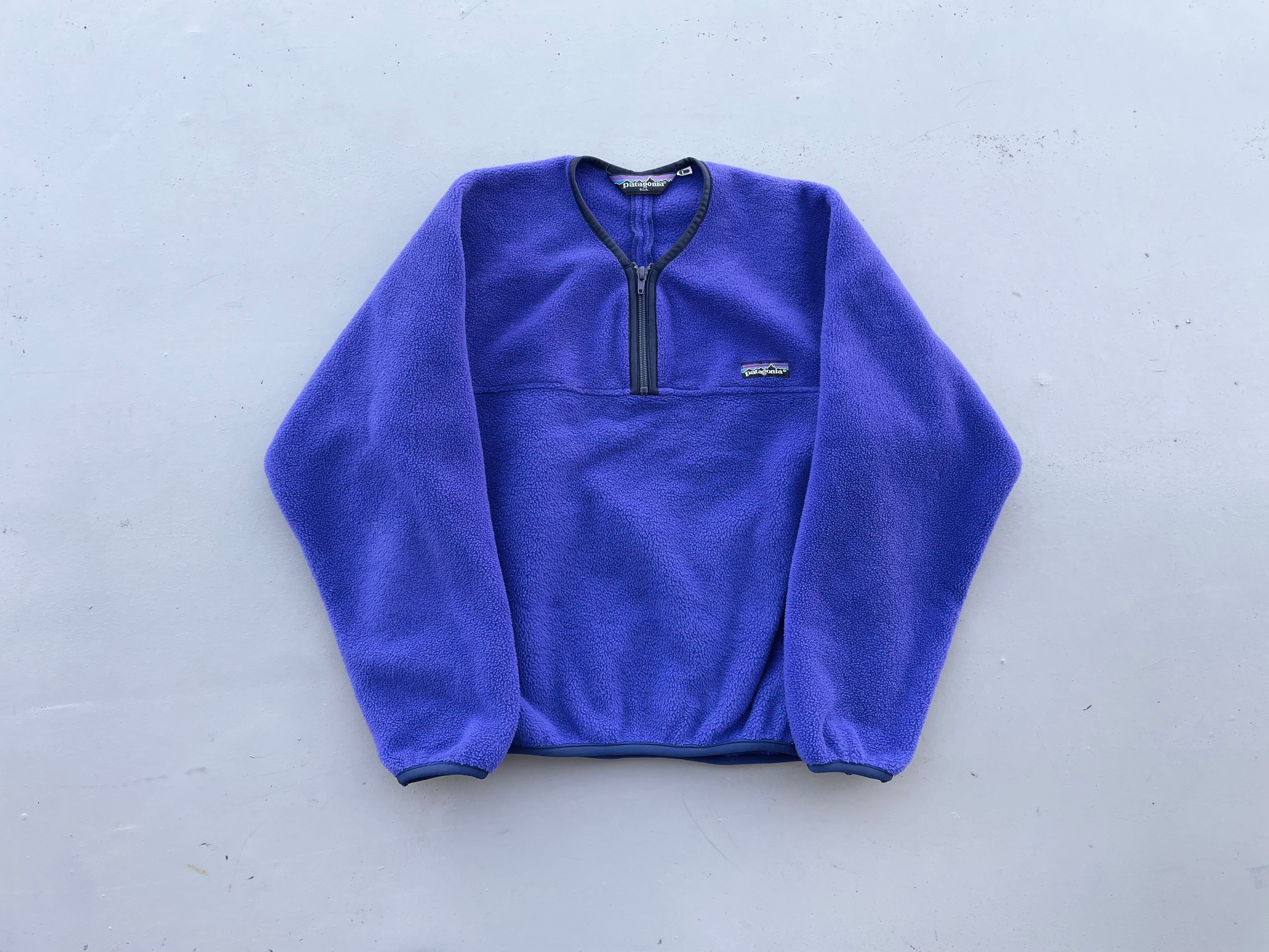【商品詳細】パタゴニアのパドリングプルオーバー。サイズはL。カラーはコバルト。80年代製。カヤックライン定番モデルのパドリングプルオーバー。首元にラウンドするジッパーと着丈短めのディテールが特徴的なモデル。パタゴニアカラーなコバルトカラーもグッドです。年代物ですがフリース地はフカフカみがあり比較的状態の良い個体だと思います。スウェット感覚でラフに着れるのが良いですね。