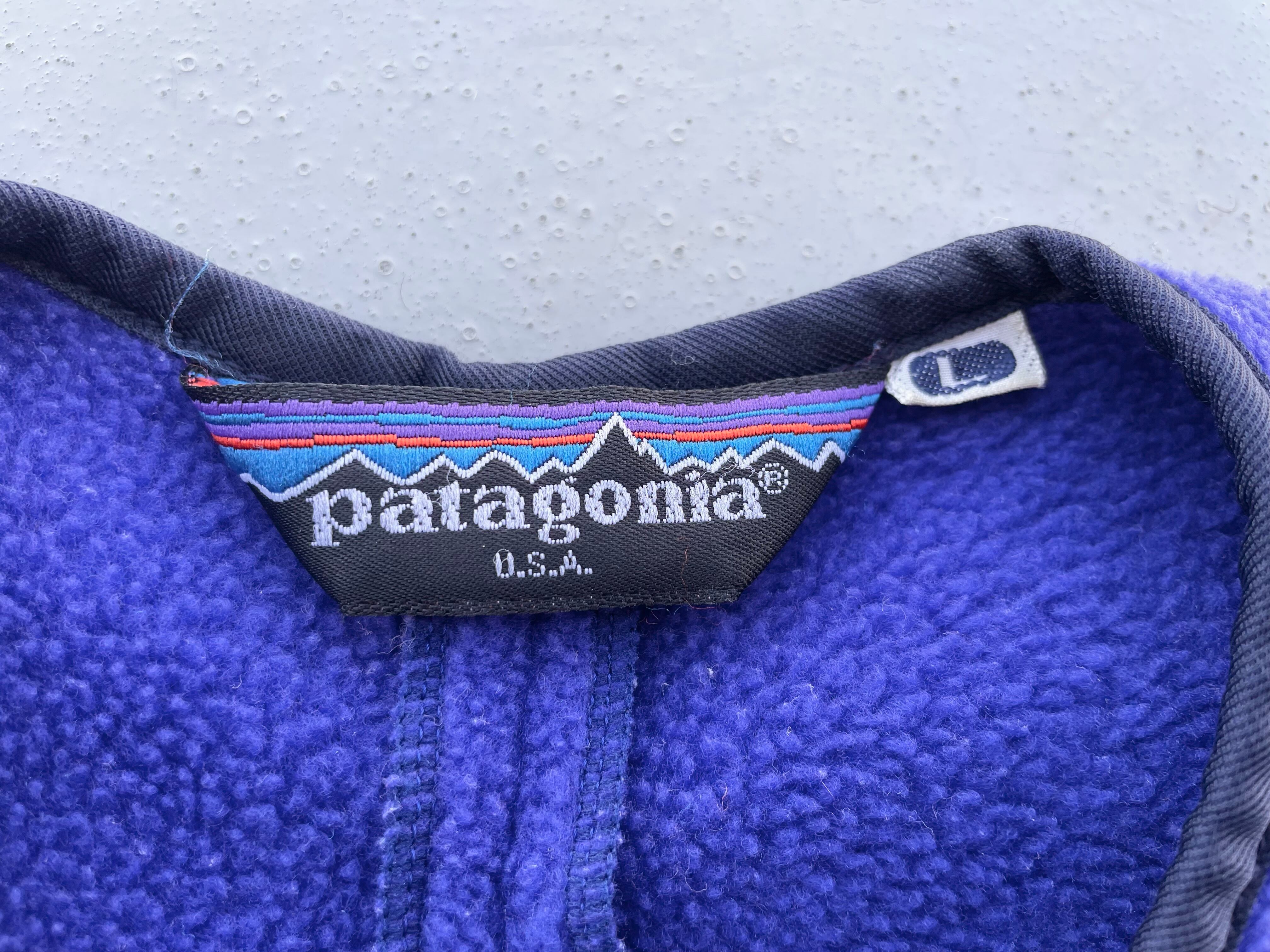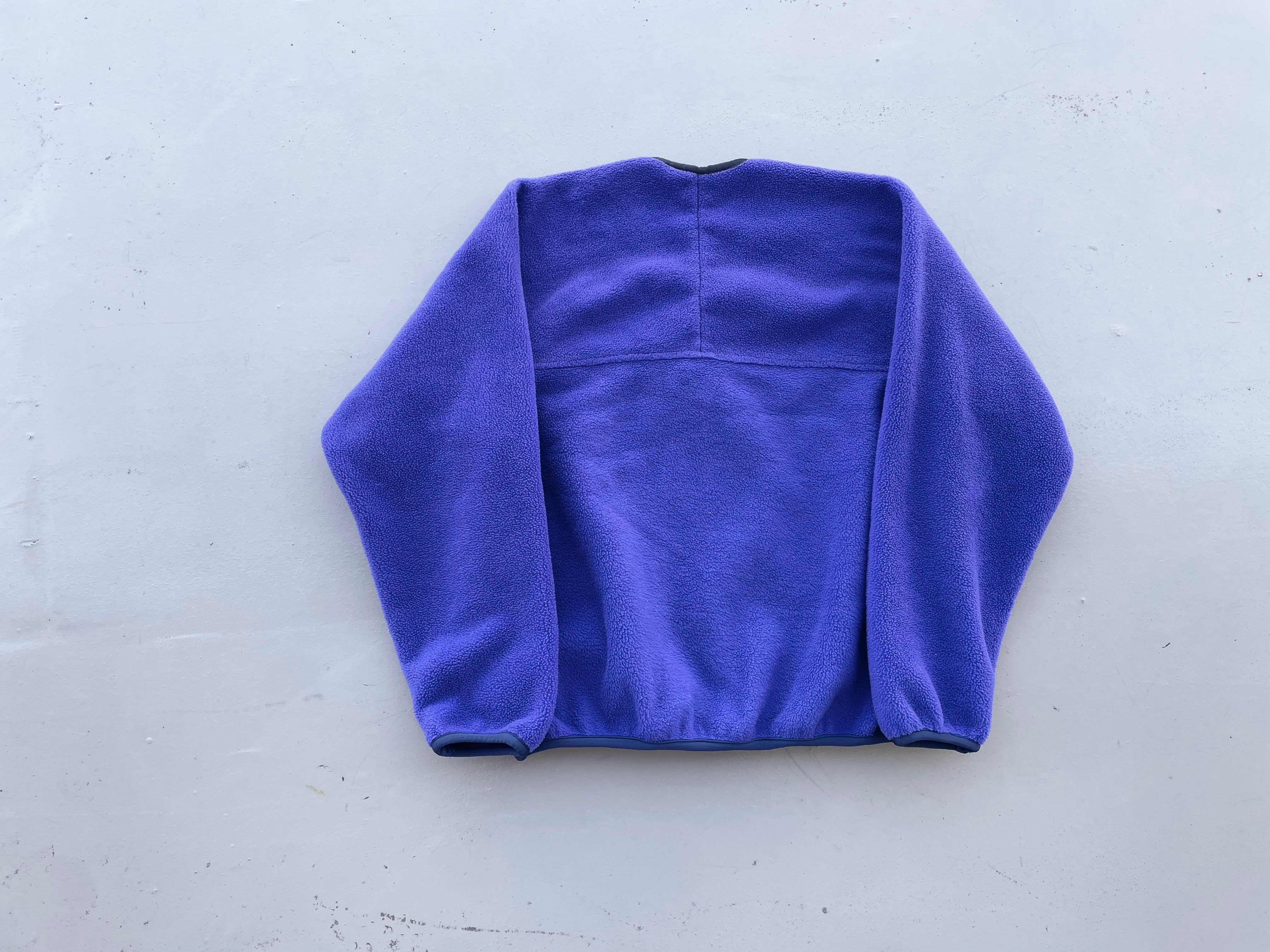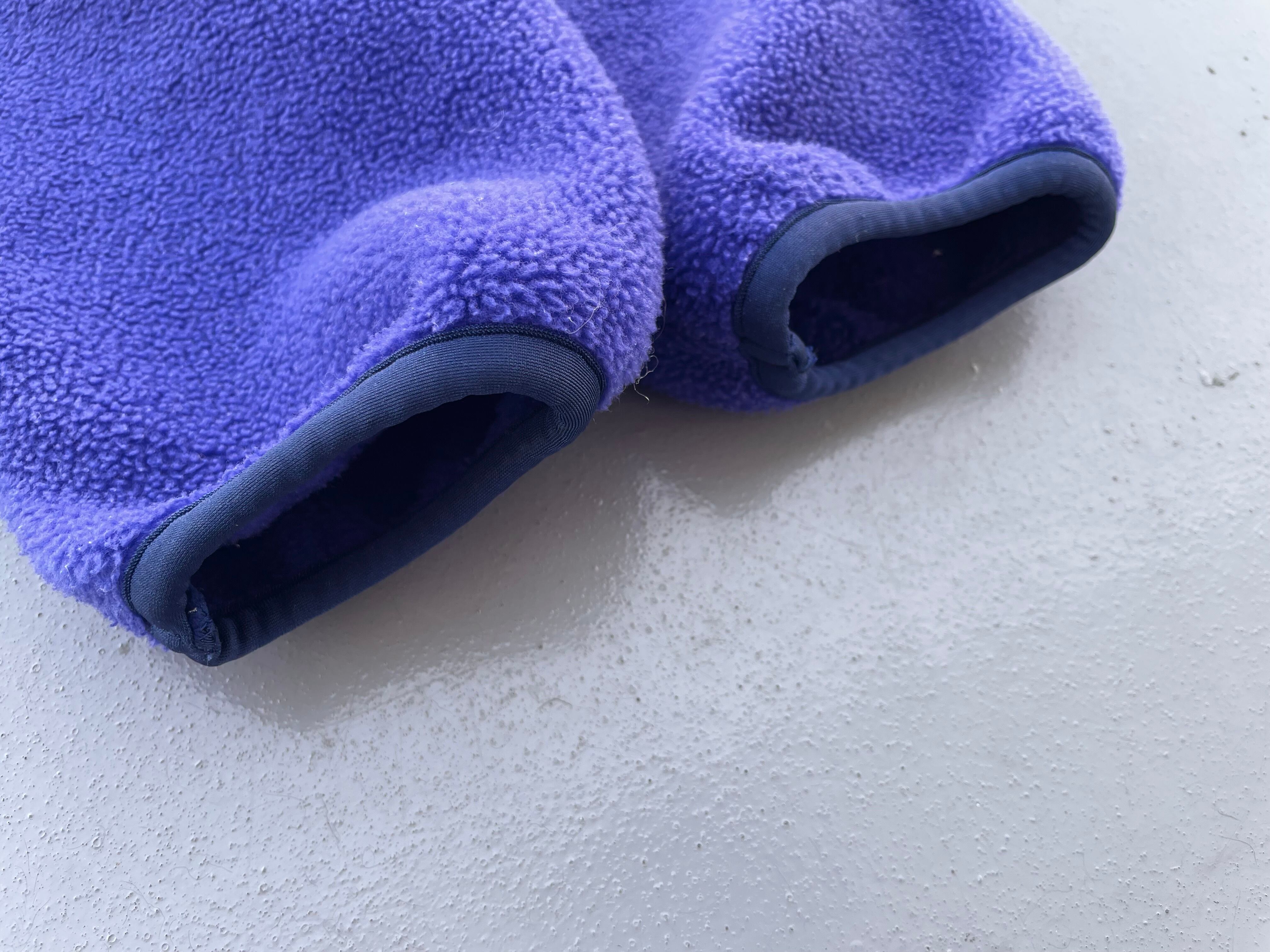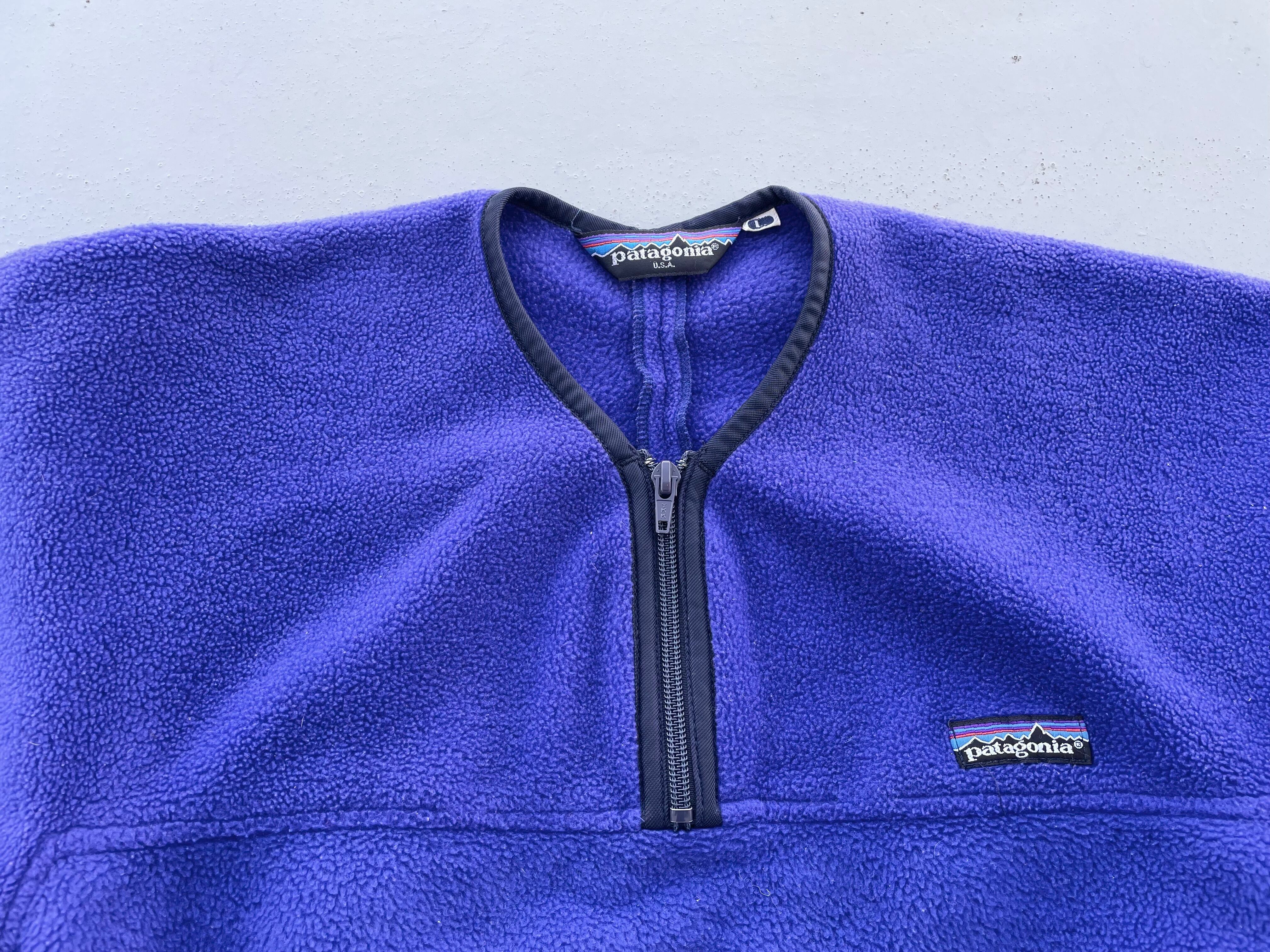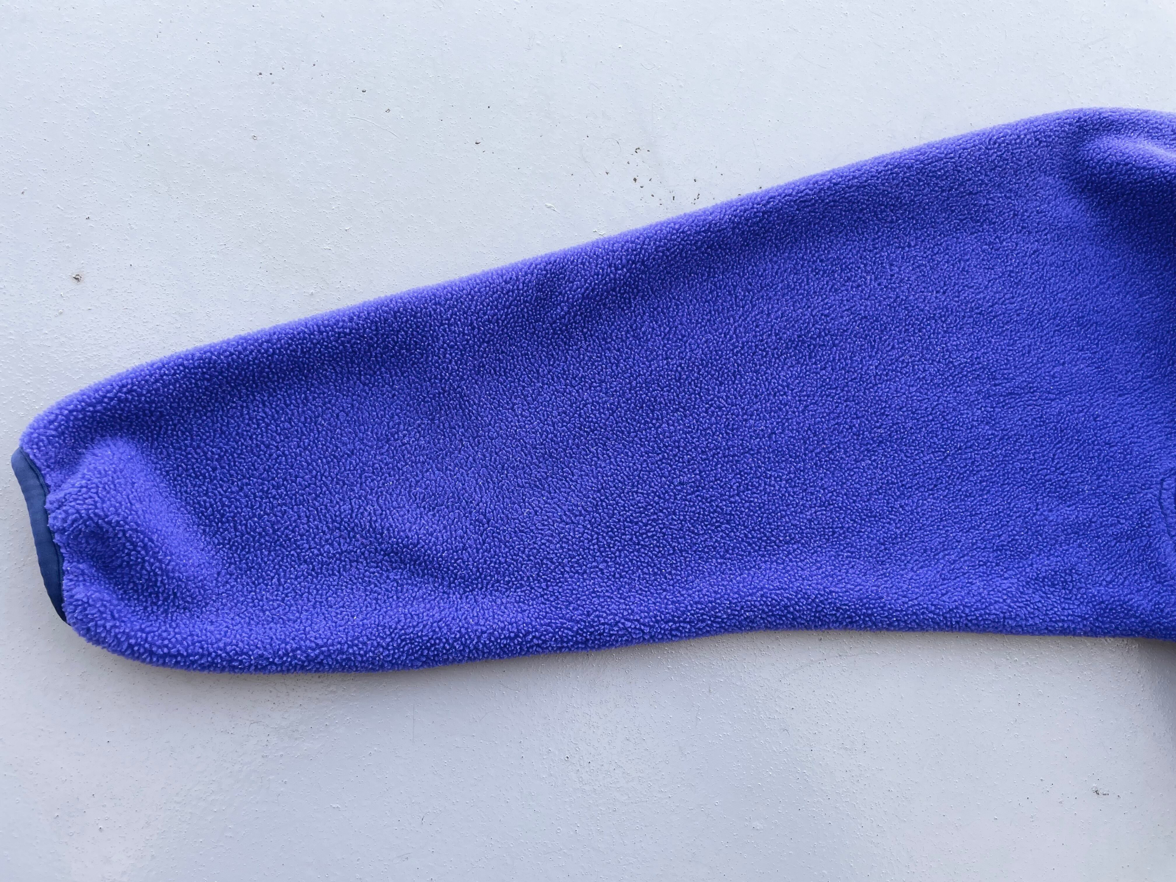 【商品詳細】パタゴニアのパドリングプルオーバー。サイズはL。カラーはコバルト。80年代製。カヤックライン定番モデルのパドリングプルオーバー。首元にラウンドするジッパーと着丈短めのディテールが特徴的なモデル。パタゴニアカラーなコバルトカラーもグッドです。年代物ですがフリース地はフカフカみがあり比較的状態の良い個体だと思います。スウェット感覚でラフに着れるのが良いですね。