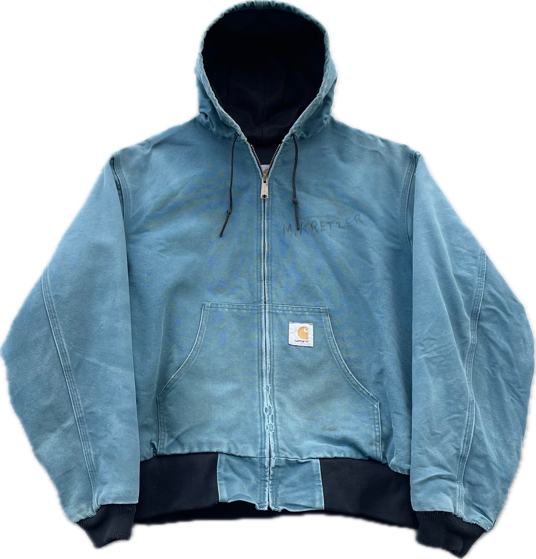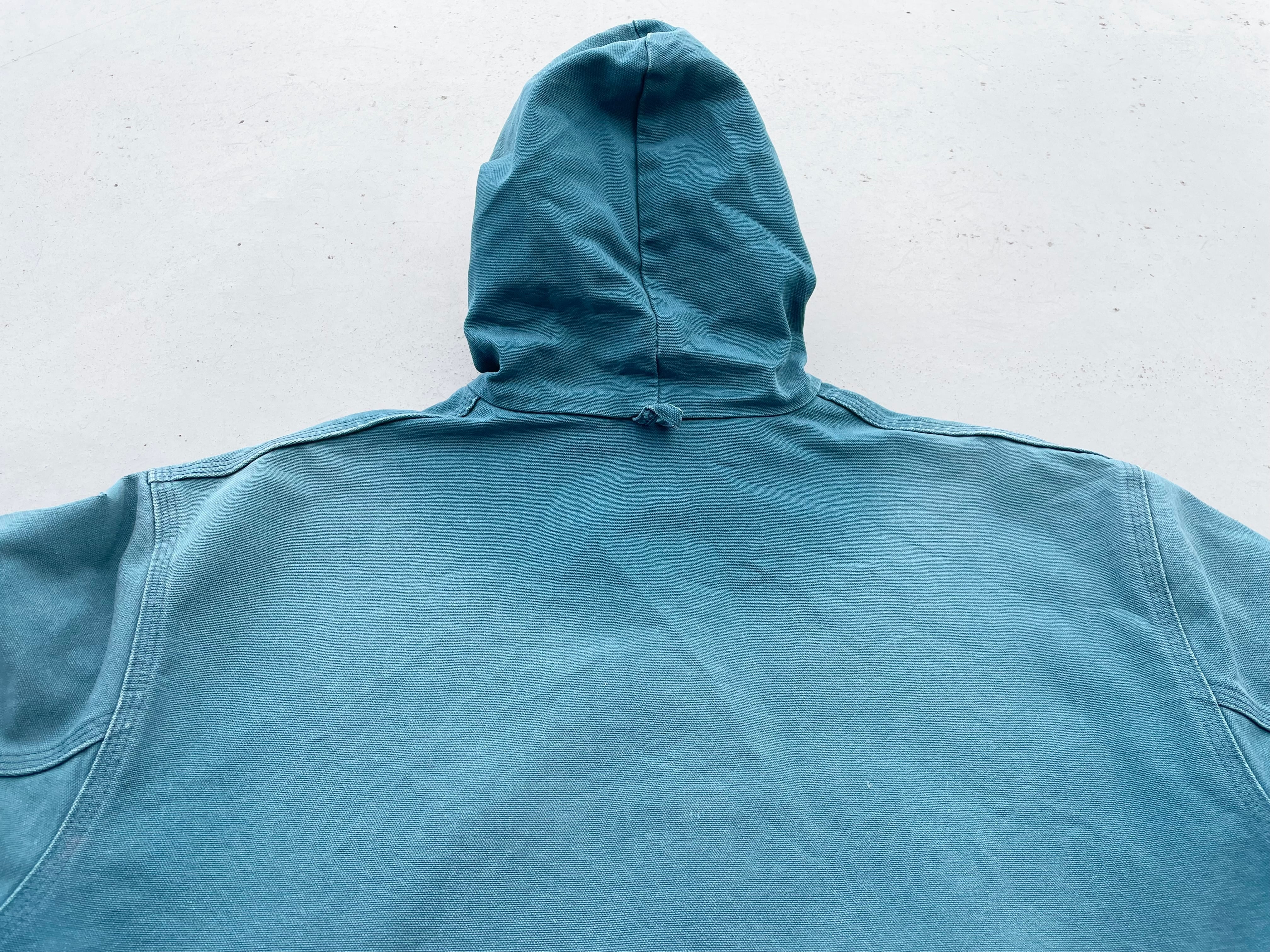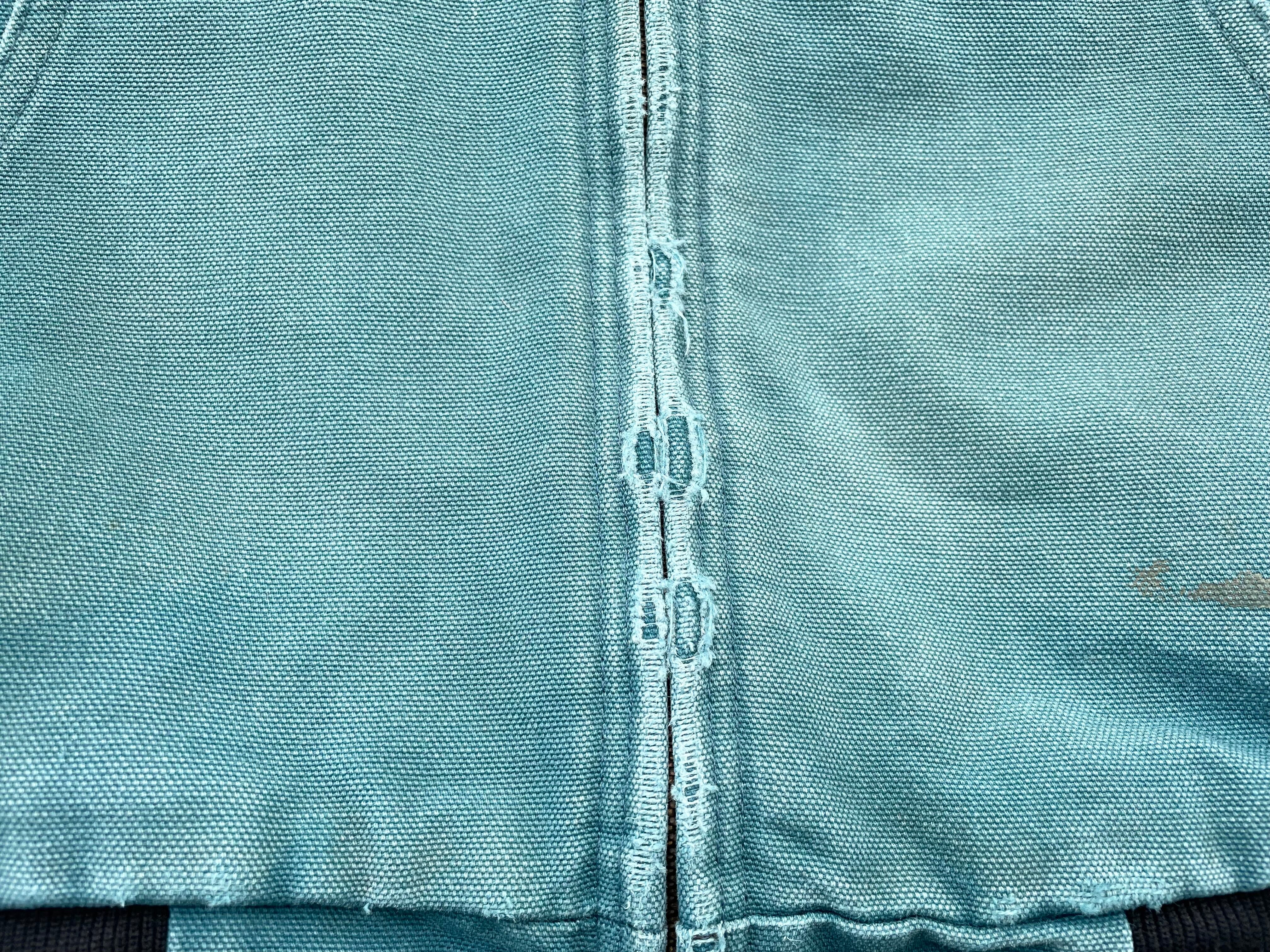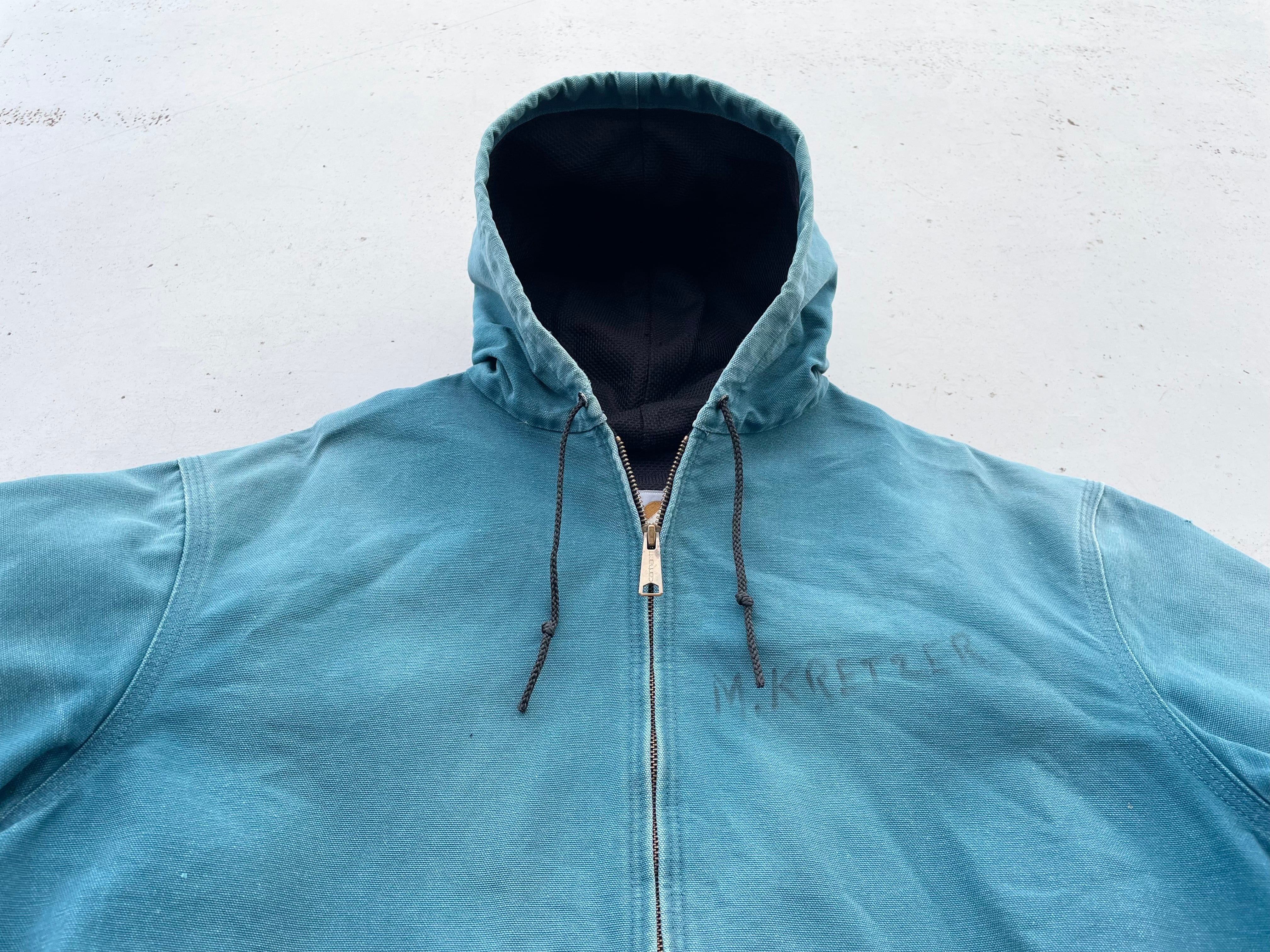 【商品詳細】カーハートのアクティブジャケット。サイズはXL。カラーはターコイズ。80-90年代頃USA製。人気のターコイズカラー物。ダック特有のフェード感が良い雰囲気出てます。袖にはハチノスもありこれも良い感じです。裏サーマルで春以降も活躍しそうです。