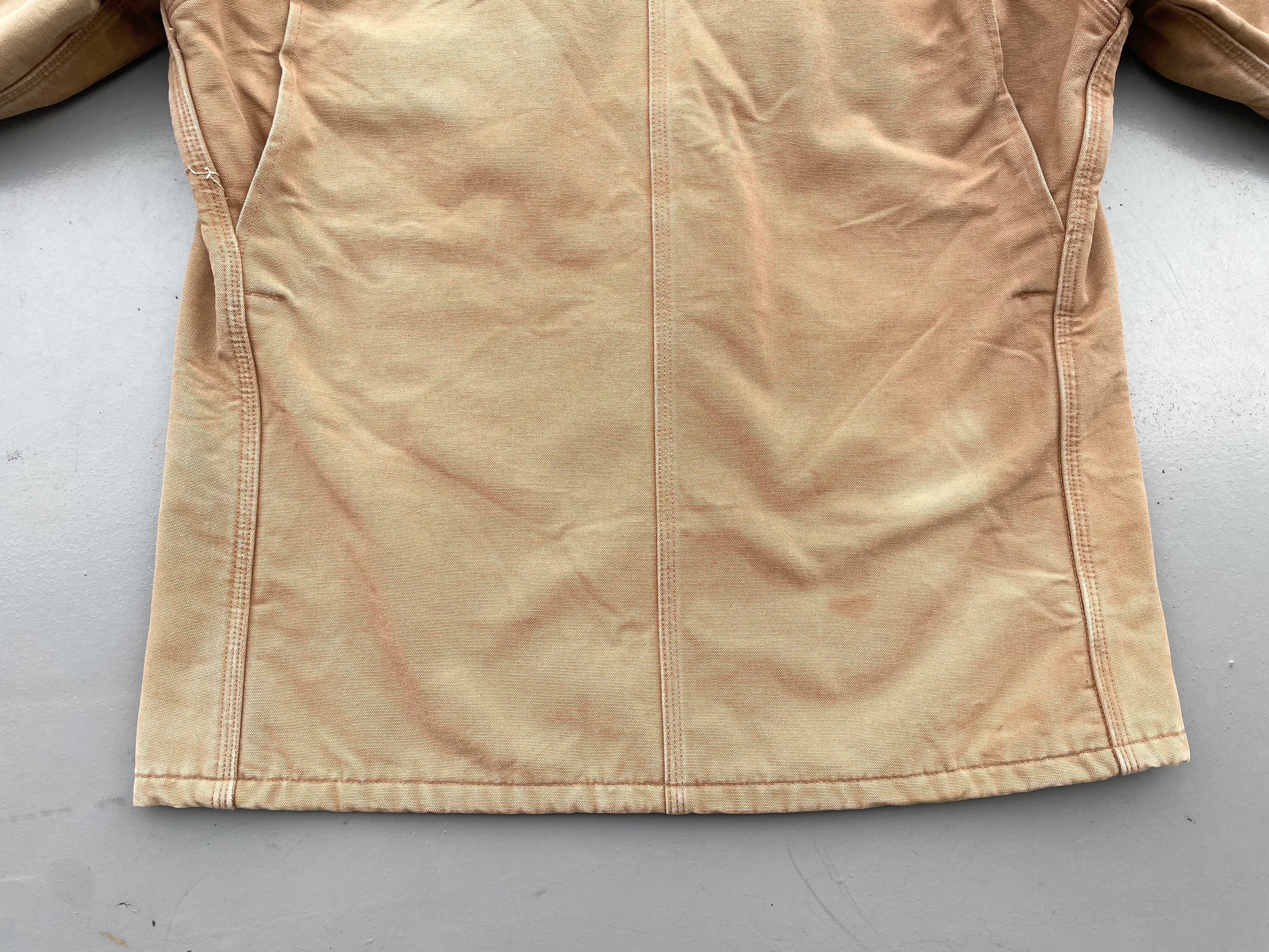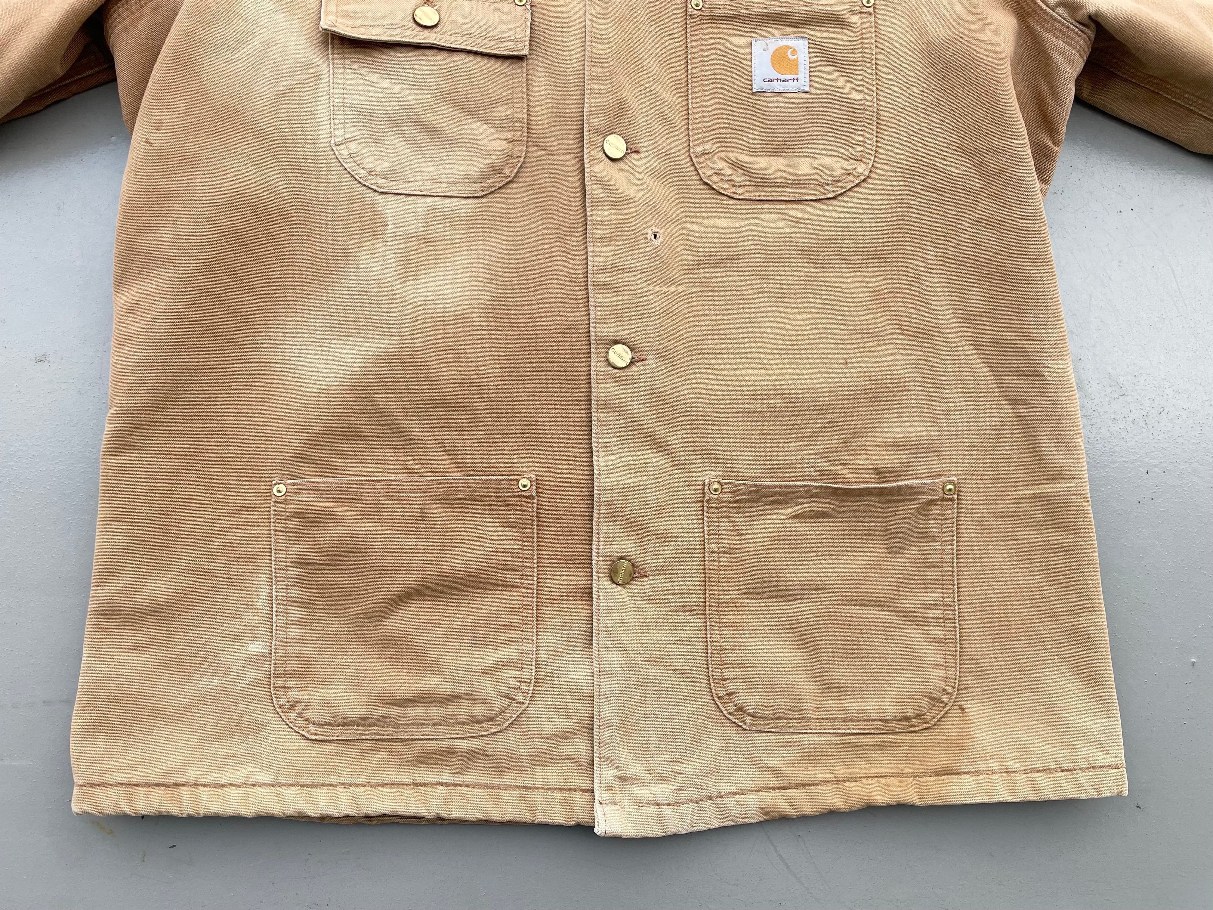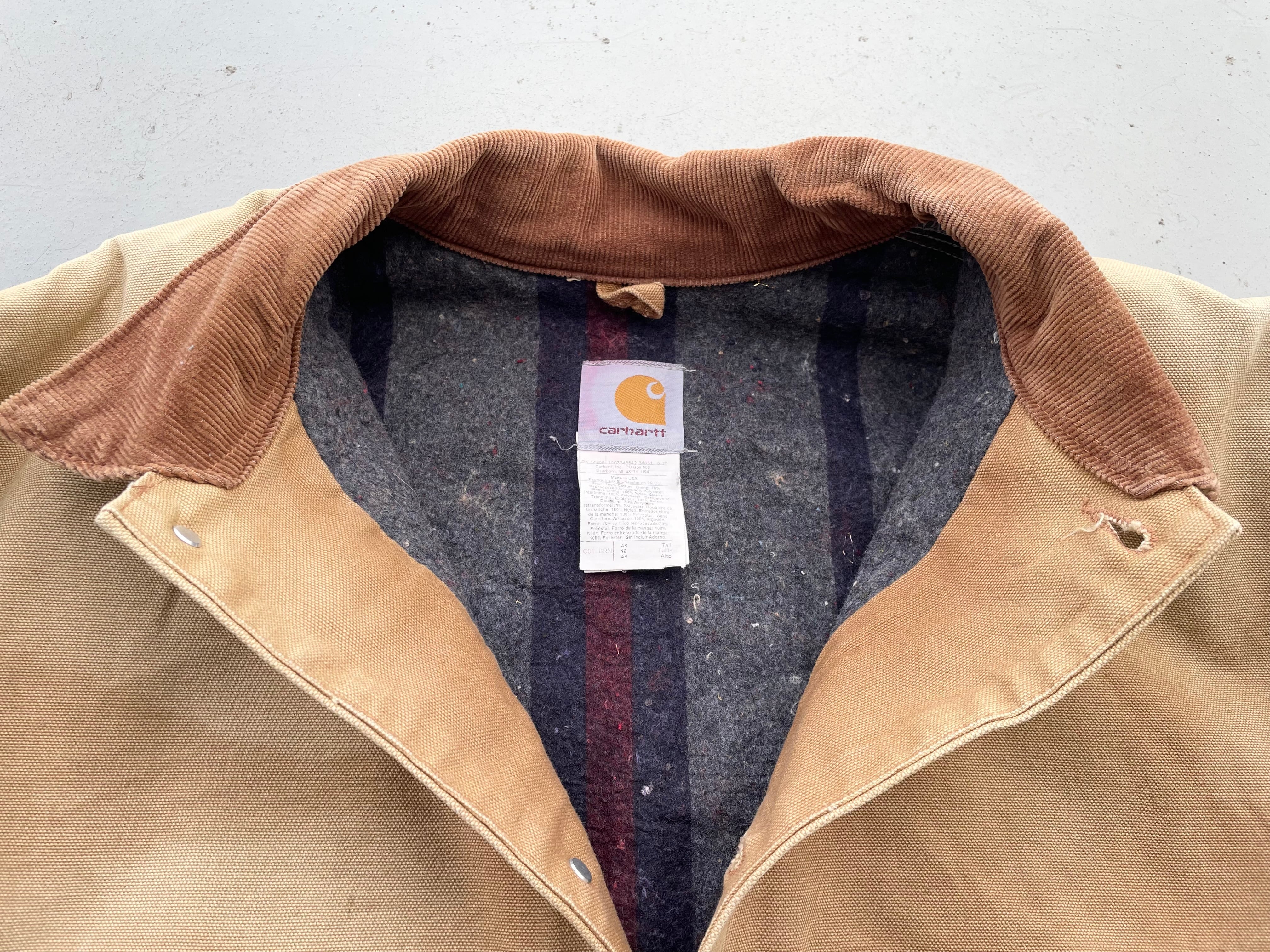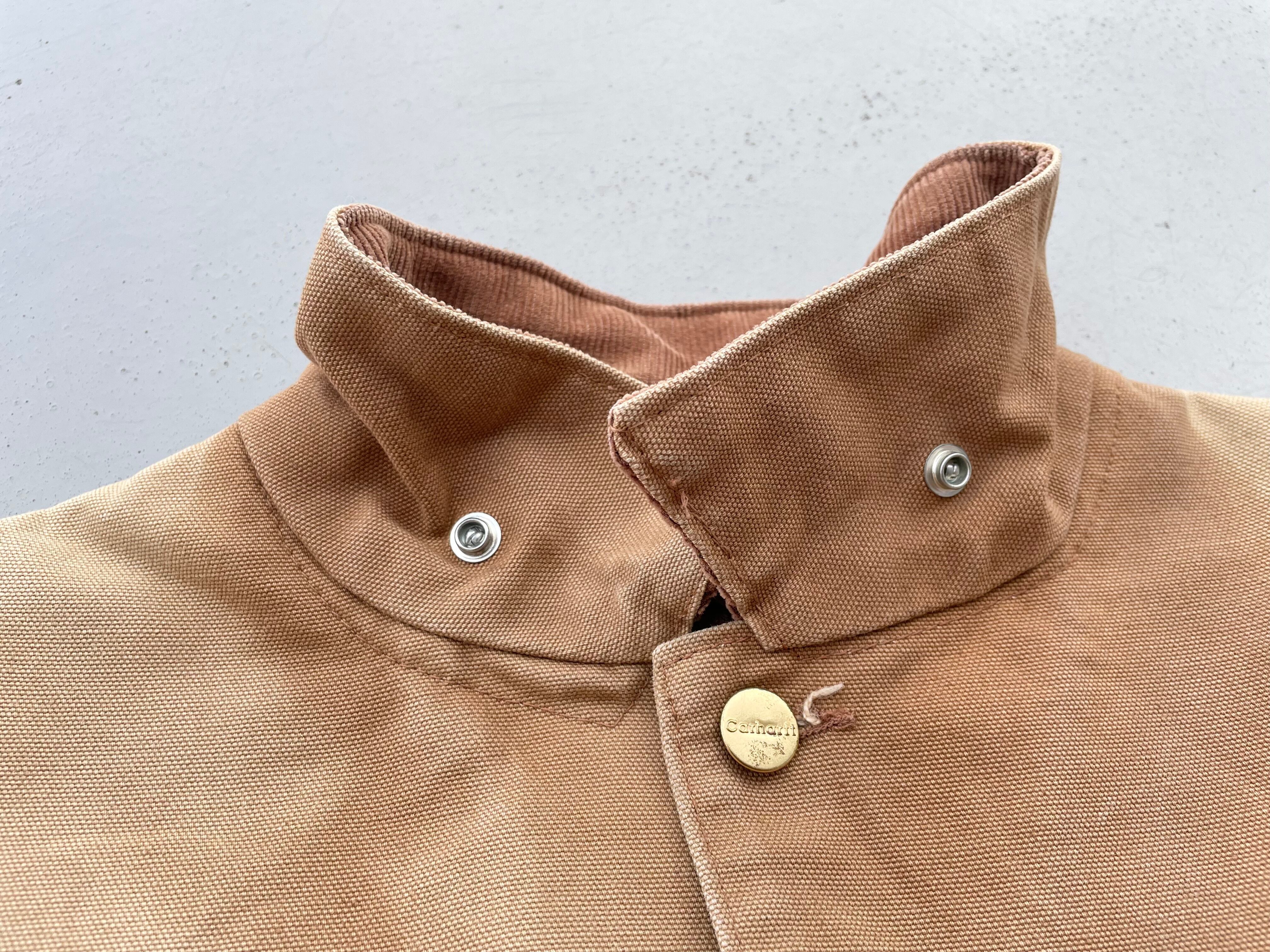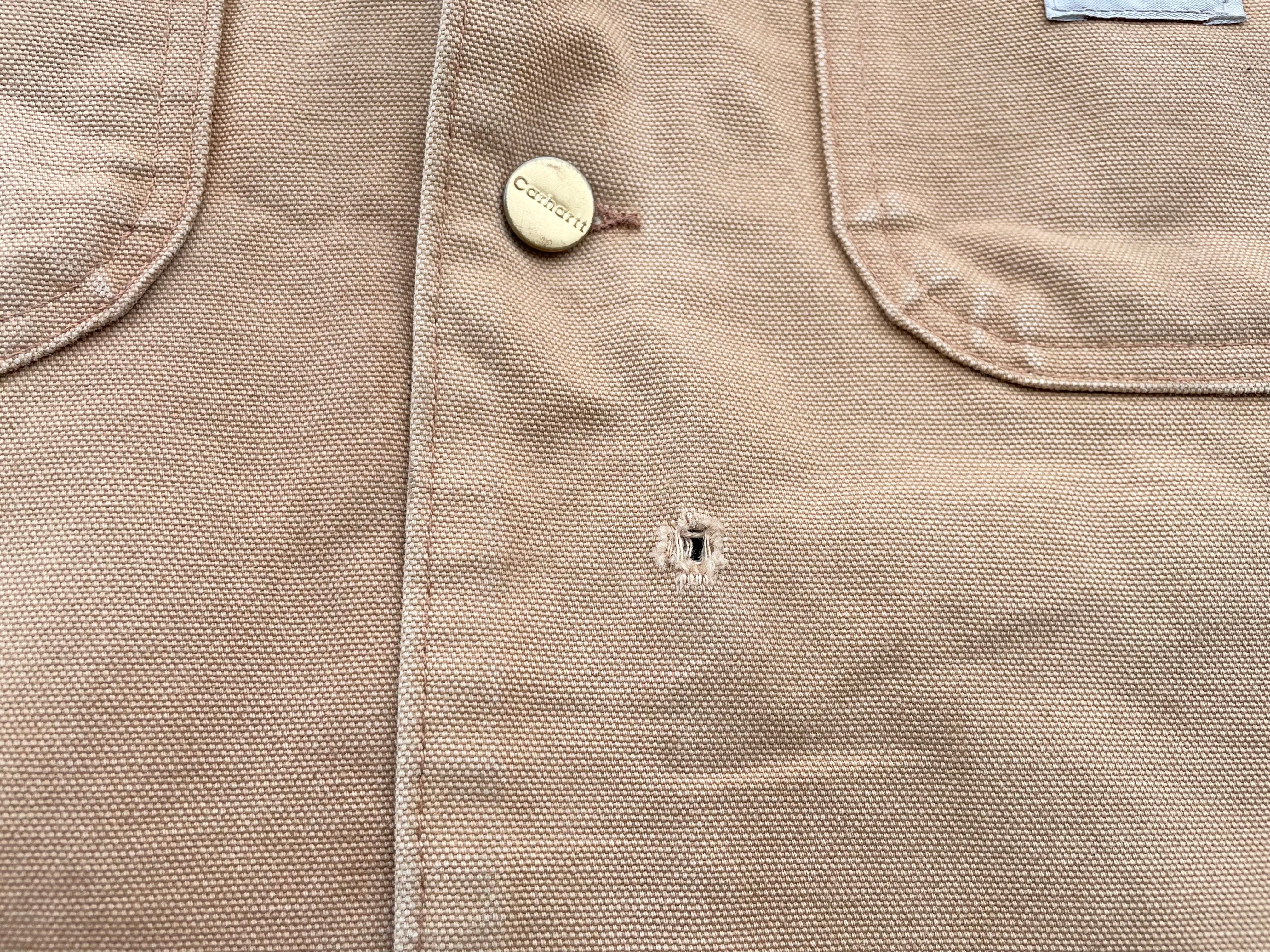 【商品詳細】カーハートのミシガンチョアコート。サイズは46。カラーはブラウン。03年USA製。カーハート定番モデルのミシガンチョアコート。ど真ん中カラーのブラウン。良い塩梅に使用感や汚れ等あり雰囲気あります。裏地ブランケット仕様で今時期活躍しそうです。