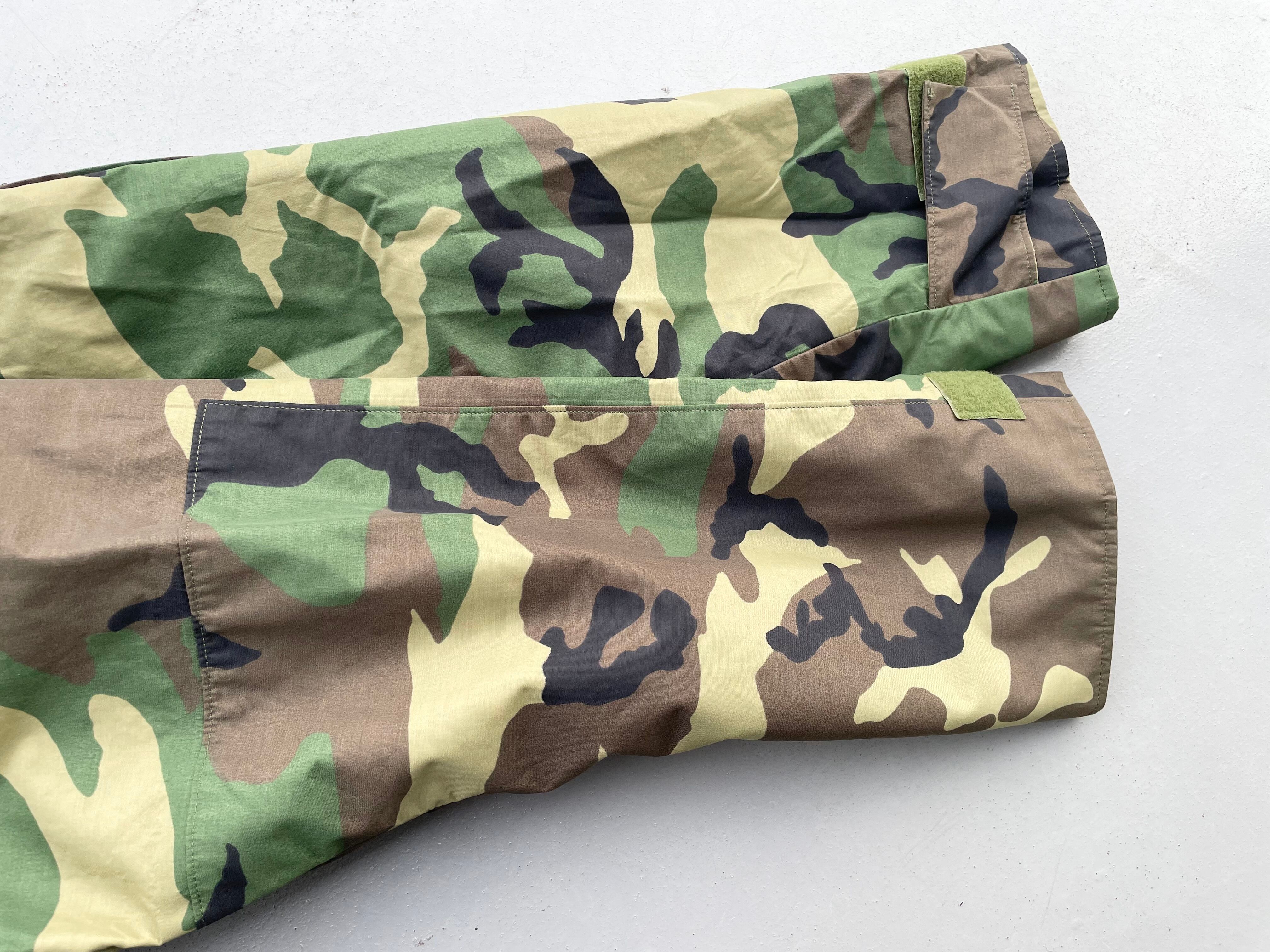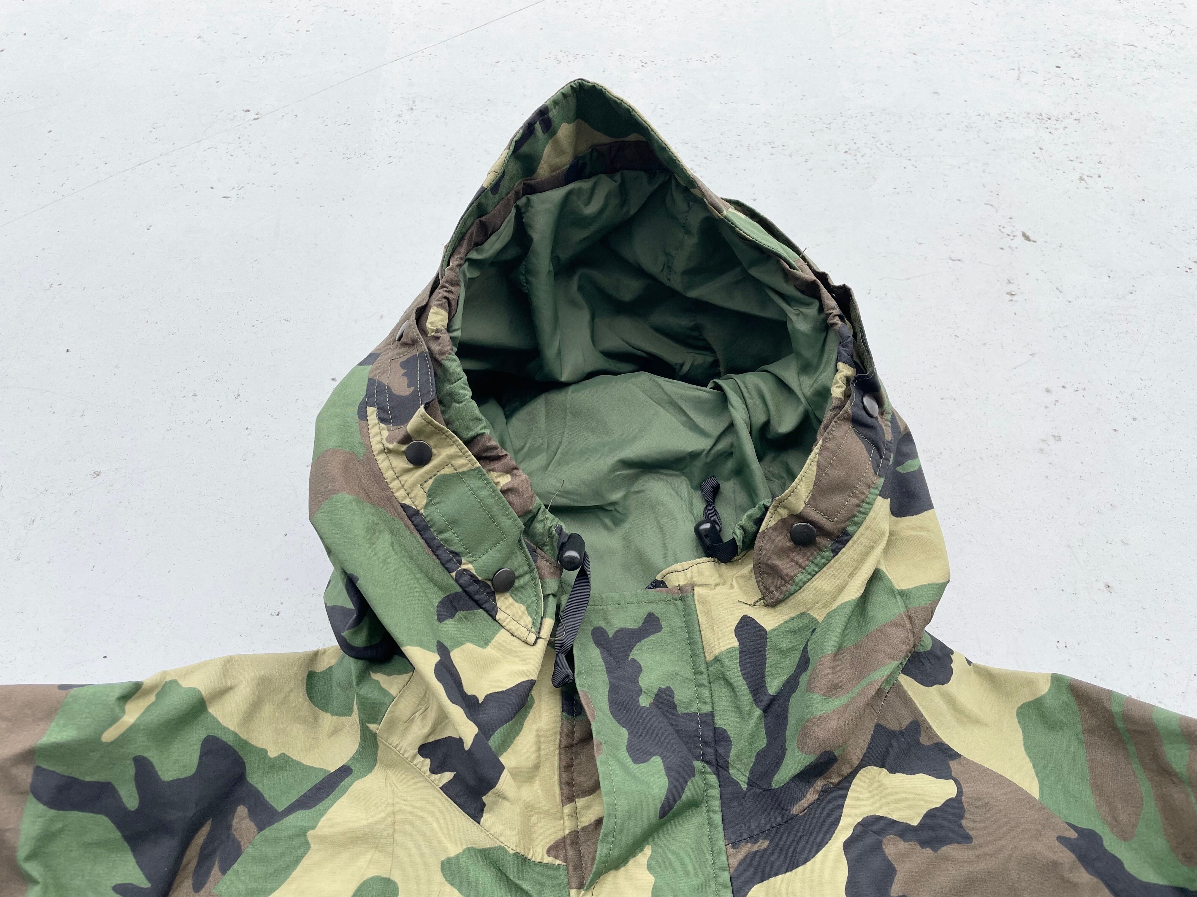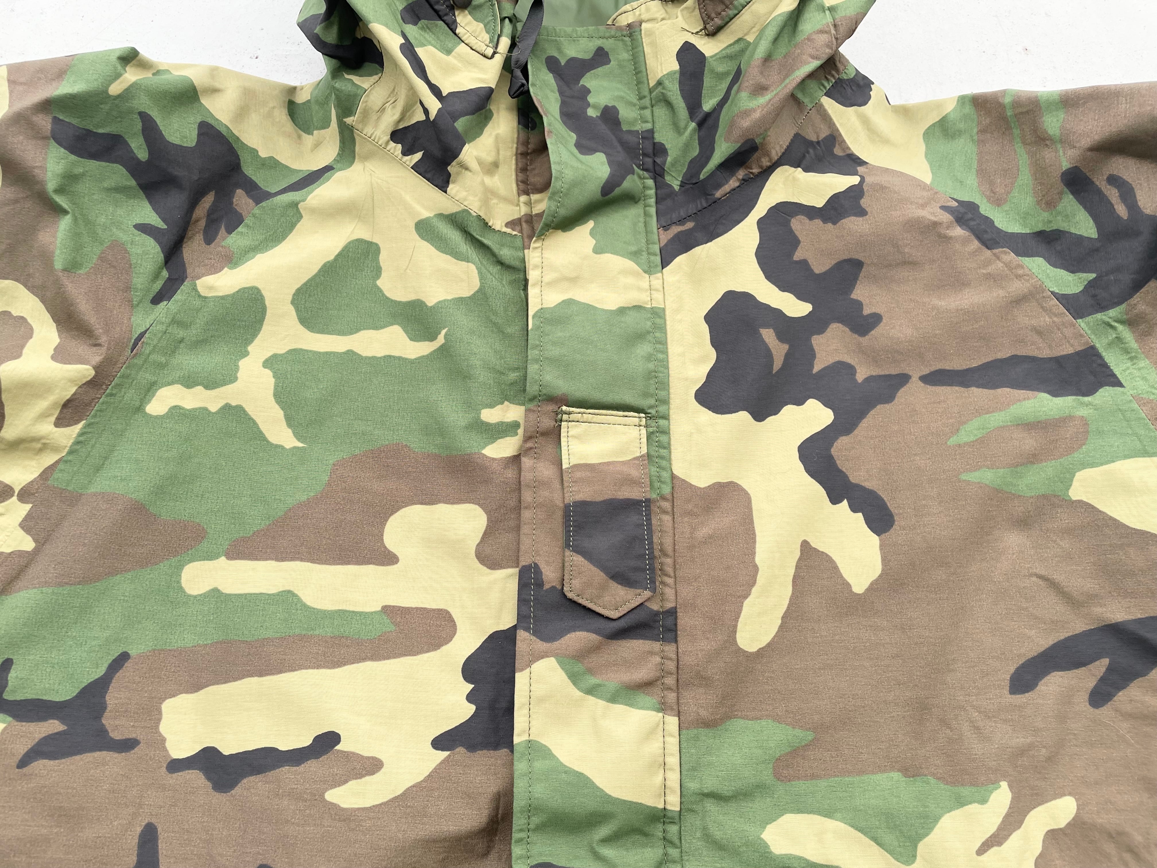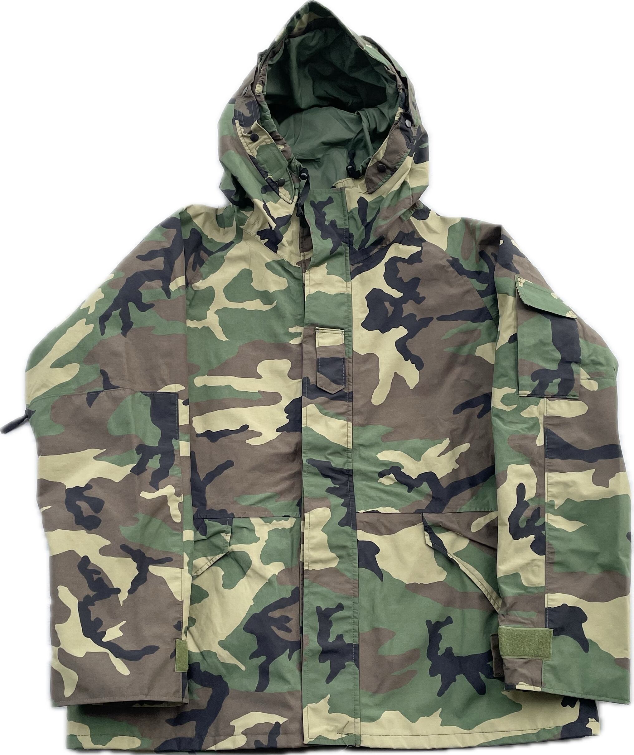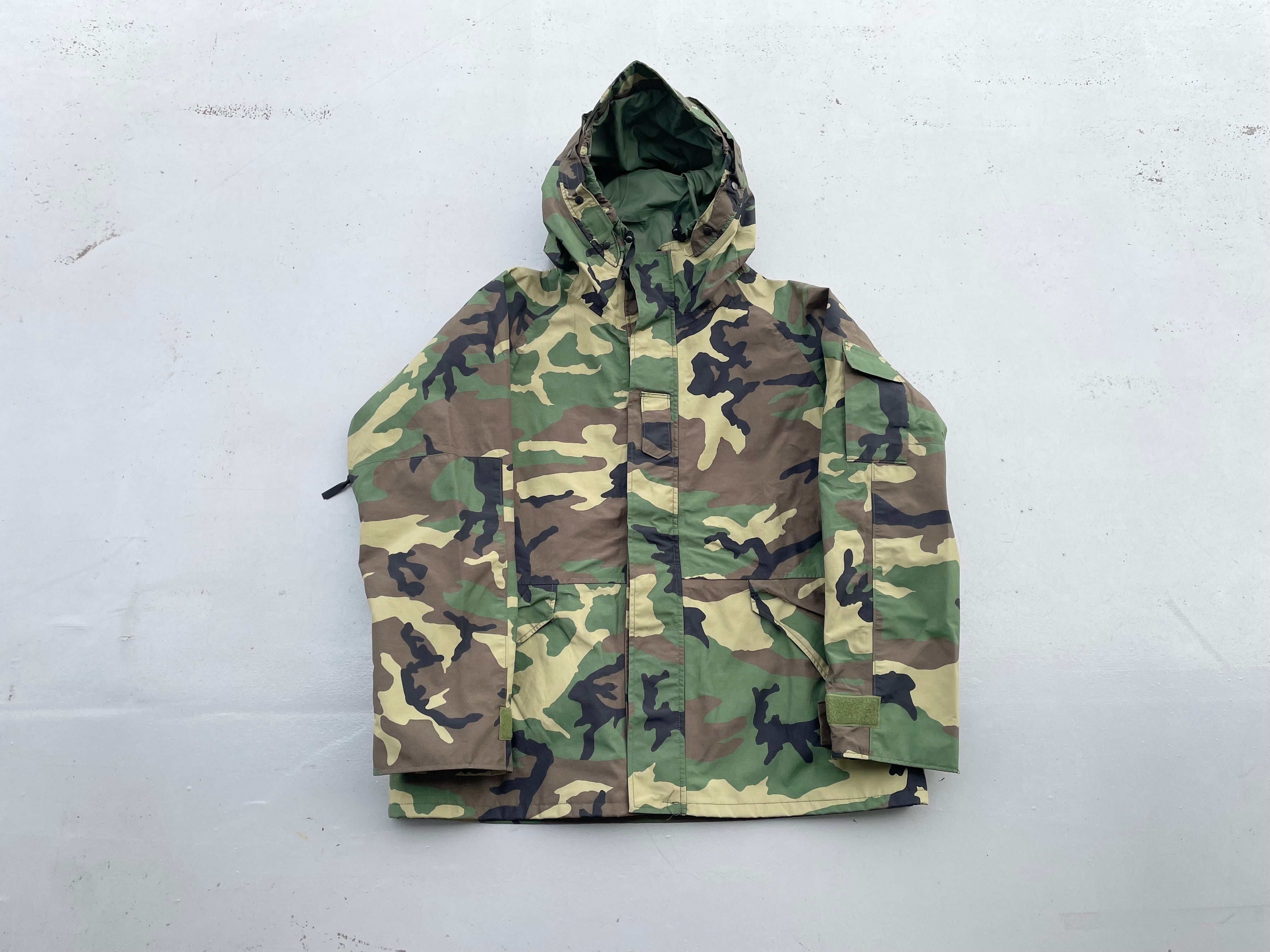 【商品詳細】U.S.ARMY ECWCS PARKA。サイズはXL-R。カラーはグリーンベースのウッドランドカモ。00年USA製。1st Gen後期タイプ。フロントは防水・撥水性のあるゴアテックスナイロン素材を使用し内側はインナーサポーター付きで風を通しません。一方で脇にベンチレーションがついている為熱を逃す事も出来るので夏以外の季節は着れる優れ者。実寸の通りXLですが大き過ぎず着回しやすそうです。
