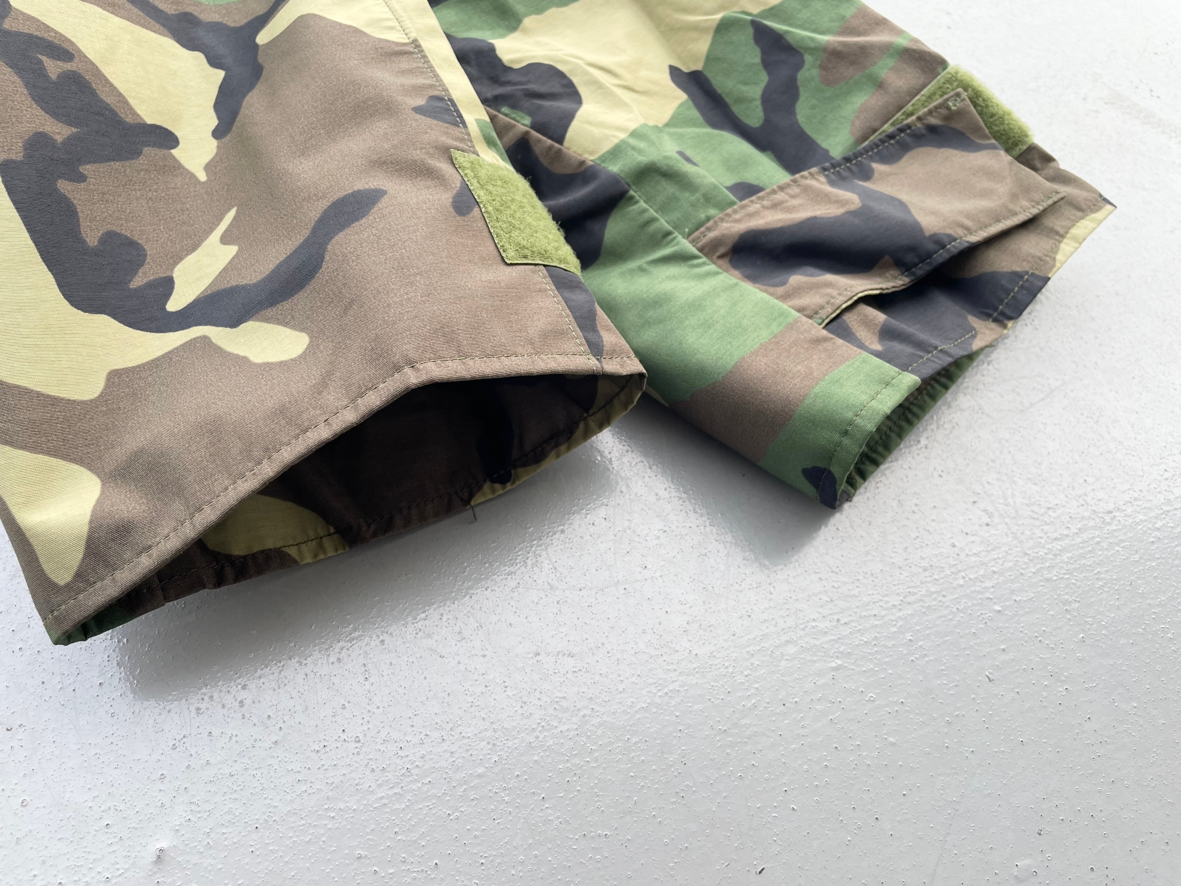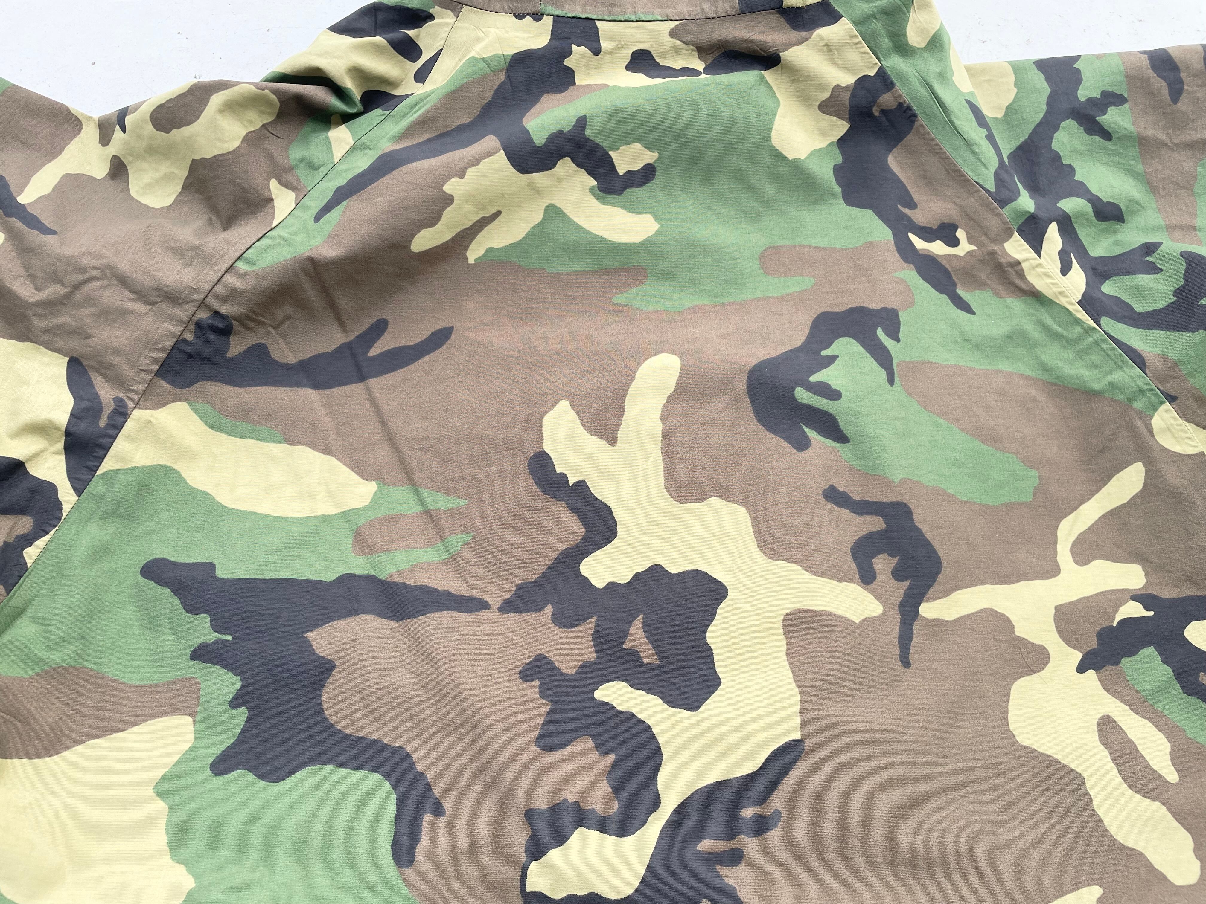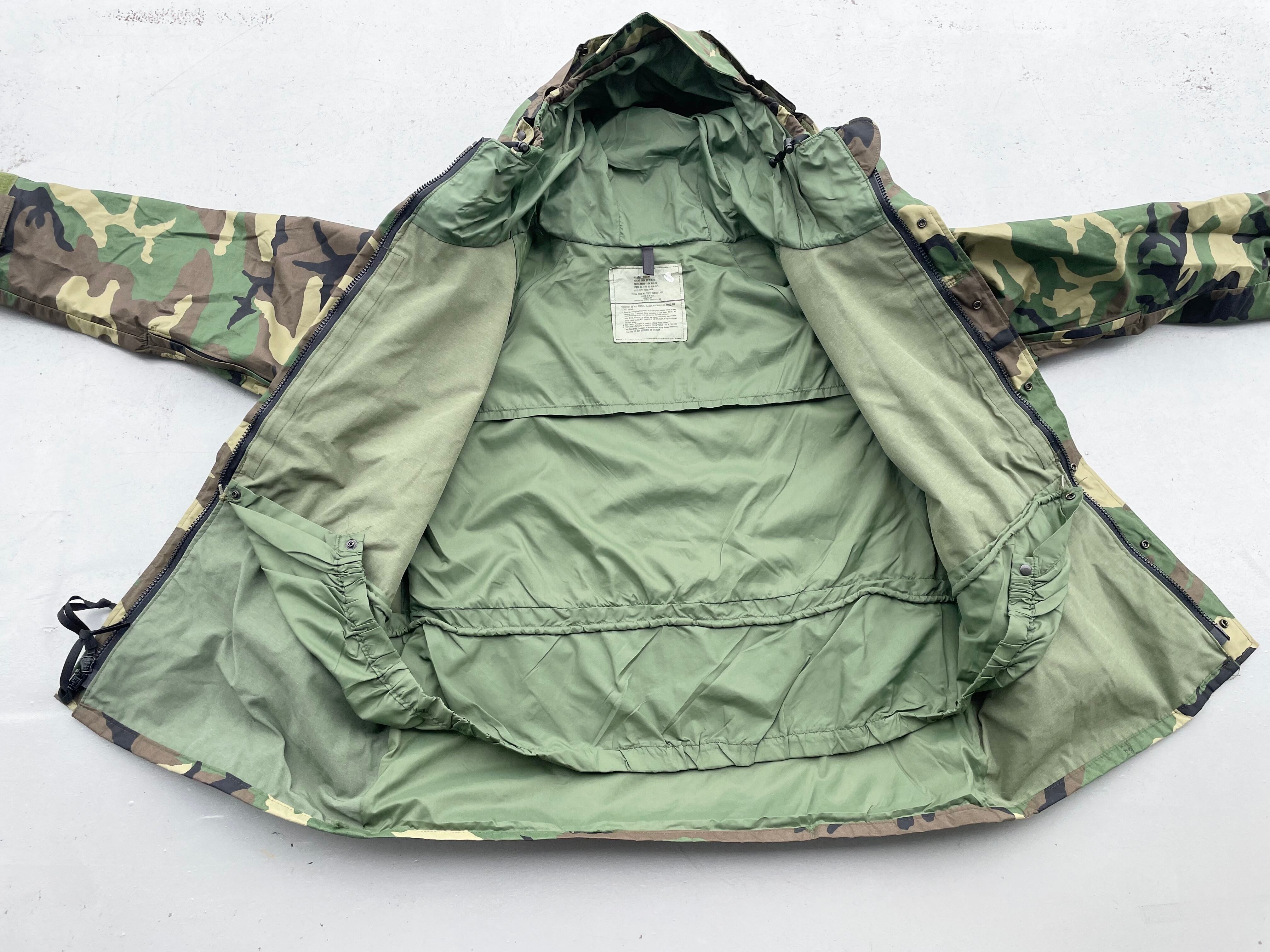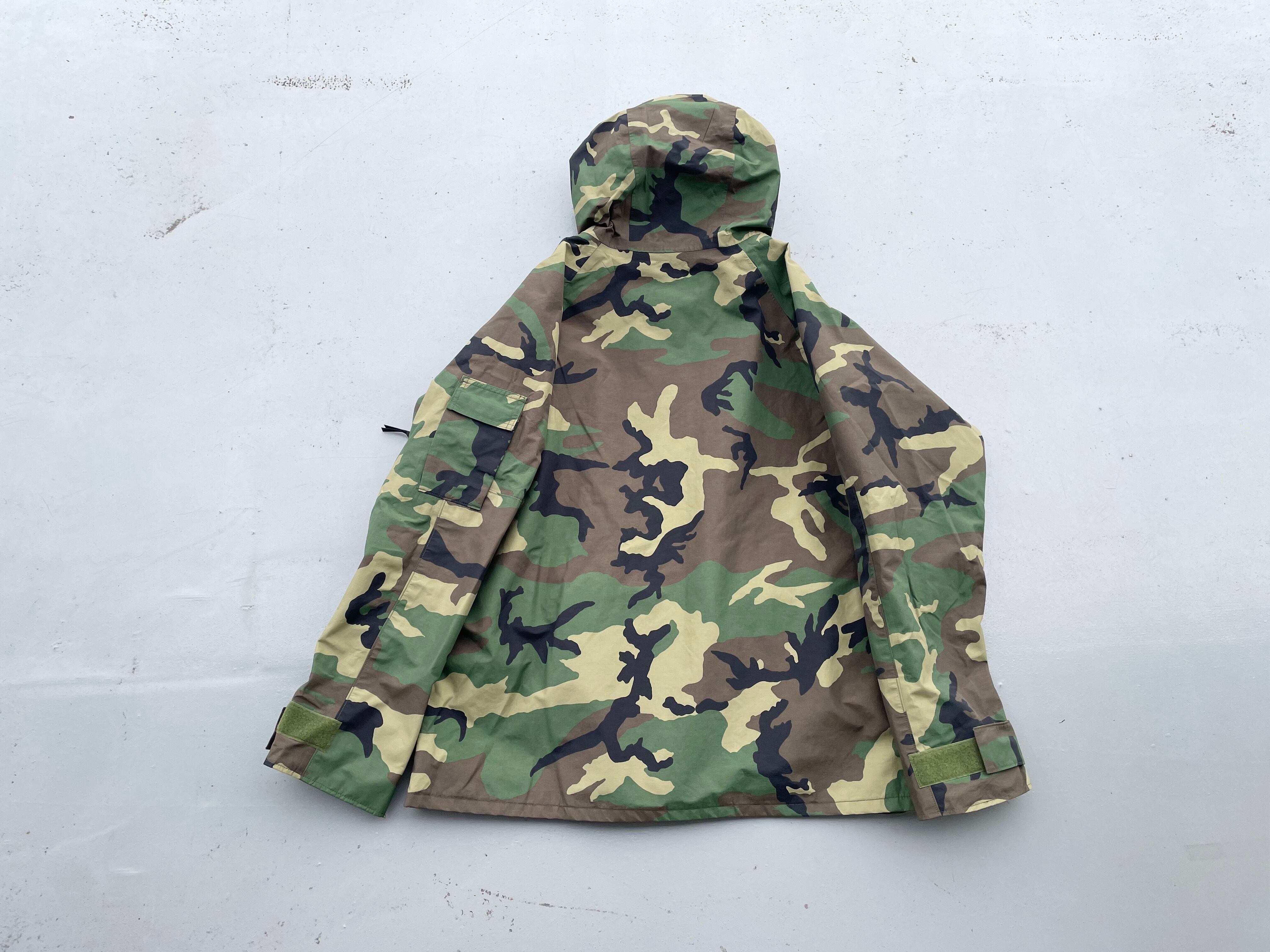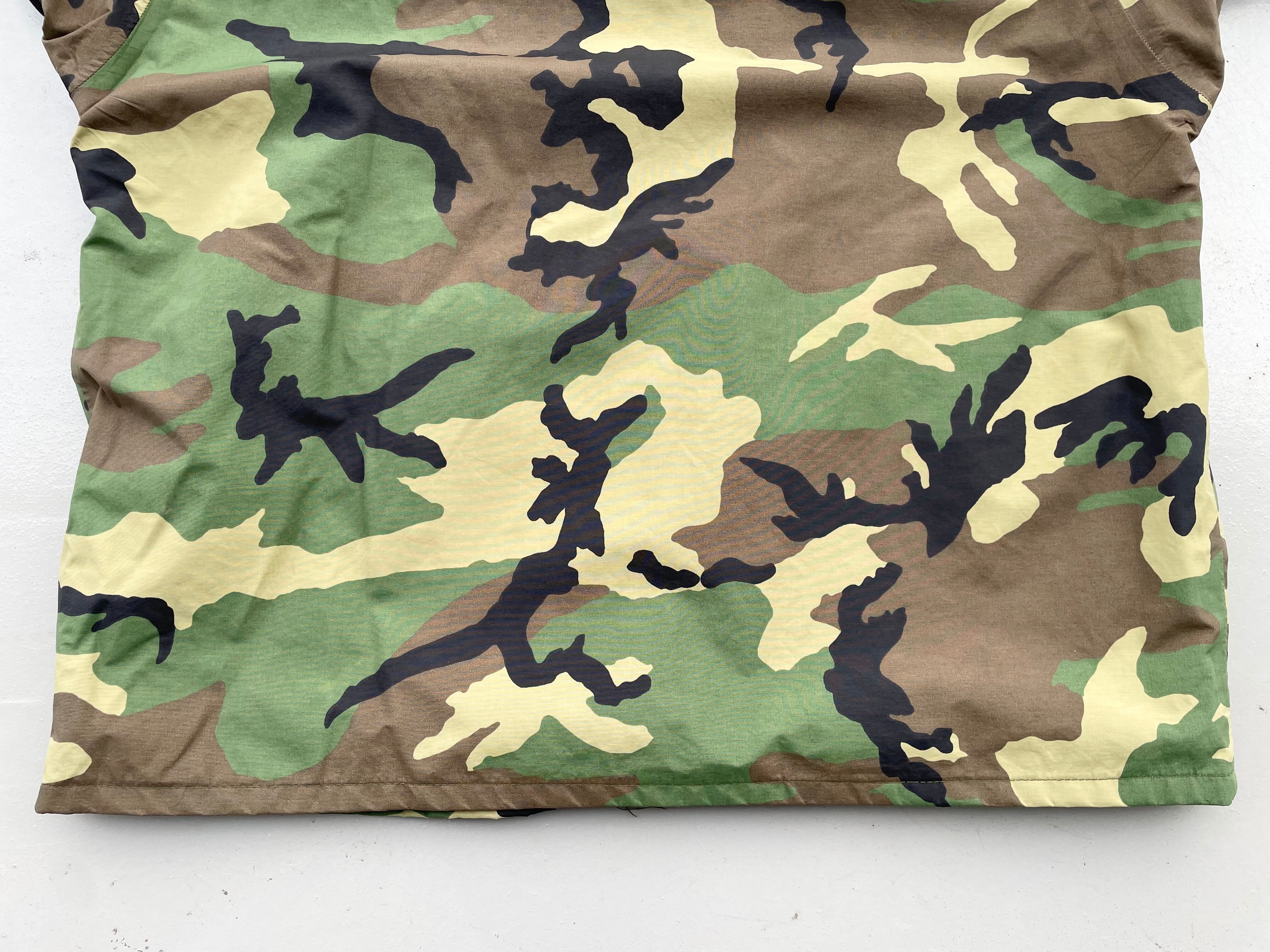 【商品詳細】U.S.ARMY ECWCS PARKA。サイズはXL-R。カラーはグリーンベースのウッドランドカモ。00年USA製。1st Gen後期タイプ。フロントは防水・撥水性のあるゴアテックスナイロン素材を使用し内側はインナーサポーター付きで風を通しません。一方で脇にベンチレーションがついている為熱を逃す事も出来るので夏以外の季節は着れる優れ者。実寸の通りXLですが大き過ぎず着回しやすそうです。