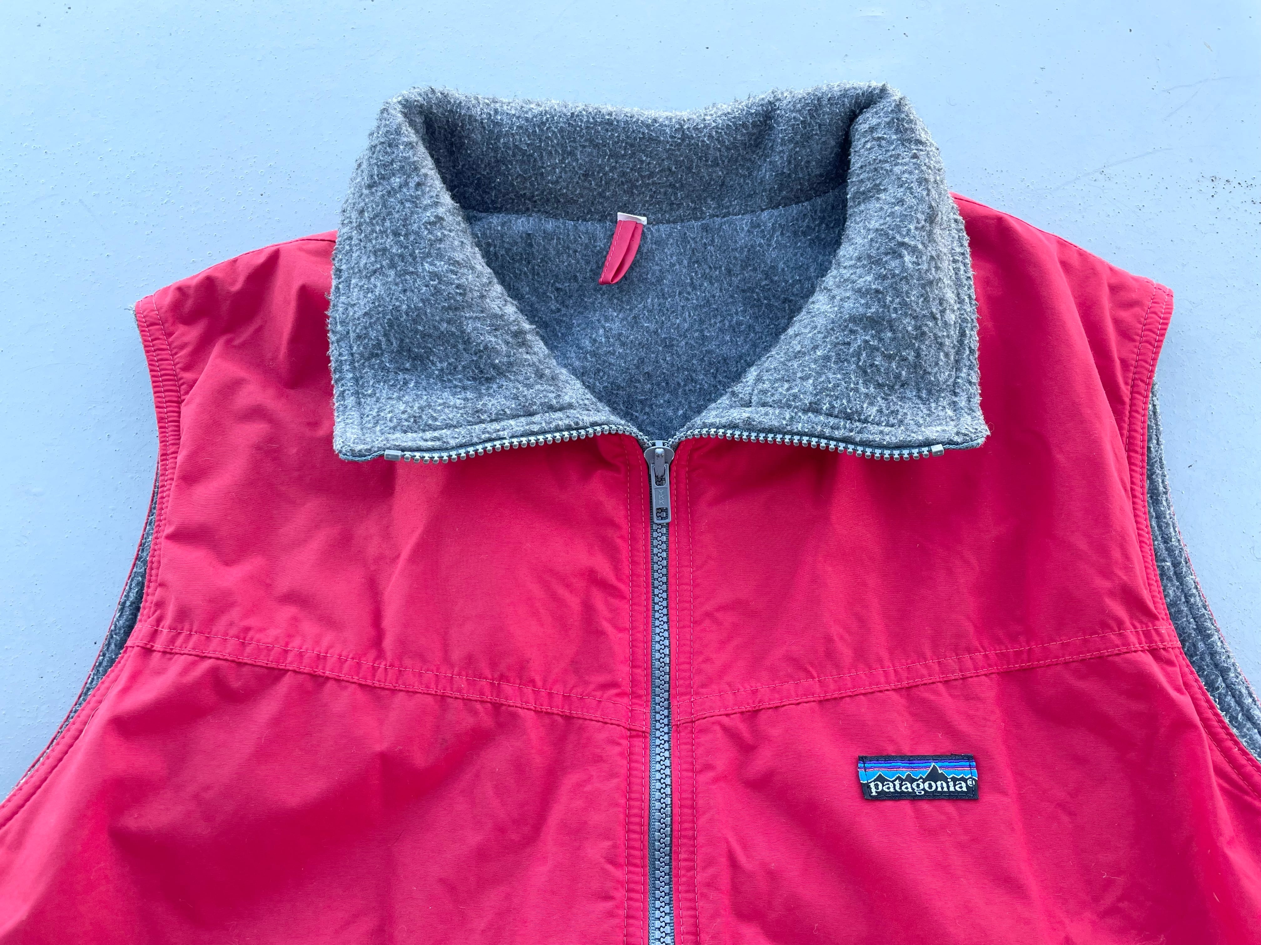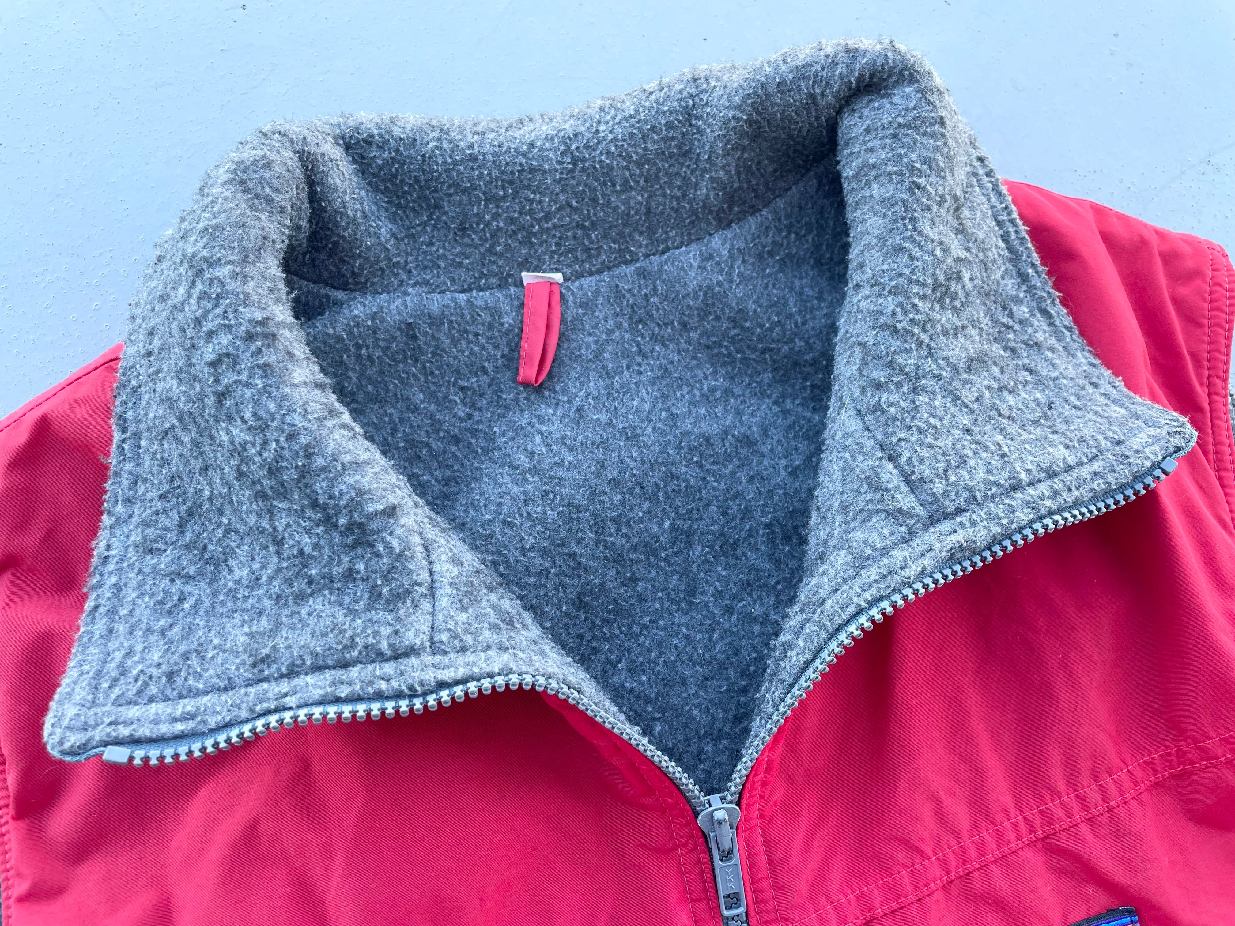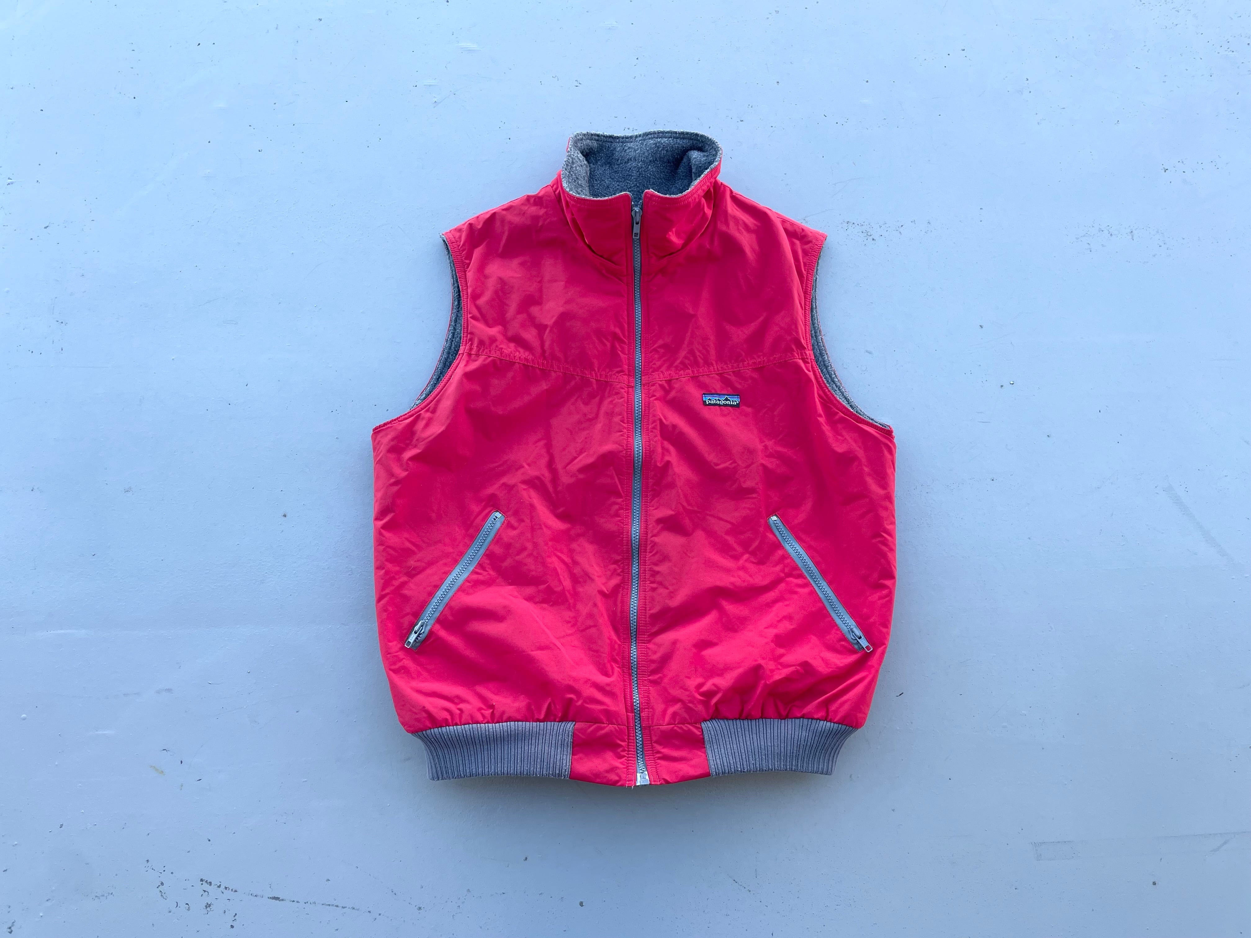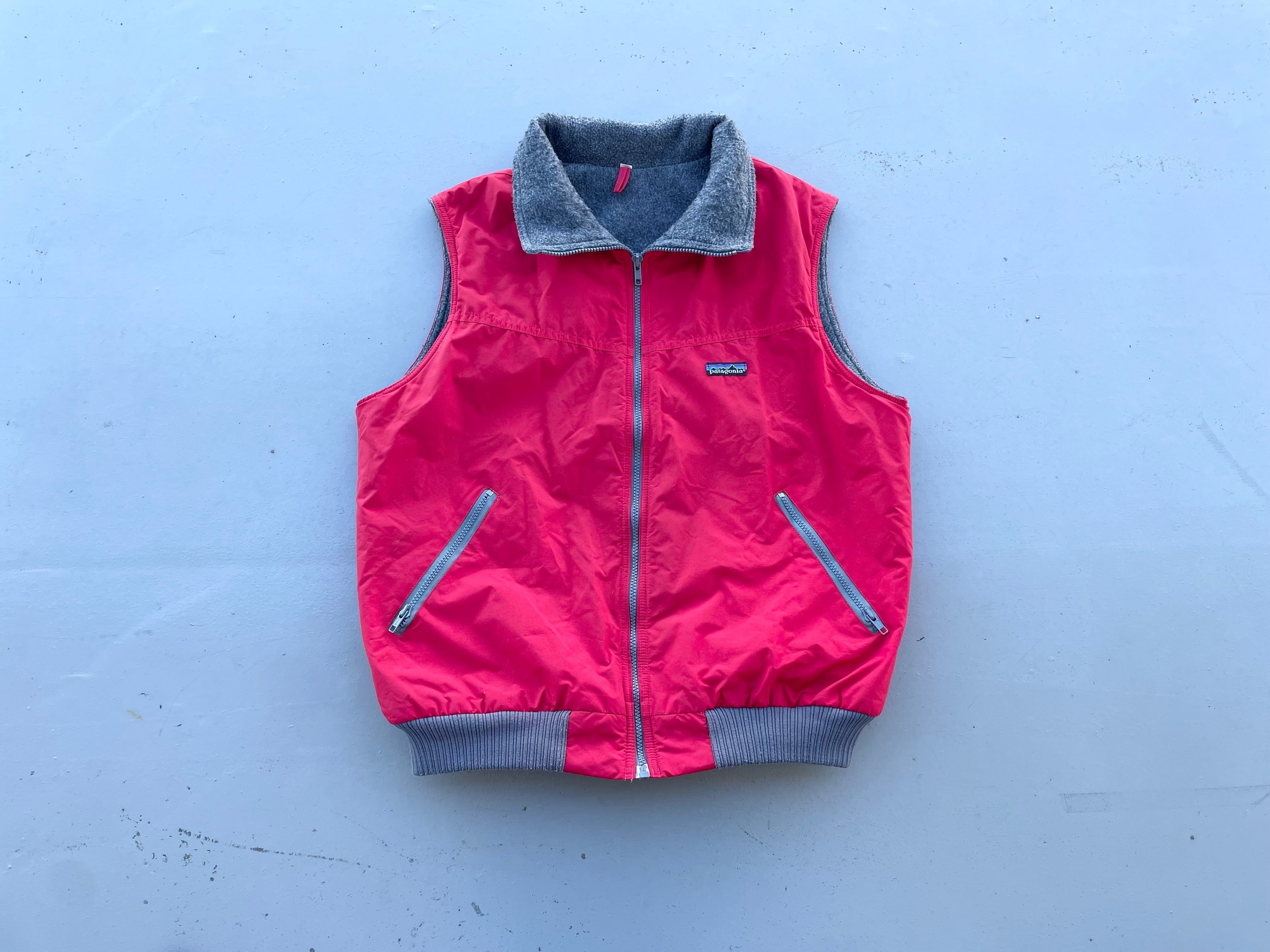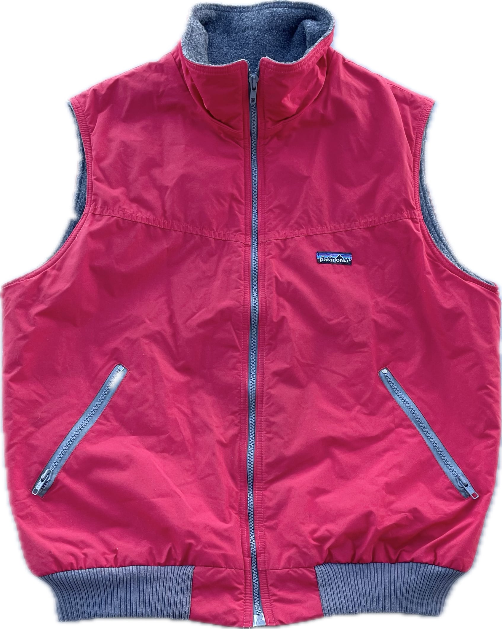 【商品詳細】パタゴニアのシェルドシンチラベスト。サイズはXL。カラーはレッド。80年代製。定番モデルシェルドシンチラのベスト物。こちらは前期モデルの80年製モデル。レトロなレッドカラーと大人なグレーカラーの配色良い感じです。サイズも大きめXLサイズ◎
