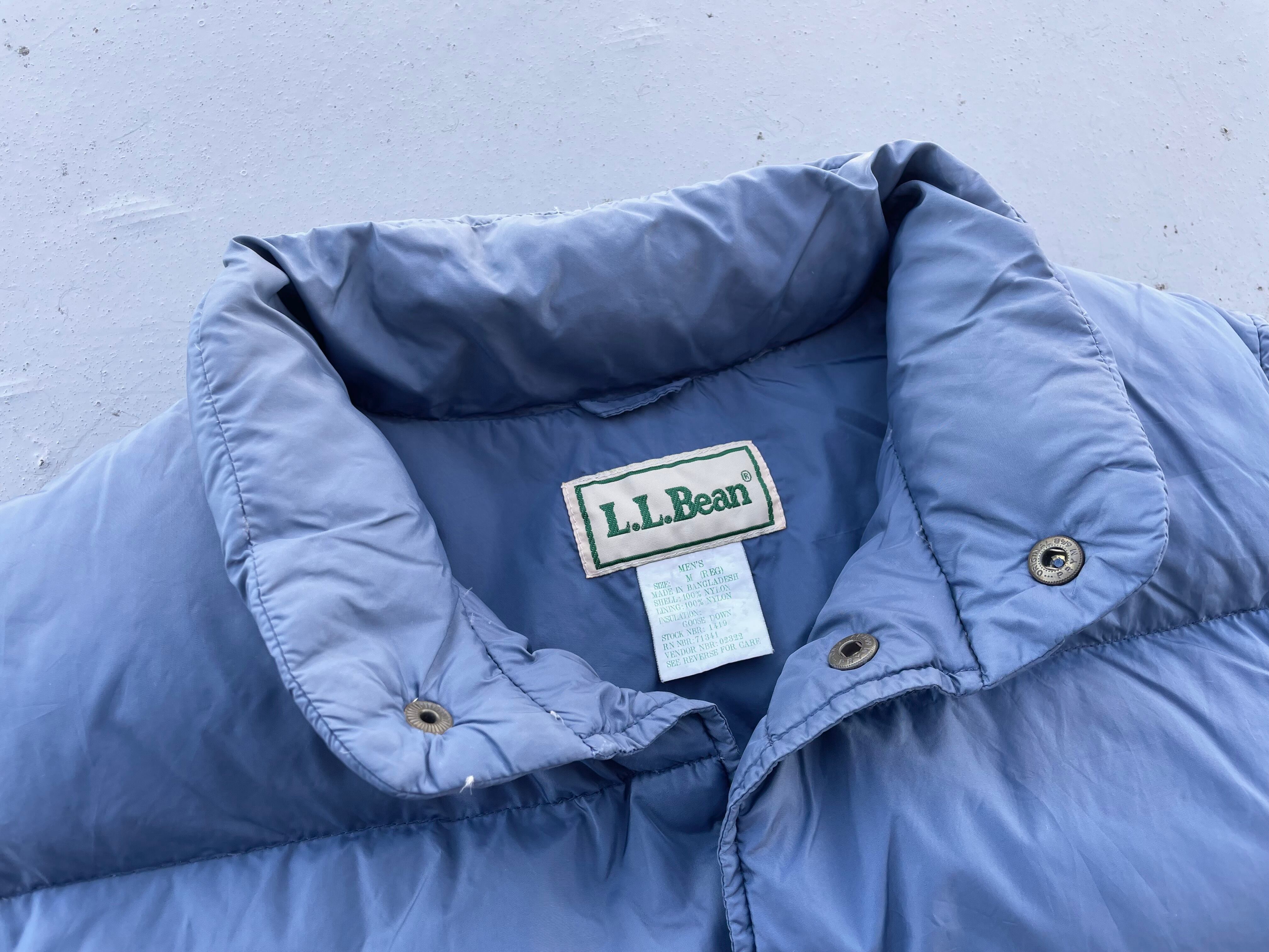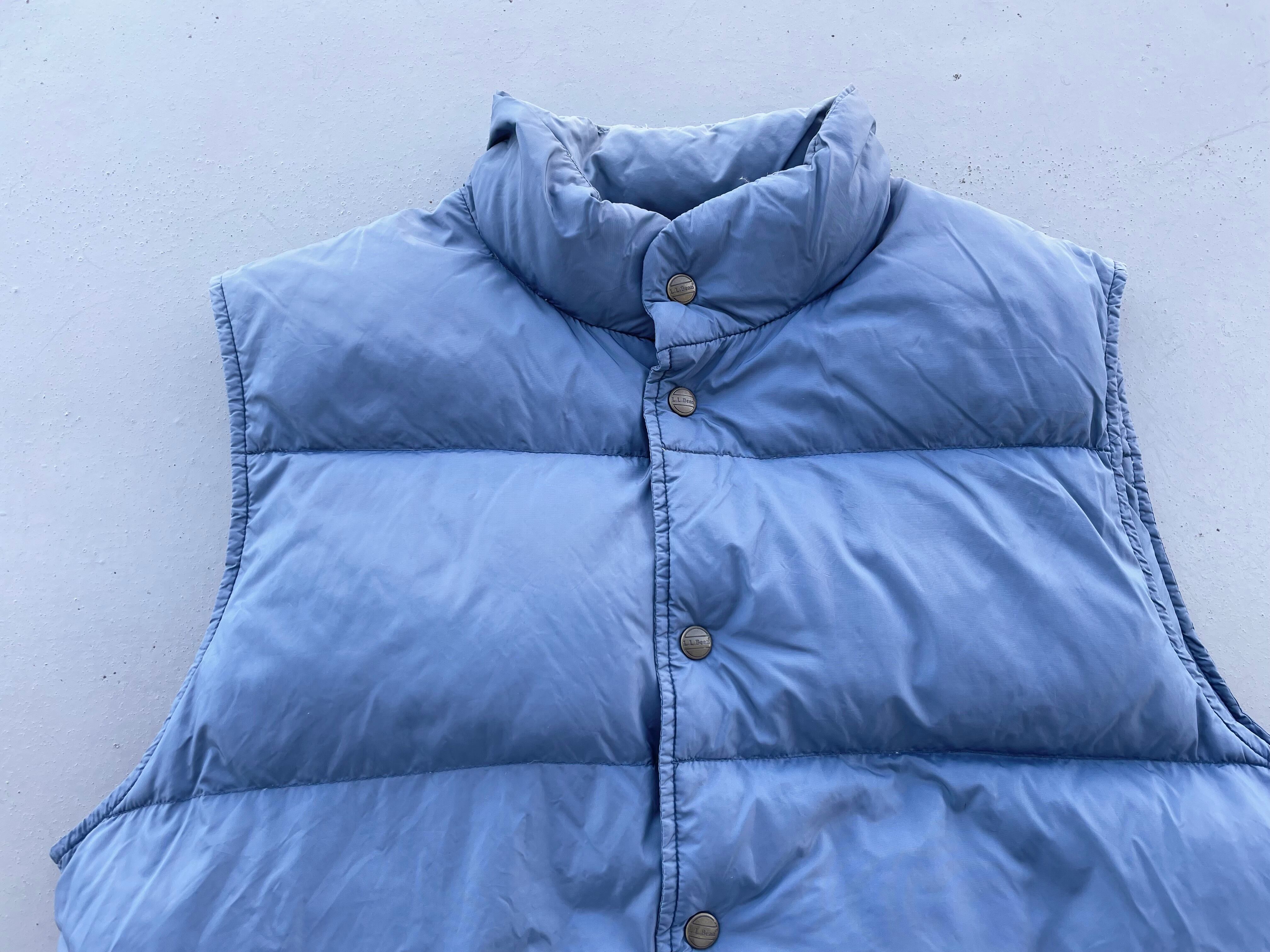 【商品詳細】エルエルビーンのダウンベスト。サイズはMENS L。カラーはブルーグレー。90年代バングラディシュ製。人気のダウンベスト物。柔らかい気持ちの良い触り心地で年代物ですがシェル自体のコンディションは良さそうです。