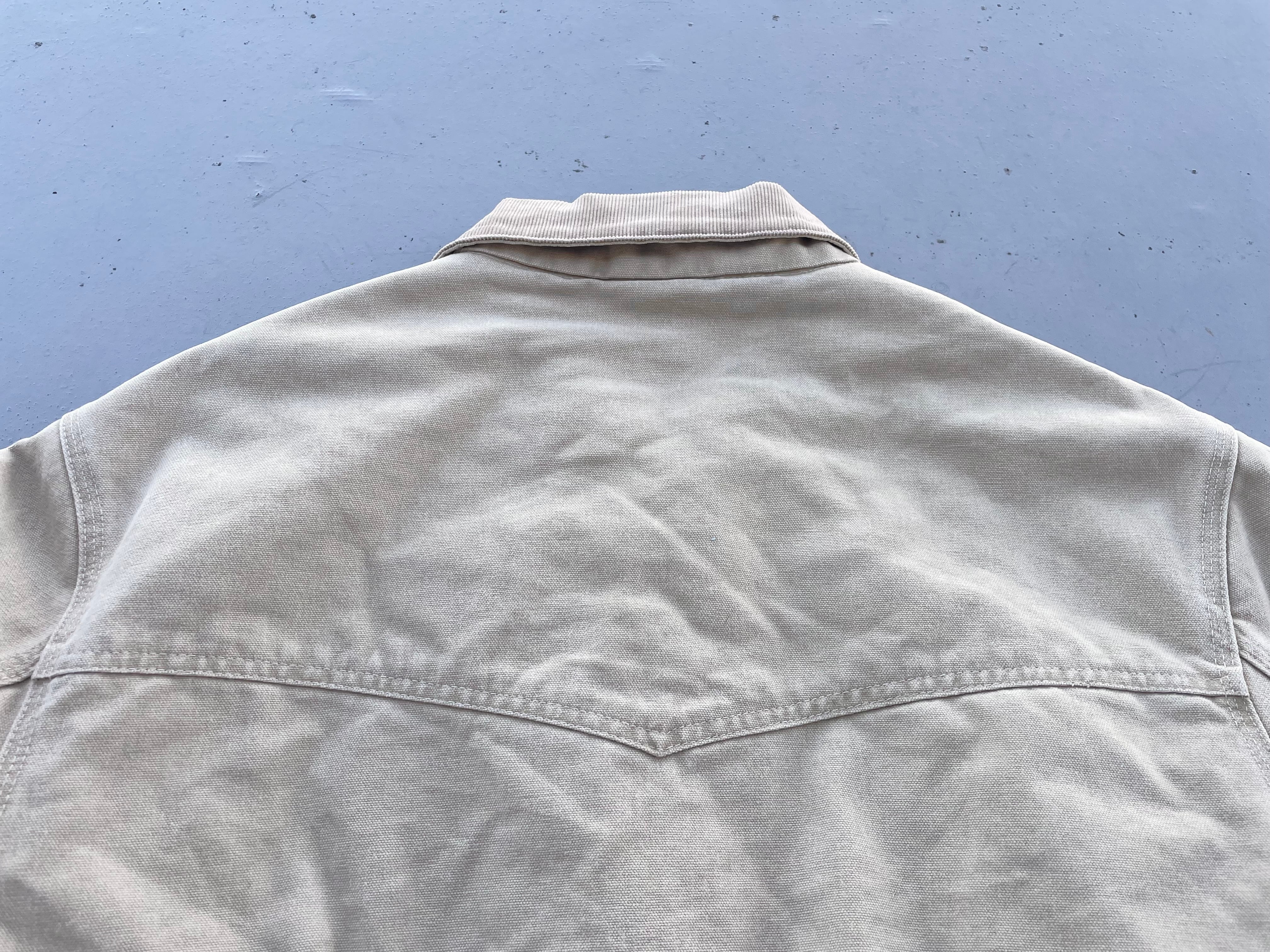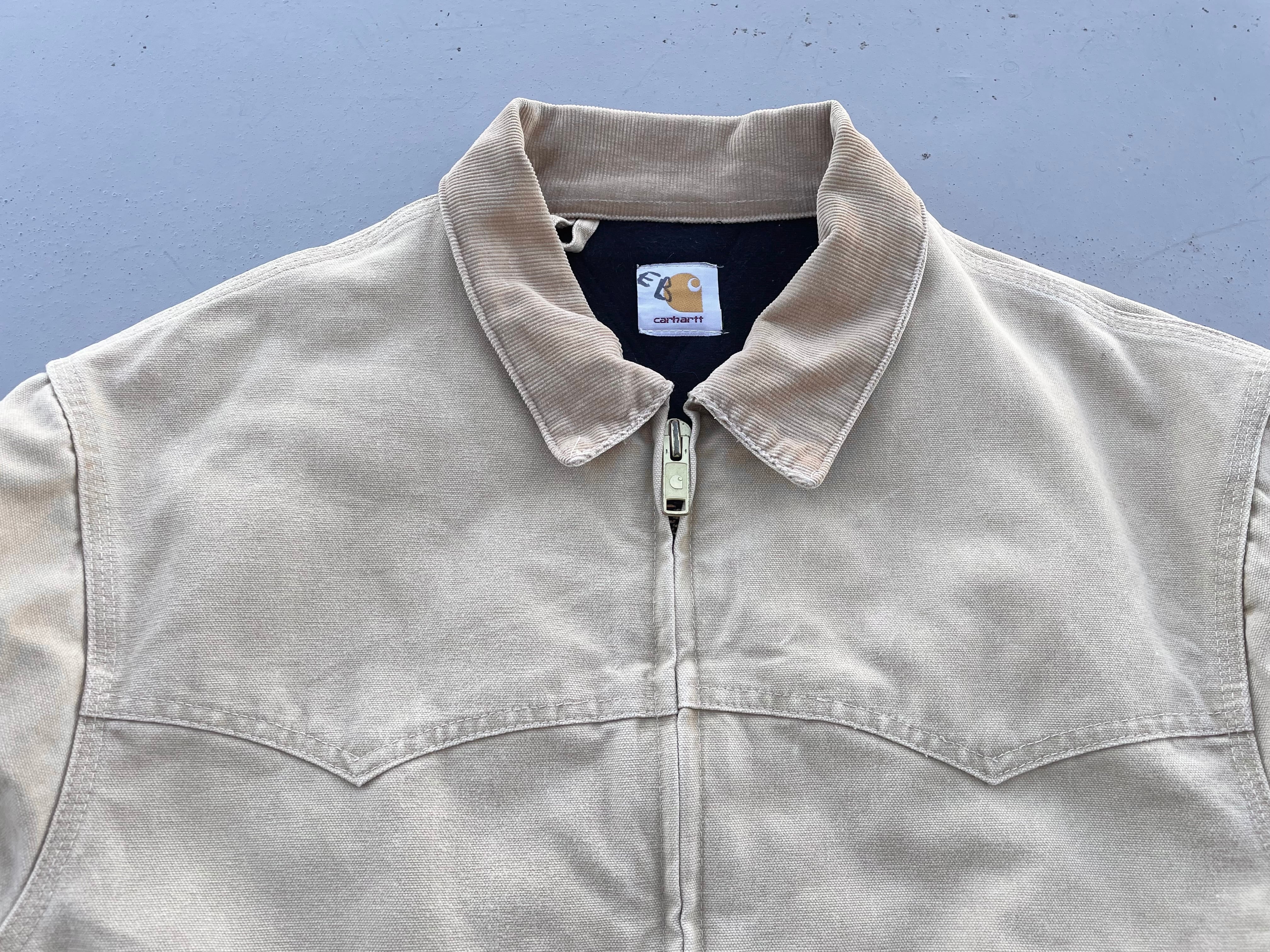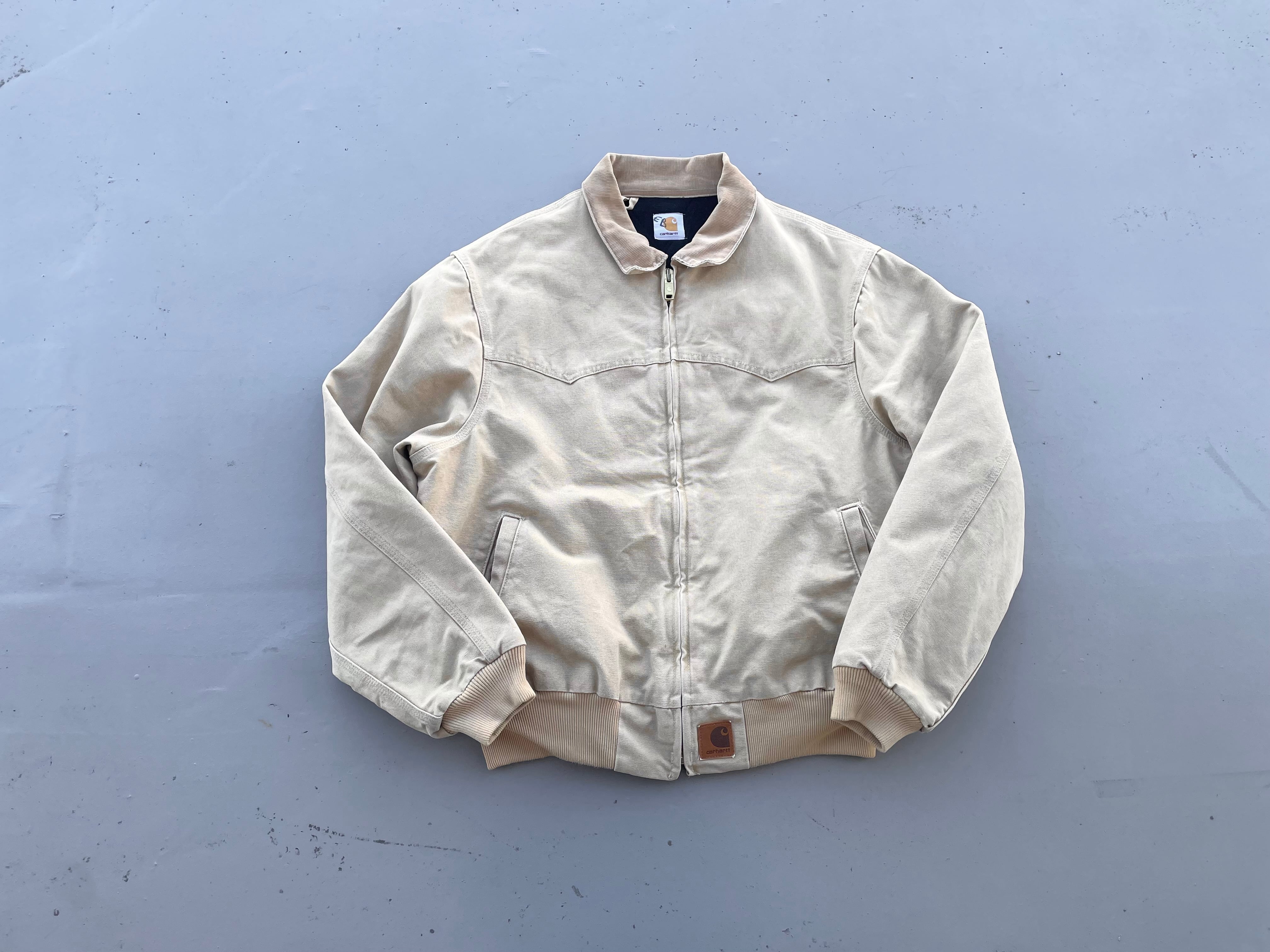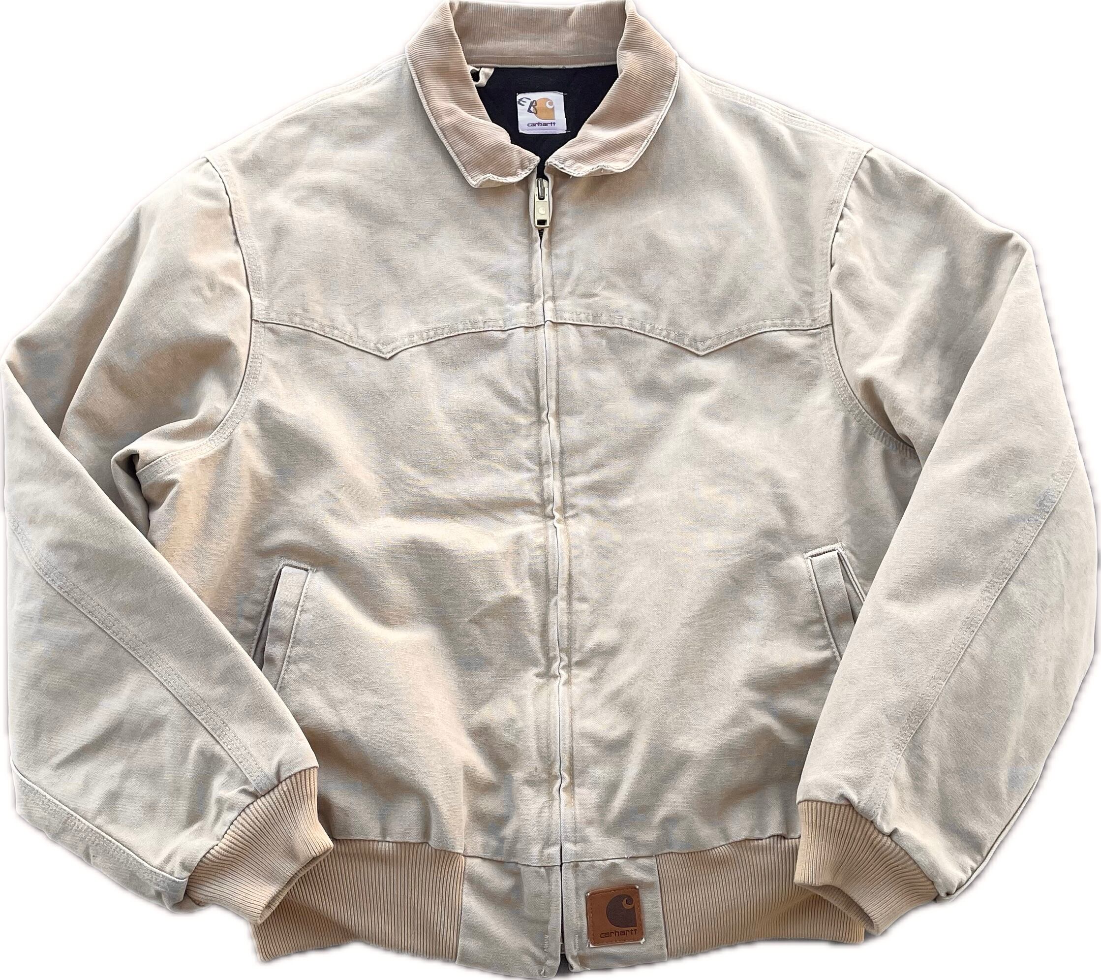 【商品詳細】カーハートのサンタフェジャケット。サイズは実寸L-XL程。カラーはライトベージュ。90-00年代頃製。人気モデルサンタフェジャケット。ワークジャケットながらどこかアーバンな雰囲気のある単色物◎