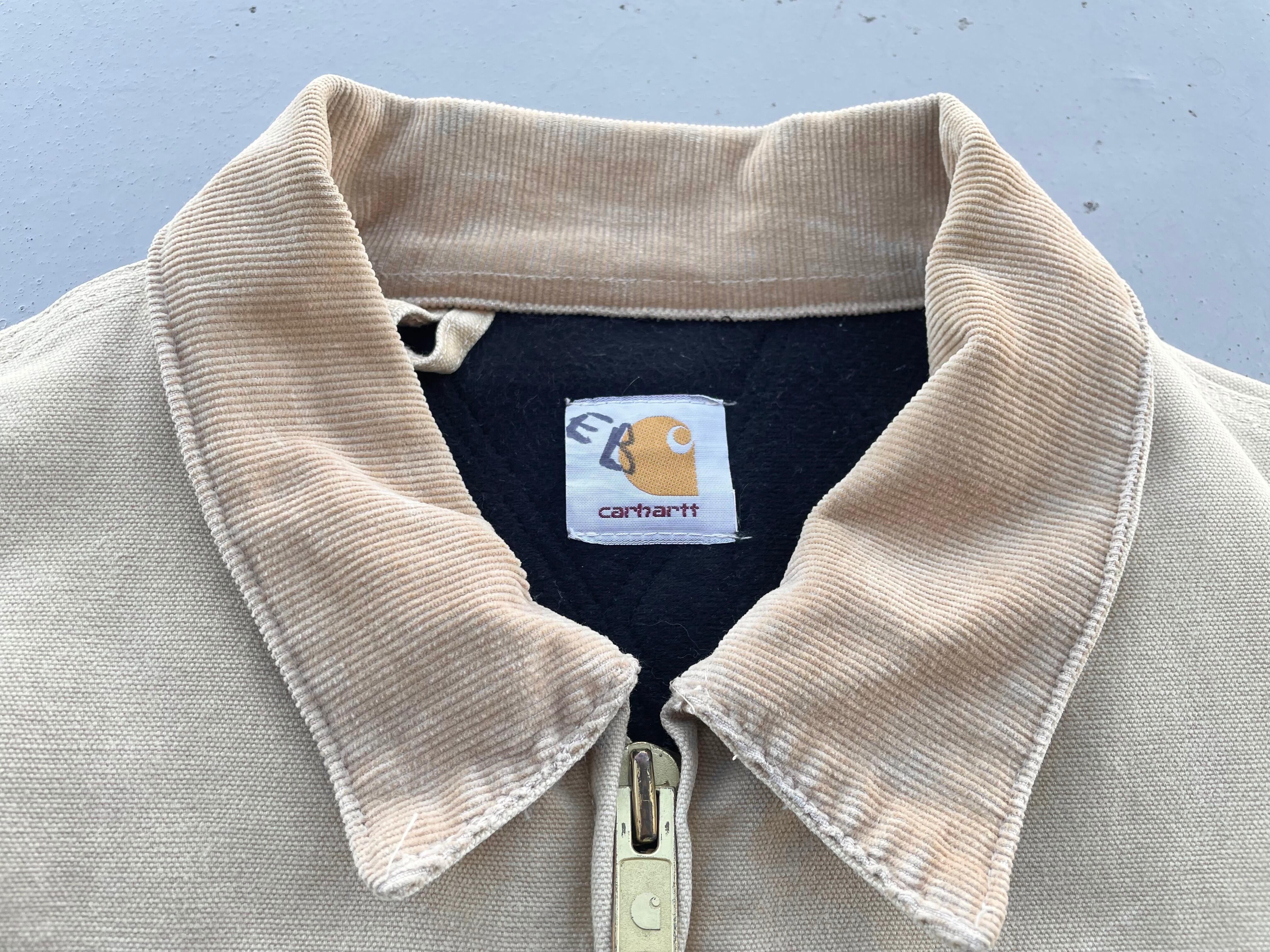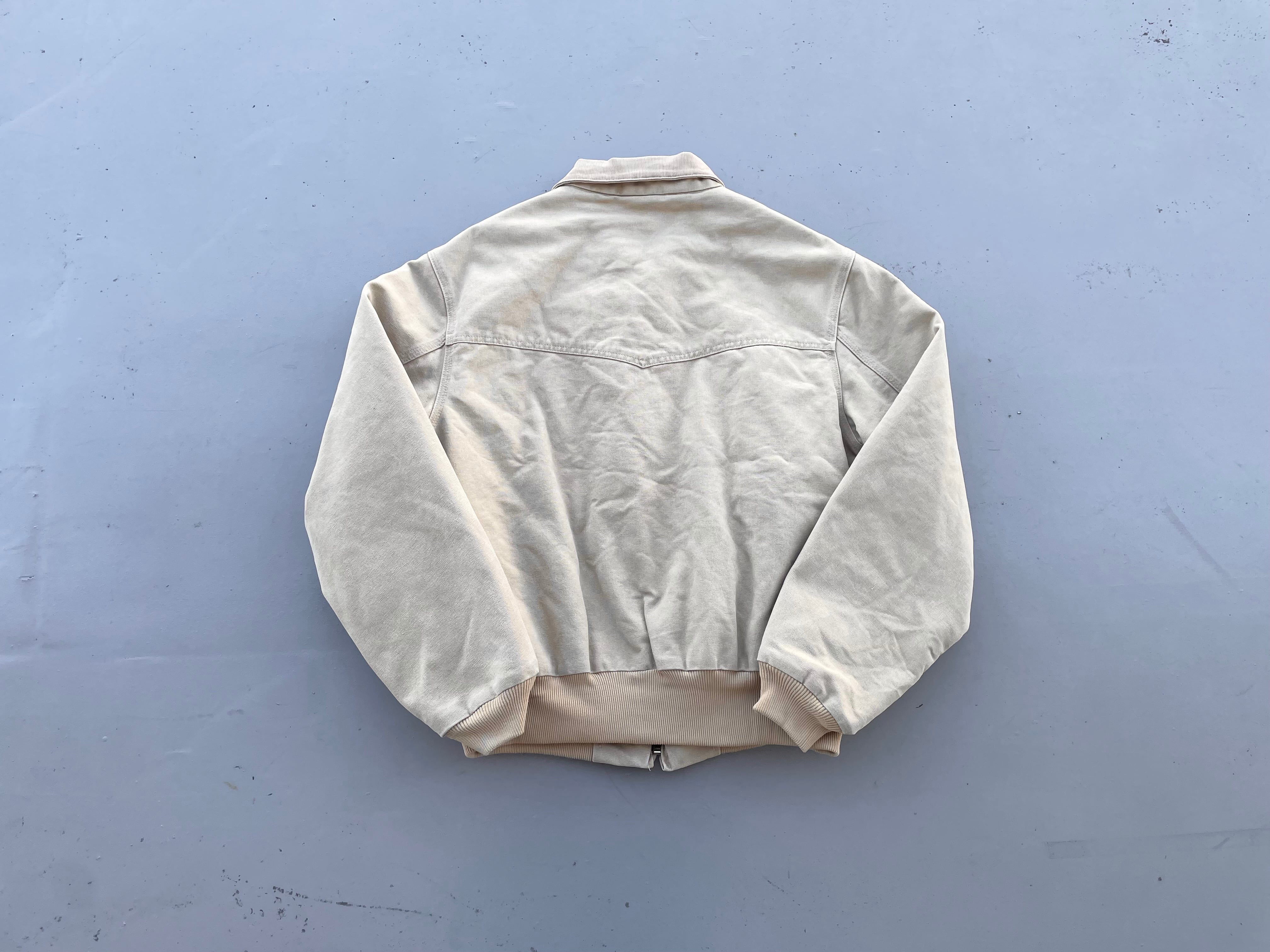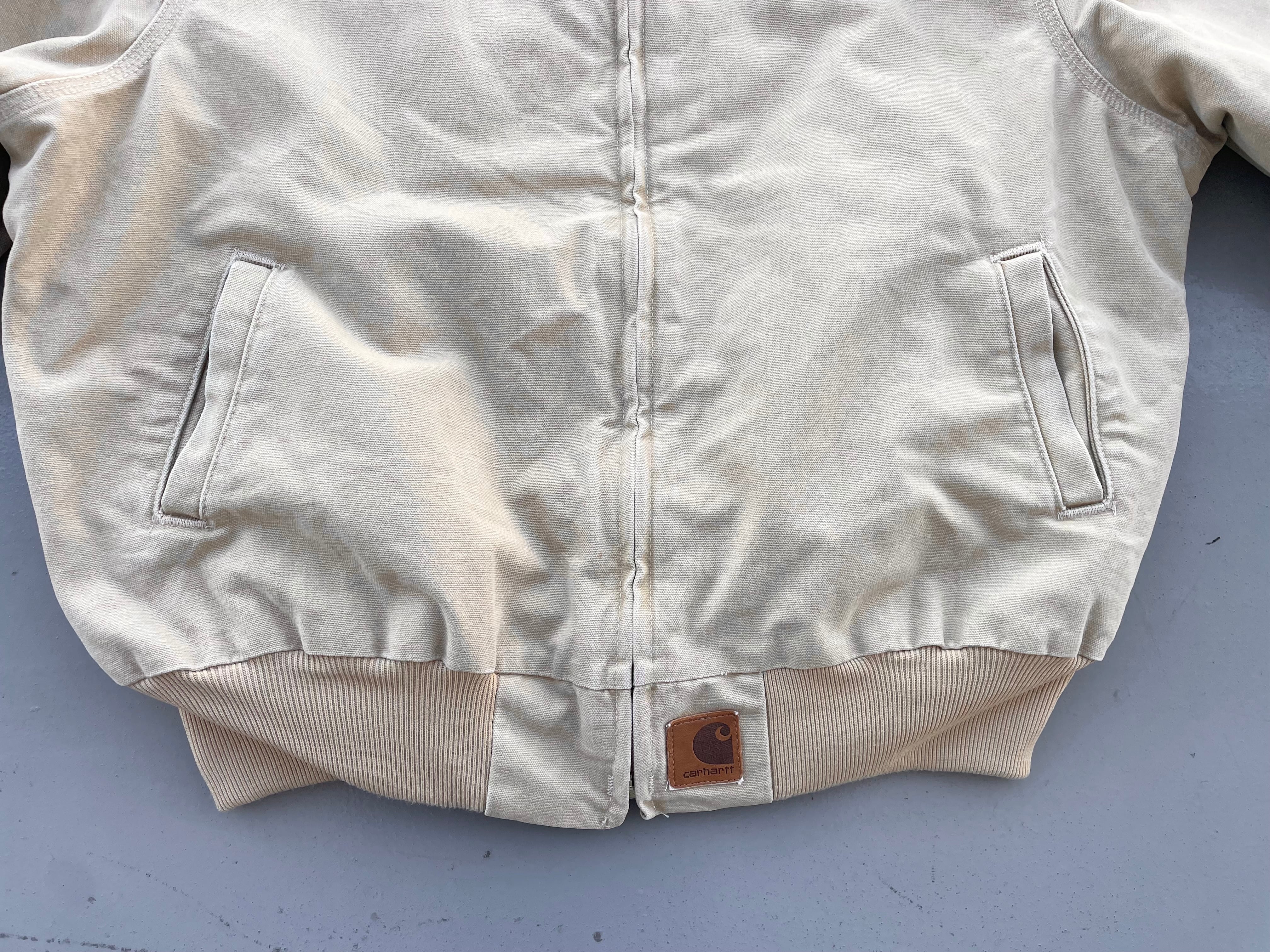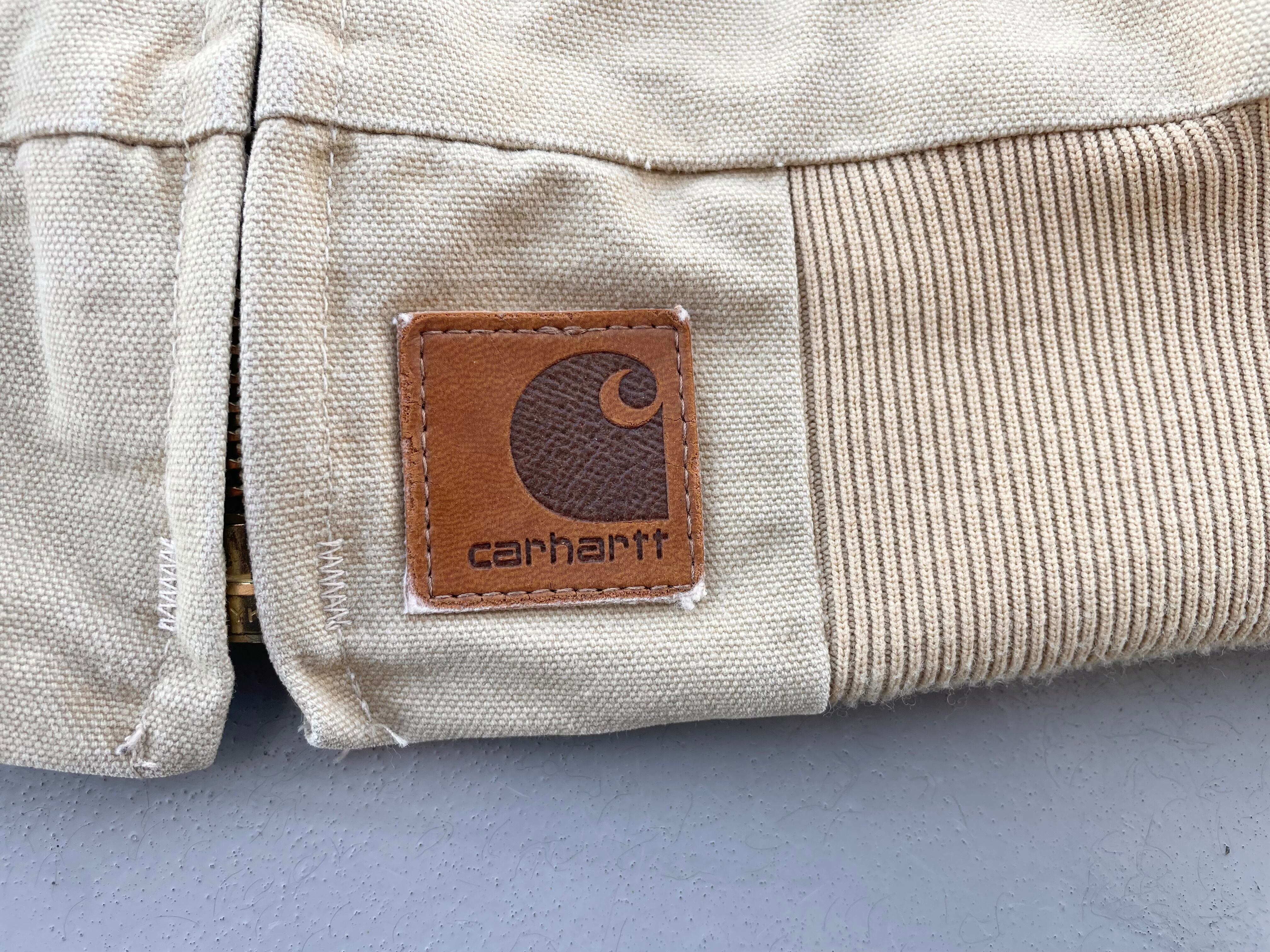 【商品詳細】カーハートのサンタフェジャケット。サイズは実寸L-XL程。カラーはライトベージュ。90-00年代頃製。人気モデルサンタフェジャケット。ワークジャケットながらどこかアーバンな雰囲気のある単色物◎