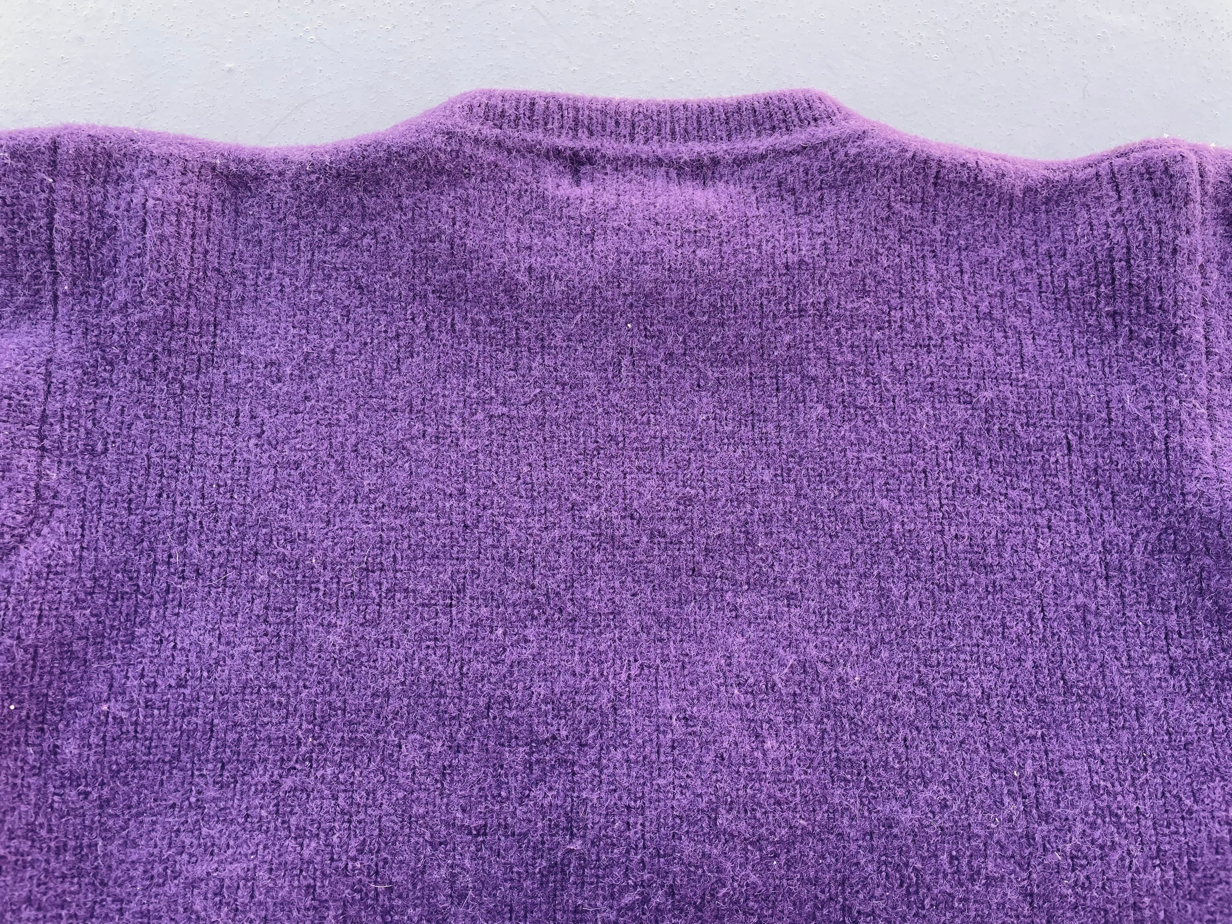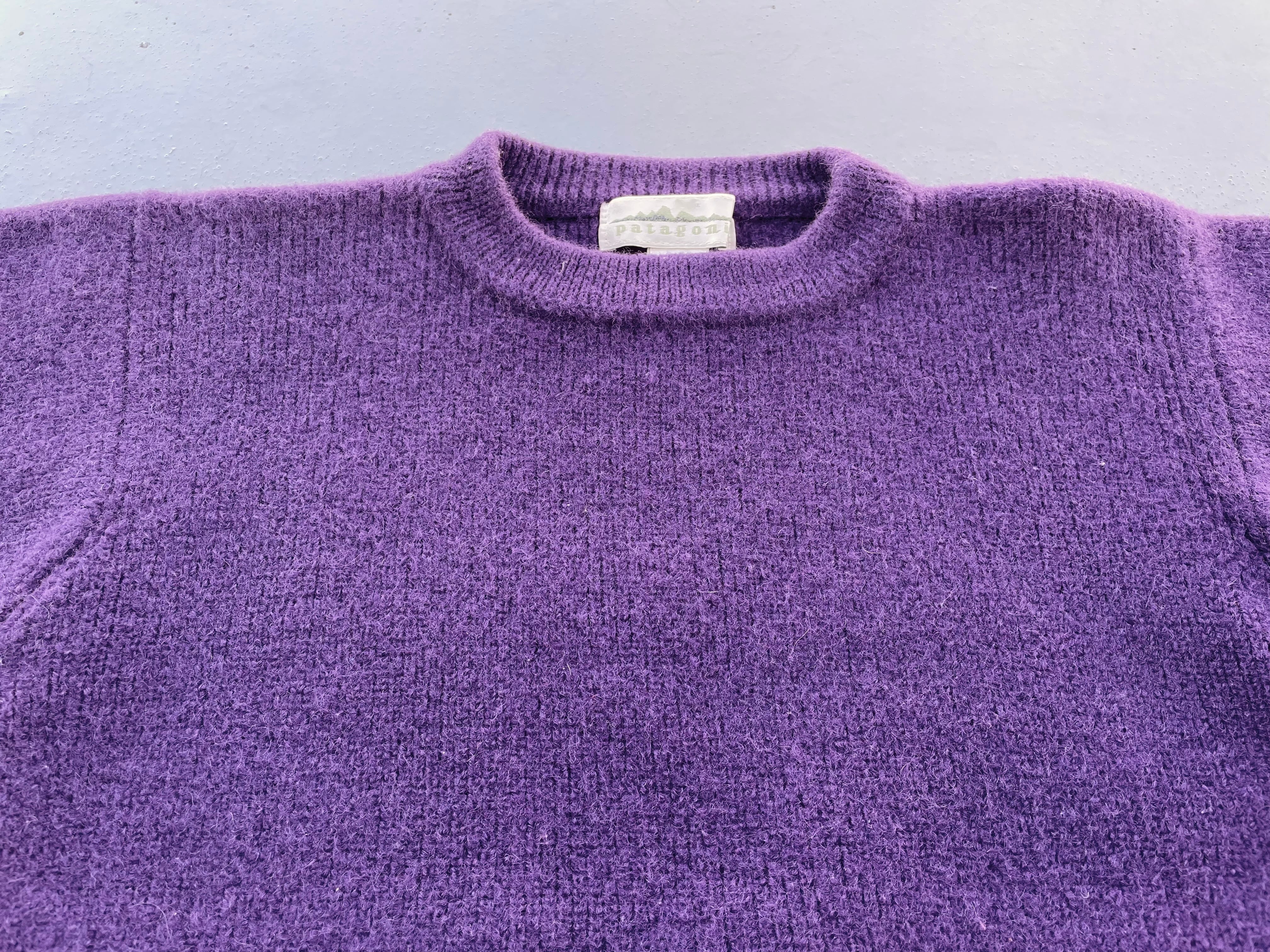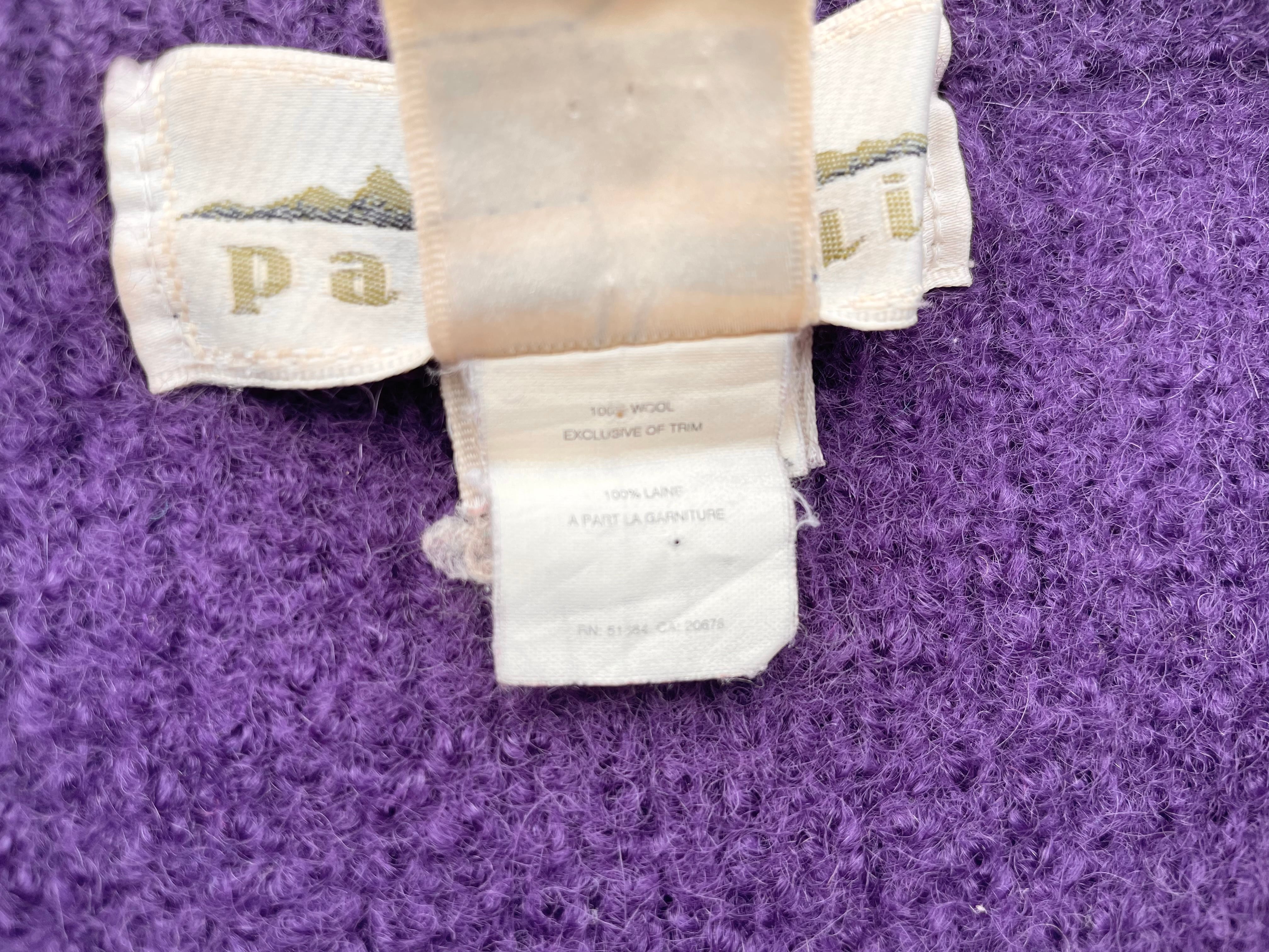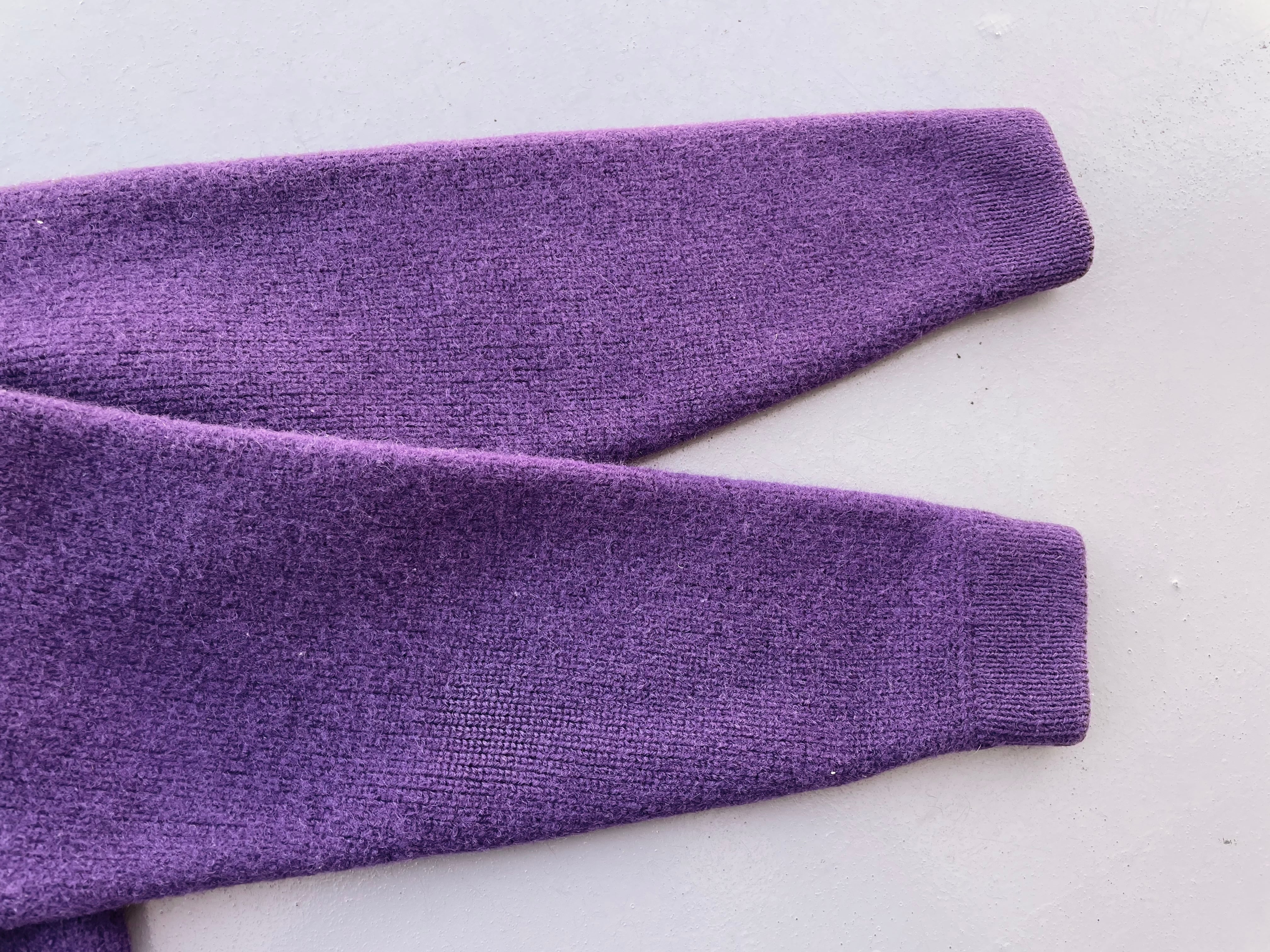 【商品詳細】パタゴニアのシャモニーガイドセーター。サイズはM。カラーはパープル。90年代香港製。オールド定番アイテムのガイドセーター。オールド物ならではの厚みのあるざっくり編みのゲージニット。ぼてっとしたボックスシルエットが可愛いです。