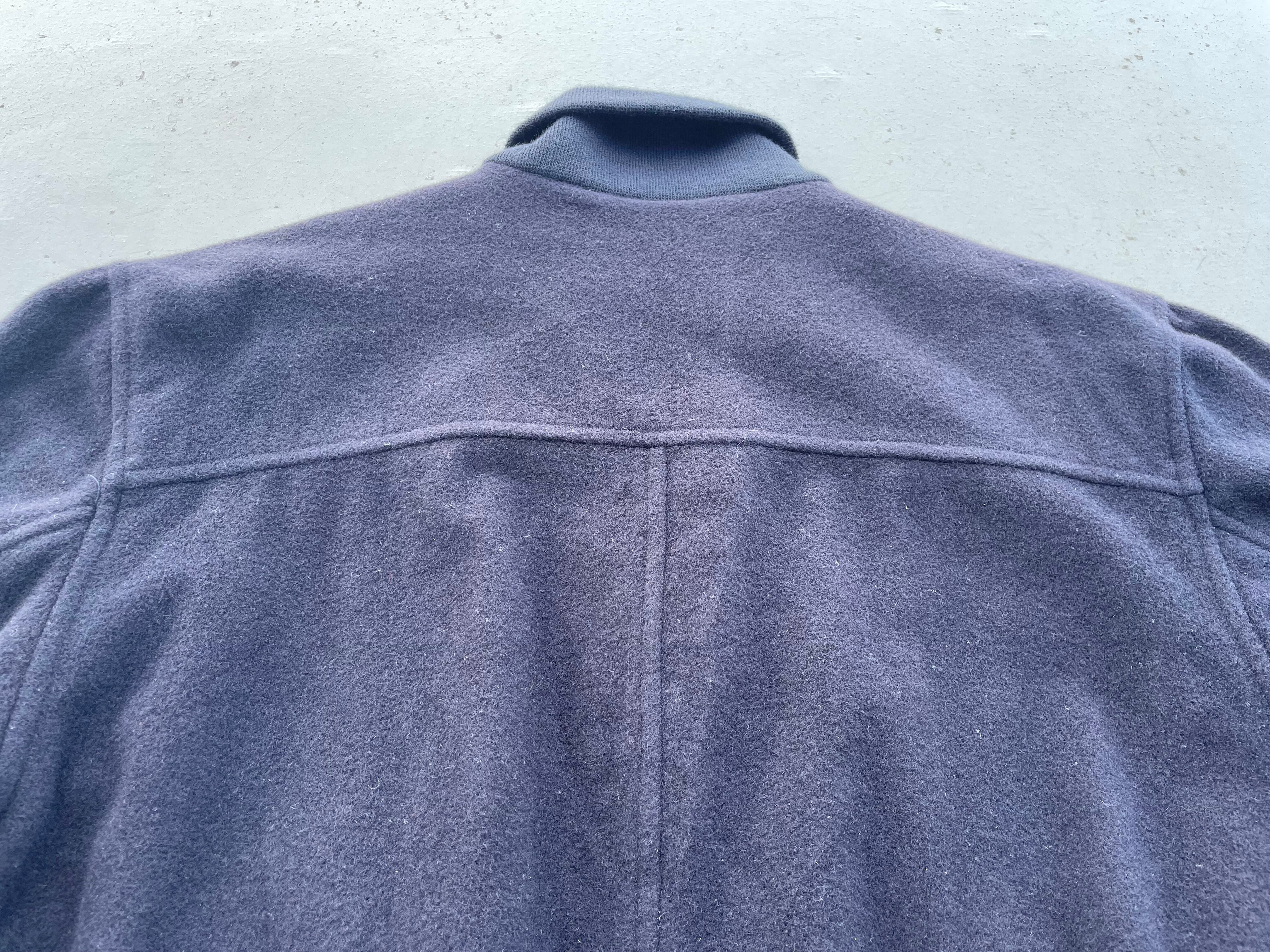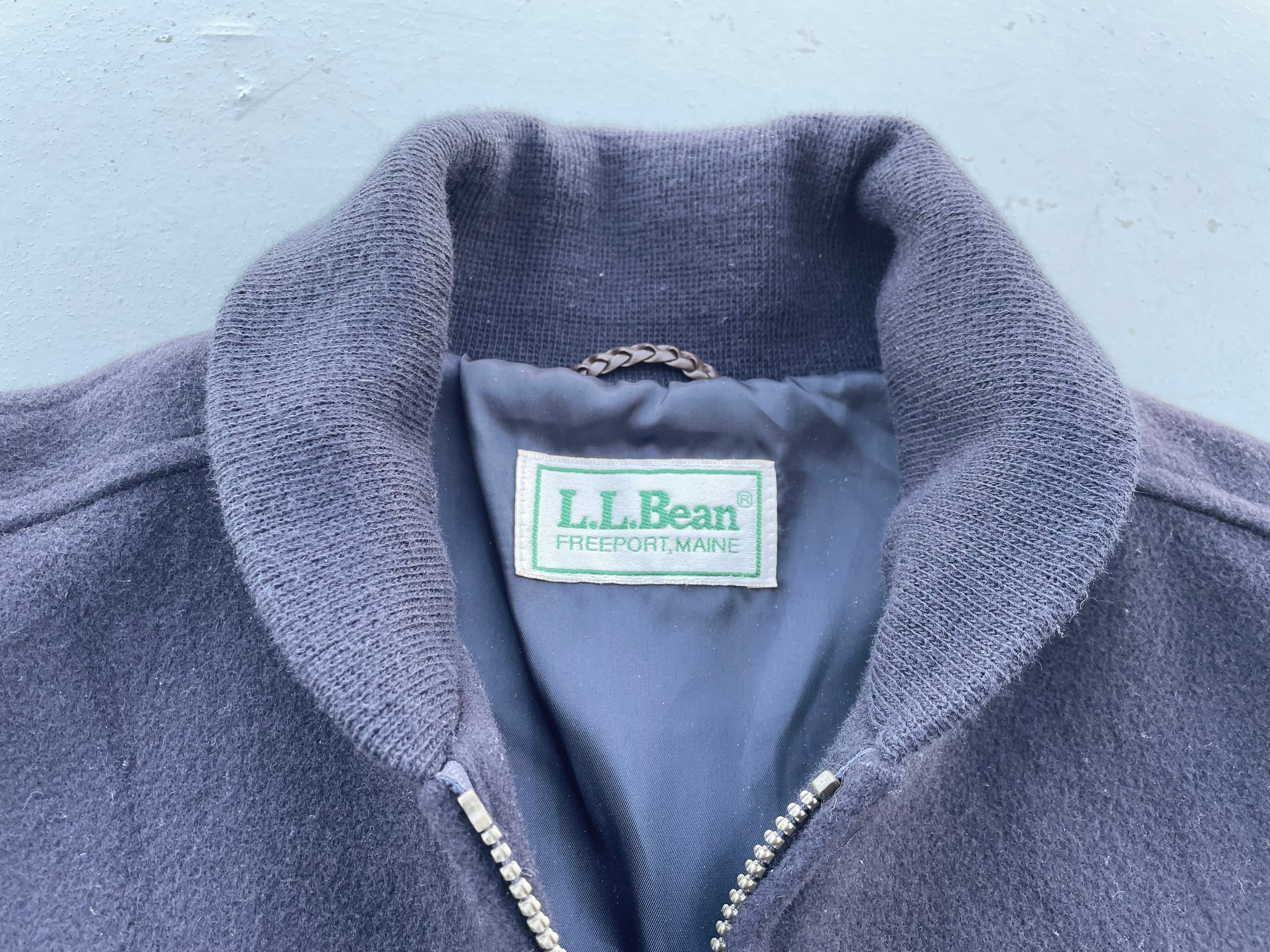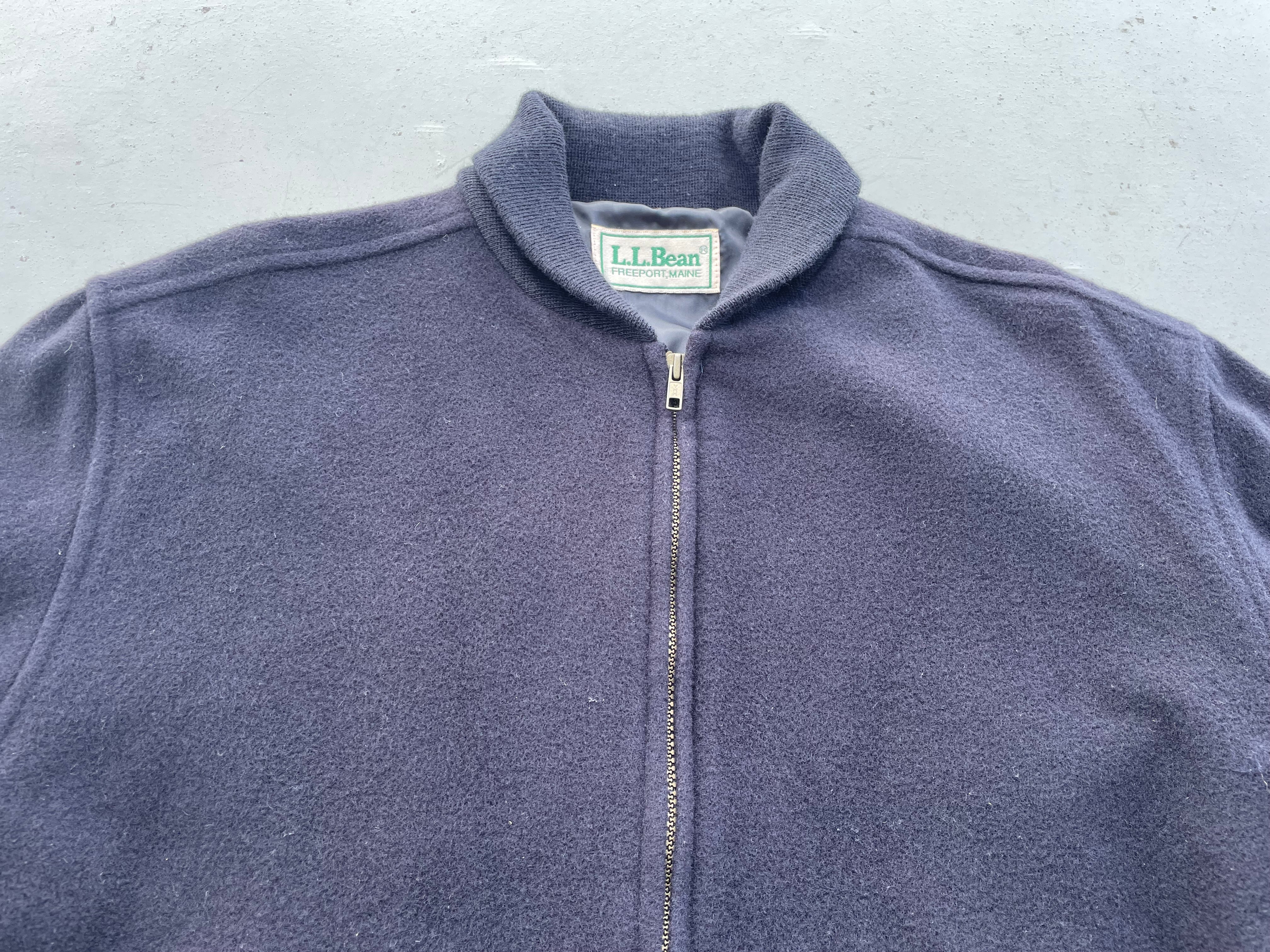 【商品詳細】エルエルビーンのウールボンバージャケット。サイズは実寸XL程。カラーはダークネイビー。80年代製。ファラオカラー仕様のボンバージャケット。着丈長すぎず身幅がしっかりある丸みのあるシルエット。ブラックに近いネイビーカラーがクールです。ウール地ですが柔らかく重すぎないのでデイリーに着用しやすいかと。