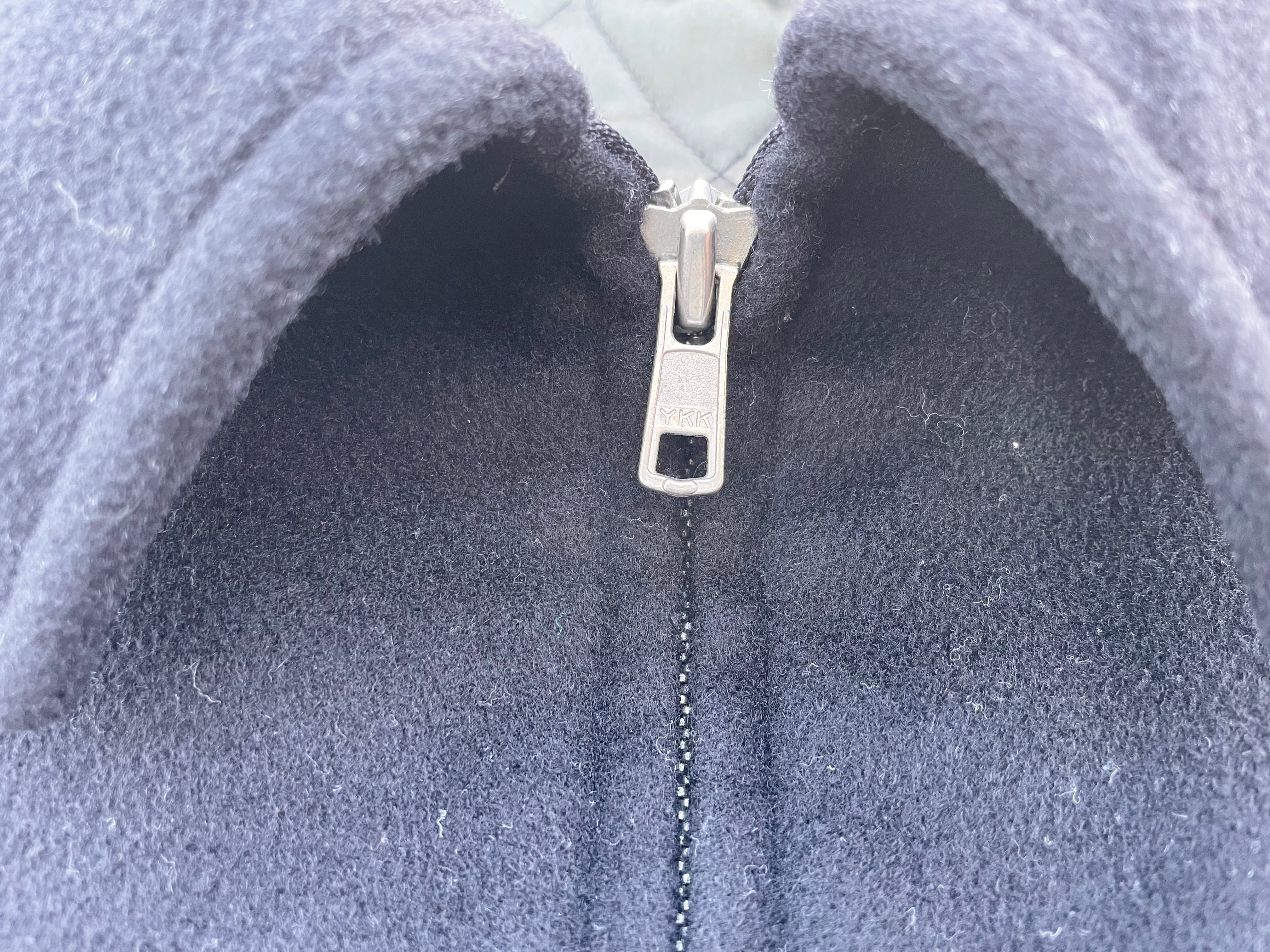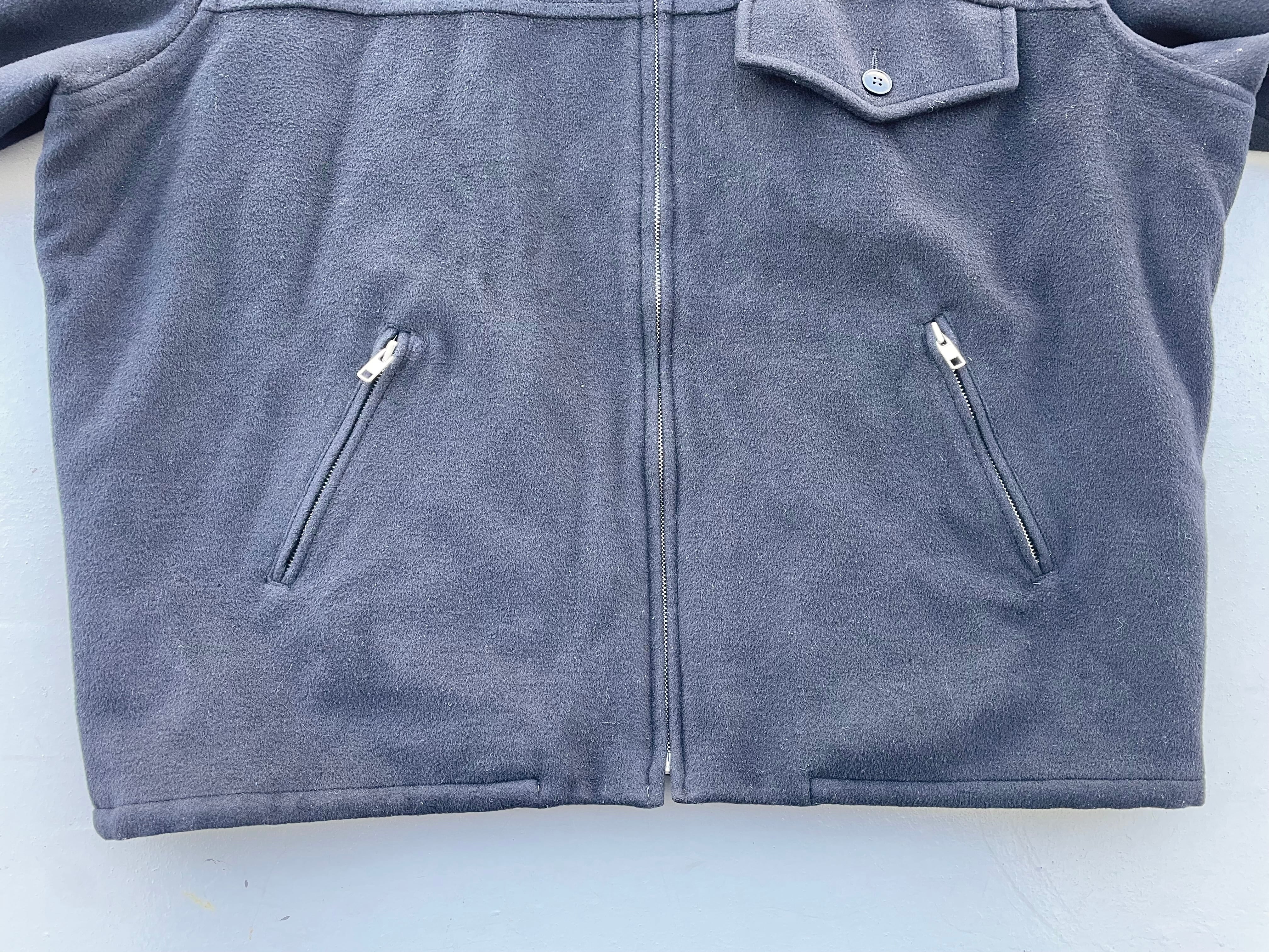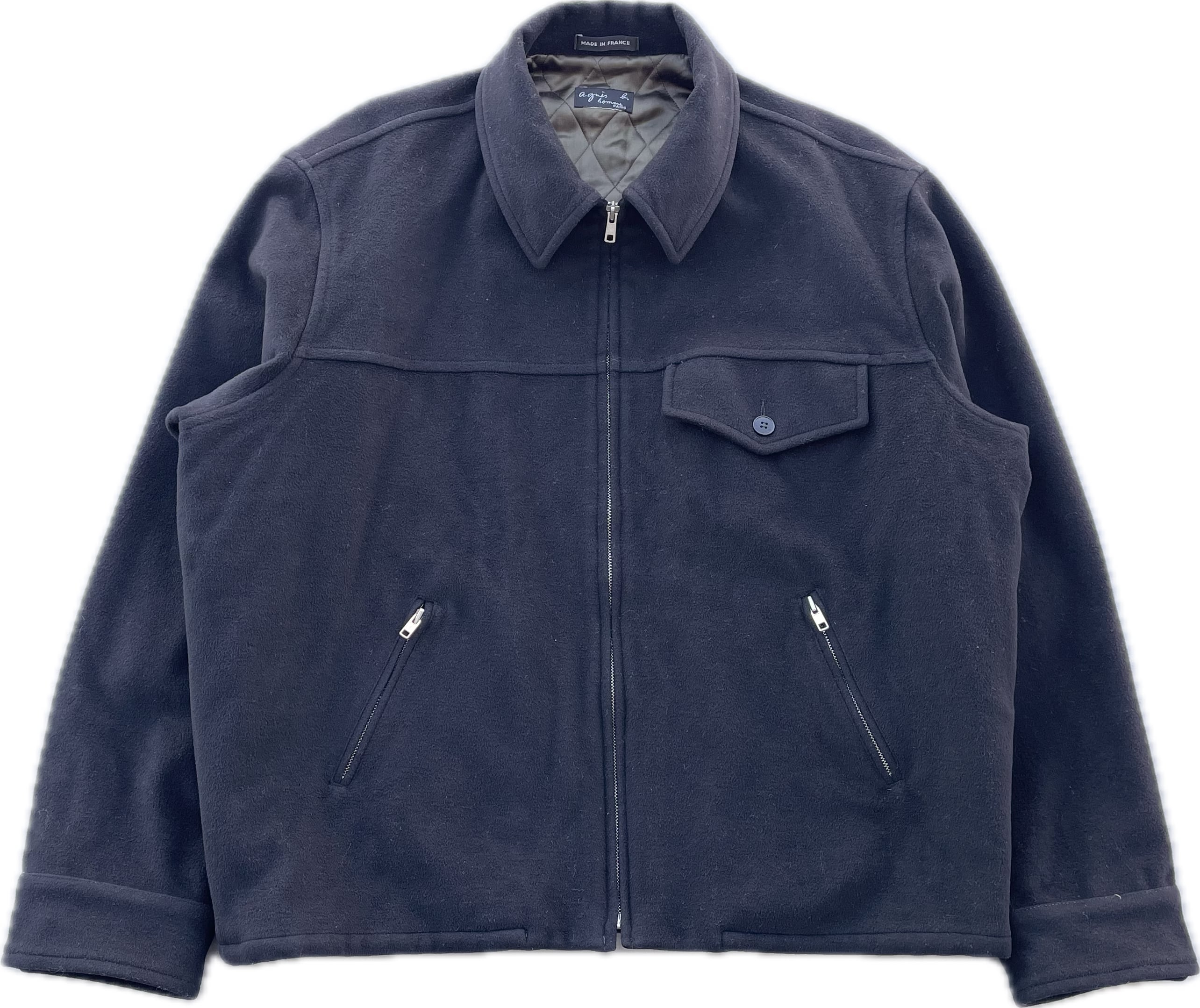 【商品詳細】アニエスベーのウールスポーツジャケット。サイズは実寸XL程度。カラーはブラック。90年代フランス製。定番ハの字スポーツジャケット。こちらはウール地に中綿入りの冬物仕様。