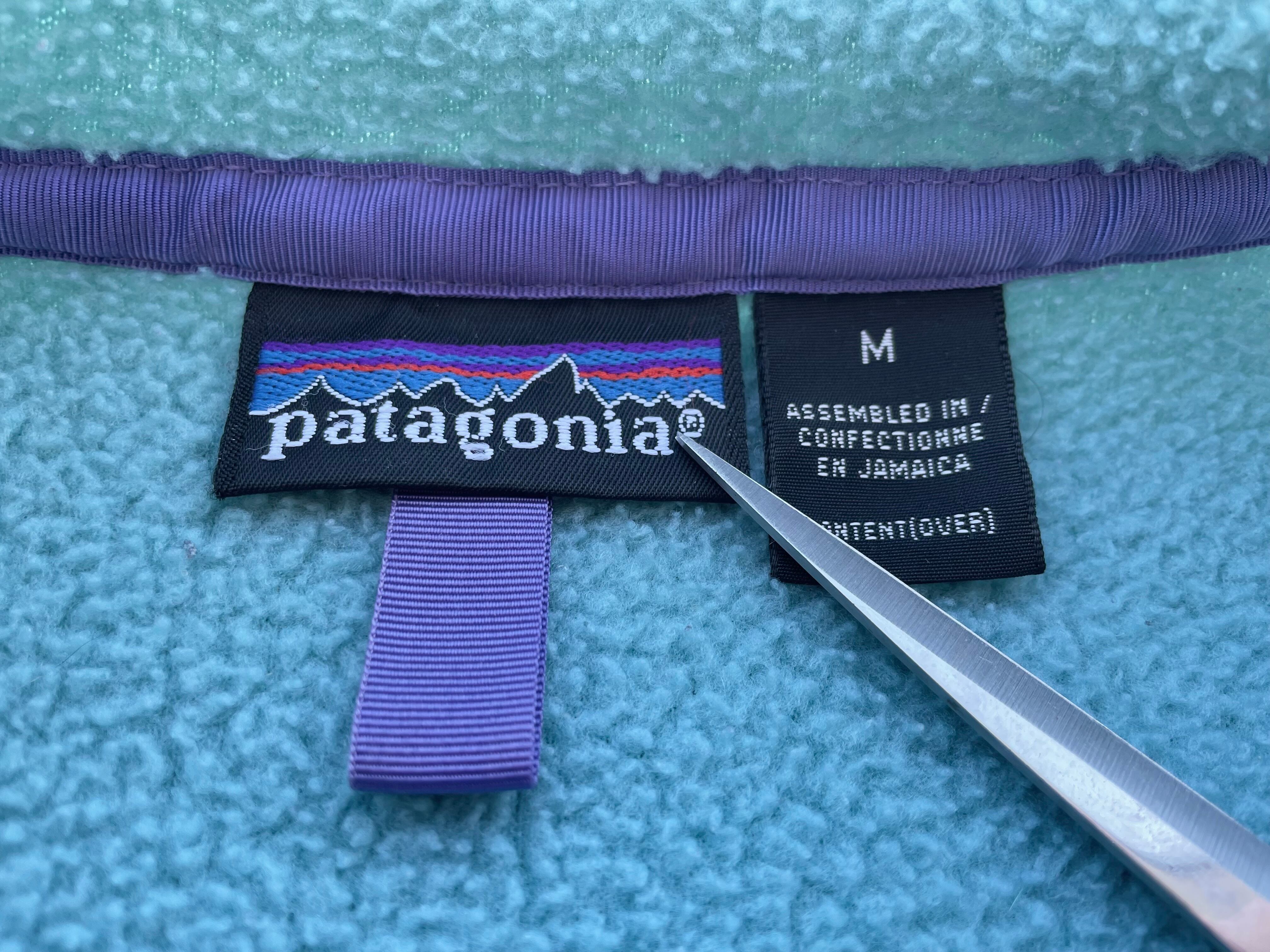 【商品詳細】パタゴニアのシンチラスナップT。サイズはL。カラーはティファニーブルー。90年代ジャマイカ製。人気の高いティファニーブルーカラー物。年代物ですがフリース地スカスカしておらず、比較的良好なコンディションです。