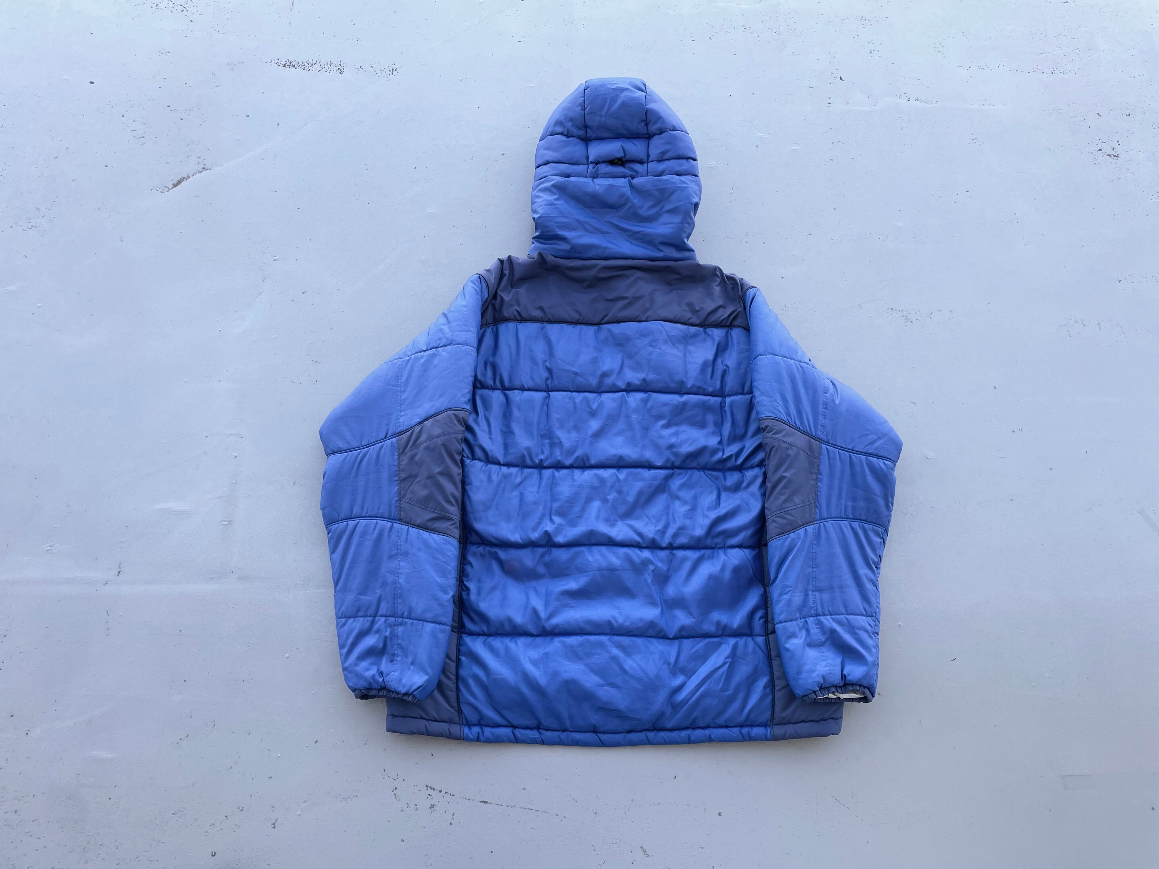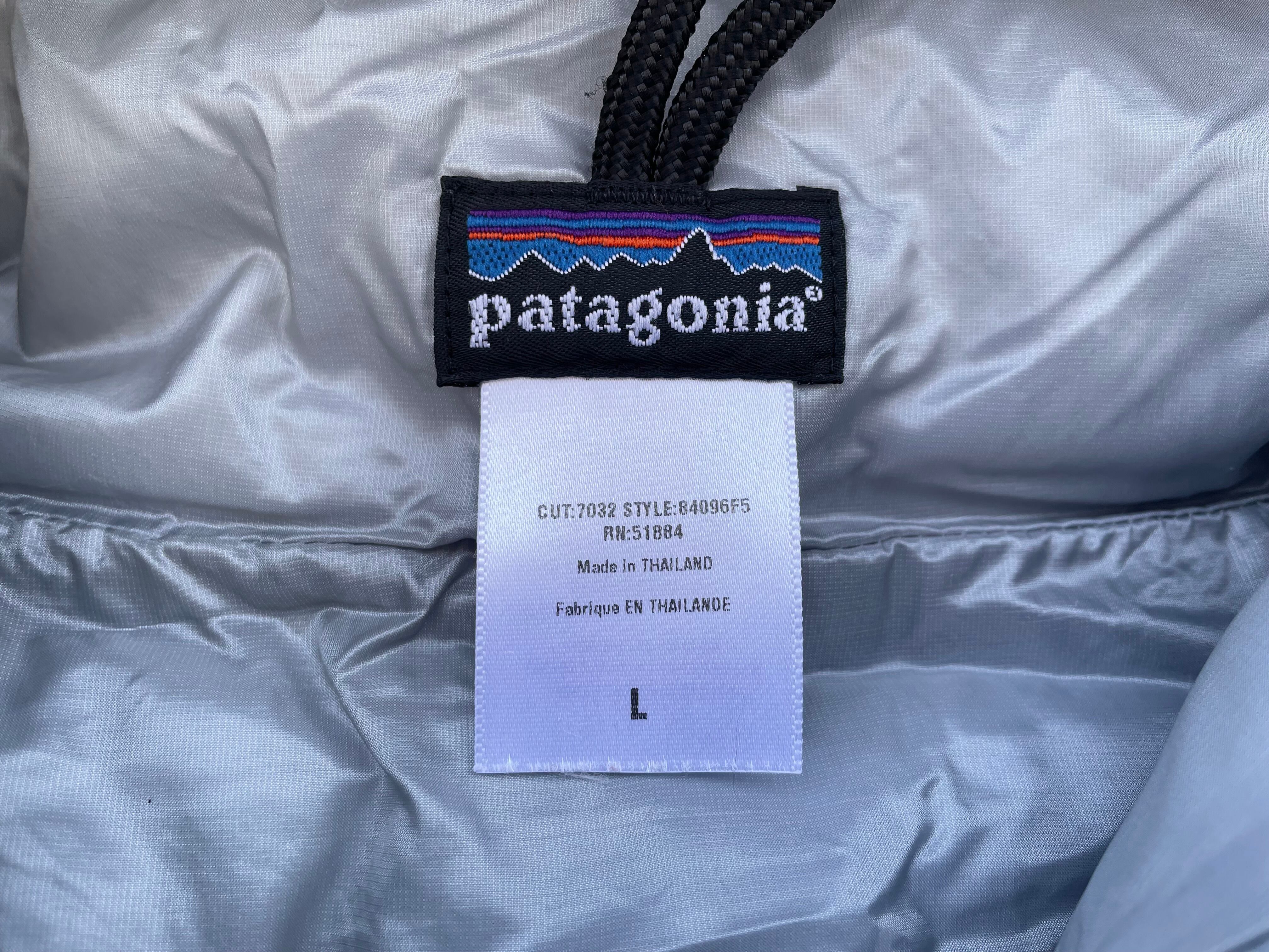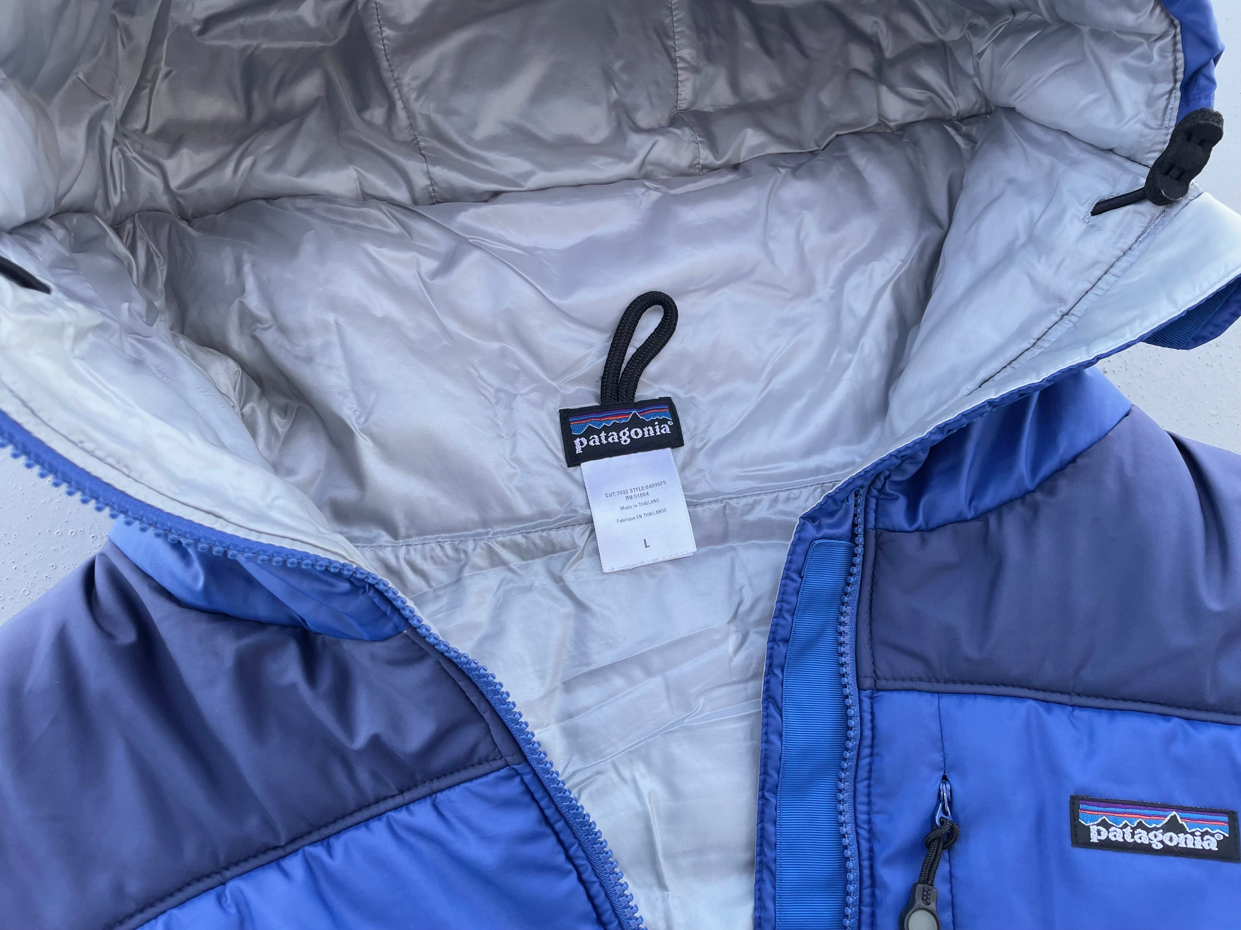 【商品詳細】パタゴニアのダスパーカー。サイズはL。カラーはオーラブルー。05年タイ製。人気のツギハギ物。渋めのブルーカラーで着用しやすいです。一部リペアや傷ありますがあまり気にならないと思います。