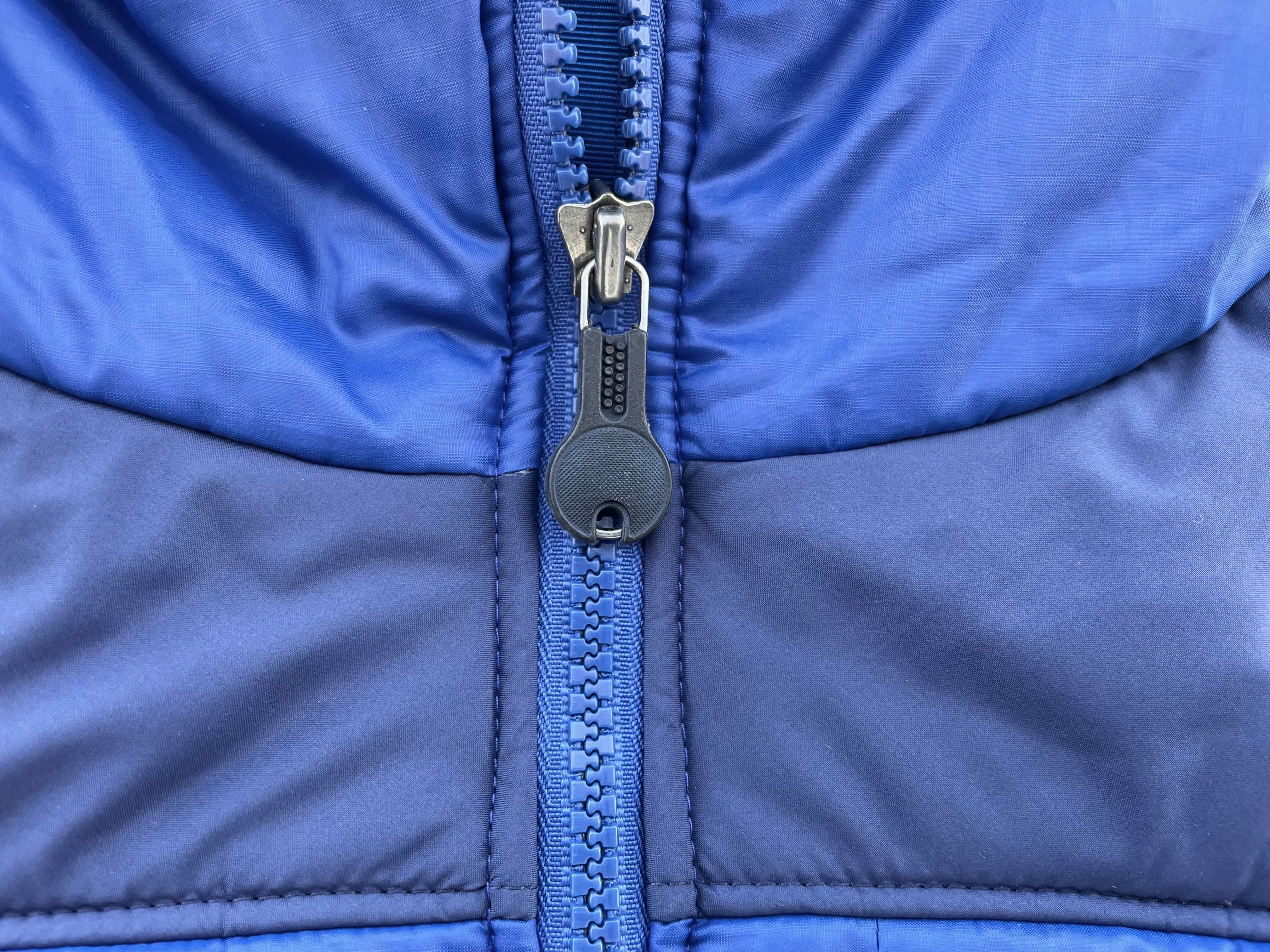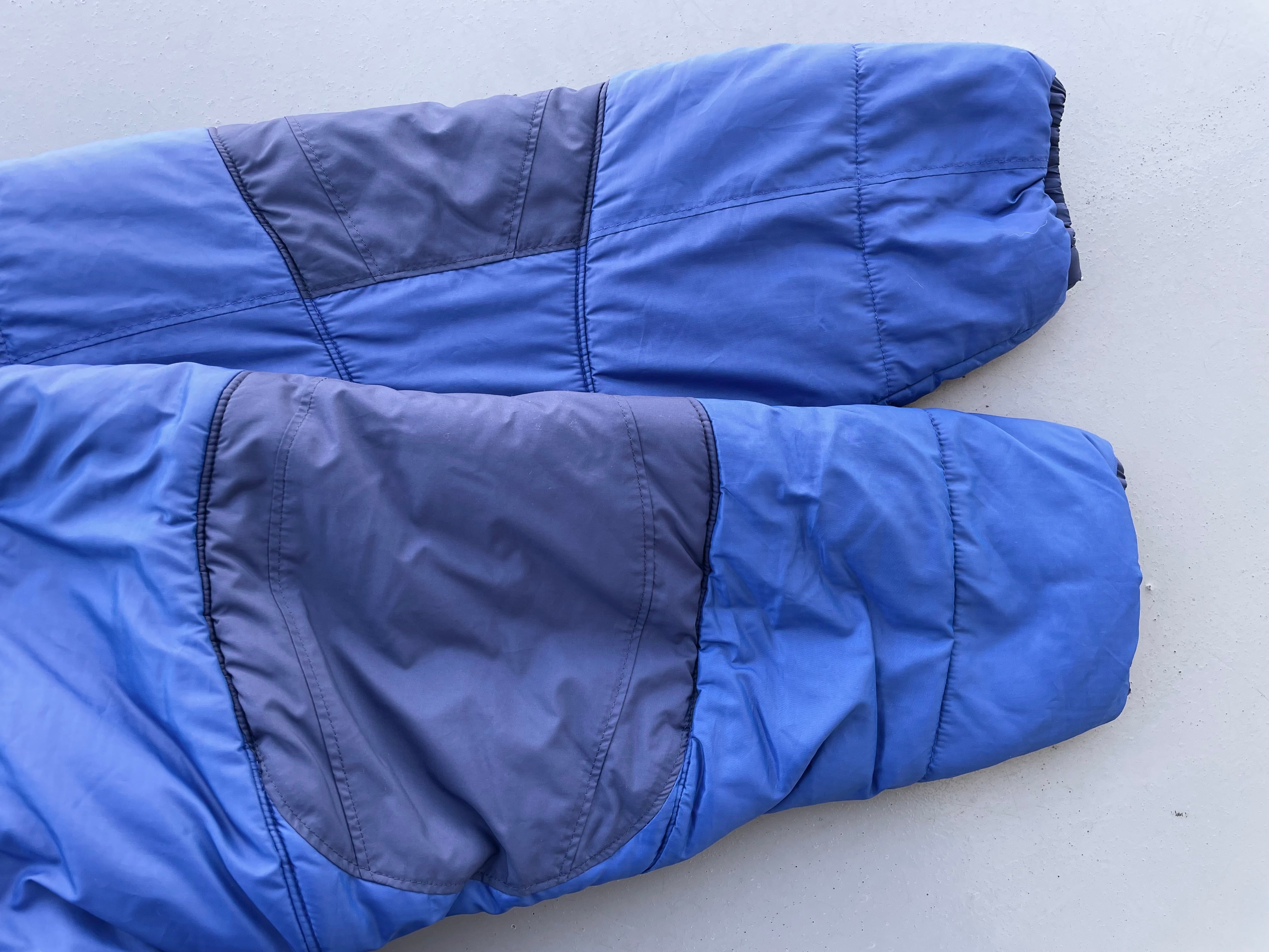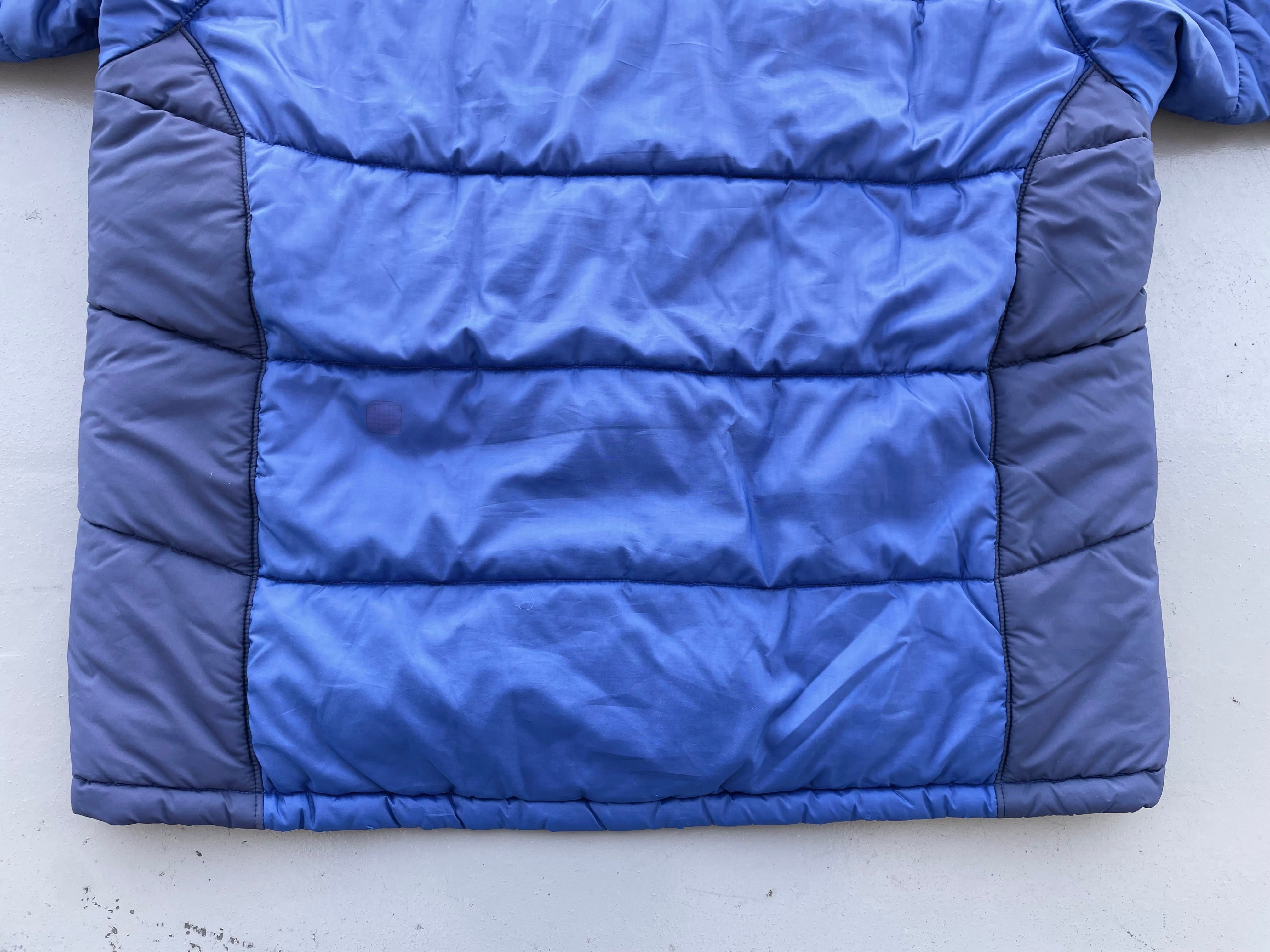 【商品詳細】パタゴニアのダスパーカー。サイズはL。カラーはオーラブルー。05年タイ製。人気のツギハギ物。渋めのブルーカラーで着用しやすいです。一部リペアや傷ありますがあまり気にならないと思います。