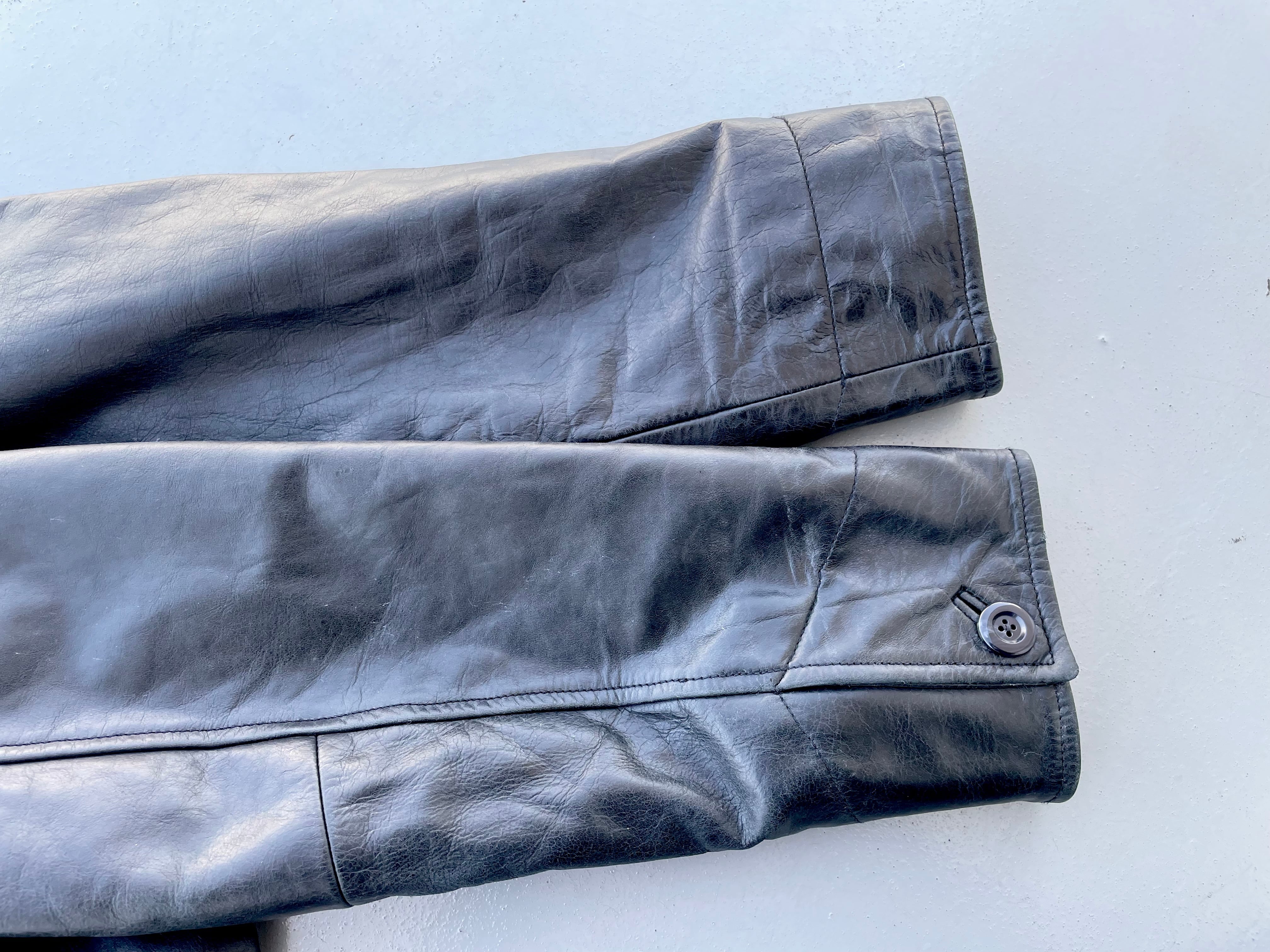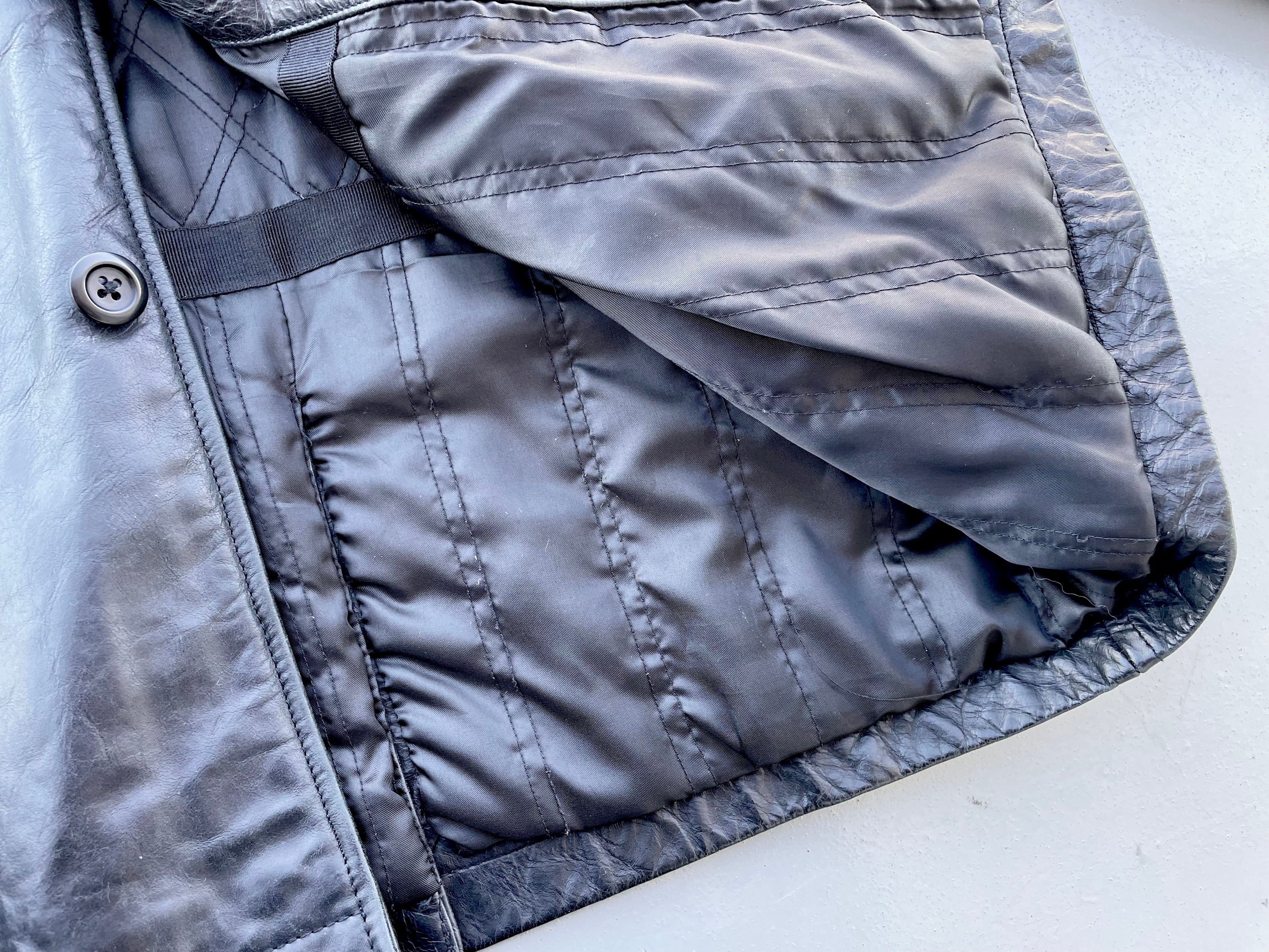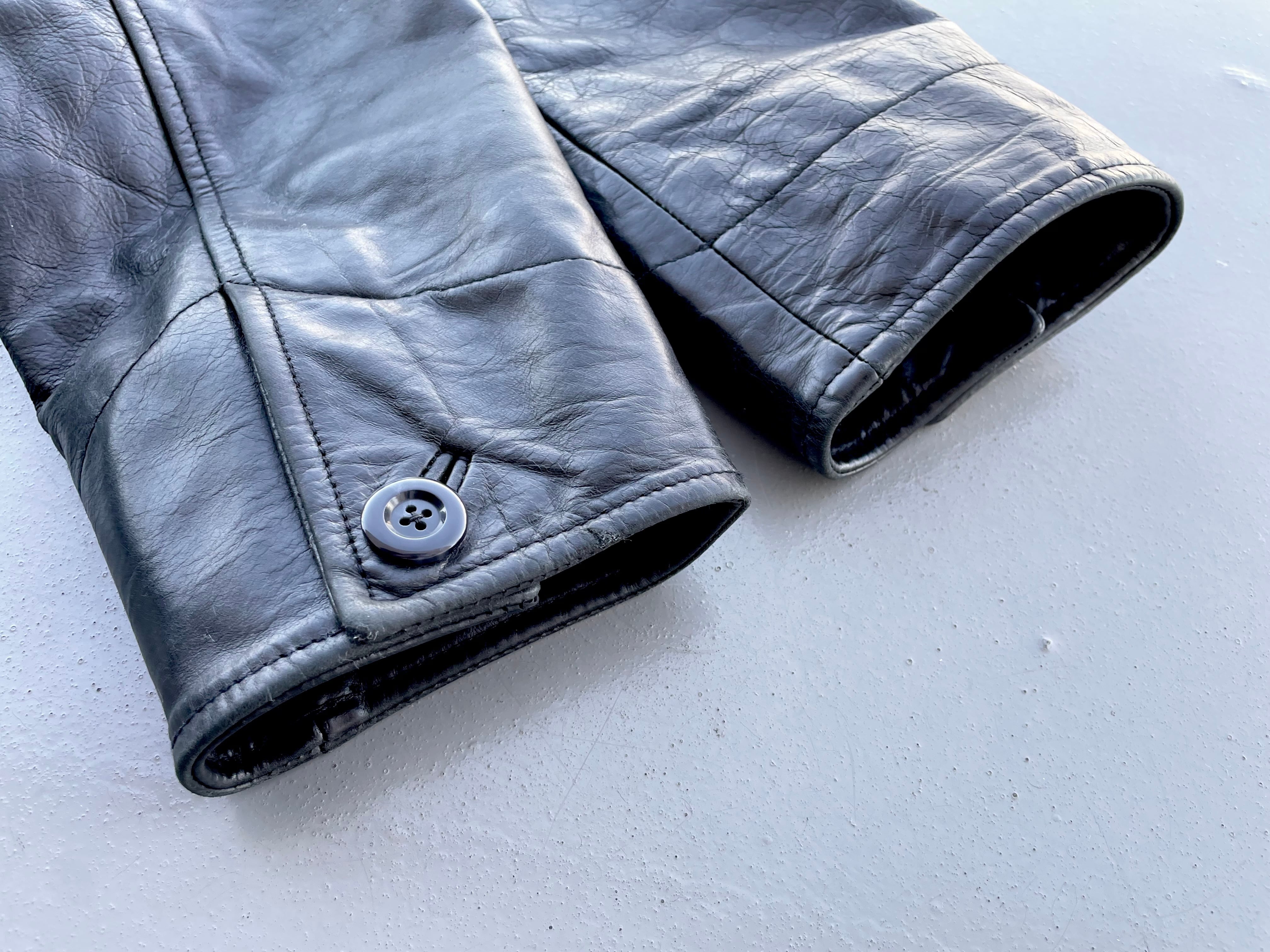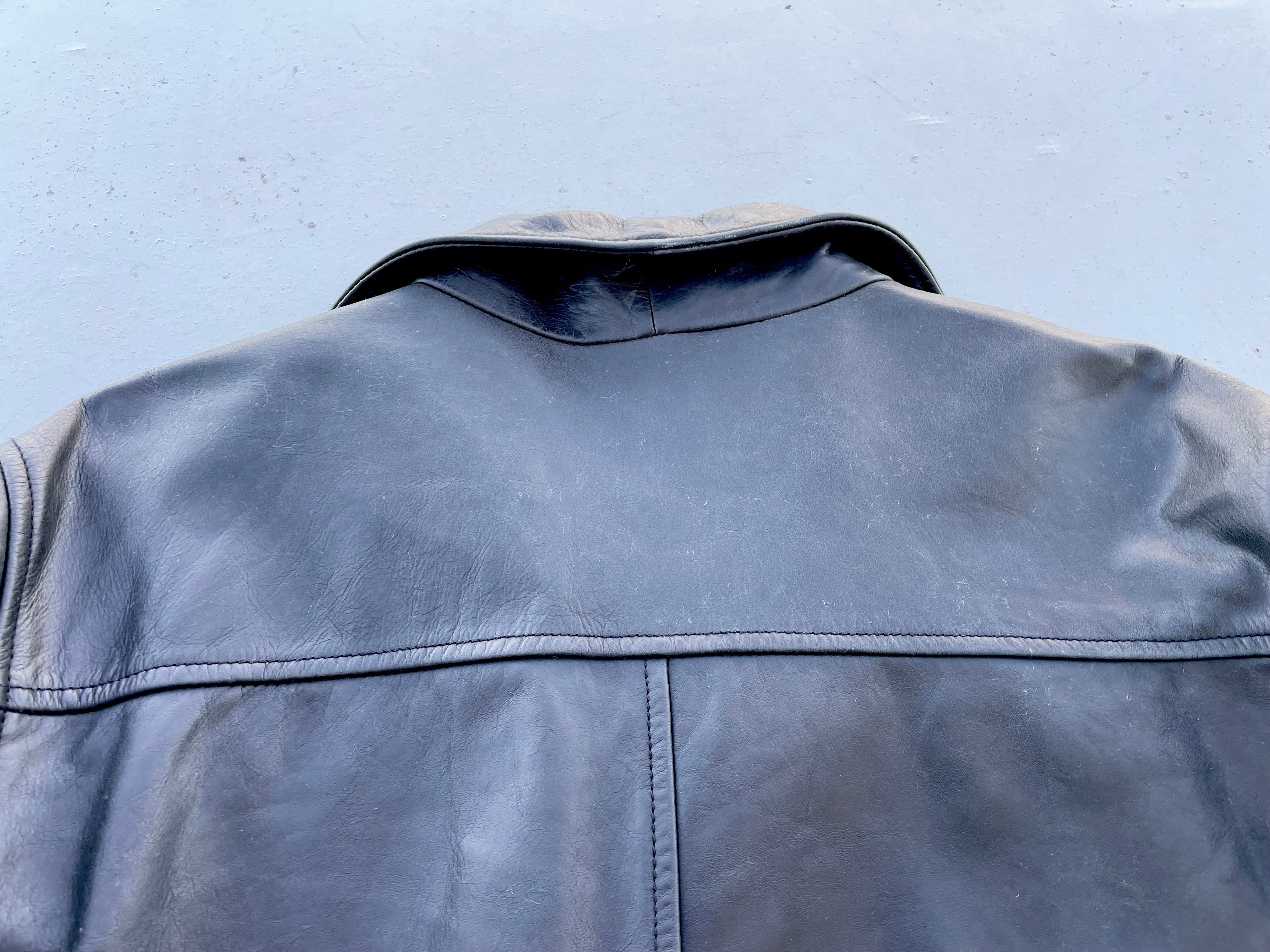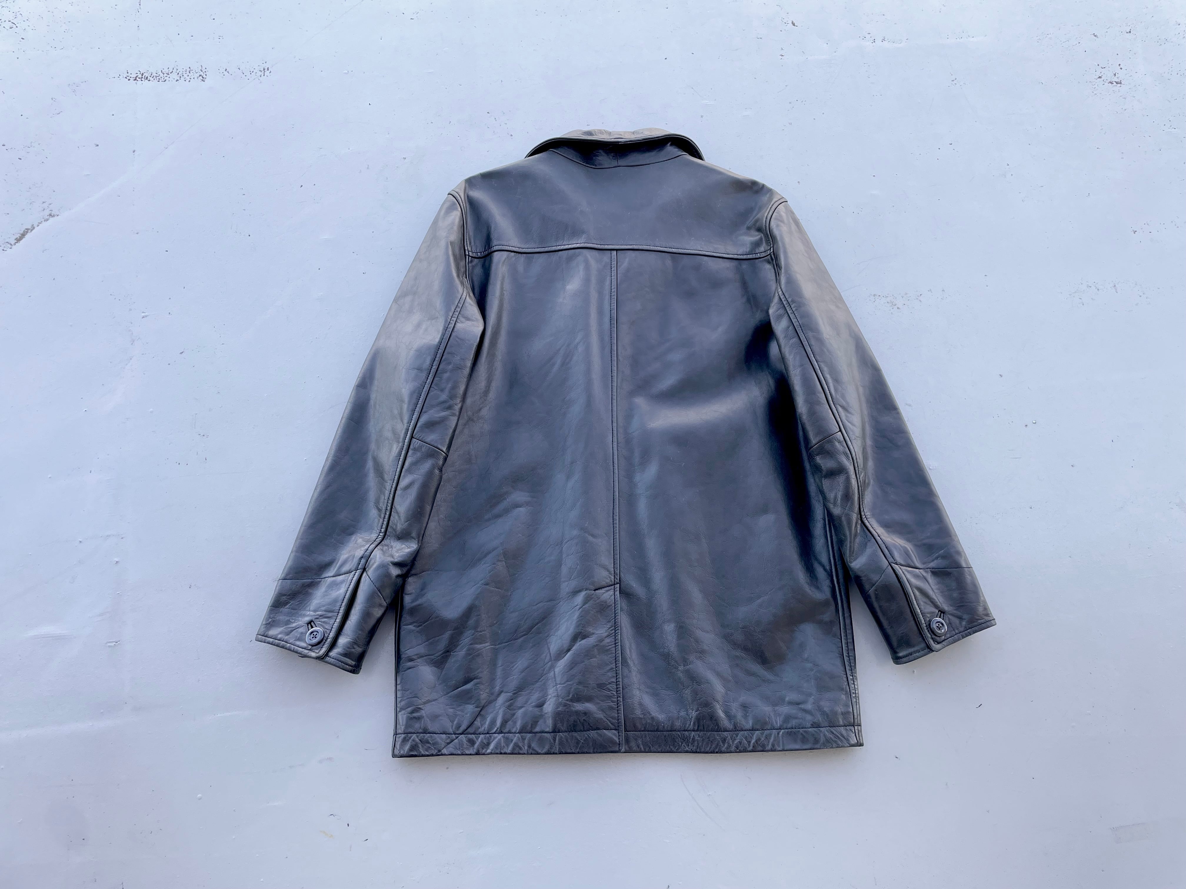 【商品詳細】ギャップのレザーカーコート。サイズはM。カラーはブラック。90-00年代インド製。ギャップのレザー物の中でも特に人気の高いカーコート。多少の経年劣化はございますが目立った傷や穴などなく前線で活躍する個体かと。