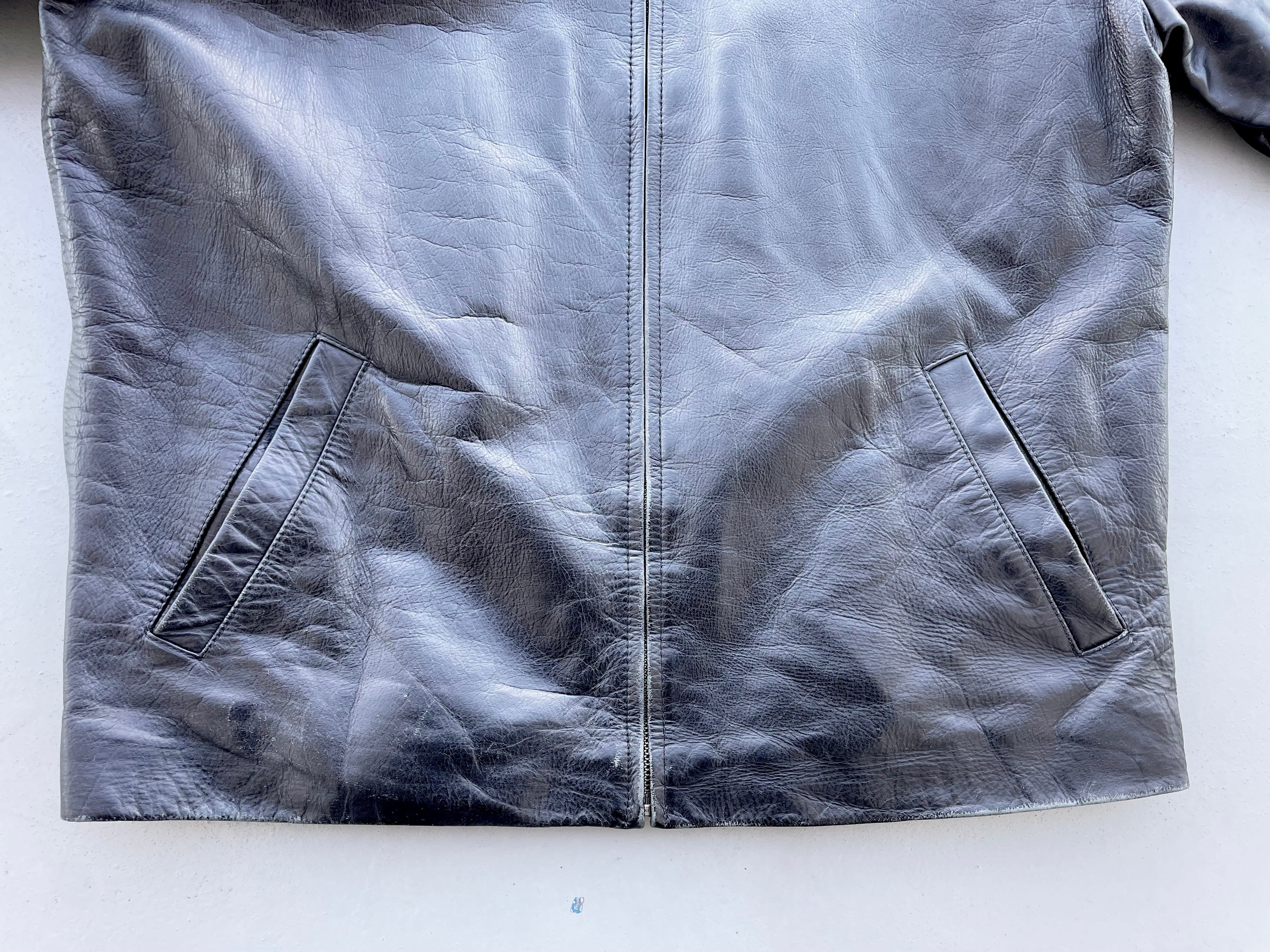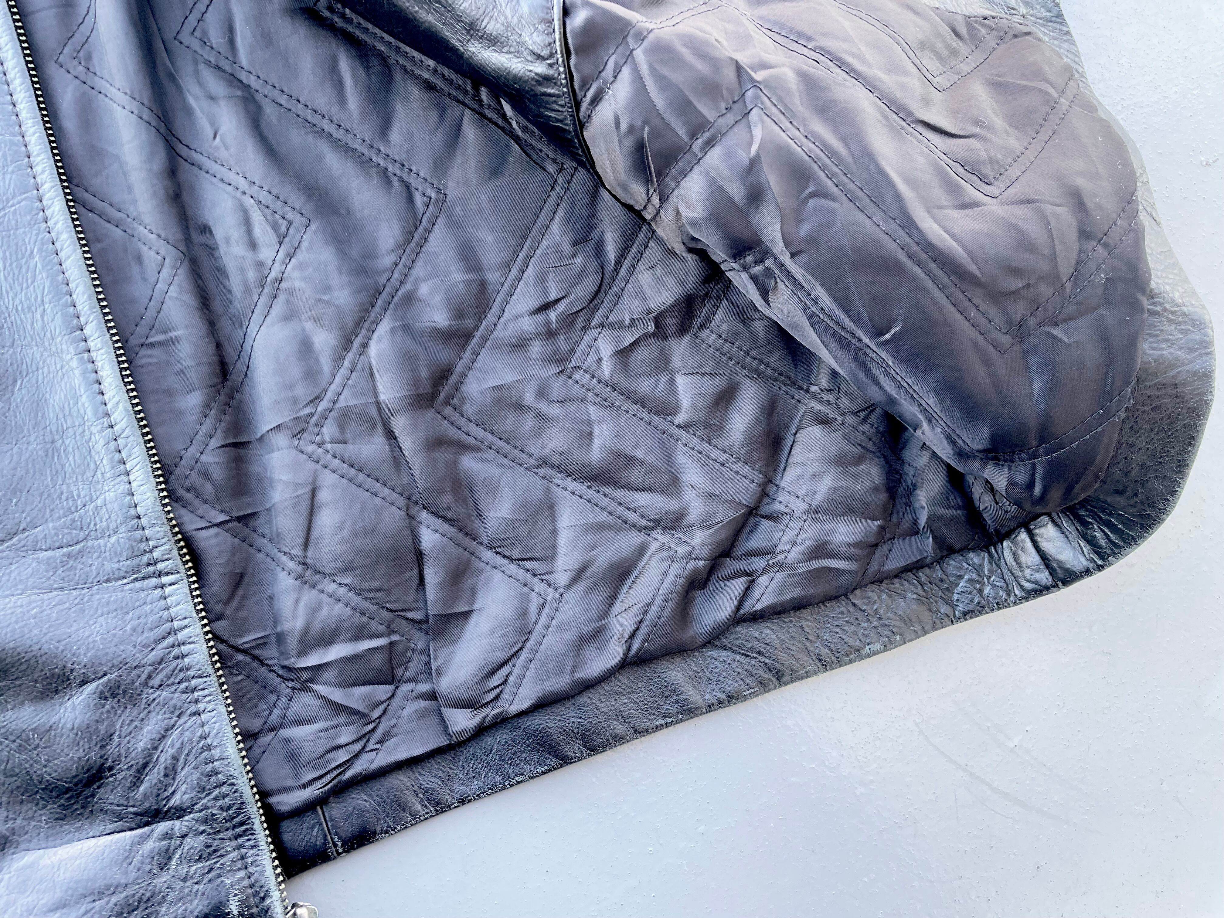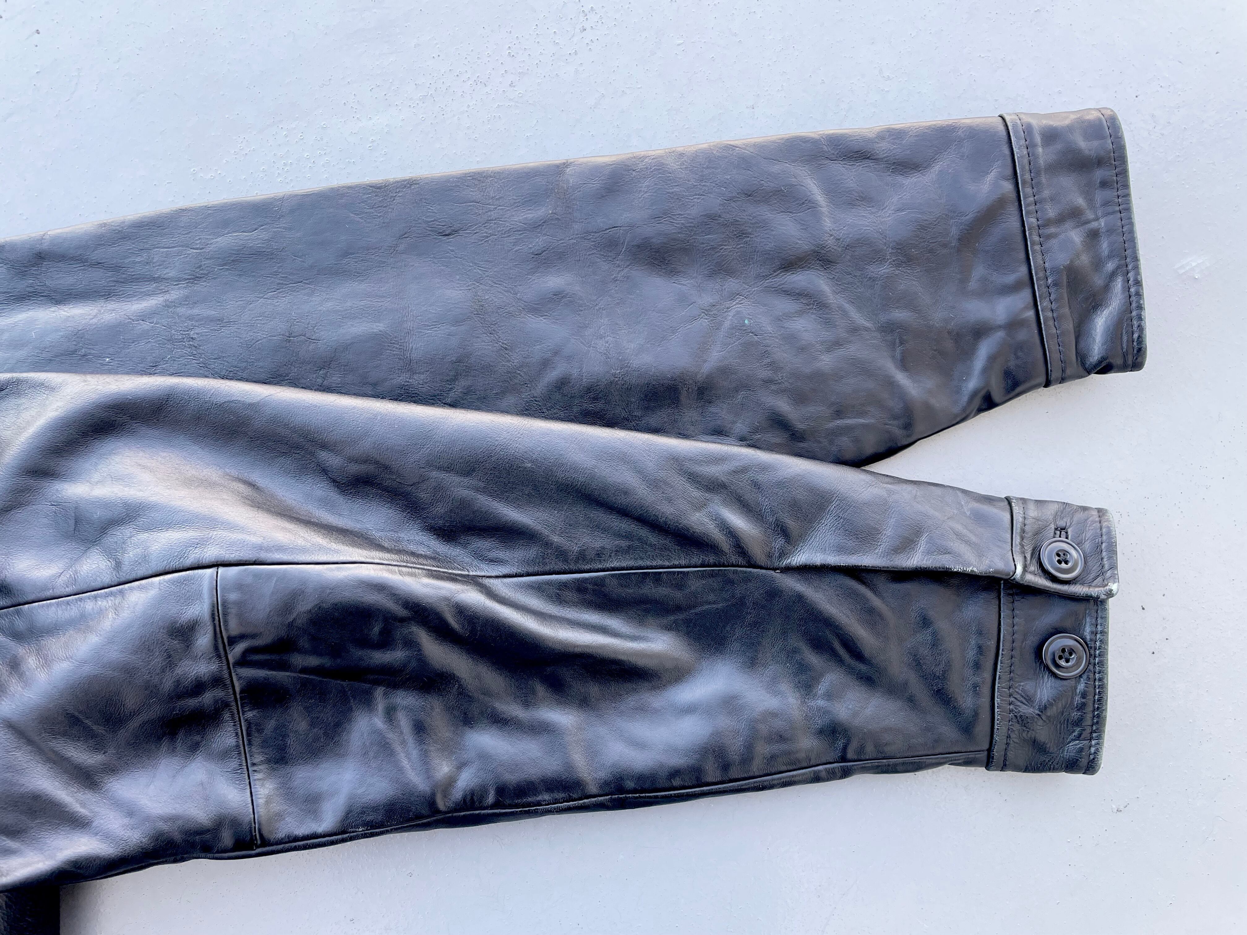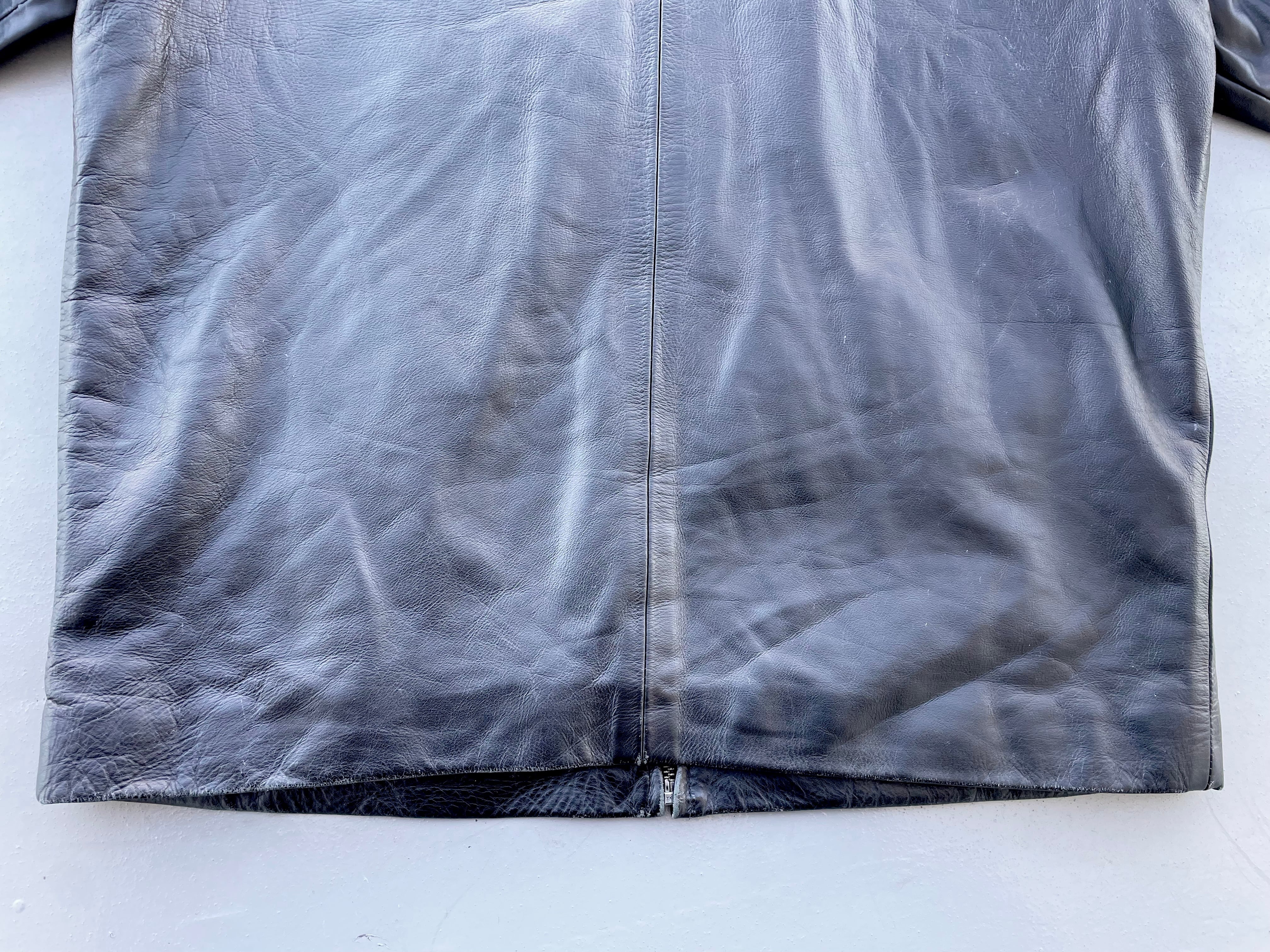 【商品詳細】ギャップのシングルレザージャケット。サイズはM。カラーはブラック。01年代中国製。ギャップ定番モデルのスポーツジャケットタイプのレザージャケット。ソリッドな装いで人気の高い一着。カウレザー+中綿仕様で一着でしっかり暖かいです。多少の使用感や傷はございますが、全体で見ると良い塩梅の経年劣化で雰囲気あります。他気になる傷や穴、レザー硬化等なく前線で活躍する個体かと。