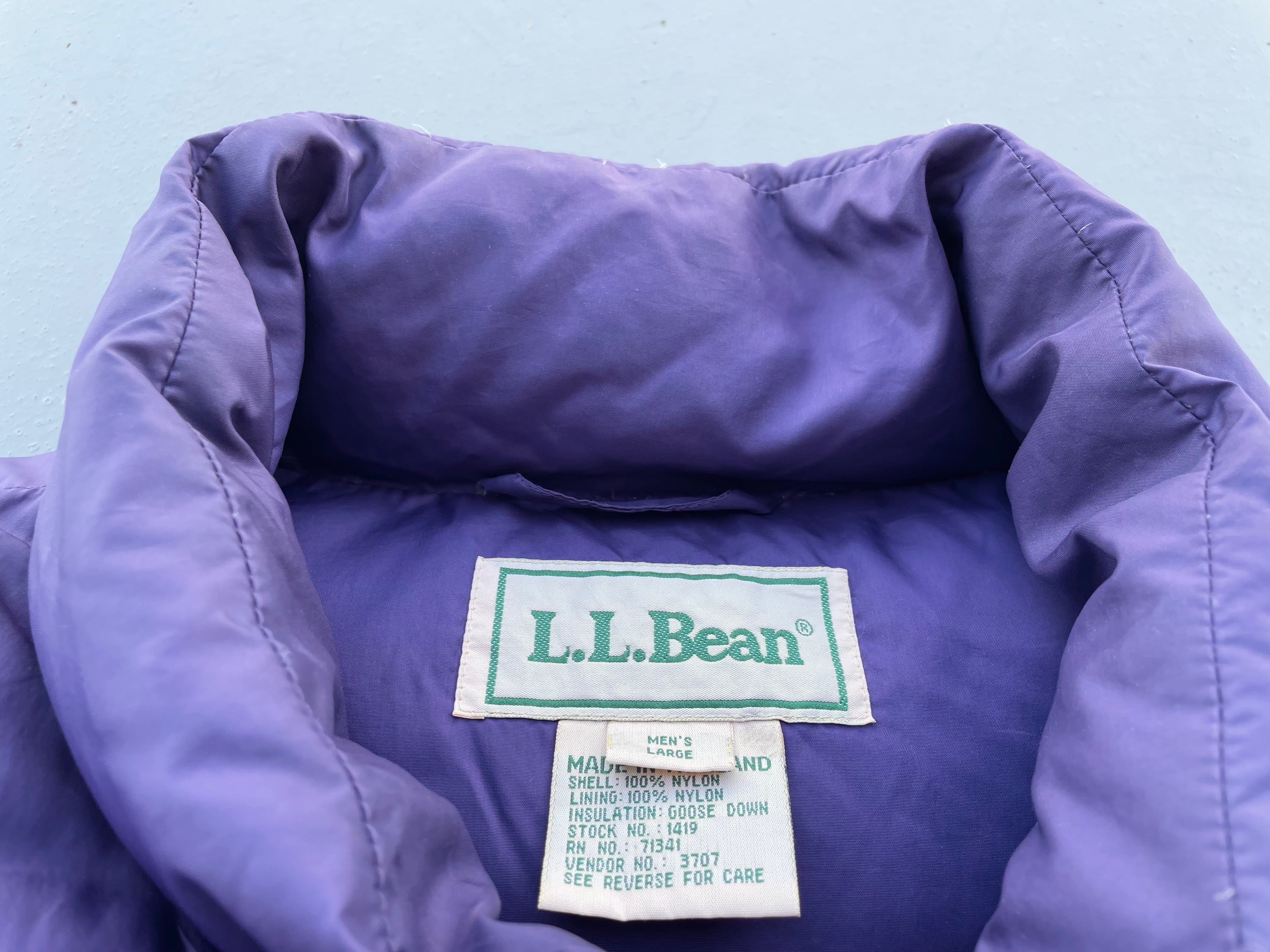 【商品詳細】エルエルビーンのダウンベスト。サイズはMEN’S LARGE。カラーはパープル。90年代タイ製。人気のダウンベスト物。特に人気の高いパープルカラー。全体的にコンディションの良い個体です。