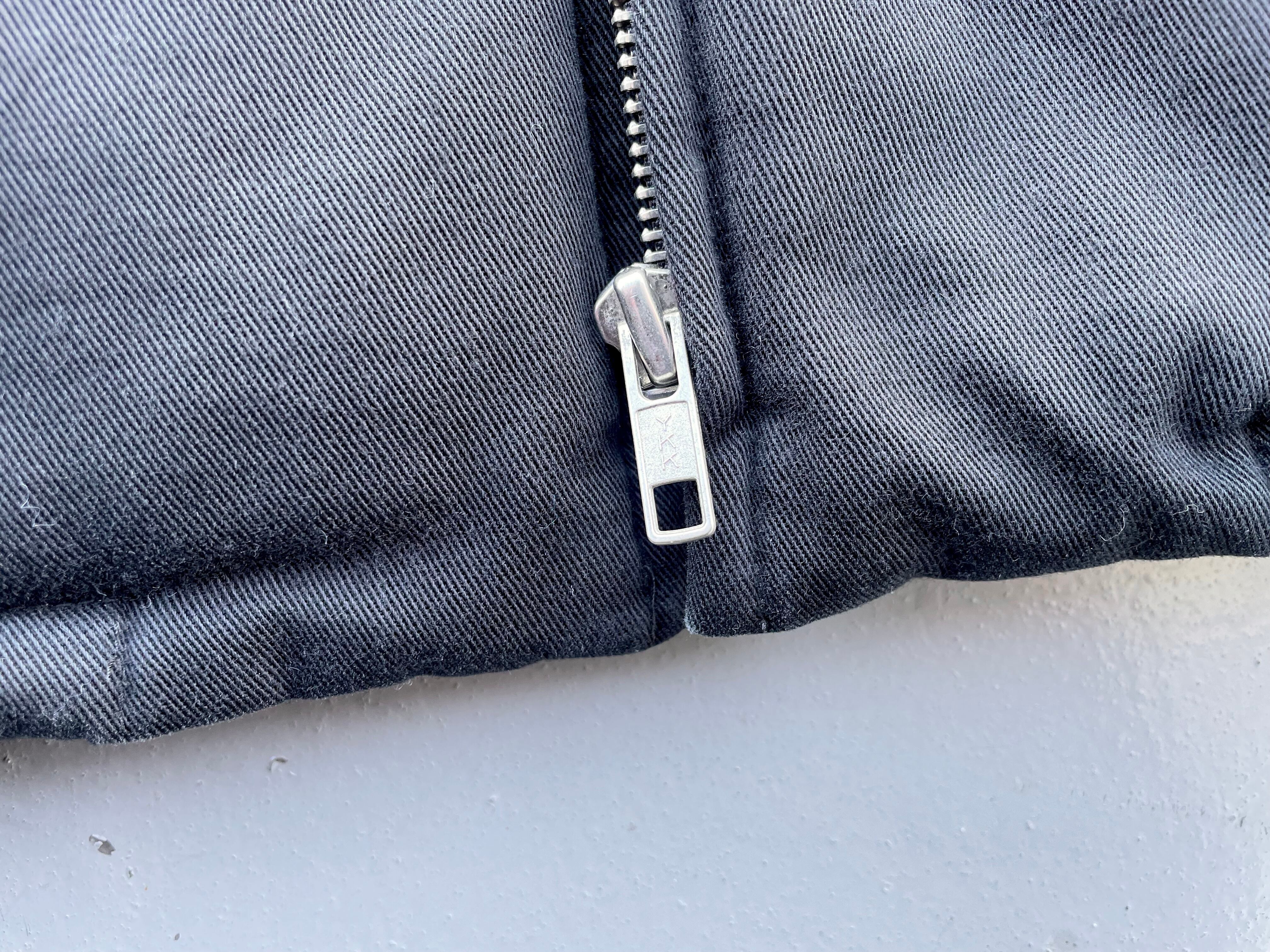【商品詳細】アニエスベーのコットン中綿入りジャケット。サイズは2。カラーはブラック。90年代フランス製。アニエスベーの中でも特に人気の高いスポーツジャケットタイプ物。コットン地の中綿入りでガシガシ使えます。着丈・身幅しっかりある大きめサイズでお探しの方も多い個体かと。