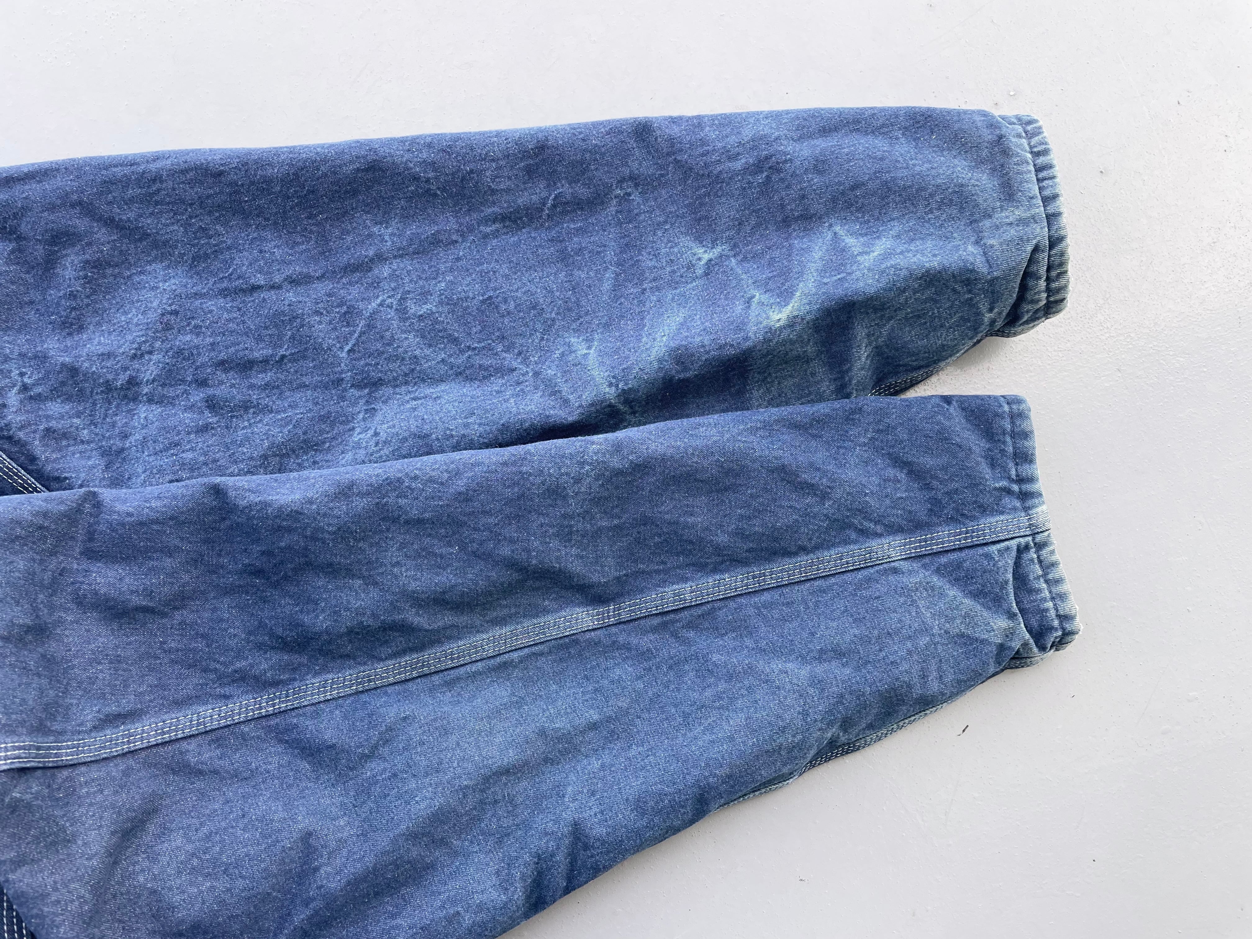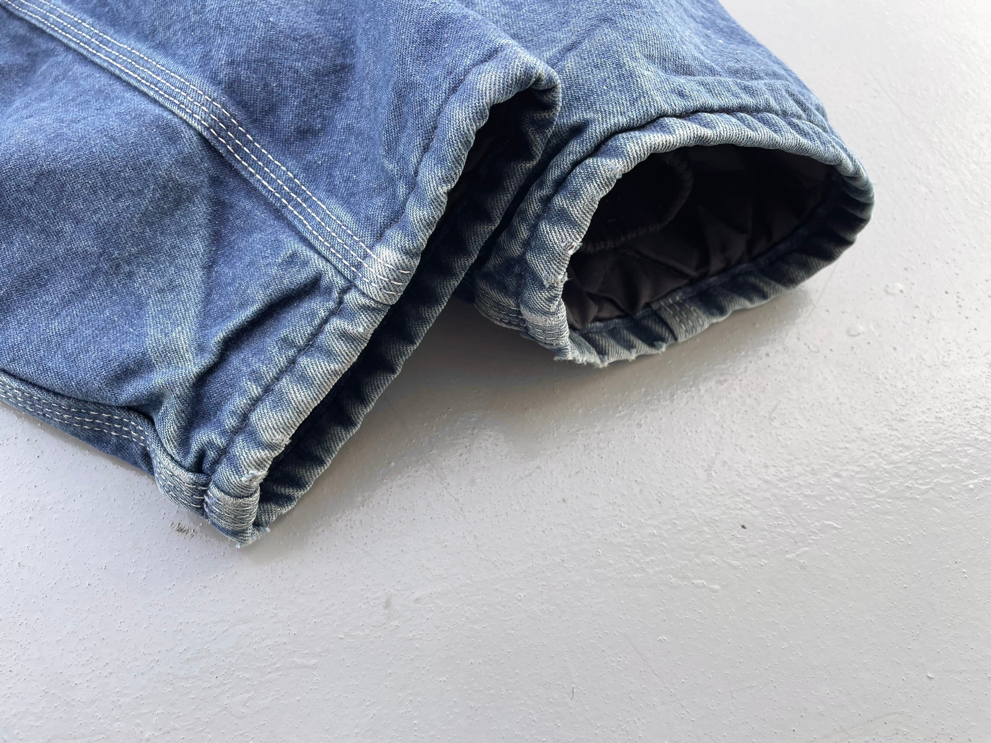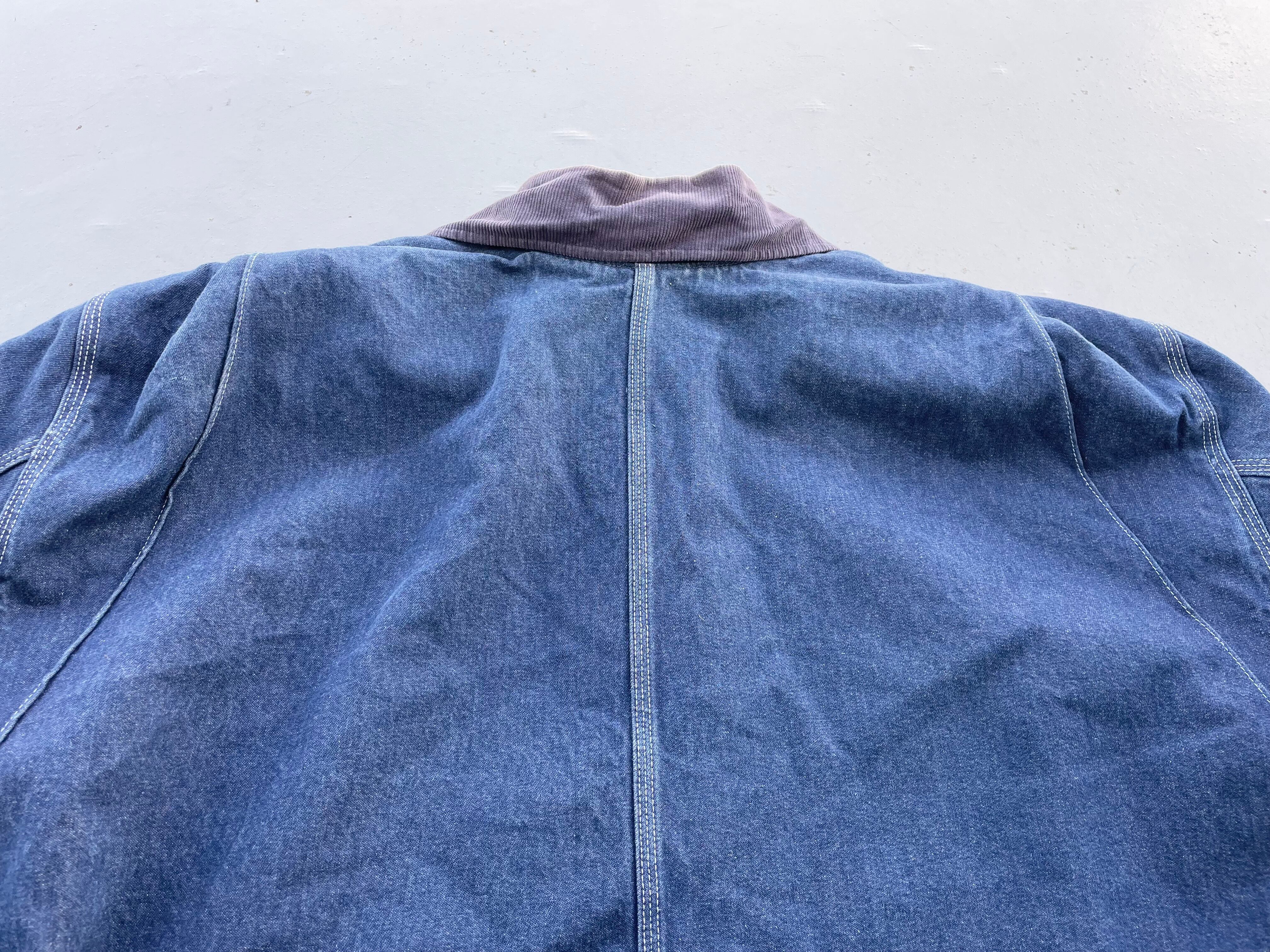 【商品詳細】ディッキーズのデニムチョアコート。サイズは実寸XL-2XL程。カラーはインディゴ。90年代製。デニム地ならではのフェードやハチノスがクールな個体。大きめサイズでしっかり中に着込めます。