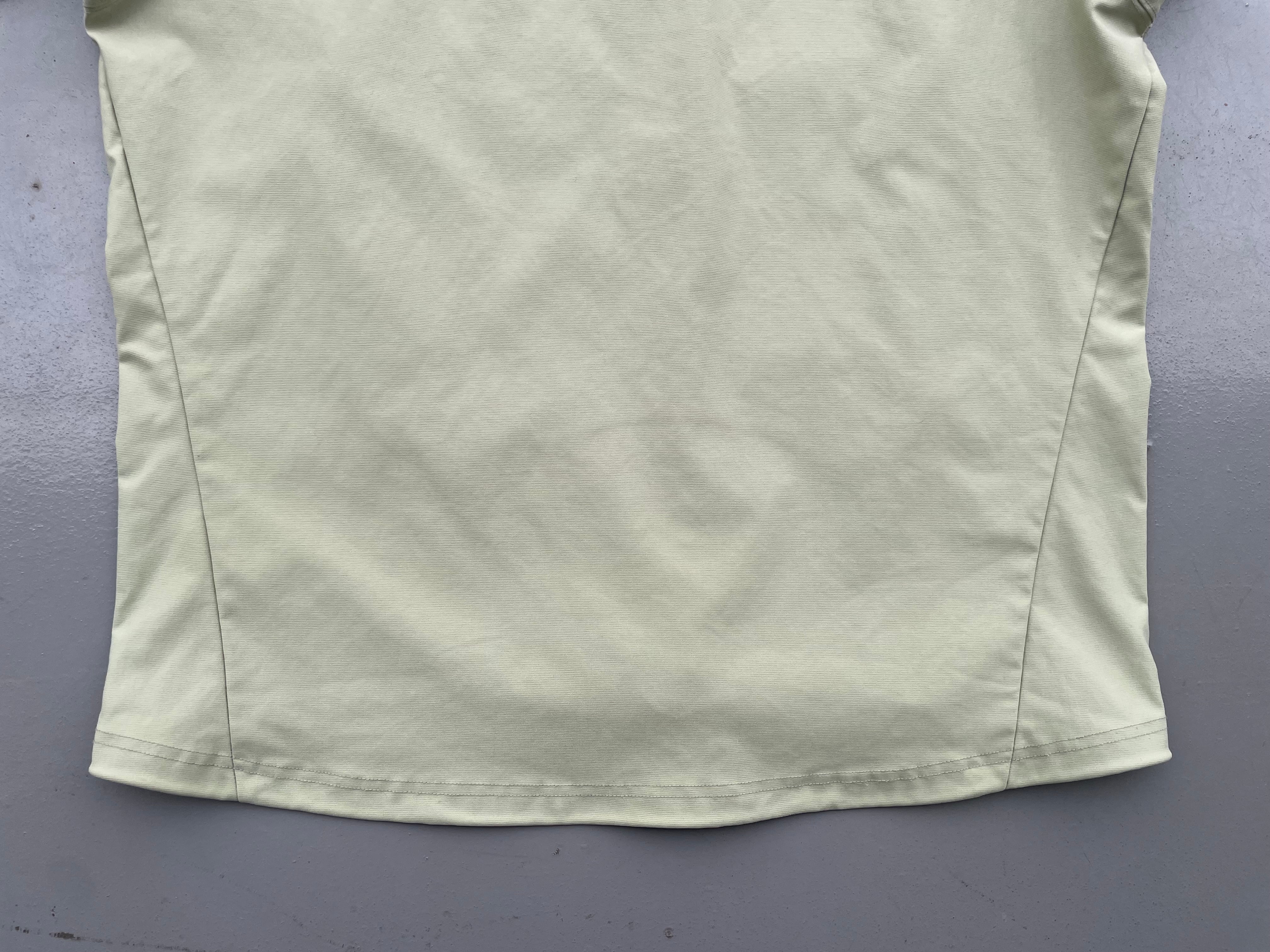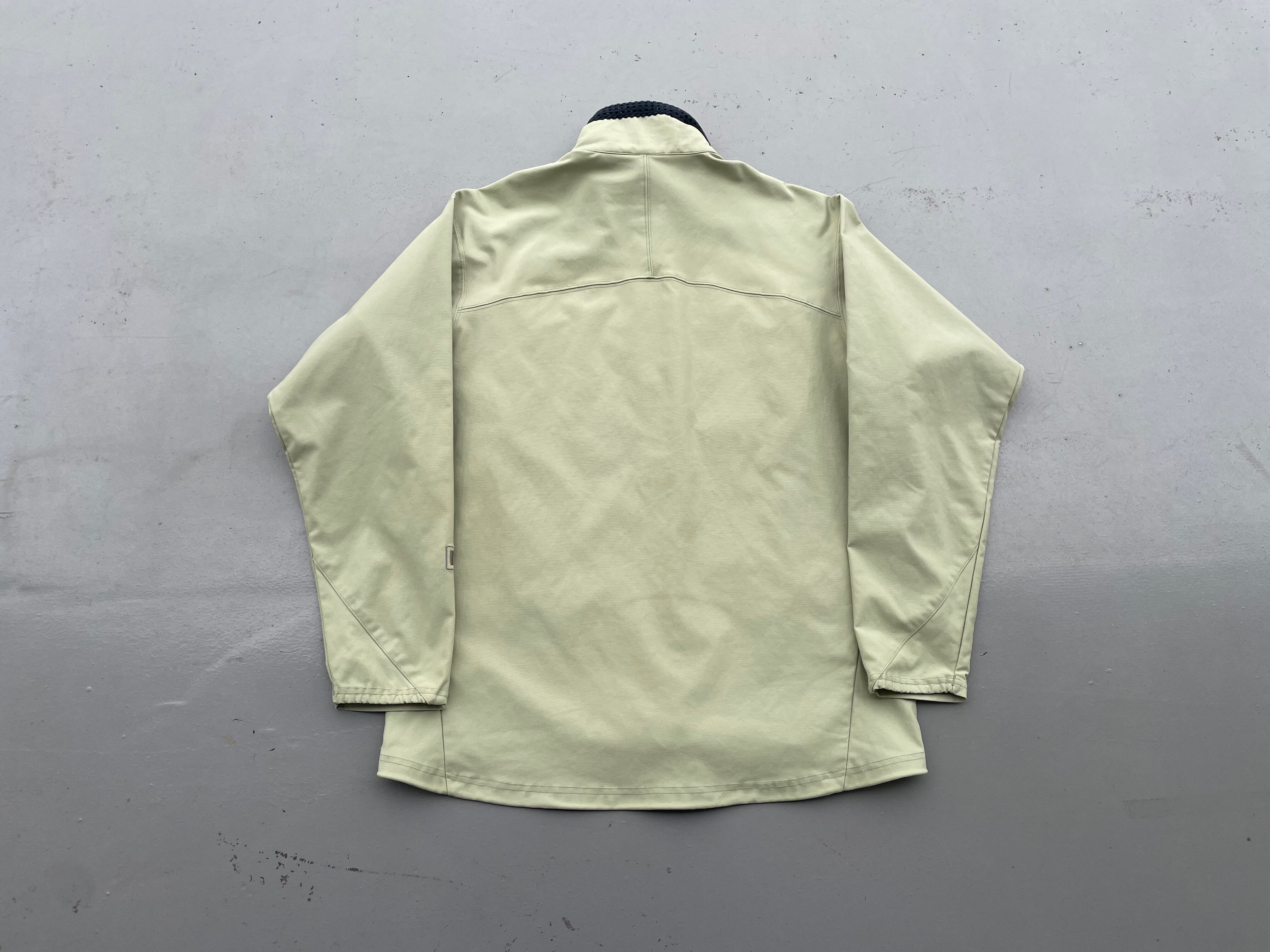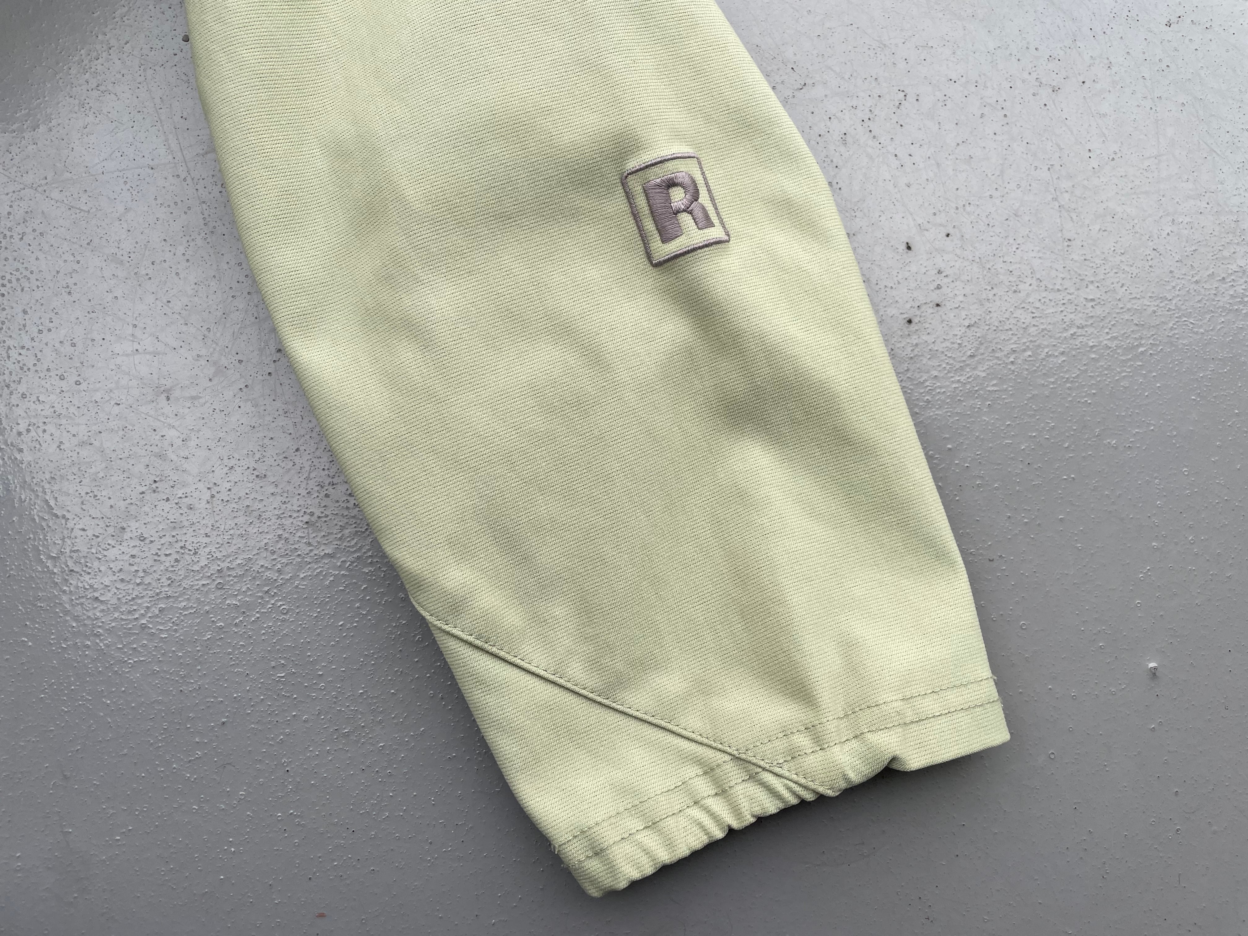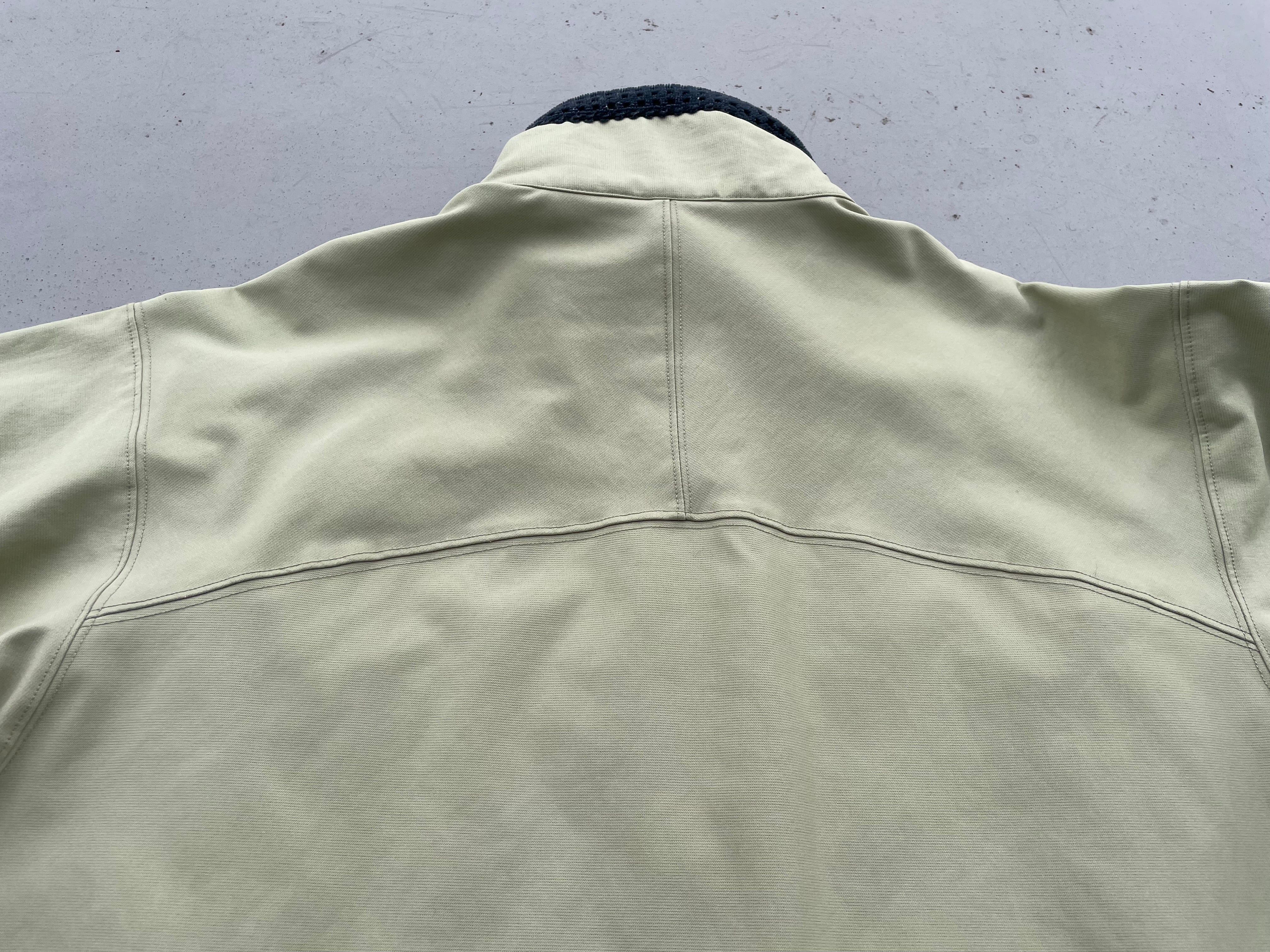 【商品詳細】パタゴニアのスリングショットジャケット。サイズはL。カラーはライムストーン。03年カナダ製。パタゴニア定番のR1ソフトシェルを使用したジャケット。ミリタリールックなカラーでありながらアーバンな香りがする一着。Marsでも採用されたモデルでこちらは両袖にポケットが付かないソリッドなデザイン。ほんのりライムグリーンカラーが入る洒落たカラー◎