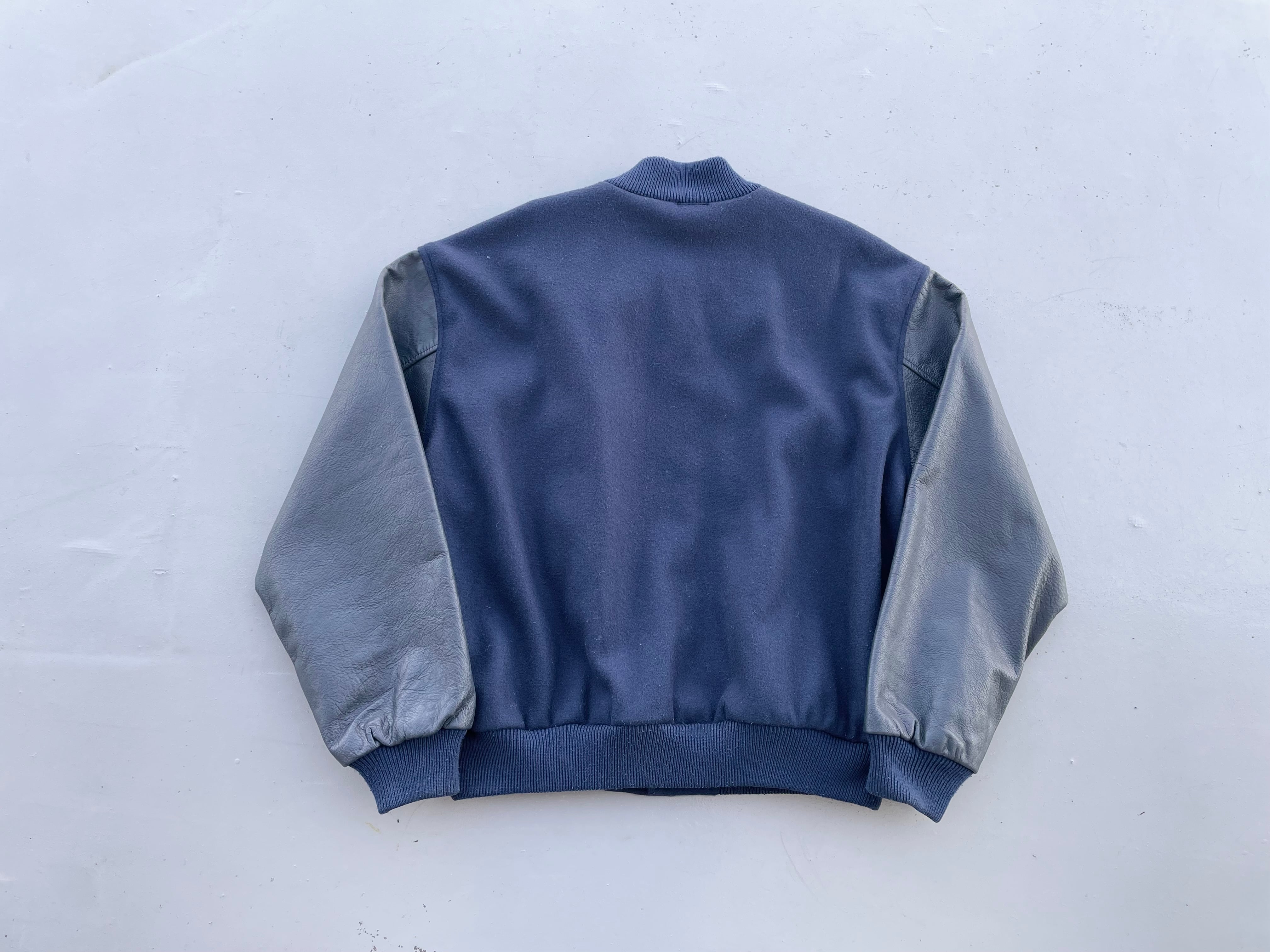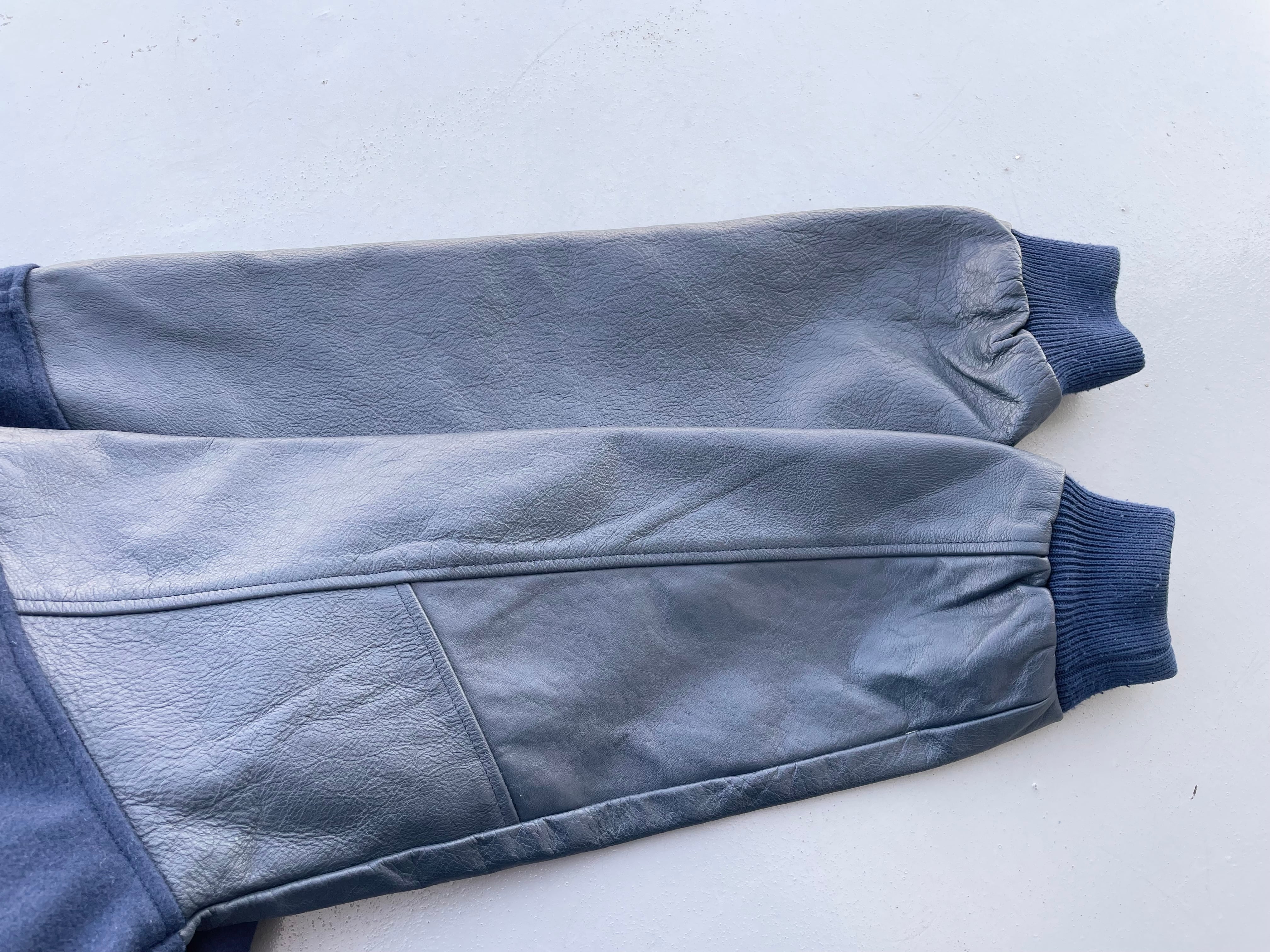 Vintage Leather Sleeve Stadium Jumper 80-90s