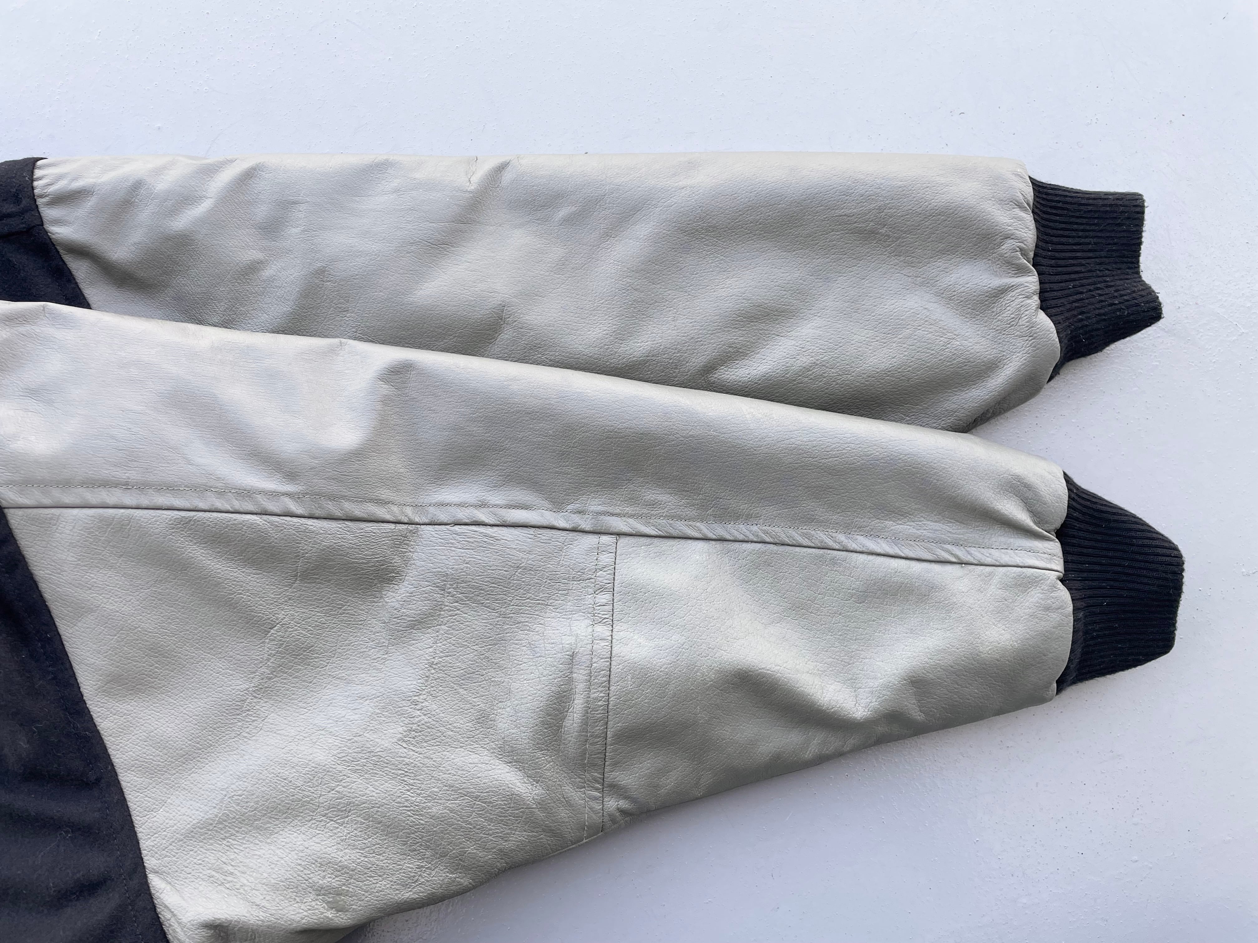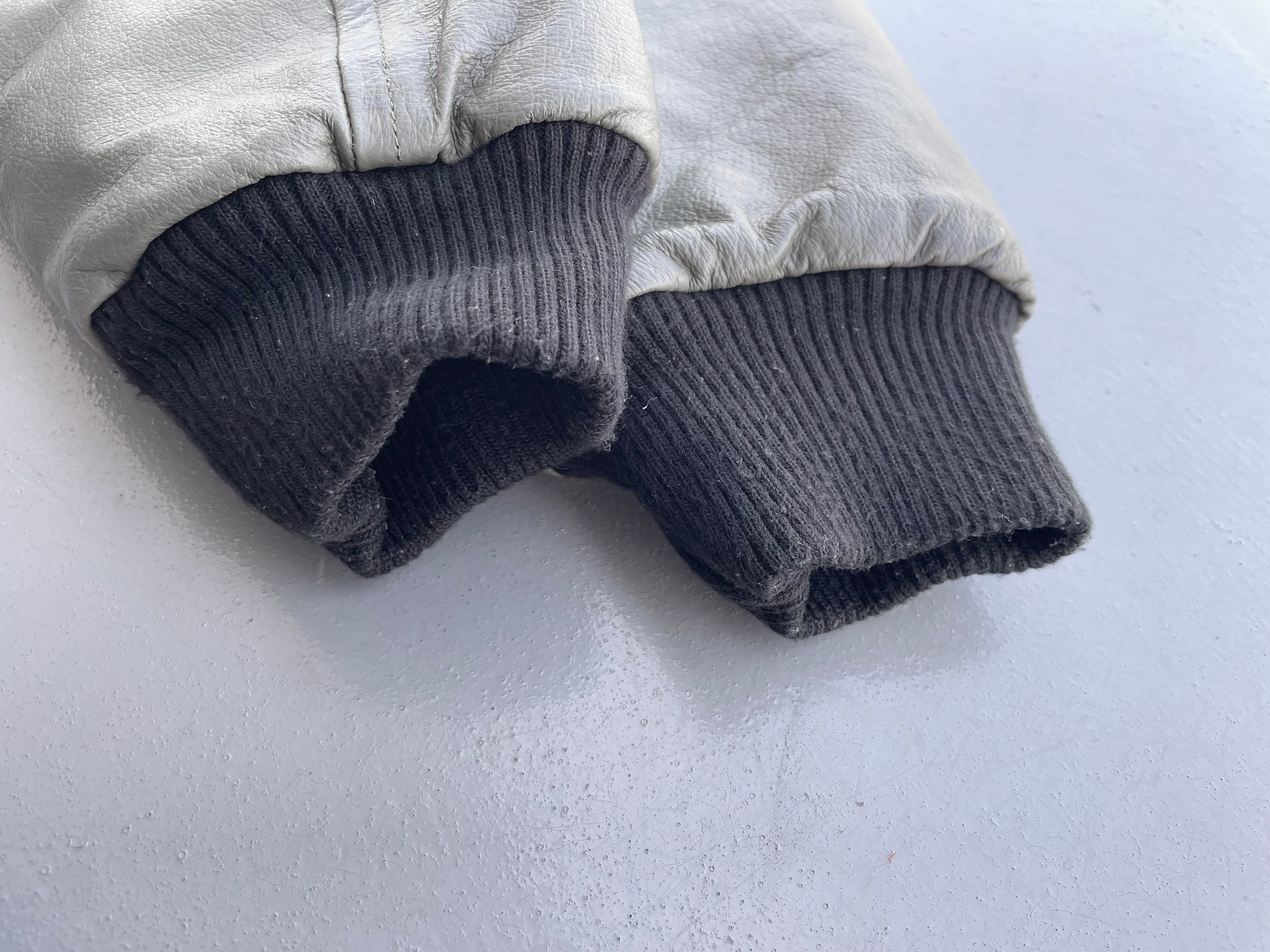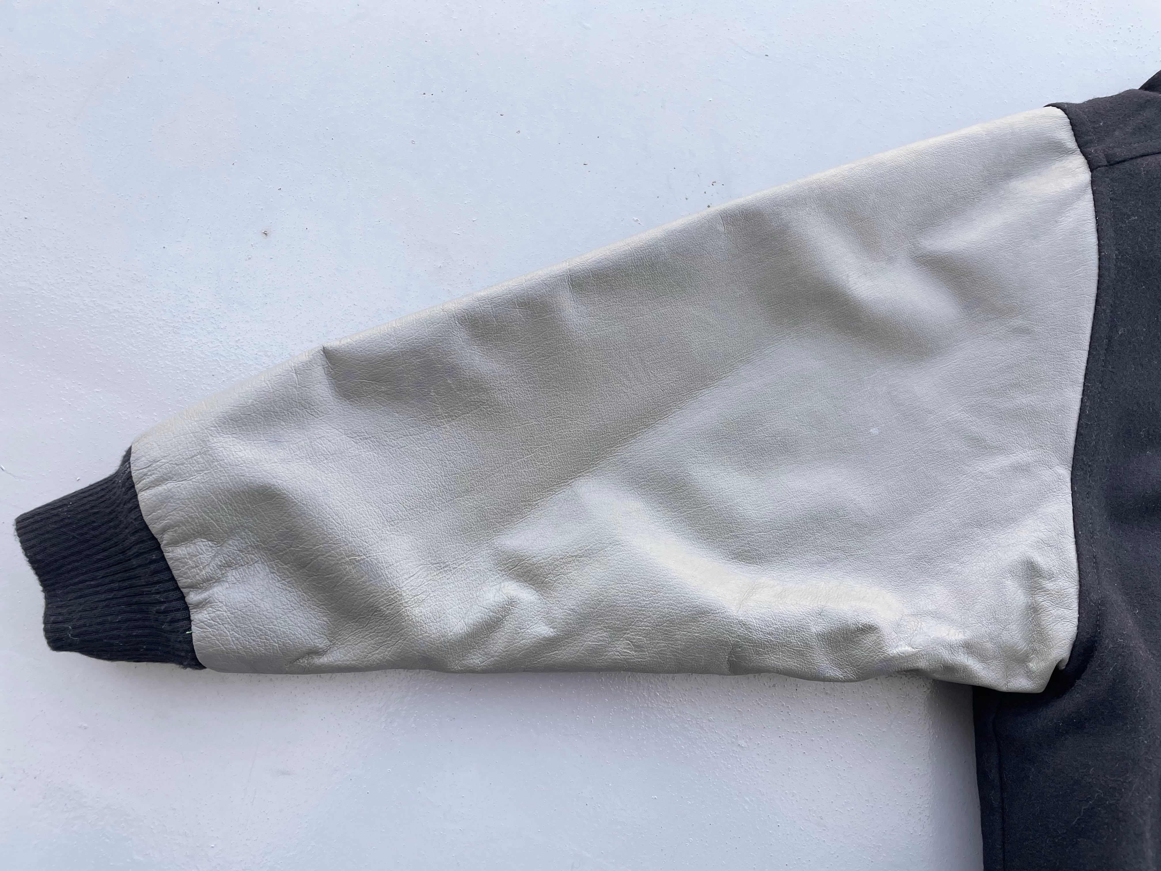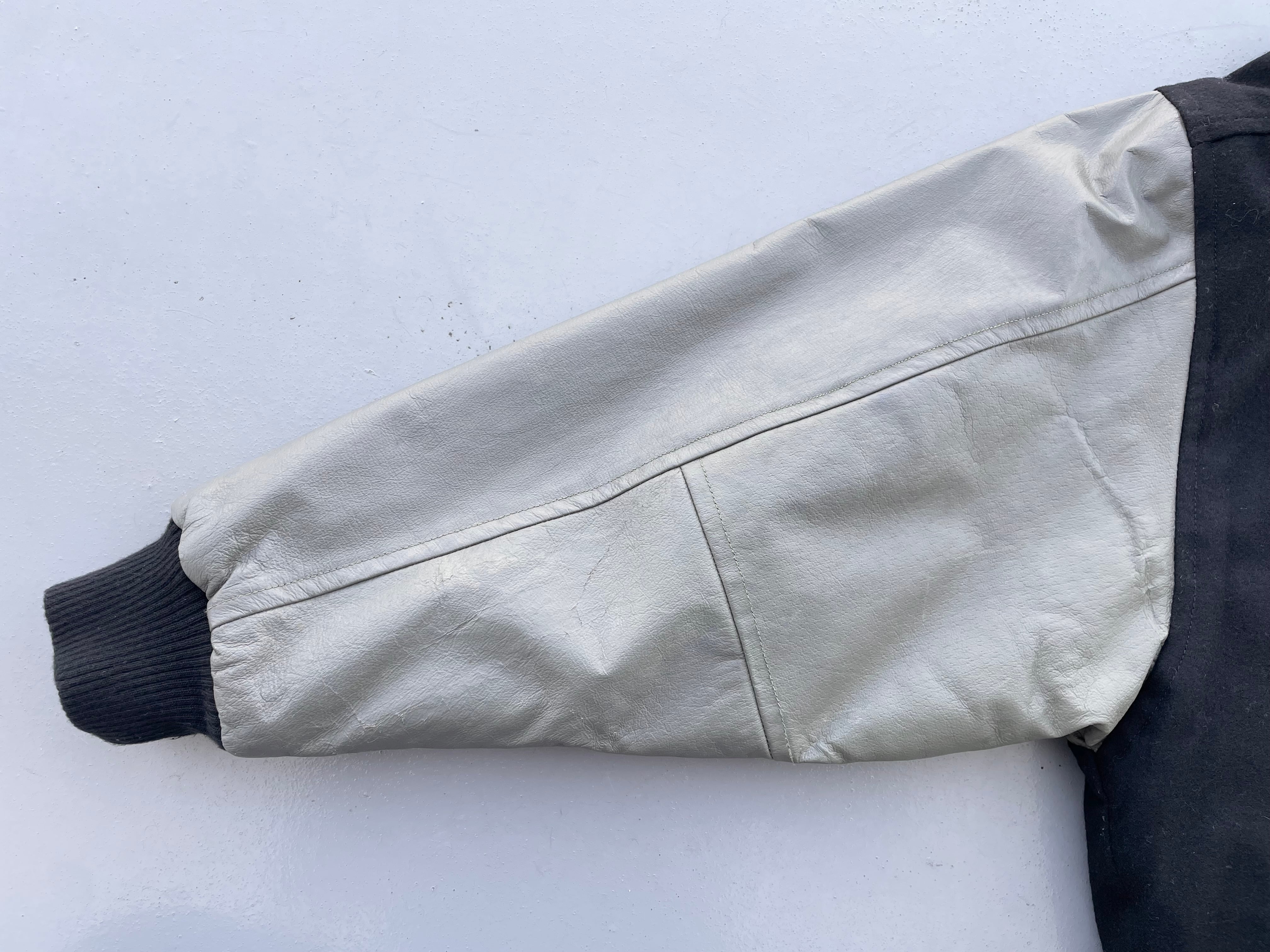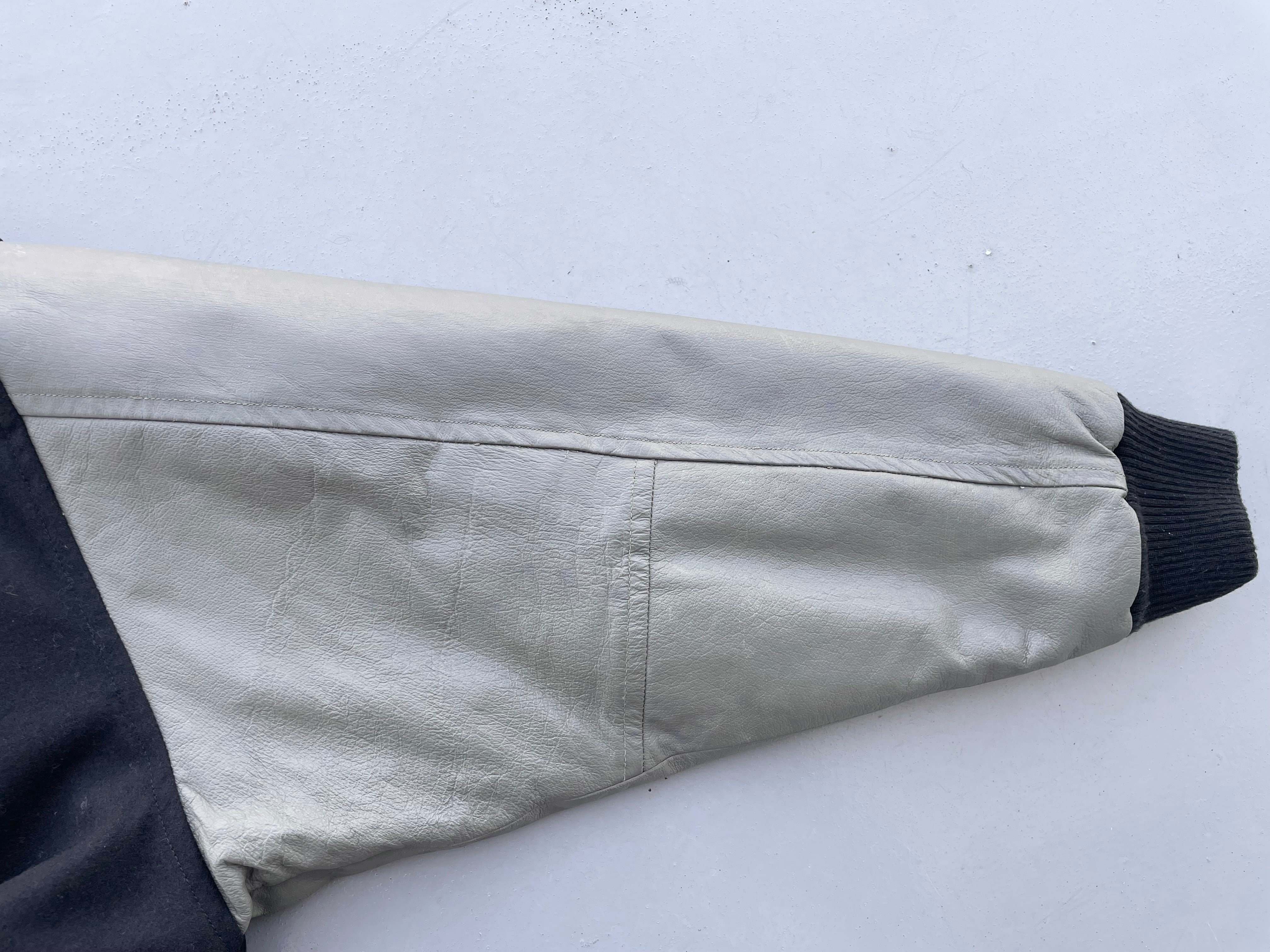 【状態】袖レザー部分にひび割れや汚れ、他使用感はございますが、使用に支障を及ぼす傷や汚れ等見受けられず、古着慣れされている方であれば問題無くご使用いただけると思います。