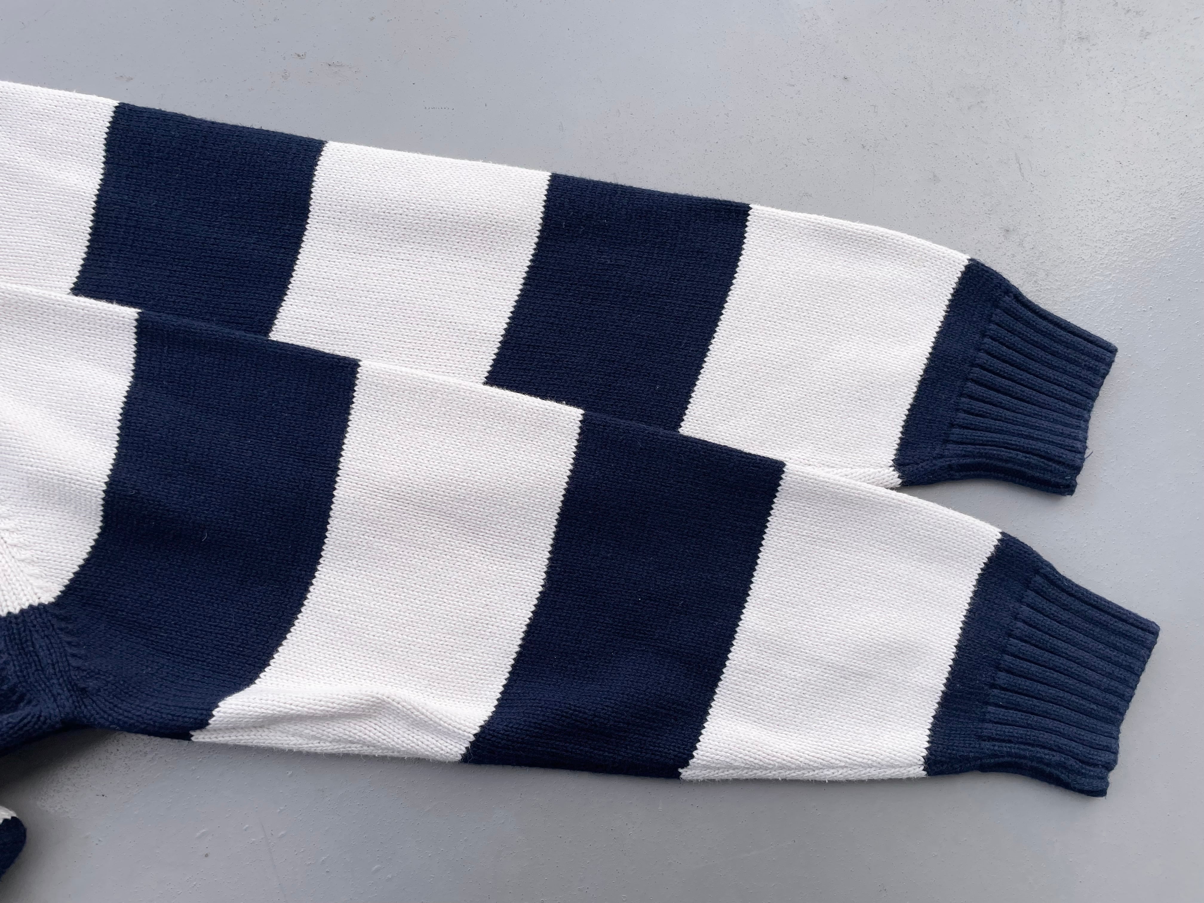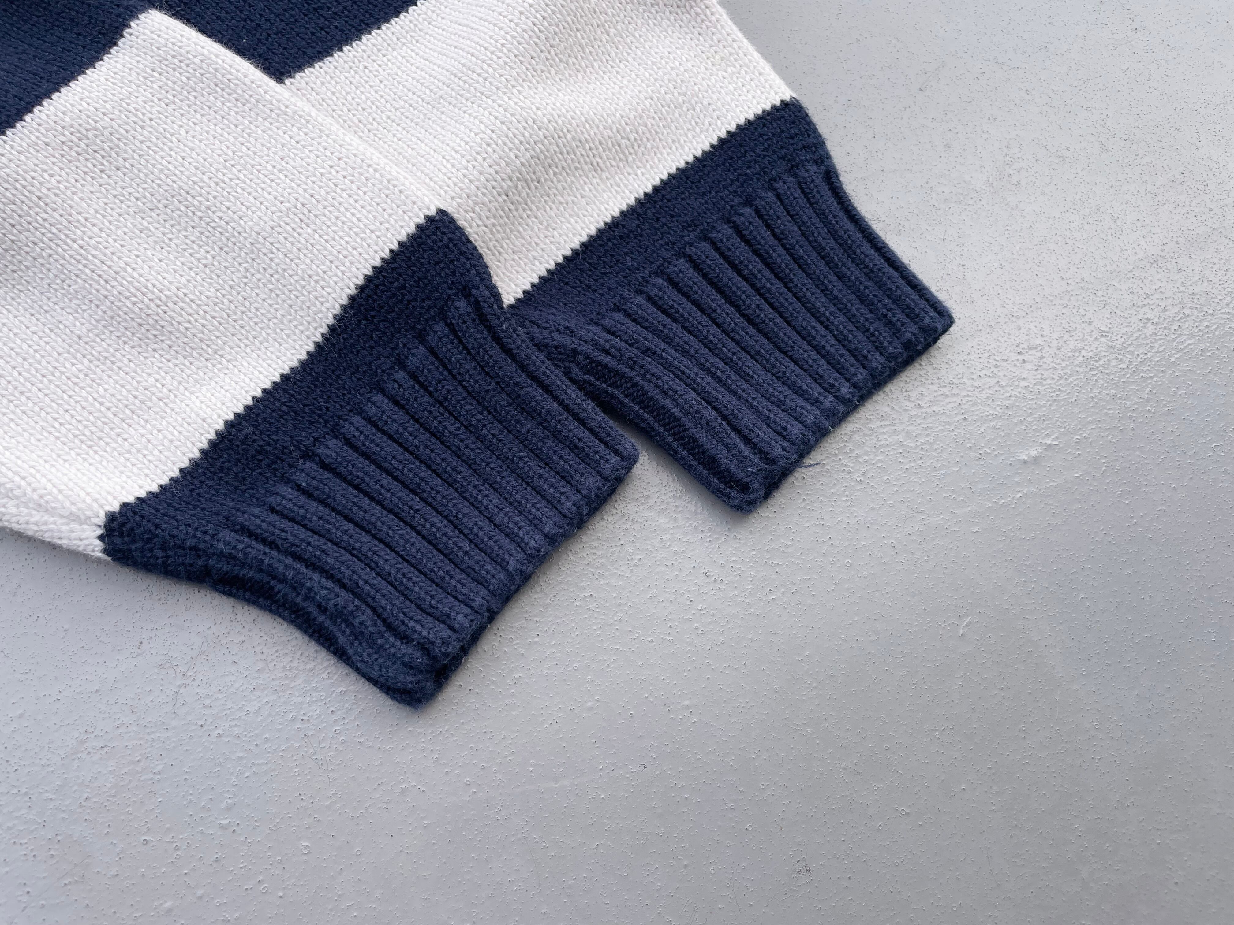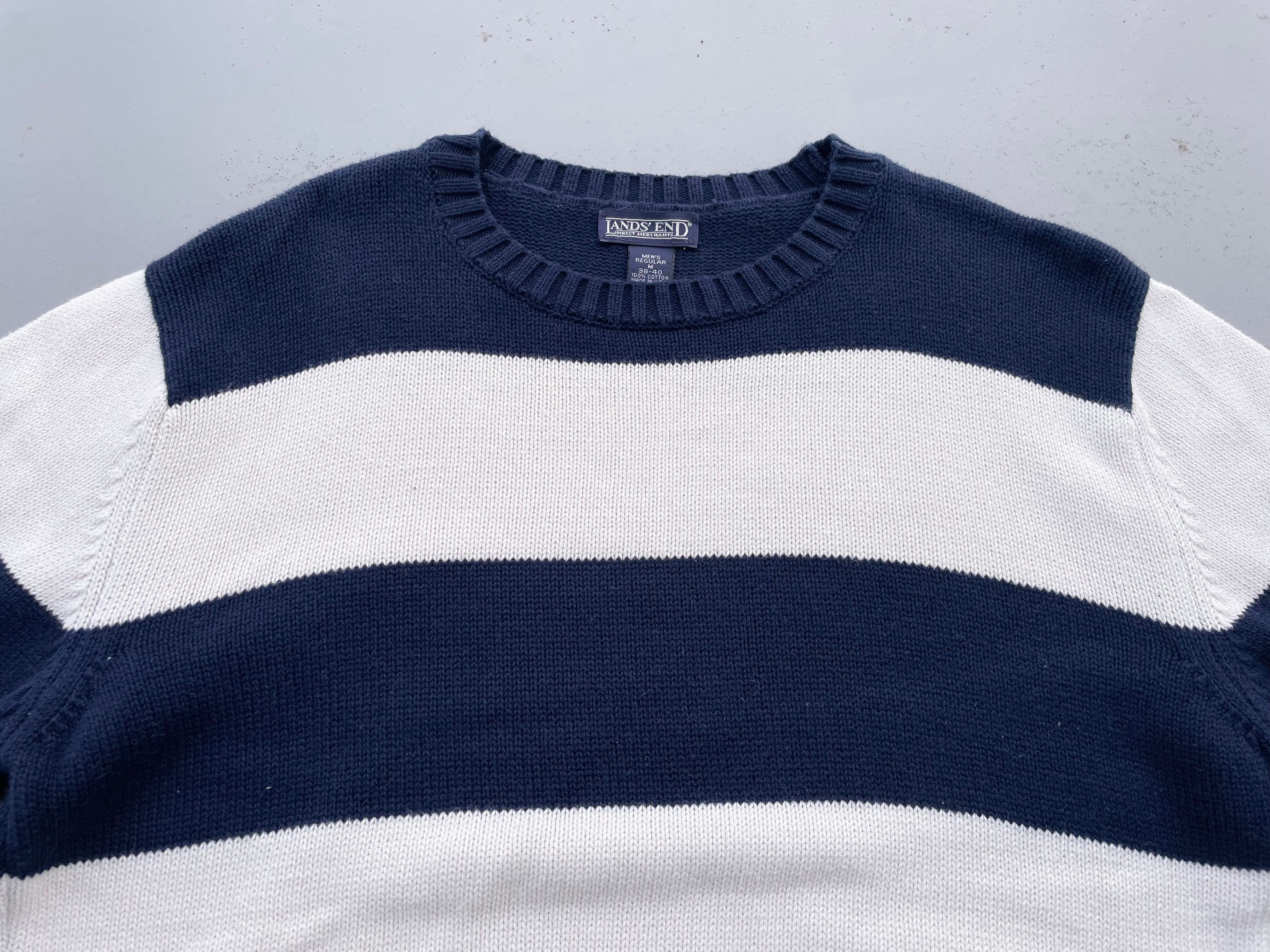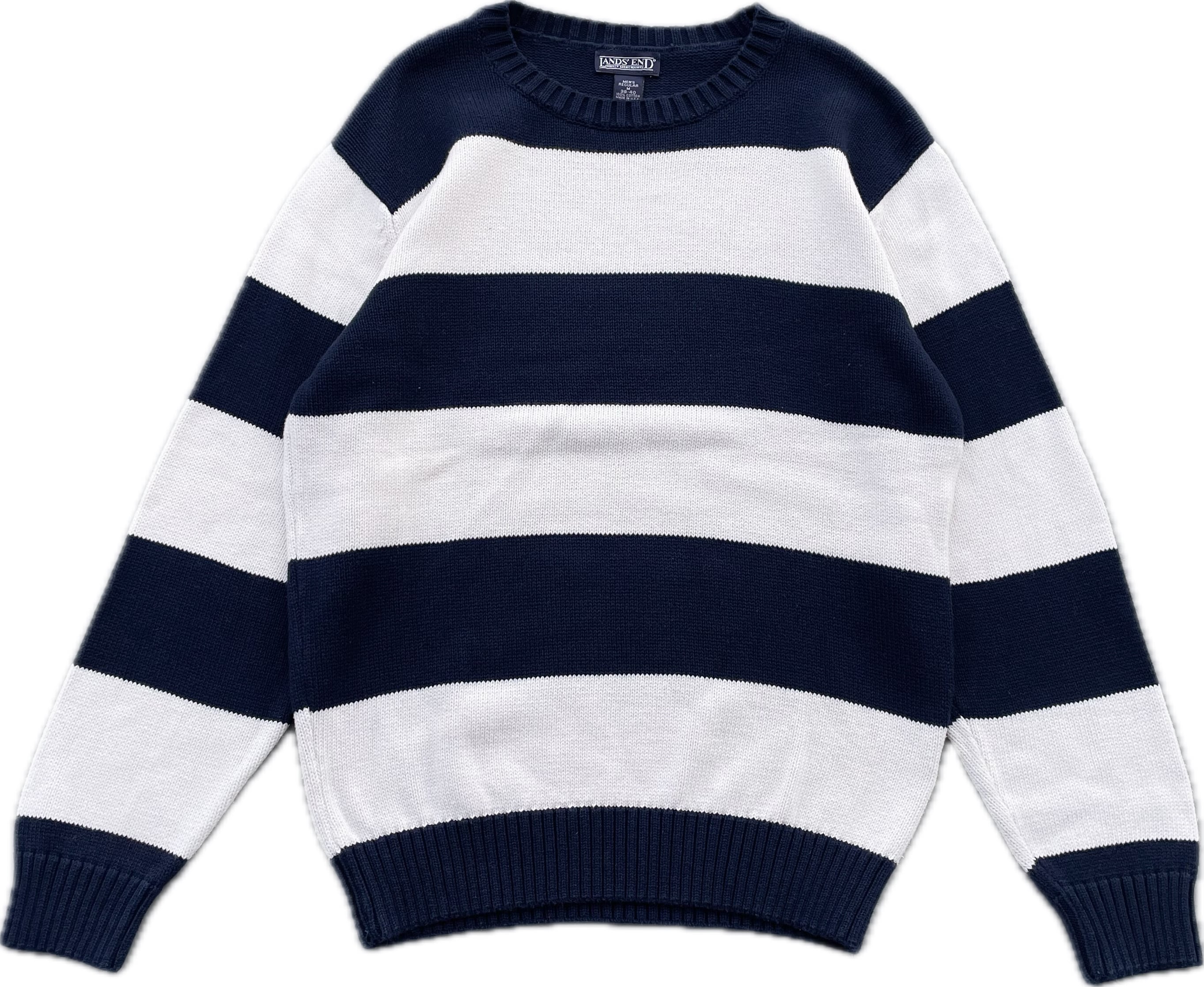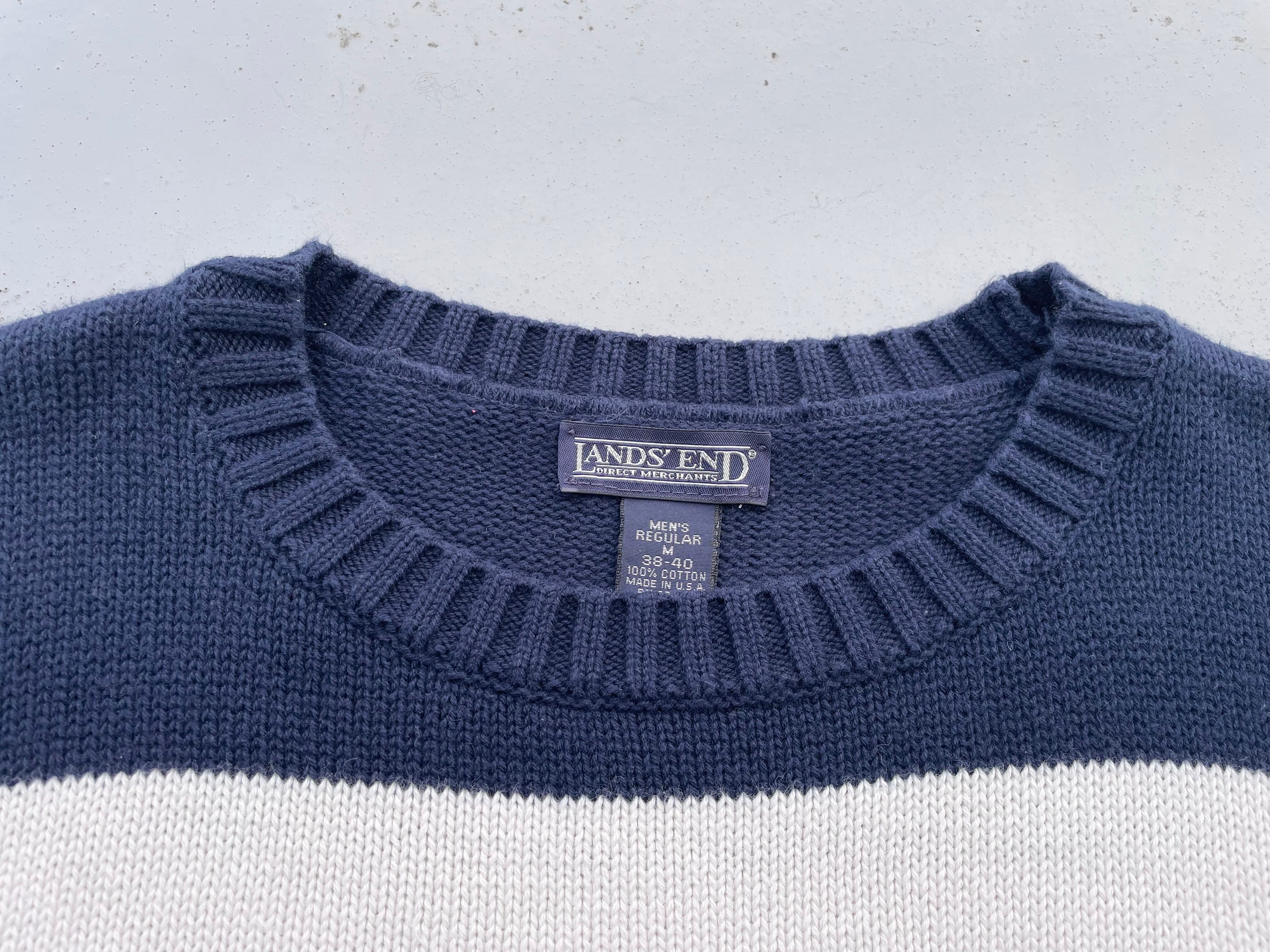 【商品詳細】ランズエンドのコットンニット。サイズはM。カラーはネイビー×ホワイトのボーダーパターン。90年代USA製。人気のコットンニット物。クリーンな印象の配色と太めピッチのボーダーが良い調子です。