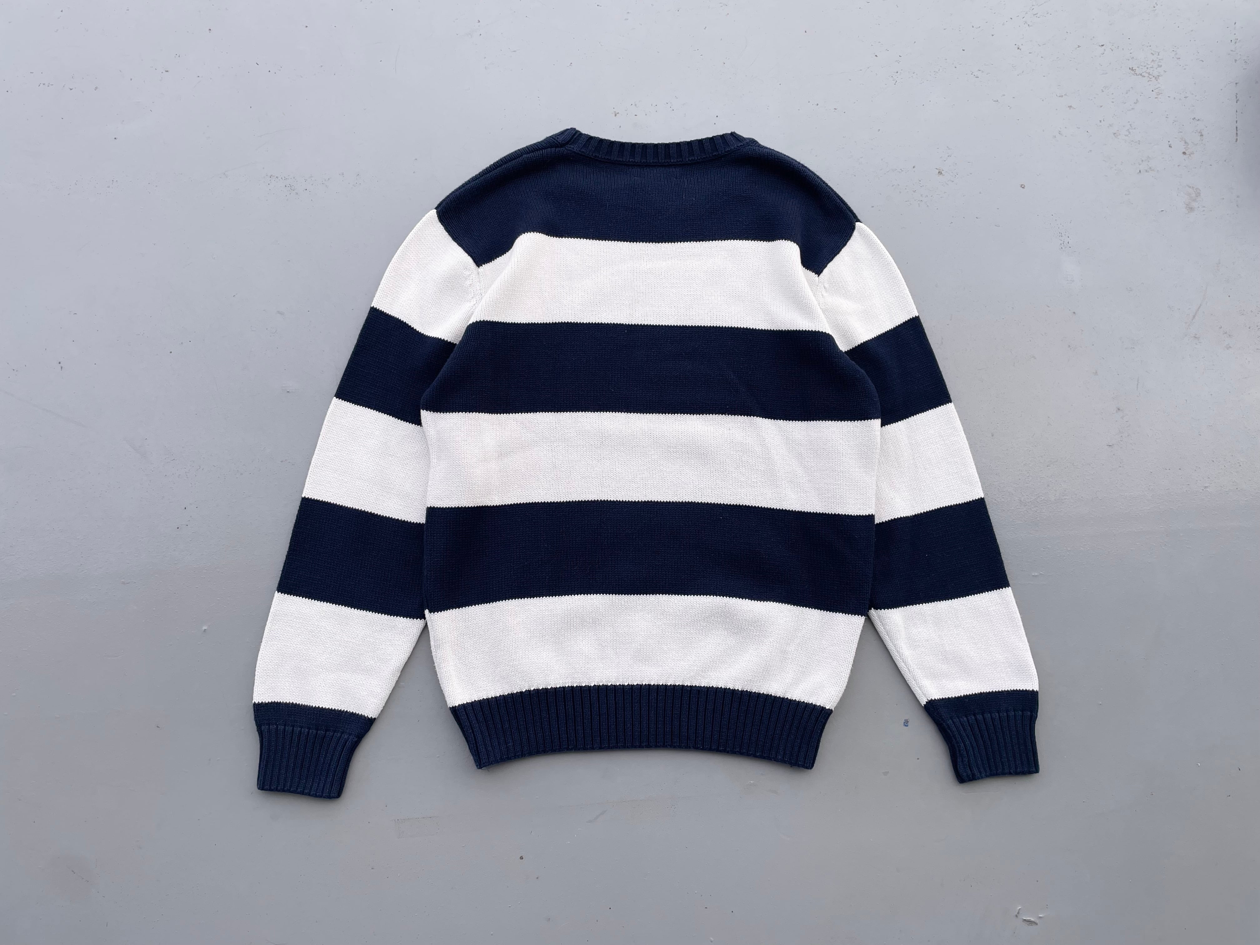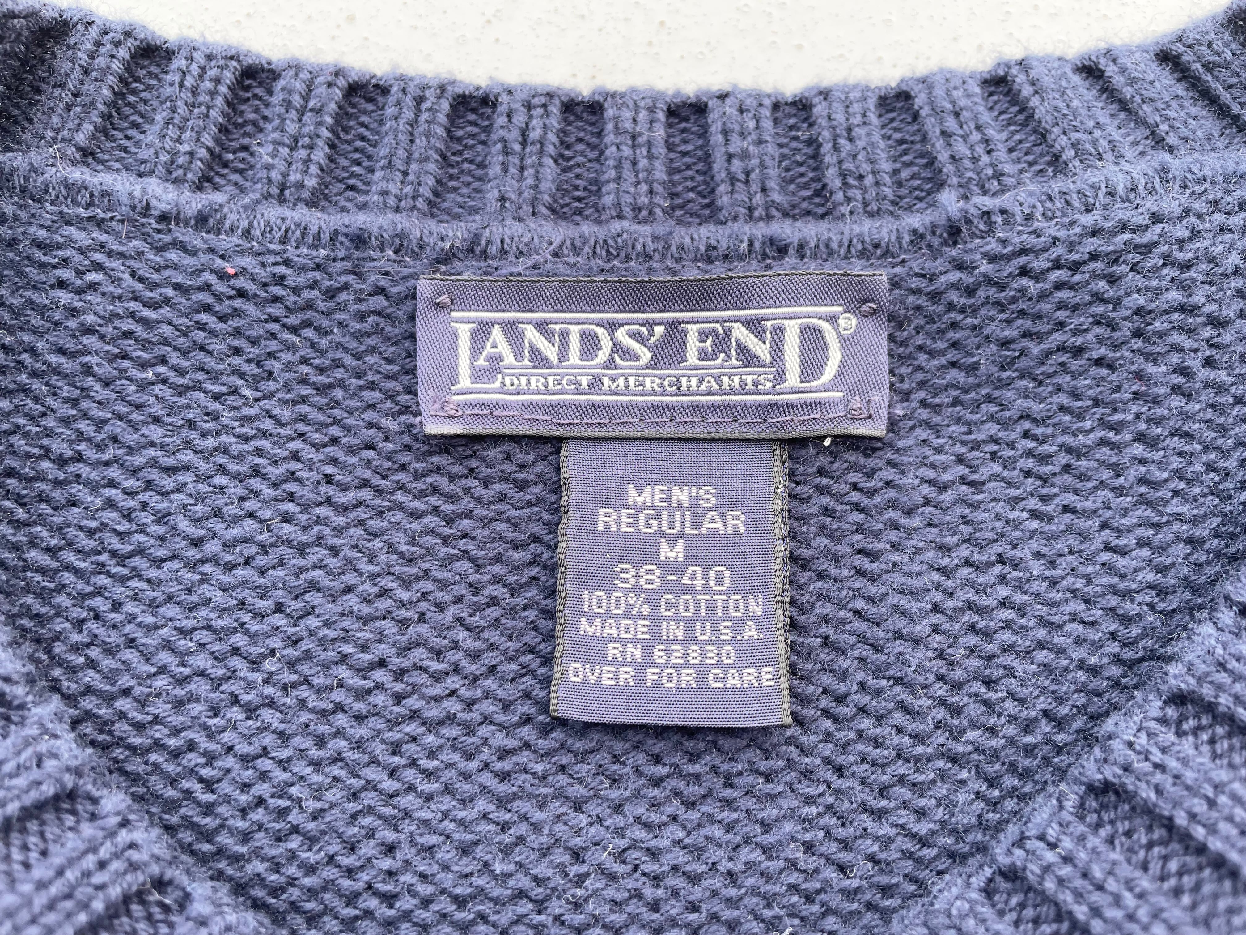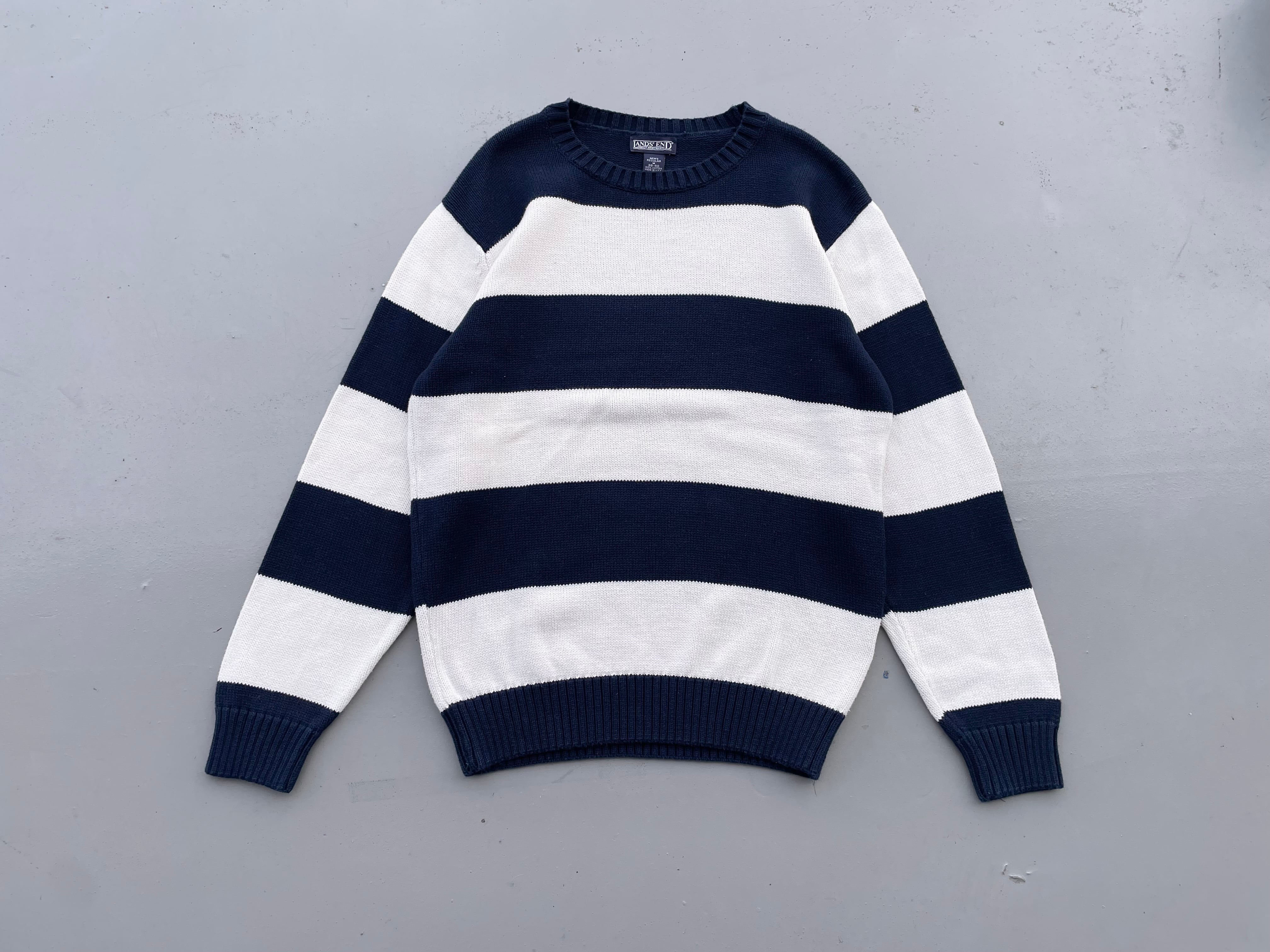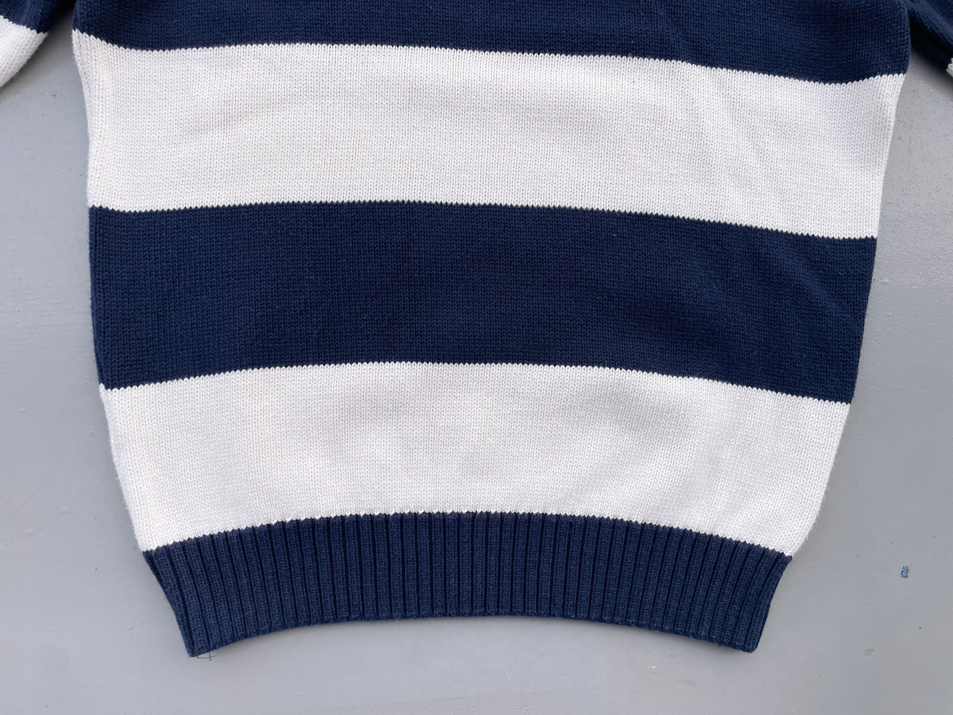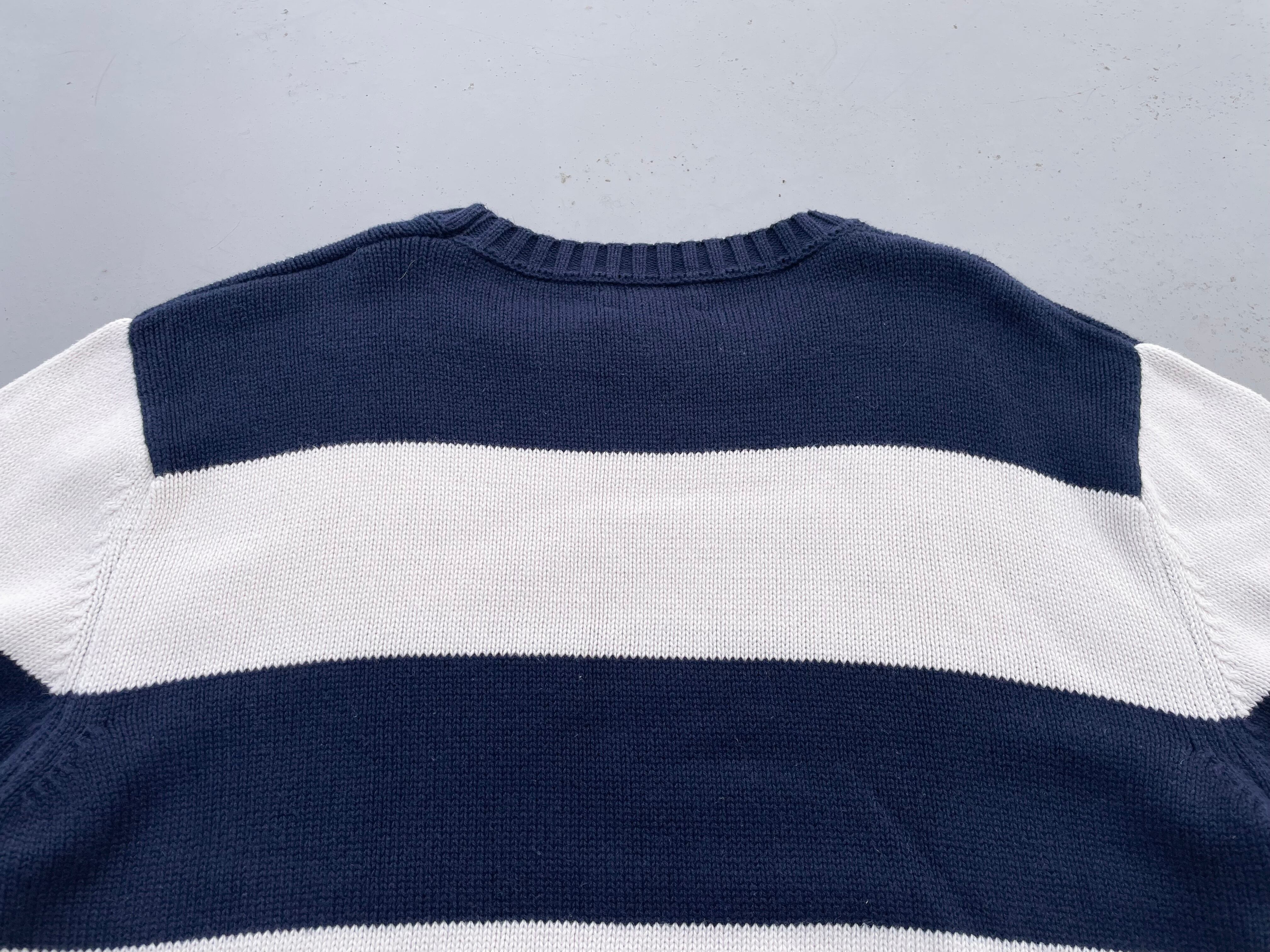【商品詳細】ランズエンドのコットンニット。サイズはM。カラーはネイビー×ホワイトのボーダーパターン。90年代USA製。人気のコットンニット物。クリーンな印象の配色と太めピッチのボーダーが良い調子です。