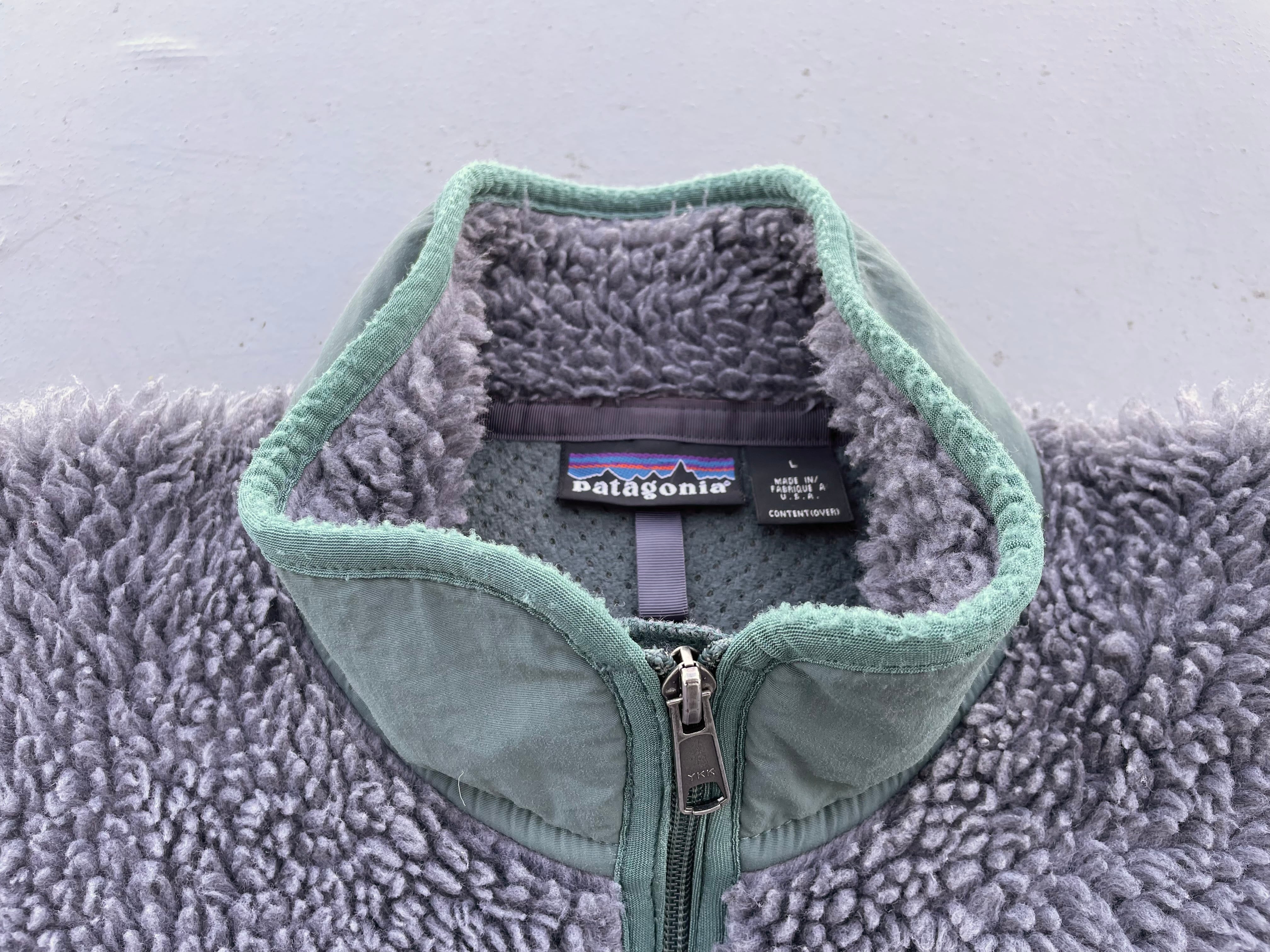 【商品詳細】パタゴニアのクラシックレトロカーディガン。サイズはL。カラーはチャコールヘザー。00年USA製。人気モデルレトロカーディガン。人気のチャコールヘザー物。襟のパイピングに毛羽立ちや袖裏に使用感はございますが問題ない程度かと。良いサイズです。