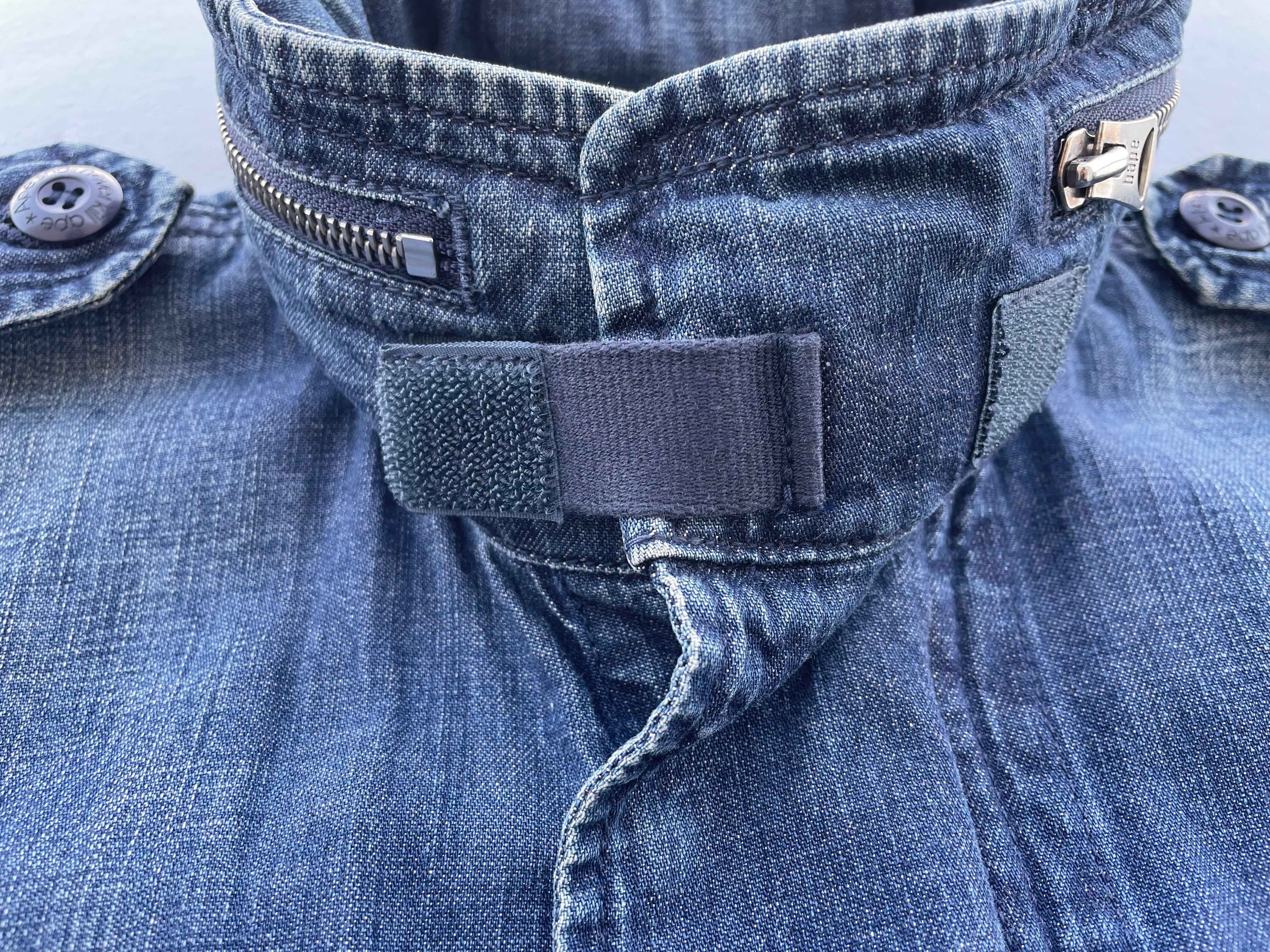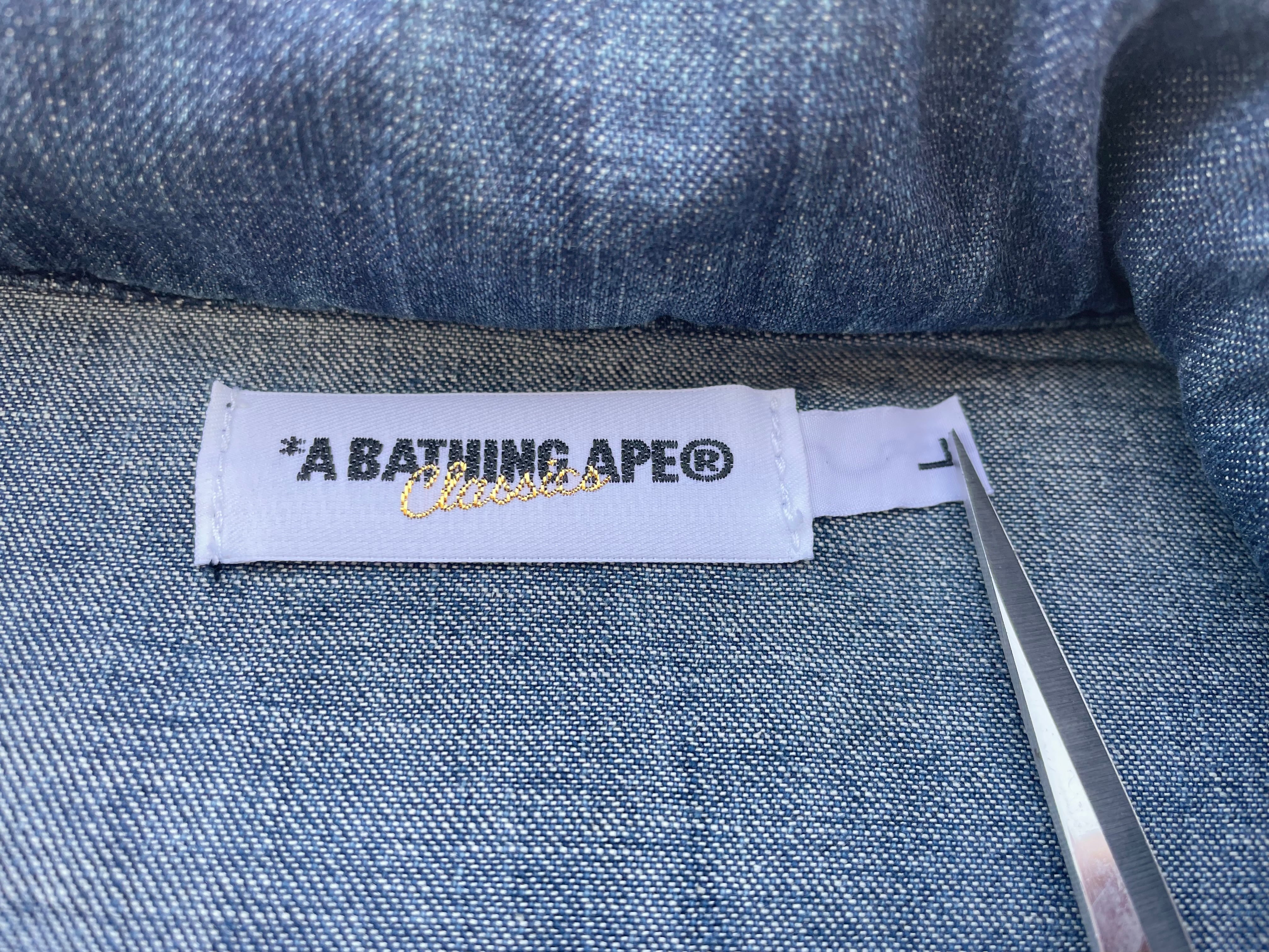 【商品詳細】A BATHING APEのデニムフィールドジャケット。サイズはL。カラーはインディゴブルー。00年代日本製。M-65フィールドジャケットをデニムベースにAPEの解釈で落とし込んだ一着。当時物のディテールを残しつつAPEな遊び心やギミックがしっかり入るらしさ全開のデザイン。デニム物ですがごわっとせず、程よい厚みと重さで今時期から春先にかけて活躍してくれそうです。これまじで良いです。
