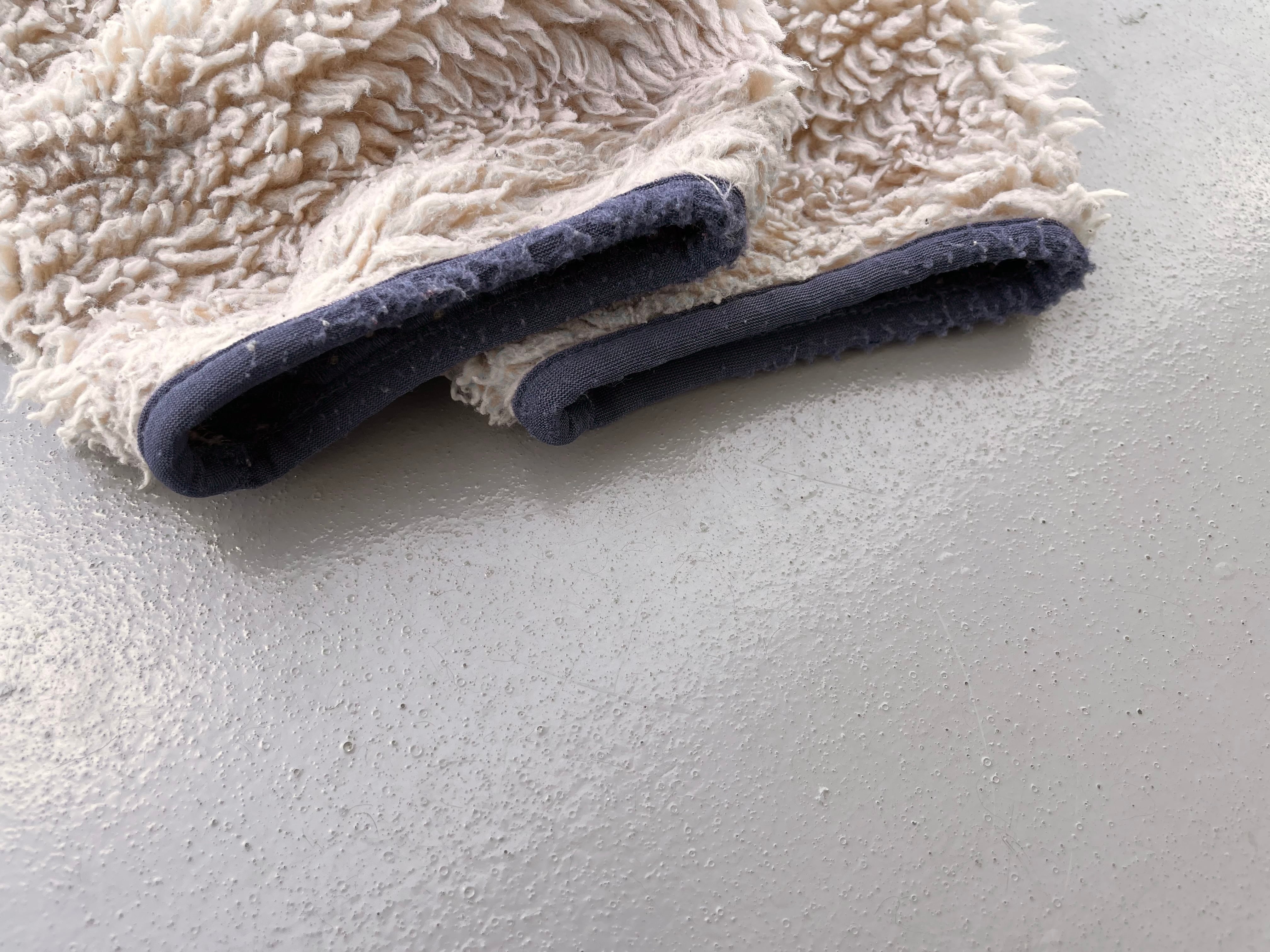 ・袖先のパイピングに毛羽立ち、袖先周りパイル寝(写真13・14枚目)