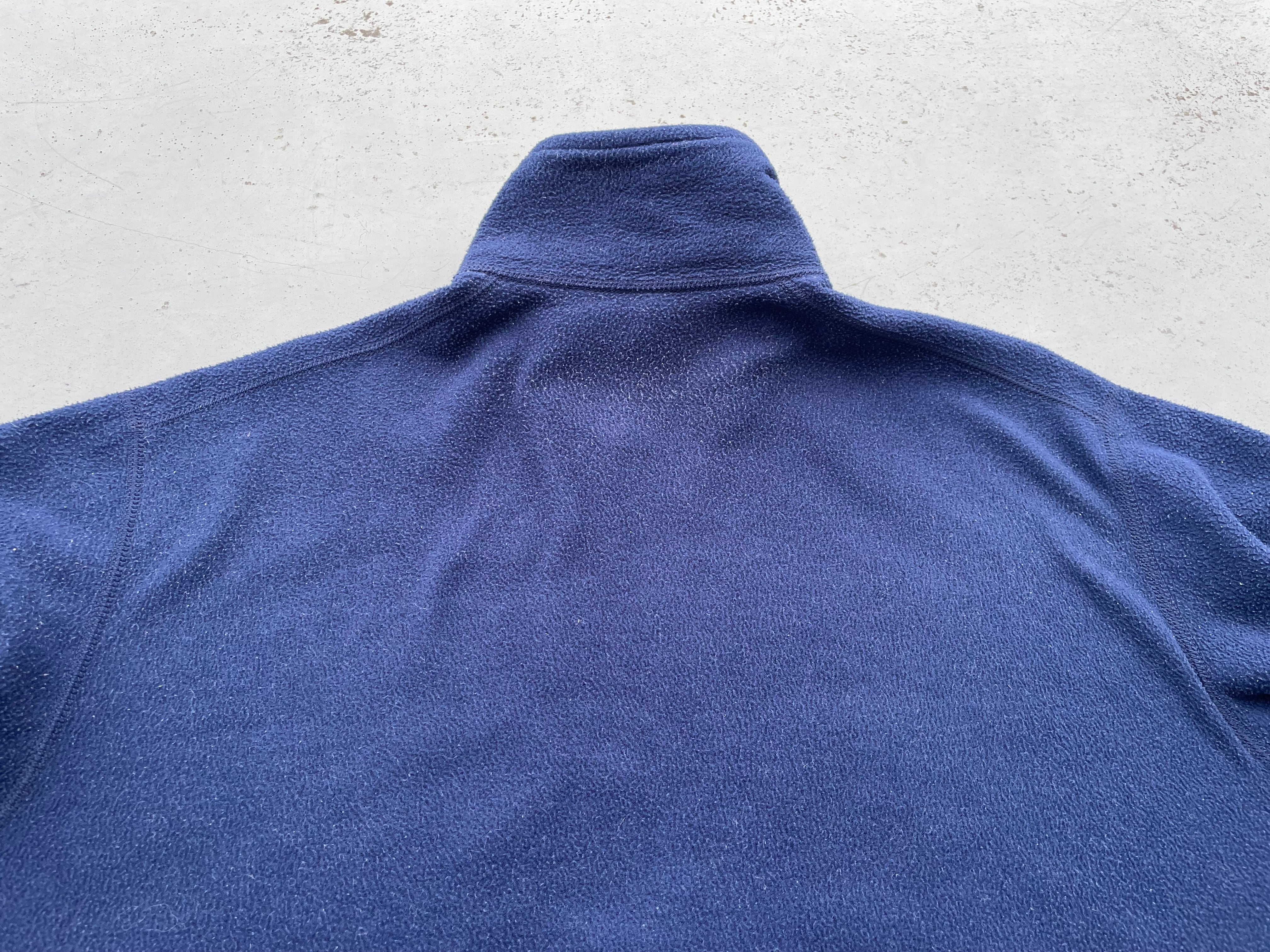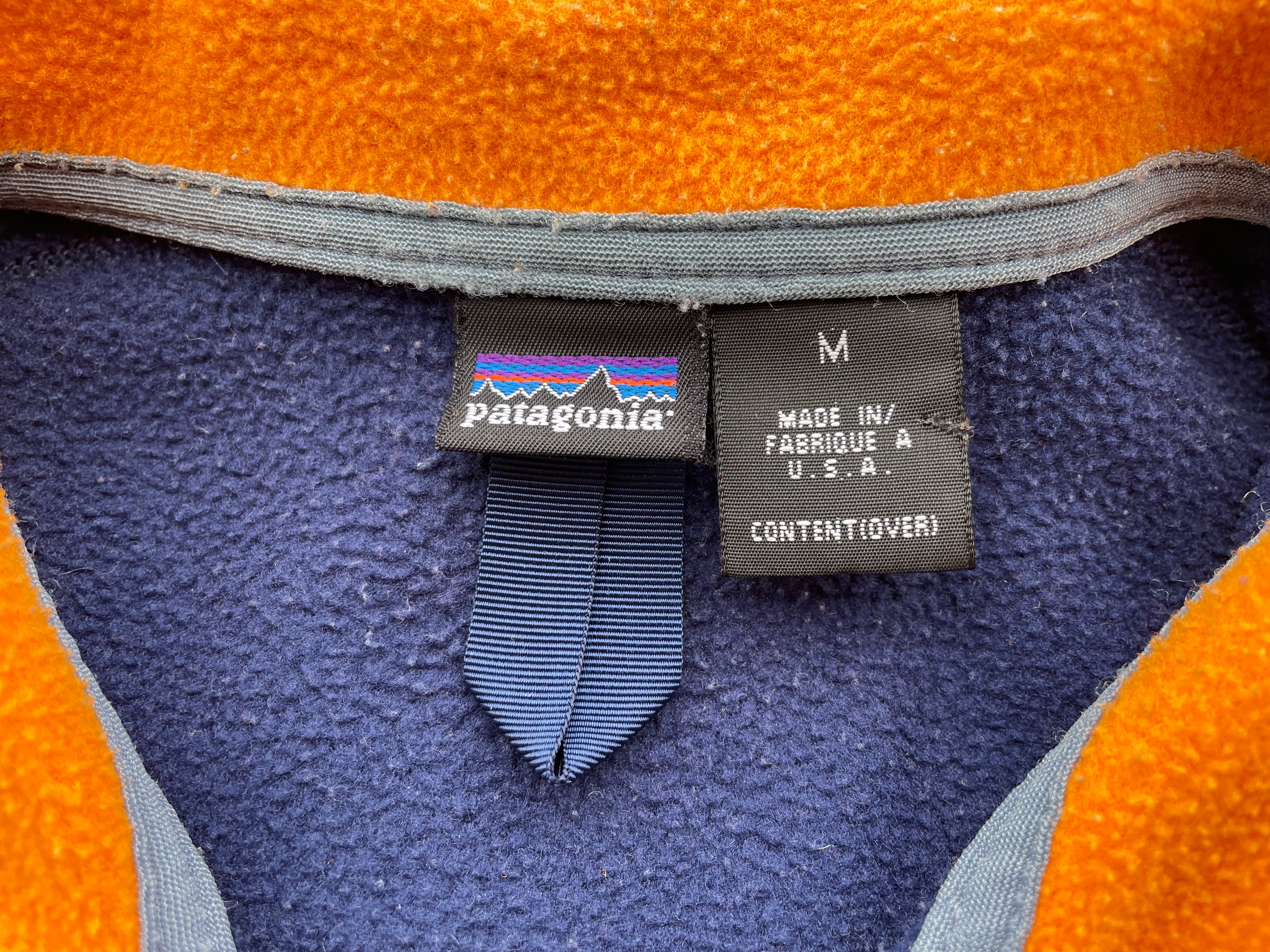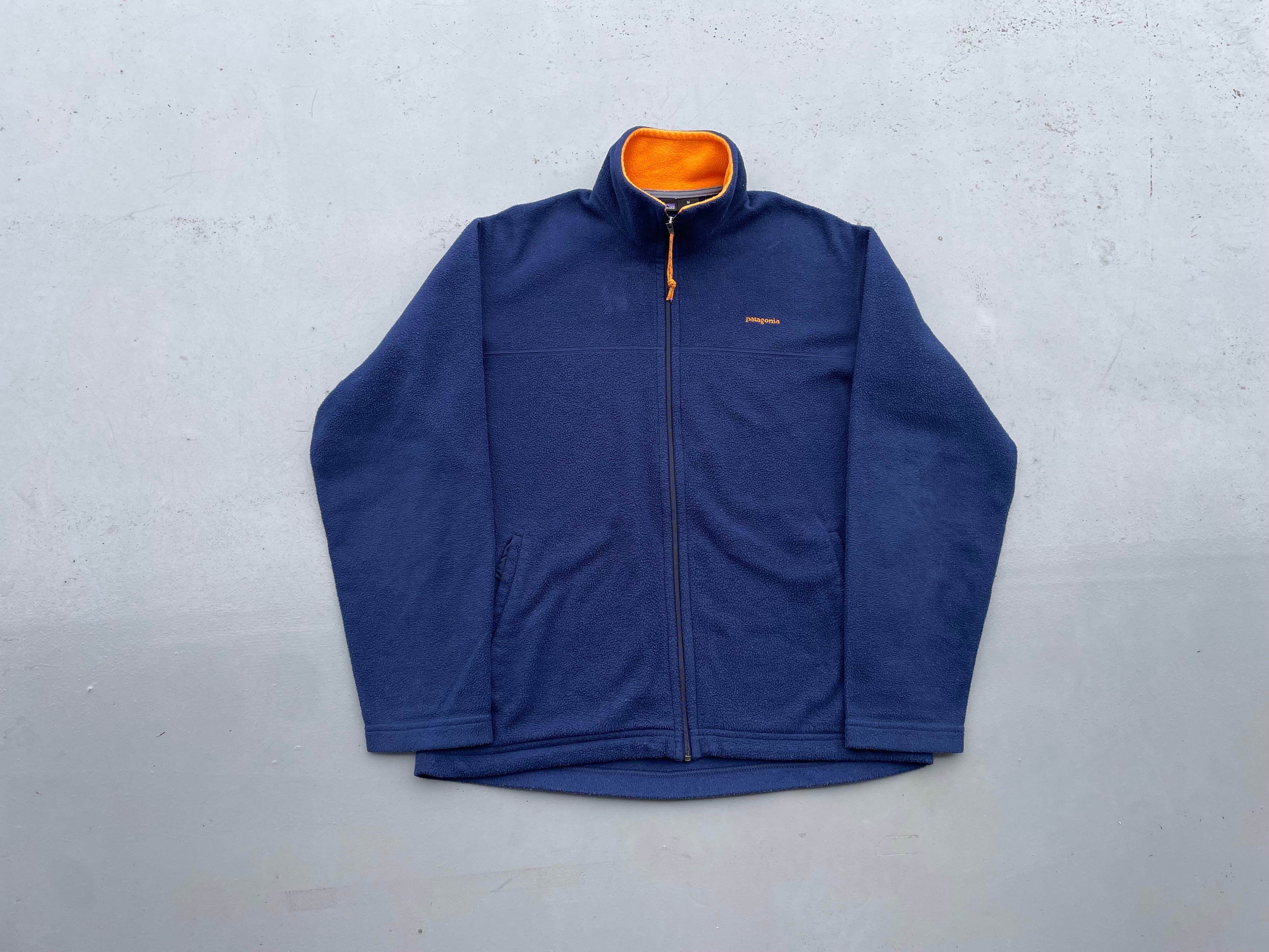 【商品詳細】パタゴニアのエルキャプリーンフリースジャケット。サイズはM。カラーはネイビー。00年USA製。定番のキャプリーン地を使用したフルジップジャケット。毛足の短いフリース地を採用しており、ライトアウターとして活躍しそうです。軽い仕上がりなので今時期はバッグインして持ち歩いても良さそうですね。オレンジカラーが映える良い色合わせです。