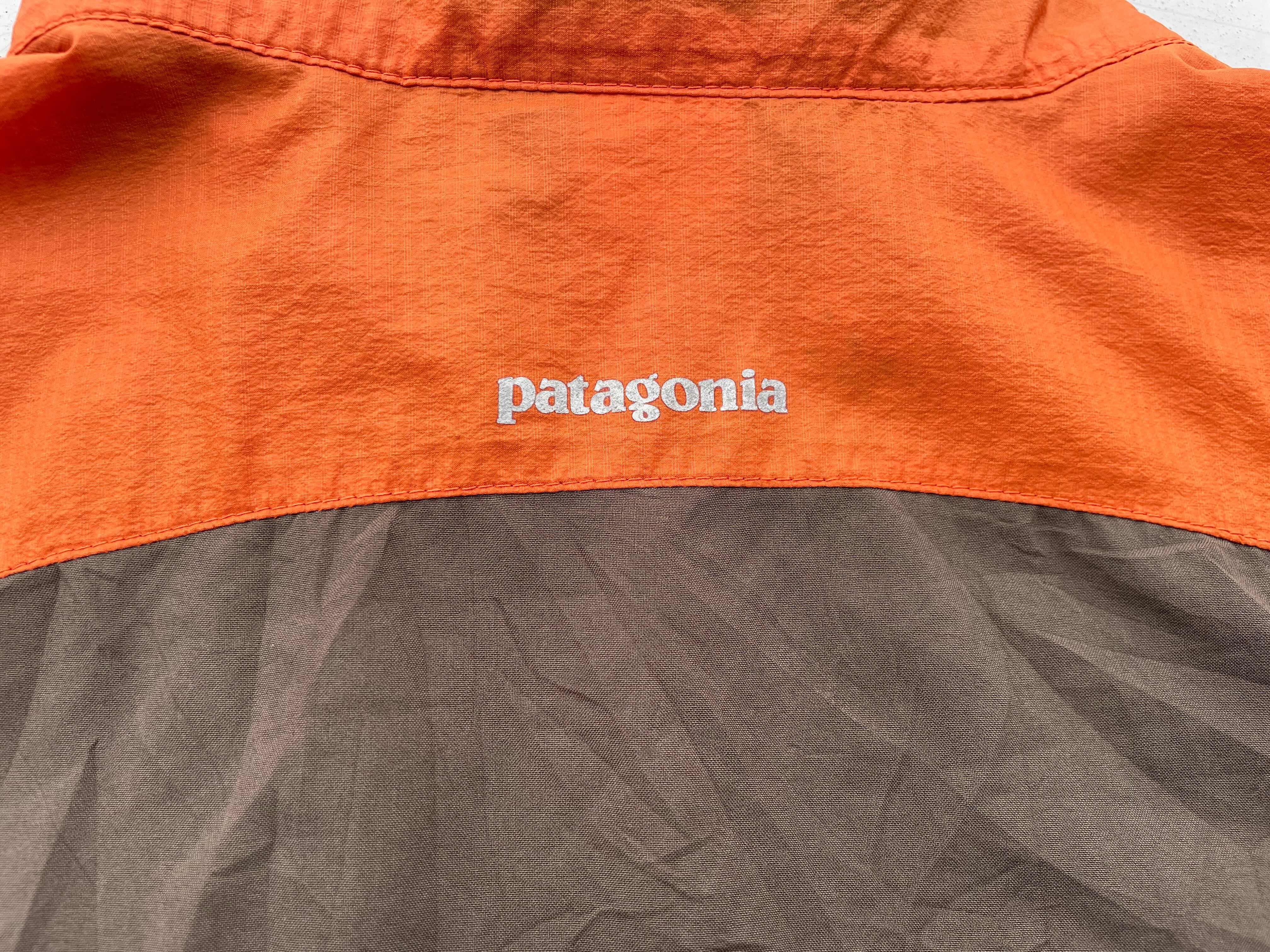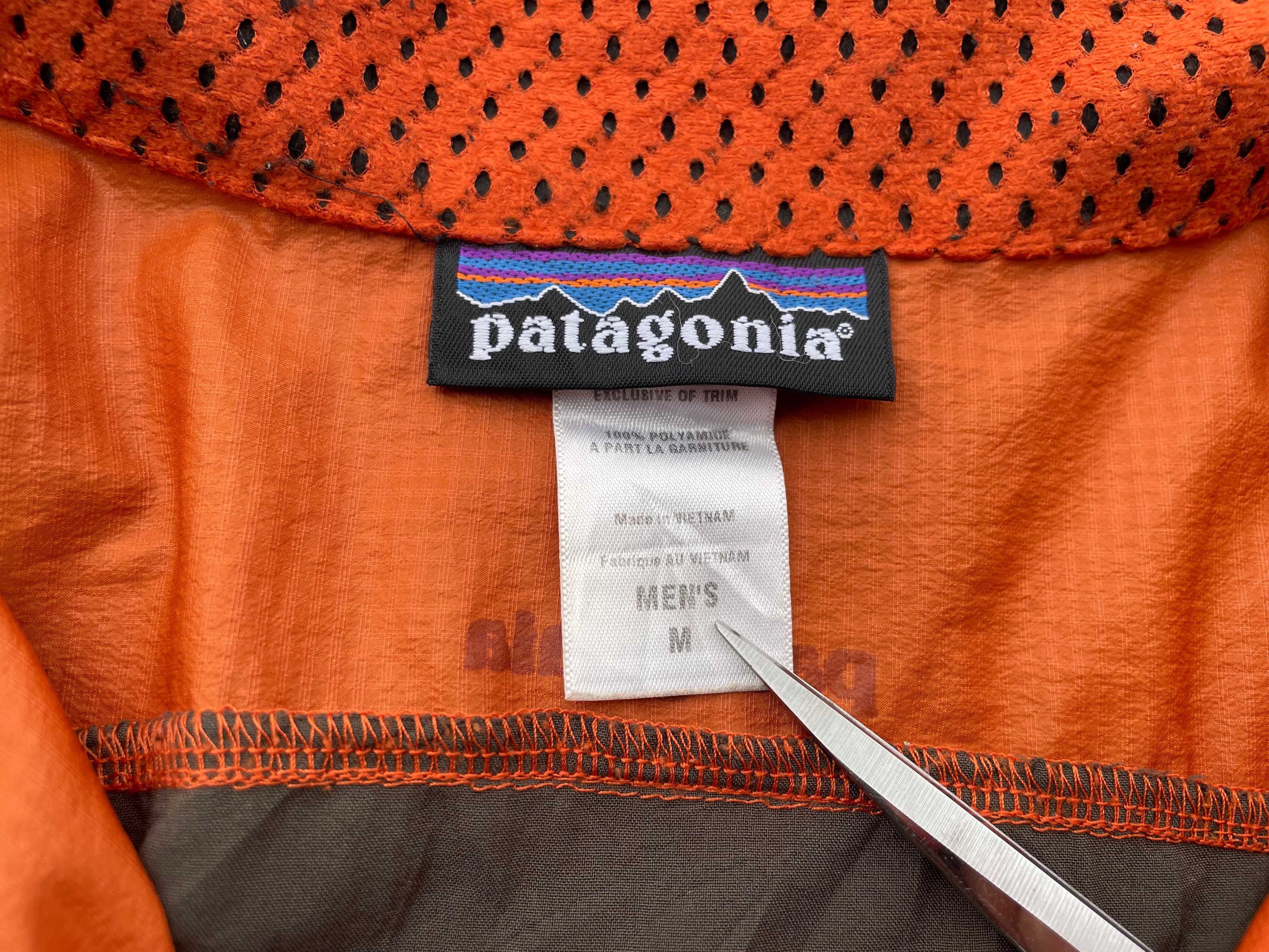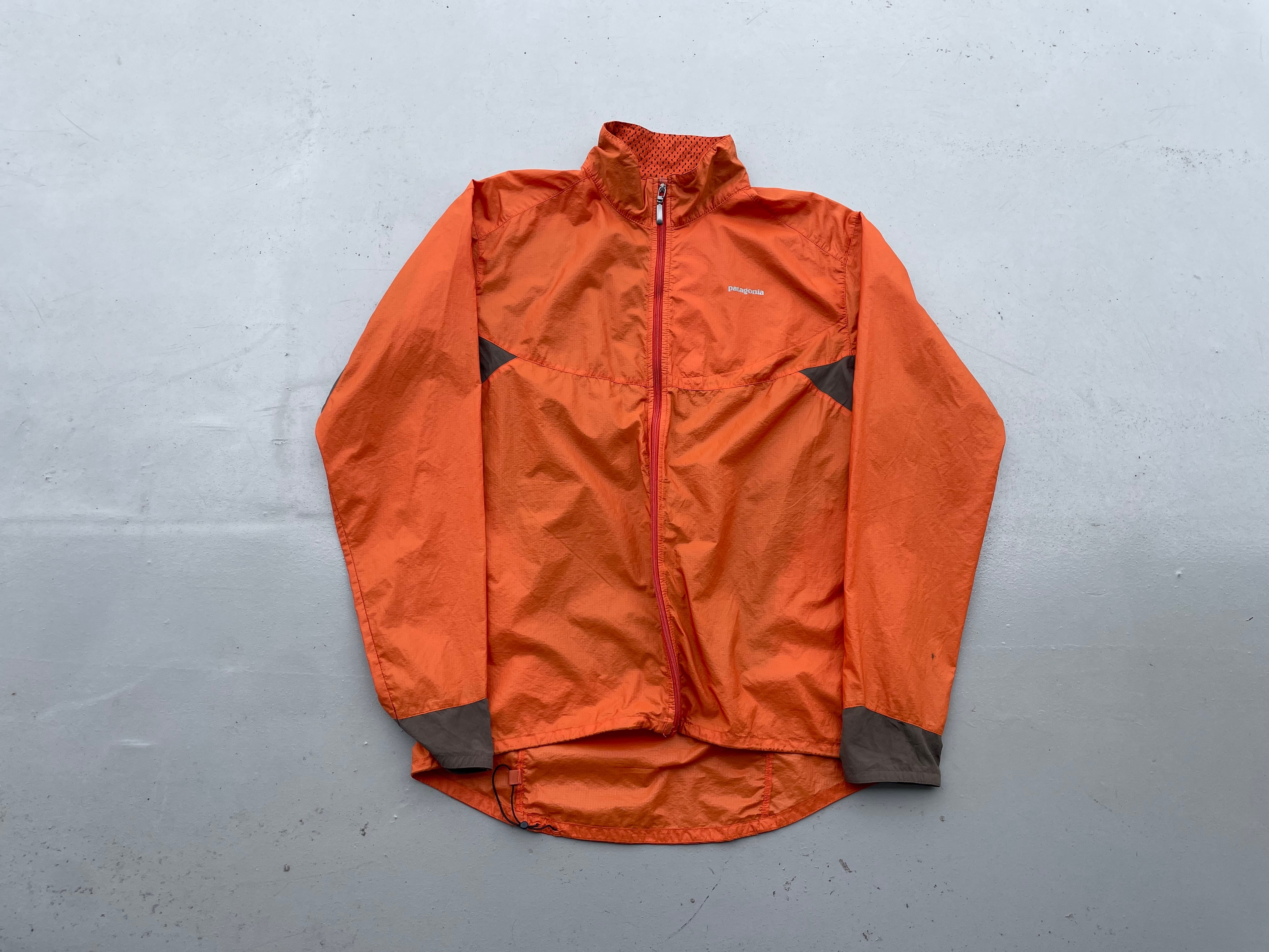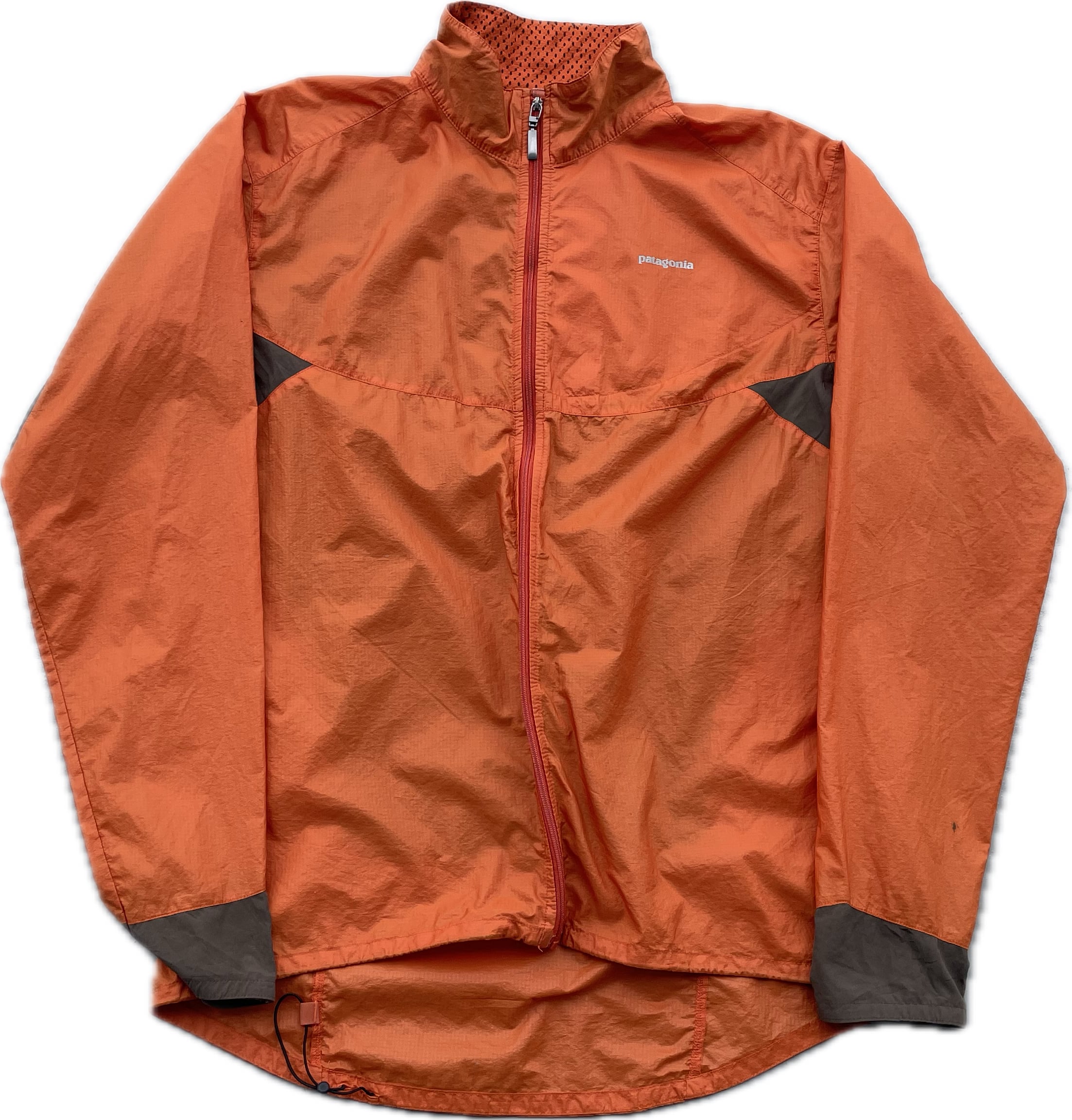 【商品詳細】パタゴニアのナイントレイルズジャケット。サイズはM。カラーはオレンジ。09年ベトナム製。超薄手なナイロンジャケット。軽量で伸縮性のある生地でスポーツシーンやアウトドアな場面でも重宝しそうです。オールシーズン使えるので一枚持っておいて良いやつです。薄手でバッグインしてまかさばらずに持ち歩けます。おすすめ。